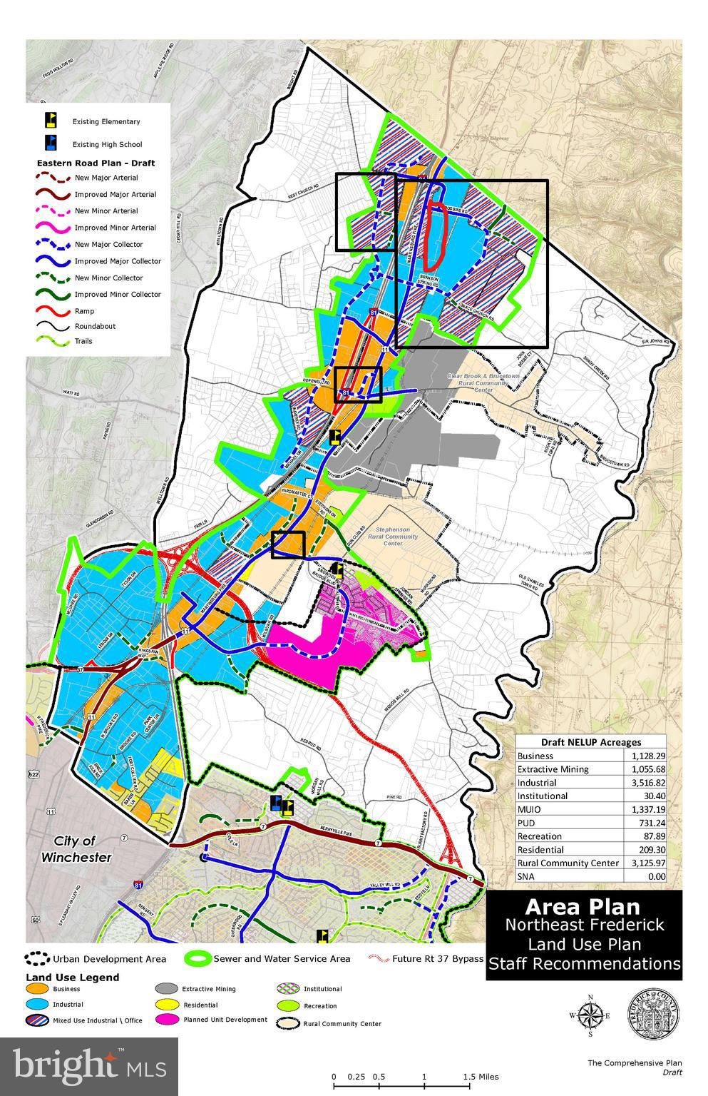 Valuable Commercial Property: 51.59 Acres. Zoned RA. Direct Access to Martinsburg Pike and Woodbine Road. Public water & sewer to site. Land is designated as Industrial in the Northeast Frederick Land Use Plan. Ready for development!!
