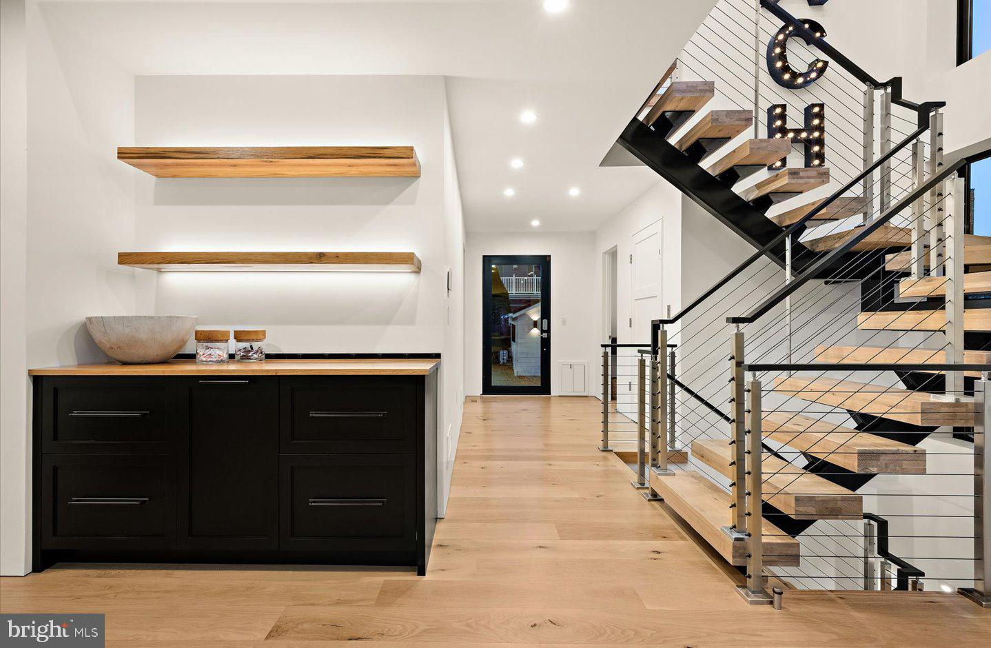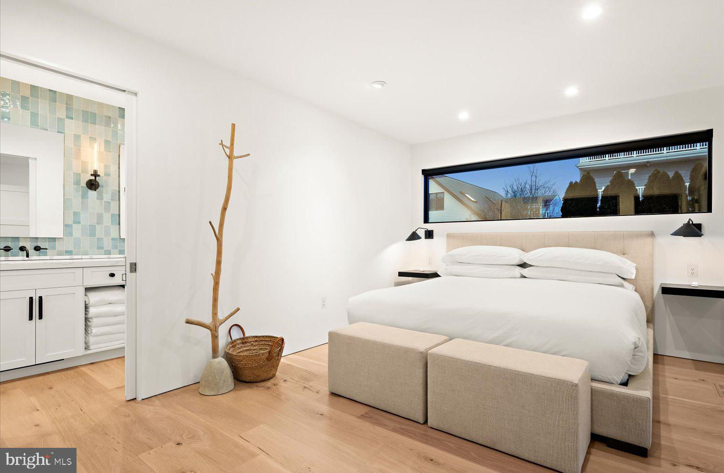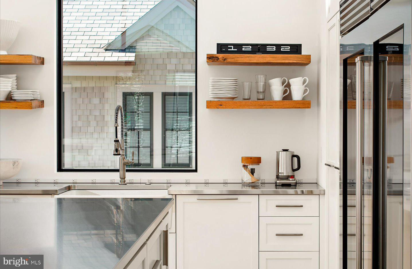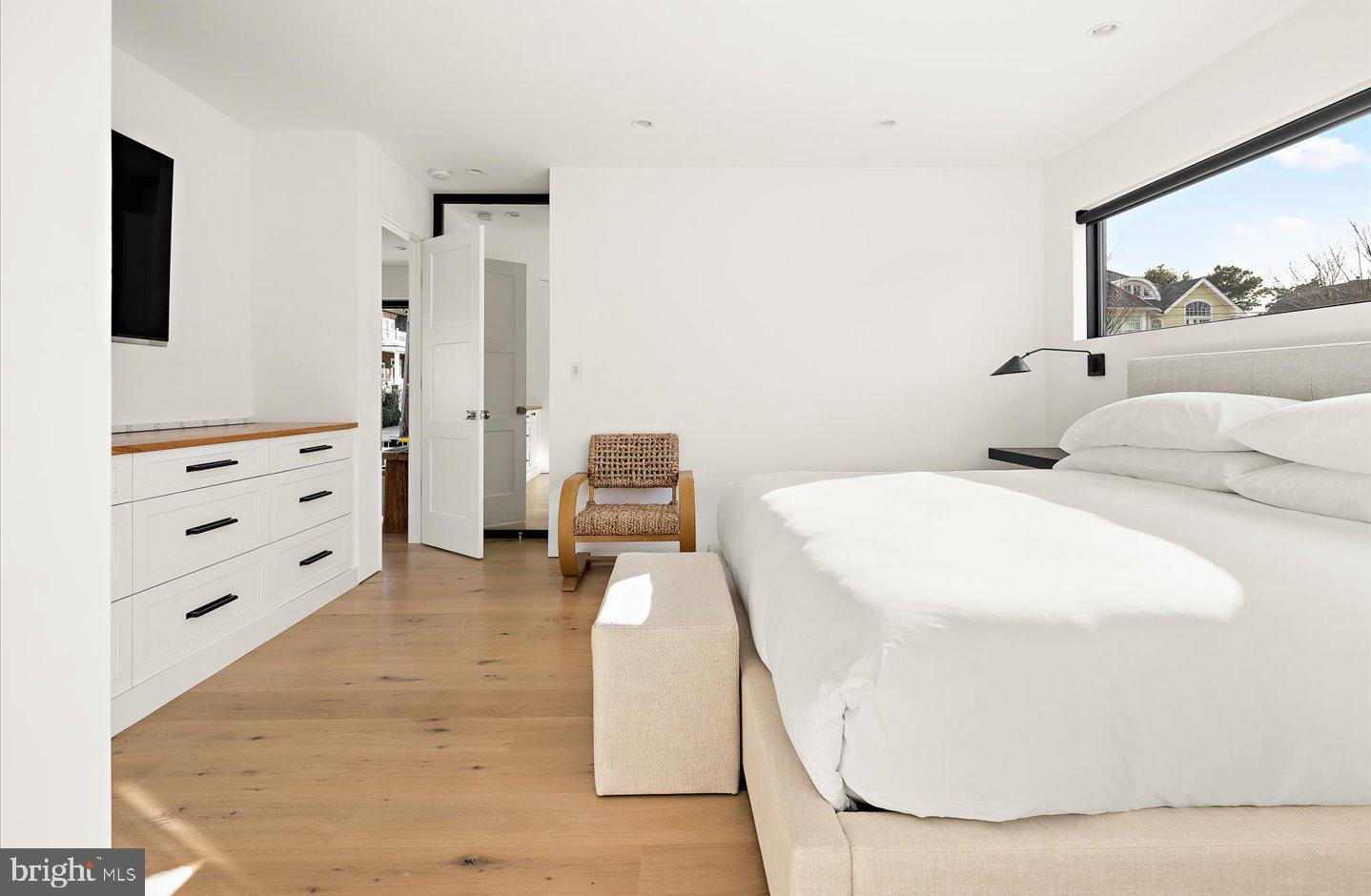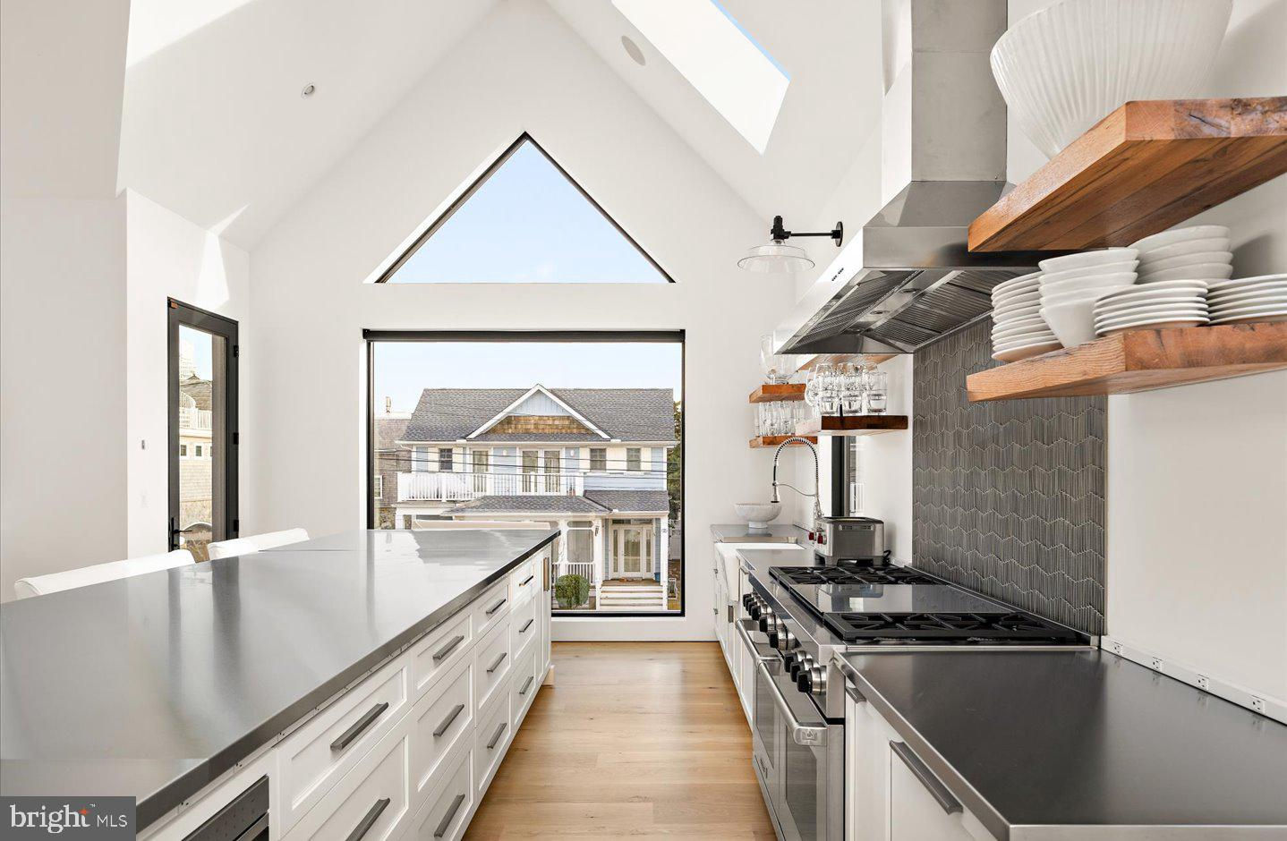 Welcome to 1 New Castle Street, an exquisite beach cottage masterfully transformed to blend timeless charm with modern sophistication. Originally a quaint 1950s seaside retreat, this residence has been meticulously re imagined, showcasing contemporary design elements and luxurious finishes. Upon entering, you're greeted by classic white oak flooring that flows seamlessly through bright, open spaces adorned with floating shelves, innovative Lutron lighting and home electronics system with smart TV's, sound system, security cameras, and more. A striking floating staircase with cable railings serves as a centerpiece, enhancing the home's modern aesthetic. The main level offers a welcoming gathering area featuring a sleek built-in beverage center and a convenient powder room. Three spacious, light-filled bedrooms provide ample built-in storage with laundry chutes, complemented by two spa-inspired bathrooms designed for ultimate relaxation. Ascending to the second level reveals a glamorous living area with soaring vaulted ceilings and expansive floor-to-ceiling custom windows that frame breathtaking ocean views. A modern gas fireplace adds warmth and ambiance to this stunning space. Adjacent lies a chef's dream kitchen, boasting stainless steel countertops, a commercial-grade Wolf range, a Sub-Zero refrigerator with glass doors, dual dishwashers, an ice maker, beverage drawers, dual sinks, and abundant custom cabinetry. This culinary haven opens to an exterior balcony, inviting you to savor the sights and sounds of the ocean waves. The second level also includes a private primary suite, accessible via a separate entrance at the rear of the home. This serene retreat features a luxurious en-suite bath, a custom walk-in closet, and more spectacular ocean vistas, offering complete solitude. Descending below grade, you'll find a tastefully finished basement equipped with multiple washers and dryers, a sink, built-in cabinetry, and a custom walk-in linen closet, ensuring ample storage and functionality. The exterior of the property boasts a spacious yard, perfect for sun-soaked relaxation. Additionally, a climate-controlled flex space currently serves as an executive office, while a separate storage area accommodates scooters, bikes, and beach essentials. This exceptional home caters to discerning buyers seeking a distinctive blend of classic charm and contemporary luxury in a prime coastal setting just one house off the ocean.