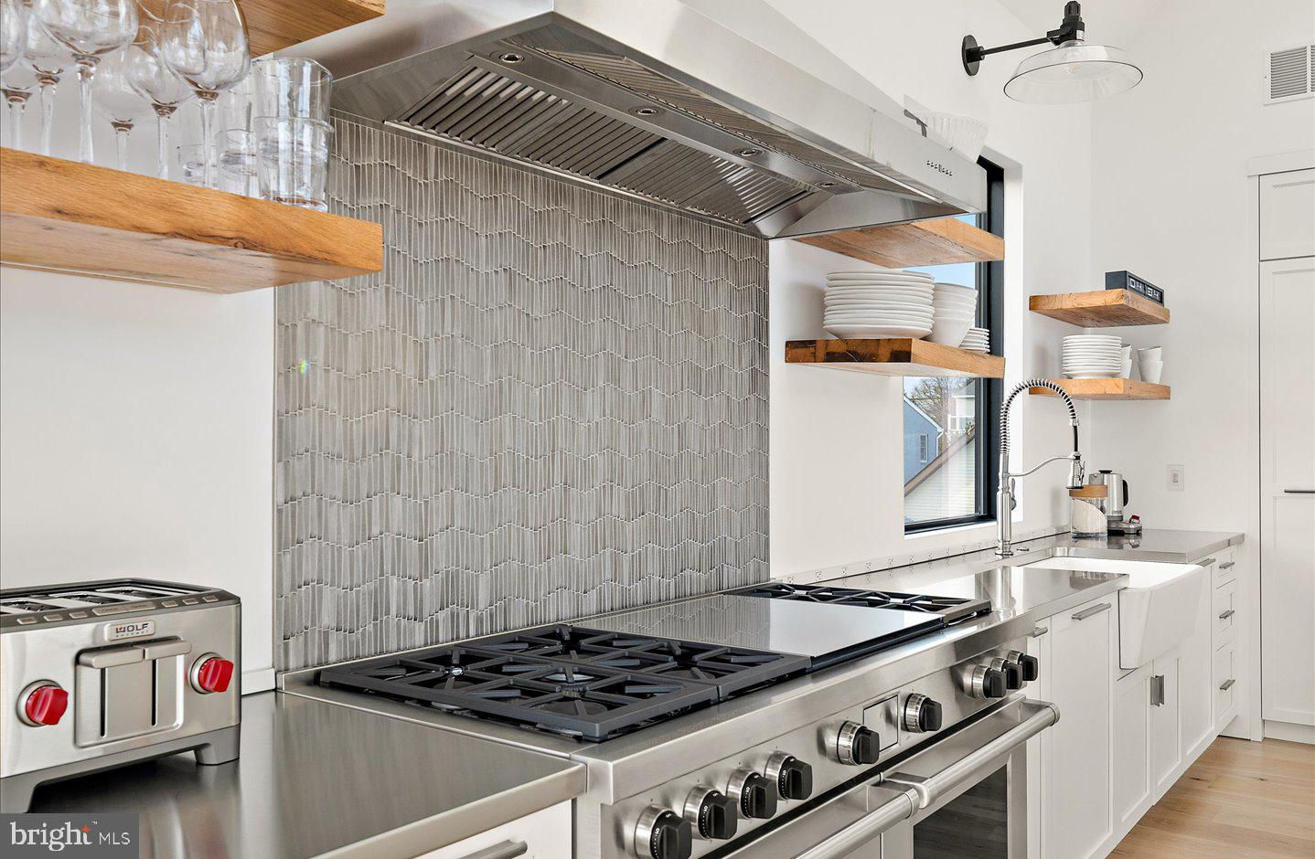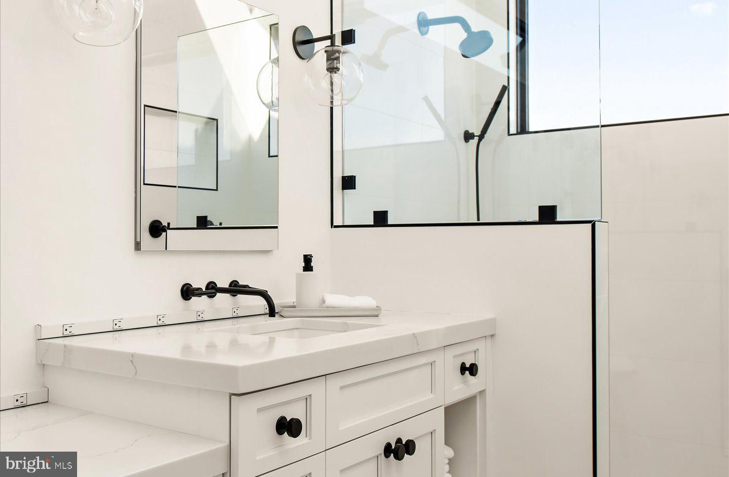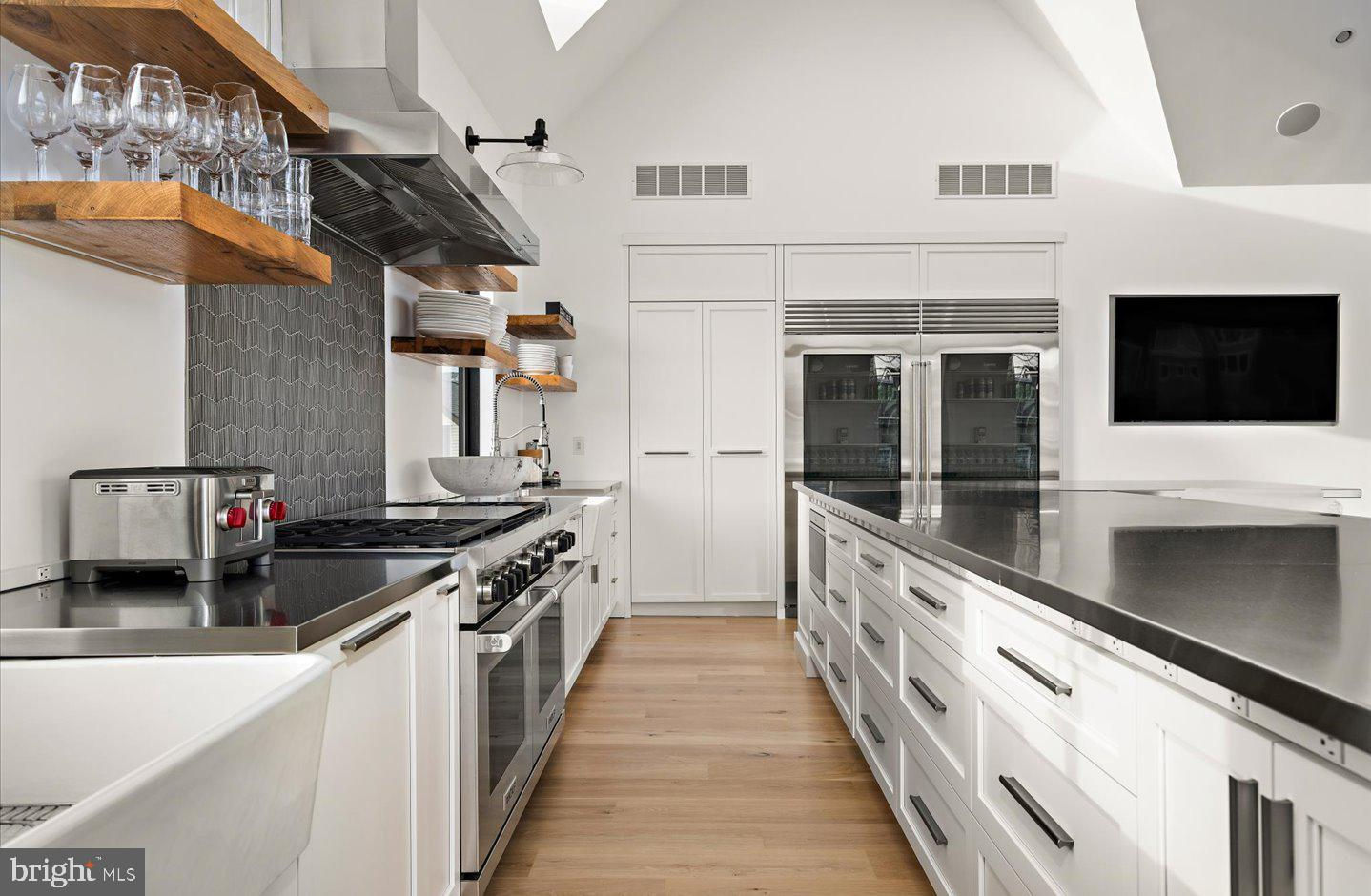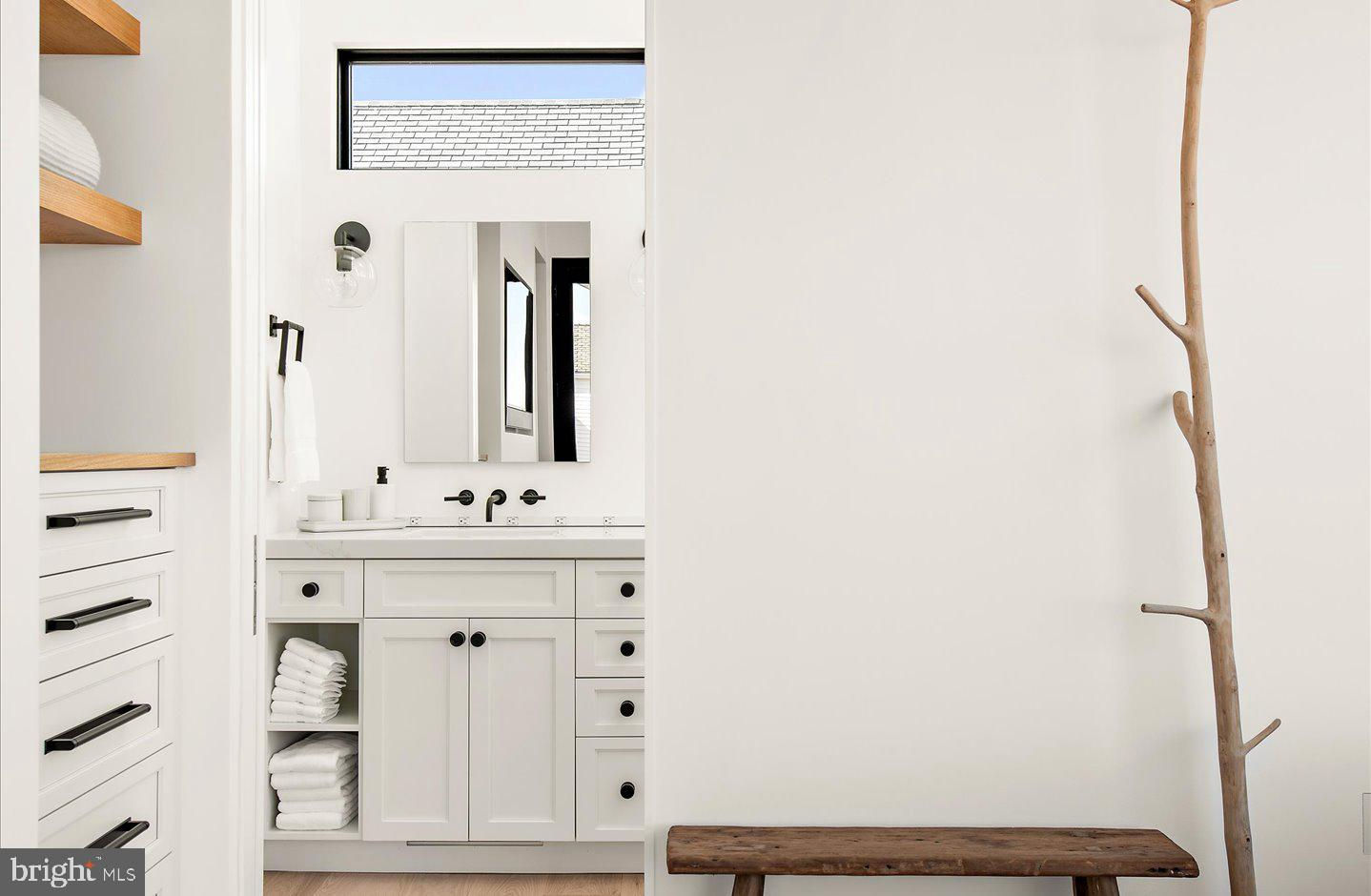 Welcome to 1 New Castle Street, an exquisite beach cottage masterfully transformed to blend timeless charm with modern sophistication. Originally a quaint 1950s seaside retreat, this residence has been meticulously re imagined, showcasing contemporary design elements and luxurious finishes. Upon entering, you're greeted by classic white oak flooring that flows seamlessly through bright, open spaces adorned with floating shelves, innovative Lutron lighting and home electronics system with smart TV's, sound system, security cameras, and more. A striking floating staircase with cable railings serves as a centerpiece, enhancing the home's modern aesthetic. The main level offers a welcoming gathering area featuring a sleek built-in beverage center and a convenient powder room. Three spacious, light-filled bedrooms provide ample built-in storage with laundry chutes, complemented by two spa-inspired bathrooms designed for ultimate relaxation. Ascending to the second level reveals a glamorous living area with soaring vaulted ceilings and expansive floor-to-ceiling custom windows that frame breathtaking ocean views. A modern gas fireplace adds warmth and ambiance to this stunning space. Adjacent lies a chef's dream kitchen, boasting stainless steel countertops, a commercial-grade Wolf range, a Sub-Zero refrigerator with glass doors, dual dishwashers, an ice maker, beverage drawers, dual sinks, and abundant custom cabinetry. This culinary haven opens to an exterior balcony, inviting you to savor the sights and sounds of the ocean waves. The second level also includes a private primary suite, accessible via a separate entrance at the rear of the home. This serene retreat features a luxurious en-suite bath, a custom walk-in closet, and more spectacular ocean vistas, offering complete solitude. Descending below grade, you'll find a tastefully finished basement equipped with multiple washers and dryers, a sink, built-in cabinetry, and a custom walk-in linen closet, ensuring ample storage and functionality. The exterior of the property boasts a spacious yard, perfect for sun-soaked relaxation. Additionally, a climate-controlled flex space currently serves as an executive office, while a separate storage area accommodates scooters, bikes, and beach essentials. This exceptional home caters to discerning buyers seeking a distinctive blend of classic charm and contemporary luxury in a prime coastal setting just one house off the ocean.