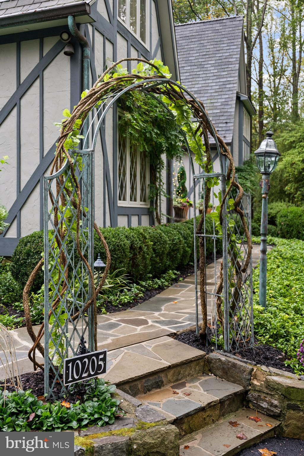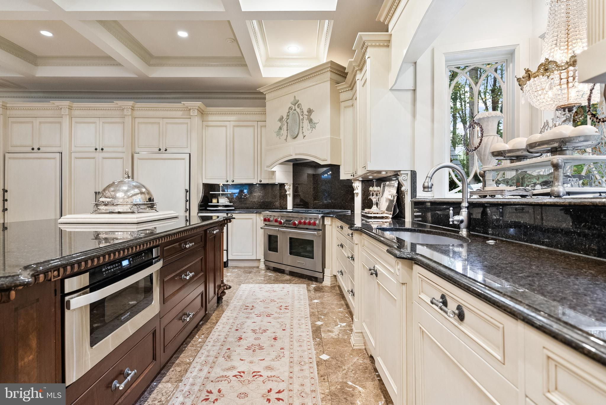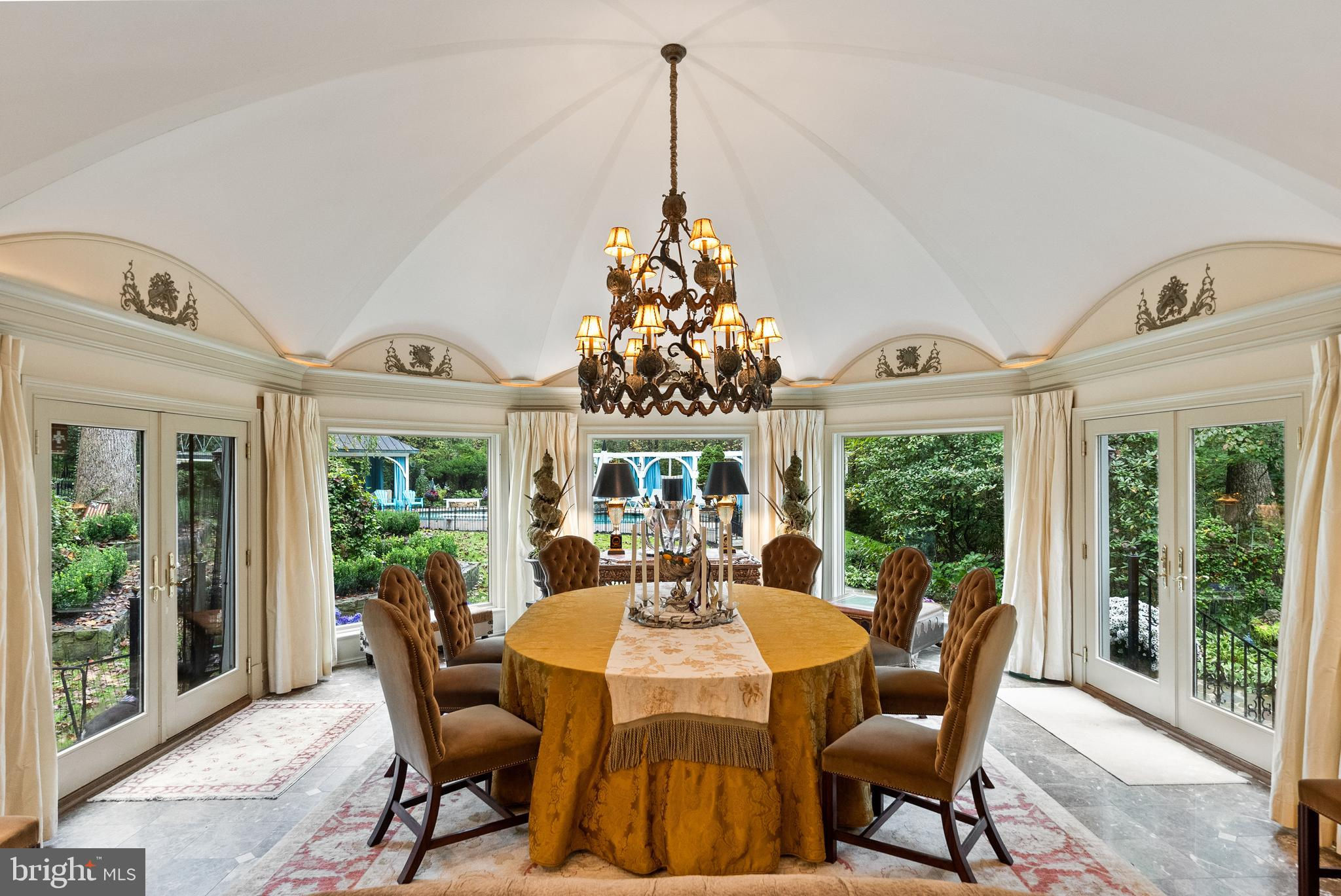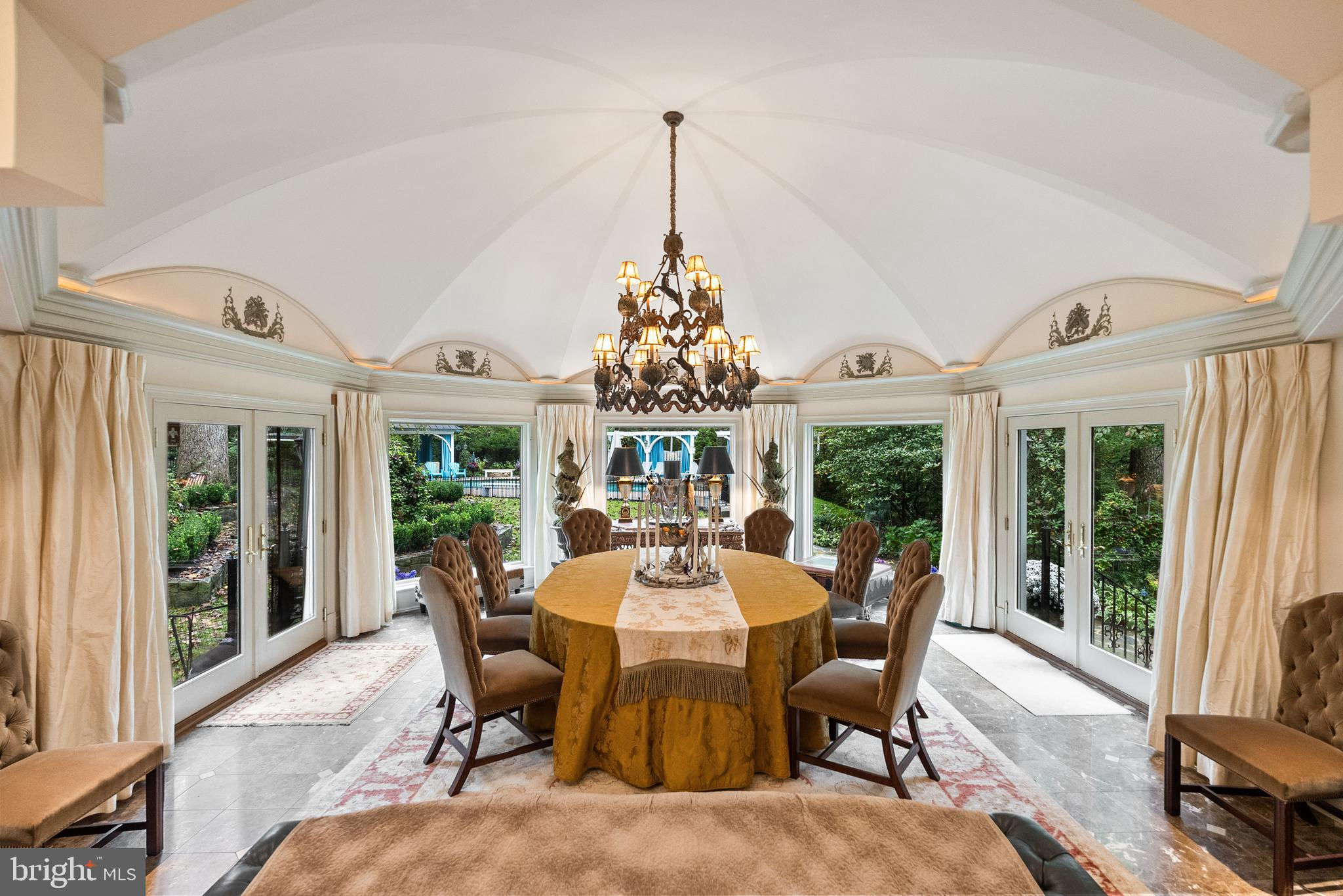 Perfectly sited on 1.23 acres backing to 15 acres of woods, this exceptional estate offers unmatched privacy and character while remaining just minutes from McLean, Tysons, and Reston Town Center. The approach begins with a gentle hilltop location and meticulously landscaped grounds framed by mature trees, setting the stage for the romantic architecture and elegant interiors. At the heart of the home, a stunning custom kitchen by Apex Homes features custom Neff cabinetry, professional-grade Wolf and Sub-Zero appliances, and an expansive design ideal for both everyday living and entertaining. The adjoining formal dining room is highlighted by a dramatic plaster groin-vaulted ceiling and walls of windows that capture serene views of the landscaped grounds and pool beyond. A sun-filled garden room opens directly to the rear terrace, blending indoor and outdoor living. The spacious main-level family room adjoins a paneled study providing the option of a first-floor primary suite. The rear garden is a resort-like destination, featuring stone terraces, formal gardens, fountains, and mature trees—all anchored by a resort-style swimming pool, spa, fire pit, and two custom gazebos. Upstairs, the primary suite offers a fireplace, an extraordinary custom dressing room with handcrafted burled walnut and mahogany cabinetry, and a spa-inspired bath designed for relaxation—two additional bedrooms on this level feature cathedral ceilings and abundant windows overlooking the gardens. The lower level provides remarkable flexibility for guest accommodations, fitness, media, or lounge space. Every room reflects a commitment to quality and craftsmanship, with timeless design, abundant natural light, and a seamless blend of European character and luxury. This is more than a home—it’s a lifestyle.