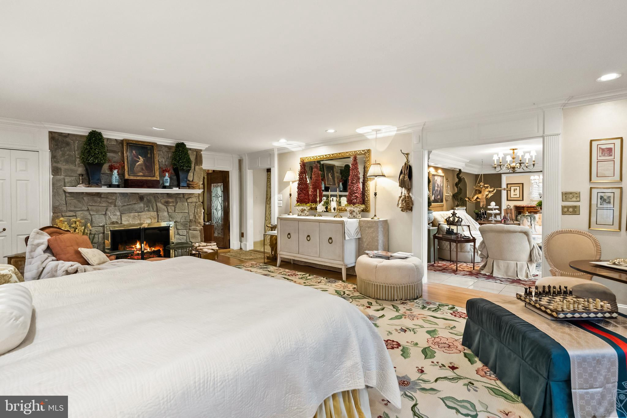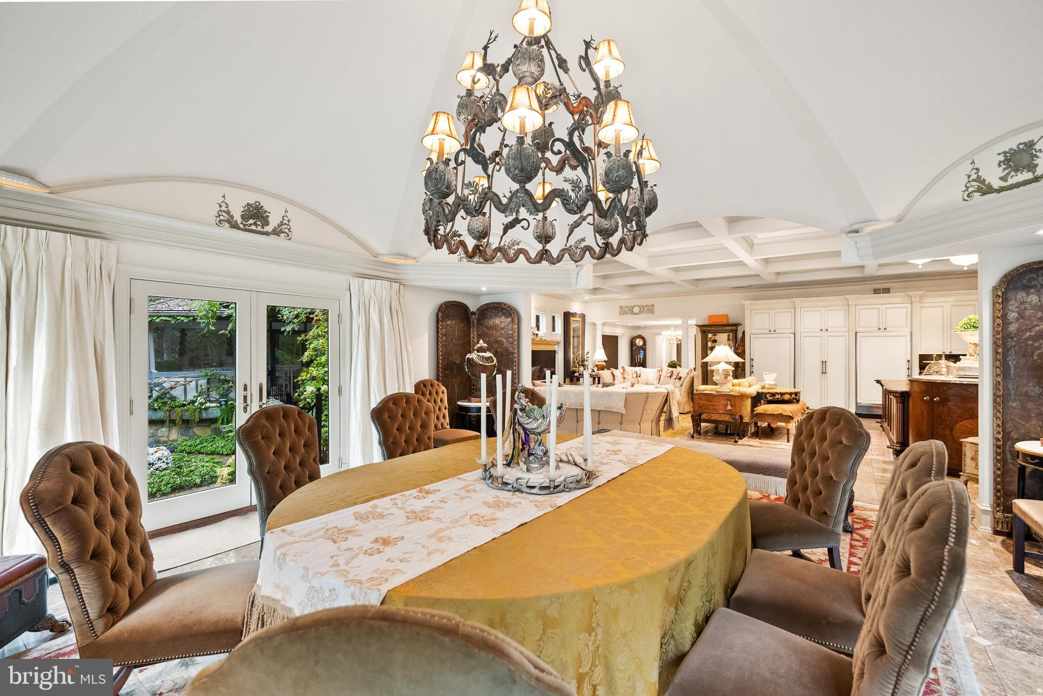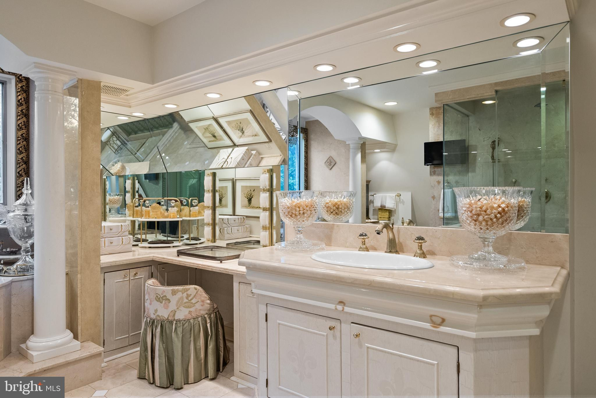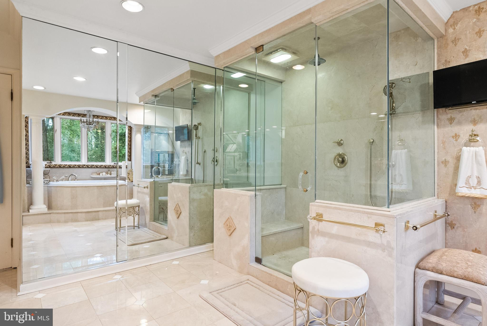 Perfectly sited on 1.23 acres backing to 15 acres of woods, this exceptional estate offers unmatched privacy and character while remaining just minutes from McLean, Tysons, and Reston Town Center. The approach begins with a gentle hilltop location and meticulously landscaped grounds framed by mature trees, setting the stage for the romantic architecture and elegant interiors. At the heart of the home, a stunning custom kitchen by Apex Homes features custom Neff cabinetry, professional-grade Wolf and Sub-Zero appliances, and an expansive design ideal for both everyday living and entertaining. The adjoining formal dining room is highlighted by a dramatic plaster groin-vaulted ceiling and walls of windows that capture serene views of the landscaped grounds and pool beyond. A sun-filled garden room opens directly to the rear terrace, blending indoor and outdoor living. The spacious main-level family room adjoins a paneled study providing the option of a first-floor primary suite. The rear garden is a resort-like destination, featuring stone terraces, formal gardens, fountains, and mature trees—all anchored by a resort-style swimming pool, spa, fire pit, and two custom gazebos. Upstairs, the primary suite offers a fireplace, an extraordinary custom dressing room with handcrafted burled walnut and mahogany cabinetry, and a spa-inspired bath designed for relaxation—two additional bedrooms on this level feature cathedral ceilings and abundant windows overlooking the gardens. The lower level provides remarkable flexibility for guest accommodations, fitness, media, or lounge space. Every room reflects a commitment to quality and craftsmanship, with timeless design, abundant natural light, and a seamless blend of European character and luxury. This is more than a home—it’s a lifestyle.