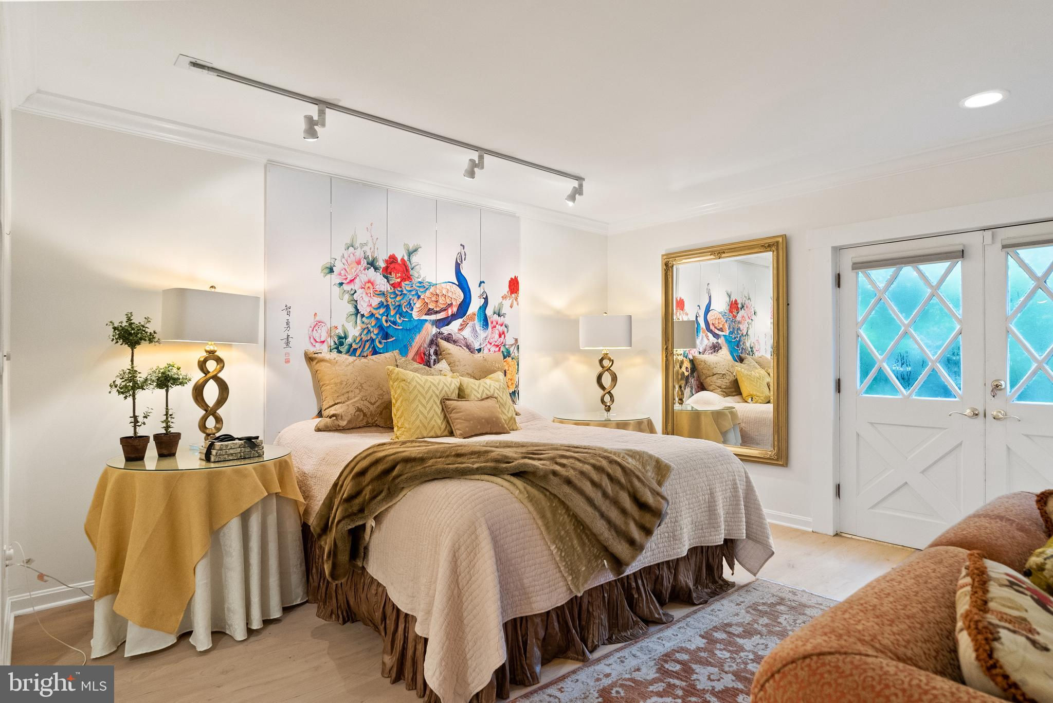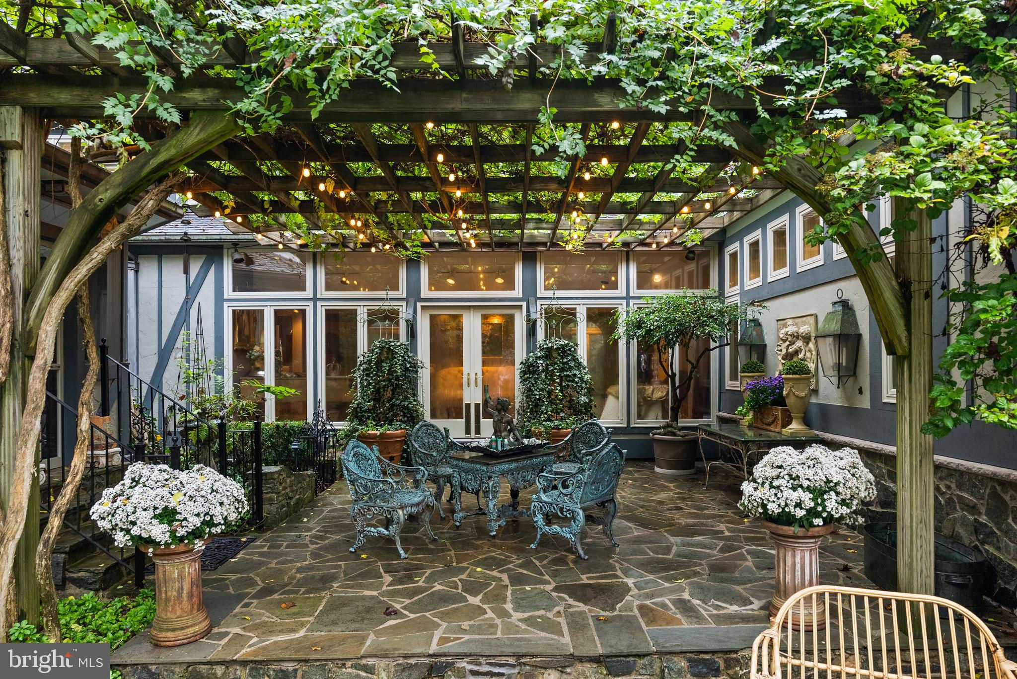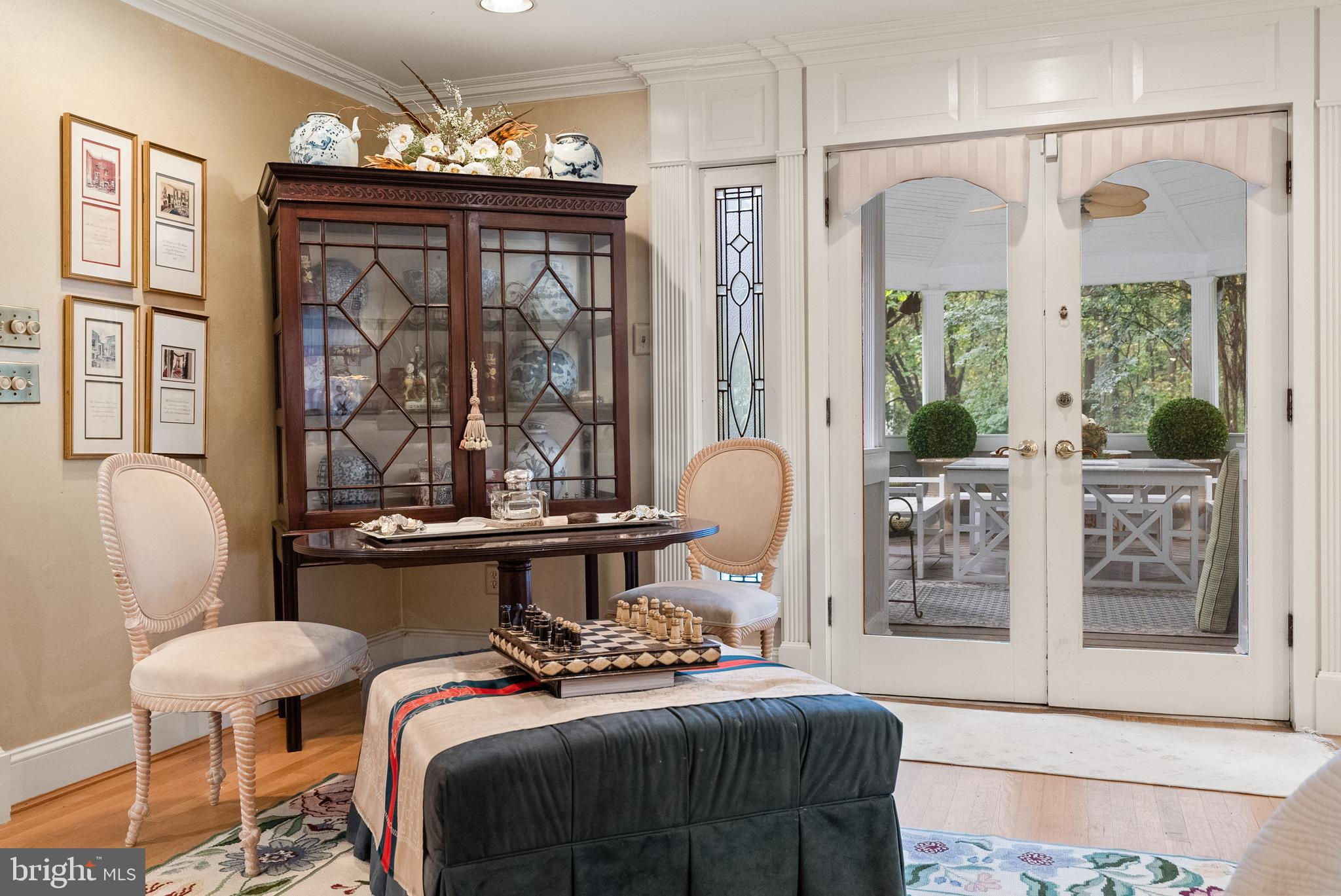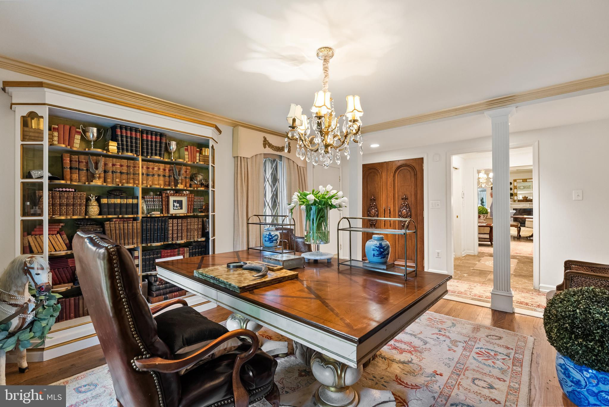 Perfectly sited on 1.23 acres backing to 15 acres of woods, this exceptional estate offers unmatched privacy and character while remaining just minutes from McLean, Tysons, and Reston Town Center. The approach begins with a gentle hilltop location and meticulously landscaped grounds framed by mature trees, setting the stage for the romantic architecture and elegant interiors. At the heart of the home, a stunning custom kitchen by Apex Homes features custom Neff cabinetry, professional-grade Wolf and Sub-Zero appliances, and an expansive design ideal for both everyday living and entertaining. The adjoining formal dining room is highlighted by a dramatic plaster groin-vaulted ceiling and walls of windows that capture serene views of the landscaped grounds and pool beyond. A sun-filled garden room opens directly to the rear terrace, blending indoor and outdoor living. The spacious main-level family room adjoins a paneled study providing the option of a first-floor primary suite. The rear garden is a resort-like destination, featuring stone terraces, formal gardens, fountains, and mature trees—all anchored by a resort-style swimming pool, spa, fire pit, and two custom gazebos. Upstairs, the primary suite offers a fireplace, an extraordinary custom dressing room with handcrafted burled walnut and mahogany cabinetry, and a spa-inspired bath designed for relaxation—two additional bedrooms on this level feature cathedral ceilings and abundant windows overlooking the gardens. The lower level provides remarkable flexibility for guest accommodations, fitness, media, or lounge space. Every room reflects a commitment to quality and craftsmanship, with timeless design, abundant natural light, and a seamless blend of European character and luxury. This is more than a home—it’s a lifestyle.