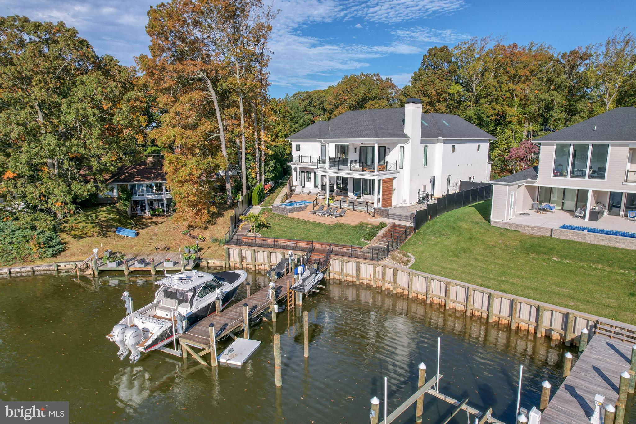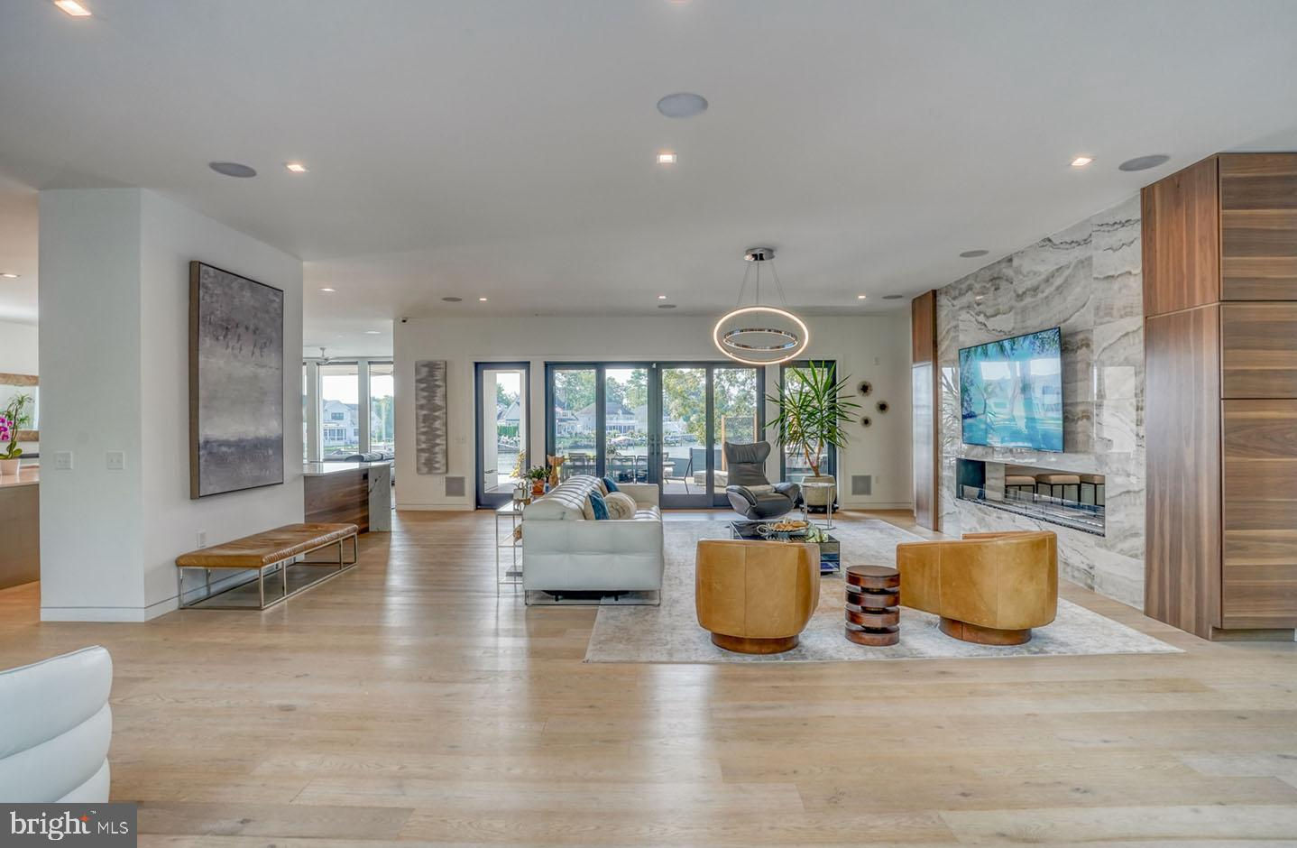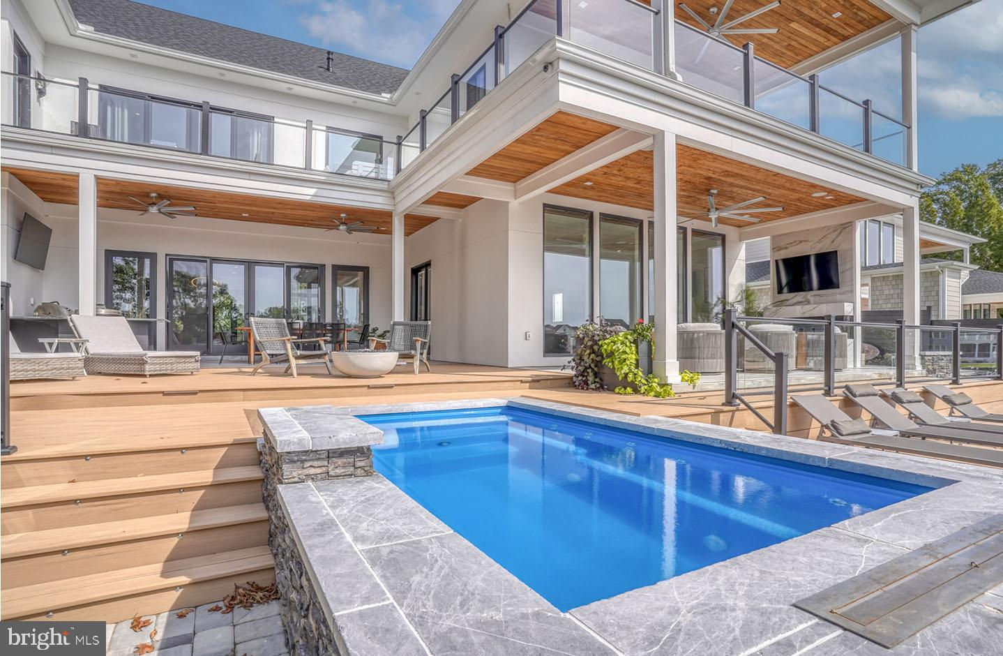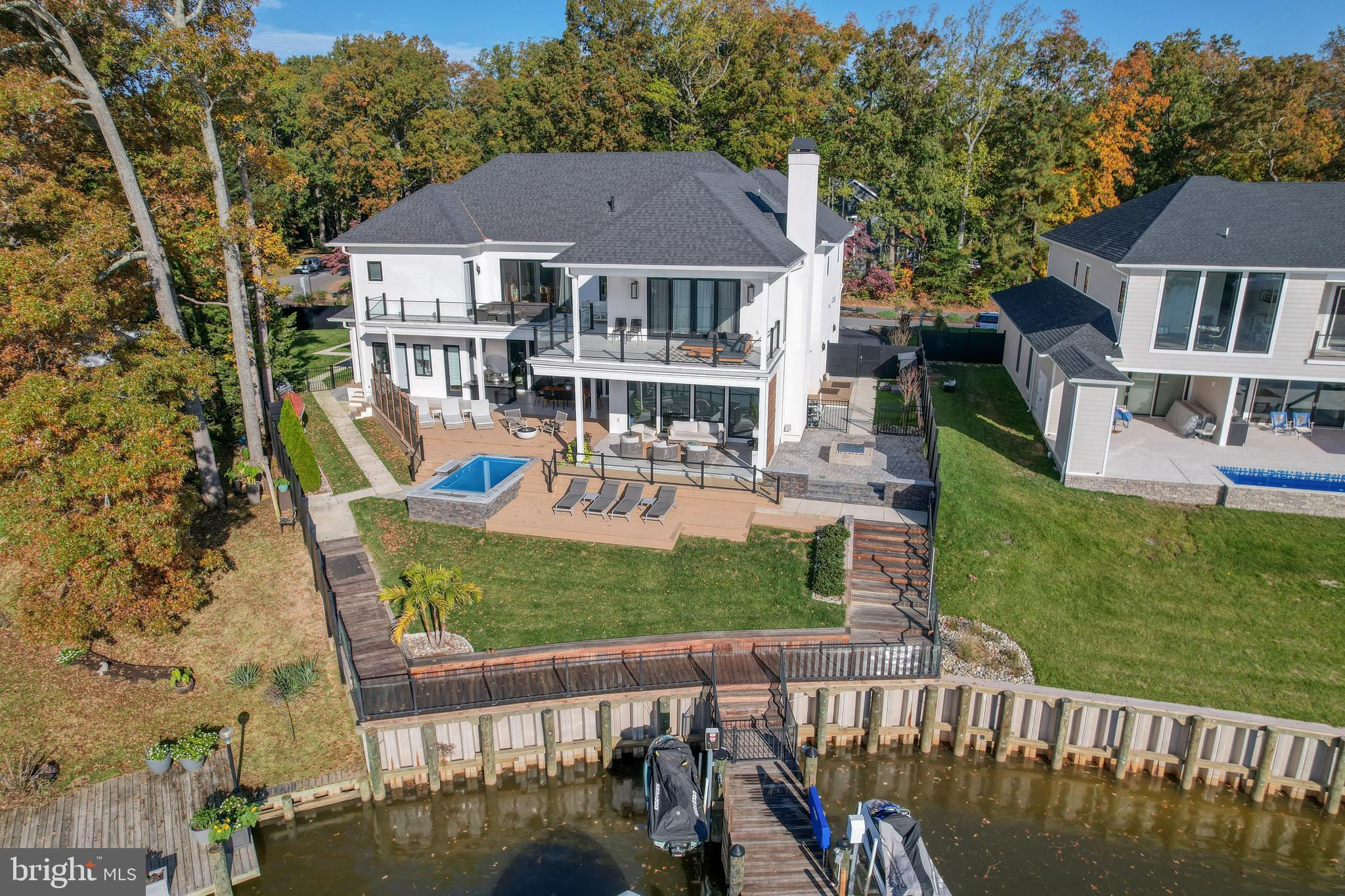 Location, location, location! Welcome to this luxurious 5 car garage waterfront marvel at 104 W. Buckingham Dr., located in the coveted Rehoboth Beach Yacht and County Club. This sought-after Rehoboth Beach location is renowned for its beaches, diverse dining, minutes away from Tanger outlets and downtown shopping, and the entertainment night life that Dewey beach has to offer. This builder's personal home has modern sophistication with just over 7,000 square feet and is designed to take your breath away. Offering the ultimate amount of on and off-street parking, the craftsmanship shines in this vacation destination for people who dream big, love deeply, and live boldly. Set along Bald Eagle Lagoon, the house stands out among the rest boasting 2 deepwater slips for the Rehoboth Bay area. Offering one 20,000 lb boat lift, one wet boat slip, and two jet ski lifts it is truly a boater’s paradise. The extra wide 6'x60' pier is decked with IPE decking for years of longevity. Includes a 50 AMP power post with electric and fresh water on the dock. The landscape lights and dock lights show off the exterior in style and function. The spectacular fiberglass saltwater plunge pool is equipped with a waterfall and fire feature along with 3 outdoor showers, 2 of which are private and one down by the dock for a quick rinse after enjoying your day on the water. The exterior decks on both floors have teak covered porches that allow you to have multiple areas to entertain and relax. An extra-large gas firepit on a paver gathering space delights guests for hours of waterfront conversation under the stars. With an open-air kitchen and a gas and EVO grill, your guests will enjoy fresco dining, laughter and unforgettable gatherings. Dazzling you upon arrival with its 2 exterior fire waterfall features and gas lighting it leads you to a spectacular mahogany front door. Once inside you are greeted with 20'+ tall ceilings with a tiled foyer and exquisite lighting features and hardwood floors throughout the home. Step into the gourmet kitchen, where every detail is crafted for those who love to cook and entertain. Adorned with quartz and Bertazzoni appliances and a walk-in pantry with additional prep space and second full size refrigerator this kitchen is the showpiece of this amazing house. Views of the canal can be seen through the massive, fixed windows and double opening sliding doors in the back of the home. A wood-burning limestone fireplace in one of the family rooms that overlook the bay makes for an extra cozy space on those cold nights. With a total of 4 living room areas, each equipped with large screen TVs allows owners and guests to each have a room to come home and unwind. For the dog lover in mind, this house also incorporates a laundry room downstairs with dog grooming bathtub station. Enjoy the lighted open glass railing staircase or take solace in the bright double window shafted elevator to the top floor where the upstairs boasts 4 large bedrooms with their own private bath. Add the functionality of a kitchenette and 2 laundry rooms upstairs, along with a living area that has the view of the lagoon from the wrap around rear porch with glass railings, the views are unparalleled. It’s a place which transcends the typical home and caters to your utmost comfort and desire.