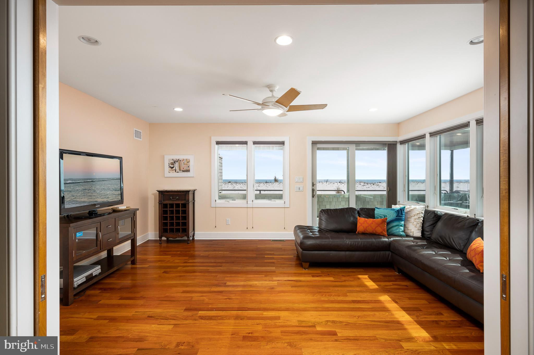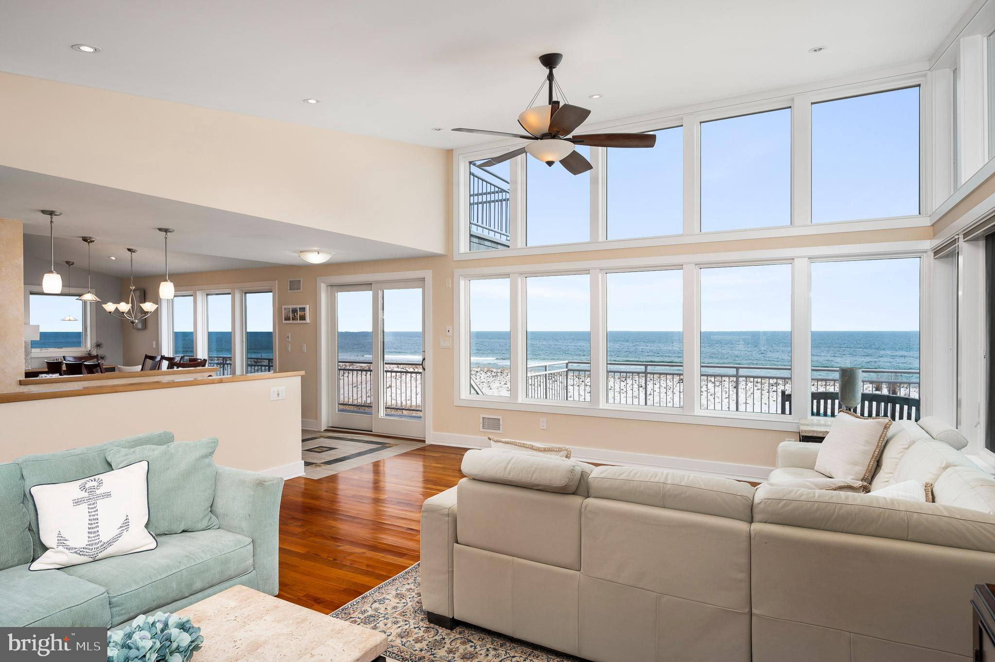 Line of Sight - Sensational oceanfront opportunity arriving just in time for the spring market. This stunning modern home, designed by renowned architect Jay Madden and custom built by Joel Montgomery Jr., offers 3,760 Sq. feet of living space sprawled along an oversized parcel on 100 feet of oceanfront in North Beach. High ceilings fitted with walls of glass overlooking the sparkling Atlantic waters and serene beaches. Well-suited with 5 spacious bedrooms (each en-suite), 5 full and 2 half baths, family room with pocket door, and hidden office - you'll have ample room for family and friends. Beautiful hardwood flooring, 3-stop elevator, multiple balconies, private sunbathing deck, and roof deck are just a few features of this modern masterpiece. Sold tastefully furnished and ready for immediate occupancy. Shown by appointment only. Listing agent to accompany.