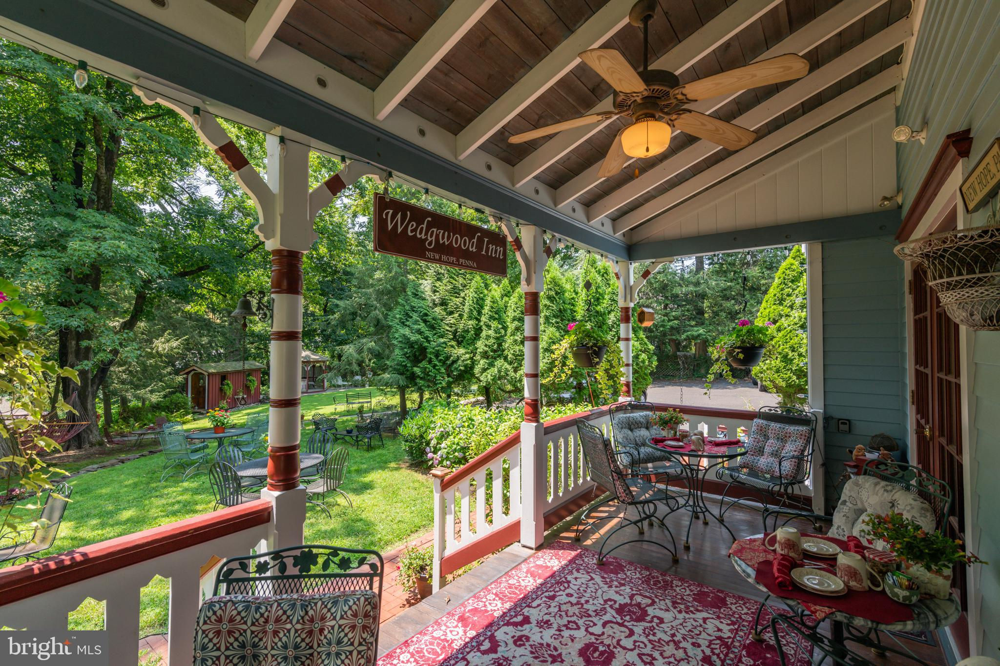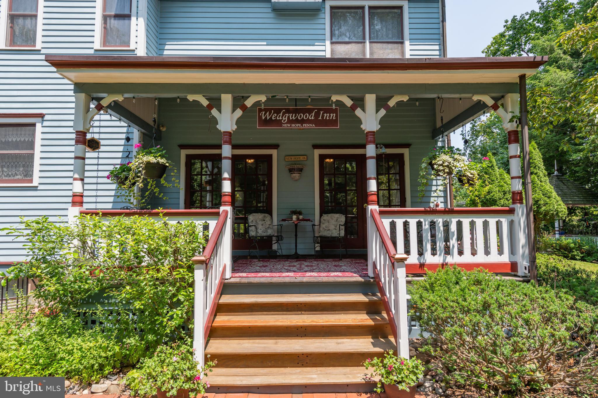 Sold separately, or combined, these iconic inns are nestled along the banks of the Delaware River and surrounded by the prettiest countryside in Bucks County. The Wedgwood Inn and Umpleby House are the award winning bed and breakfast duet providing the very best in luxury hospitality to guests since 1982. Comprised of an iconic Wedgwood-blue Victorian "Painted Lady" with ten bedroom suites, a Classic Revival 1833 plaster over stone manor house with eight suites and a one bedroom, one bath Carriage House as well as an oversized two car detached barn/garage and twenty-four parking spaces in both adjacent lots. In addition, for events, there are 600 parking spaces across the street at the New Hope-Solebury School District. Guests can choose Self-Parking or a Valet service. The total square footage of all three buildings combined equals 11,821 SF. A successful four season luxury Bed and Breakfast, these historic buildings feature the artisan craftsmanship of an architecturally significant property along with the amenities of the twenty-first century, lush lawns and landscaping and all in one of the best locations in New Hope. The business comes “turnkey” so all the contents are included to assure your future success. Named as one of “America’s Favorite Towns” by Travel and Leisure magazine, New Hope Pennsylvania is a beautiful village with a long and storied history. Located just an hour from Philadelphia, 90 minutes to NYC and half an hour from Princeton. New Hope, just across the river from Lambertville NJ, is a wonderful location. The Wedgwood Bed and Breakfast has offered perfection in lodging services since 1982 attracting both business and leisure travelers and gathering accolades and awards such as the “TripAdvisor Certificate of Excellence and “Inn of the Year” by the popular Lanier International Inn Guidebook. Between the two buildings and the Carriage House, there are a total of eighteen individual guest rooms, 10 Fireplace Rooms and 8 Jaccuzzi/FP Suites. Each room has exceptional charm and unique features. The public areas of the Inn are just as beautiful. From intimate spaces in which to relax, like the sun porch, to the larger rooms such as the recent dining room addition, each has its own distinctive features. The Wedgwood Inn is the primary kitchen with a handsome butler pantry connecting the attractively spacious dining room to the kitchen which is thoughtfully laid out with a huge commercial stove and expansive cabinetry and counterspace. The Inns can hold an *inside* event for up to 40 persons (seated) in Wedgwood, and Umpleby can accommodate 16. Outdoor weddings/concerts (tented or not): up to 150 persons. The Umbleby House has its own country kitchen for separate prep or overflow. Stone basements house the multi-appliance laundry area and storage for each building and the Umpleby House has a 550 square foot basement studio caretakers apartment assuring 24 hour attention to the property’s needs. Just a few steps away is the Carriage House. This popular two story suite features a main floor living area with woodstove and a full bath and a second floor bedroom with large covered porch. An attractive two car detached garage is perfect for the company vehicle as well as storage or a possible workshop. With electric and WiFi the barn could generate additional income “as is” or may be renovated into large Owners Quarters. The meticulously tended grounds provide a wonderful place to relax or a photogenic backdrop for a variety of events. In the age of Instagram you couldn’t find a better place to stage your wedding or best life photos. With its prime location, great ambience, historic significance and successful business history, the Wedgwood Inn and Umpleby House are an unbeatable opportunity for the B&B buyer.