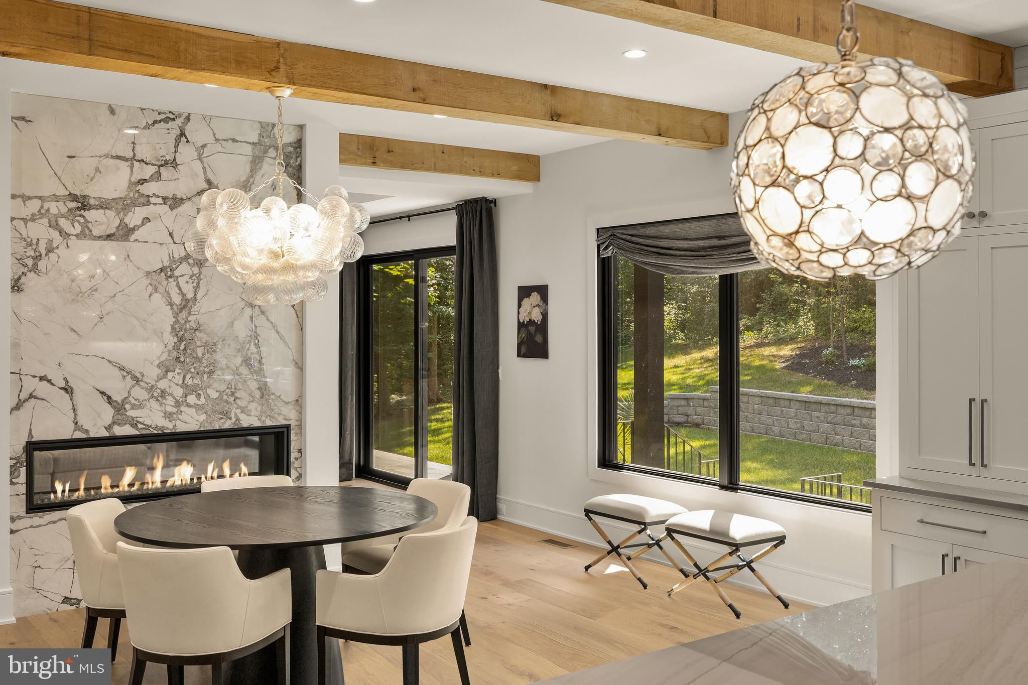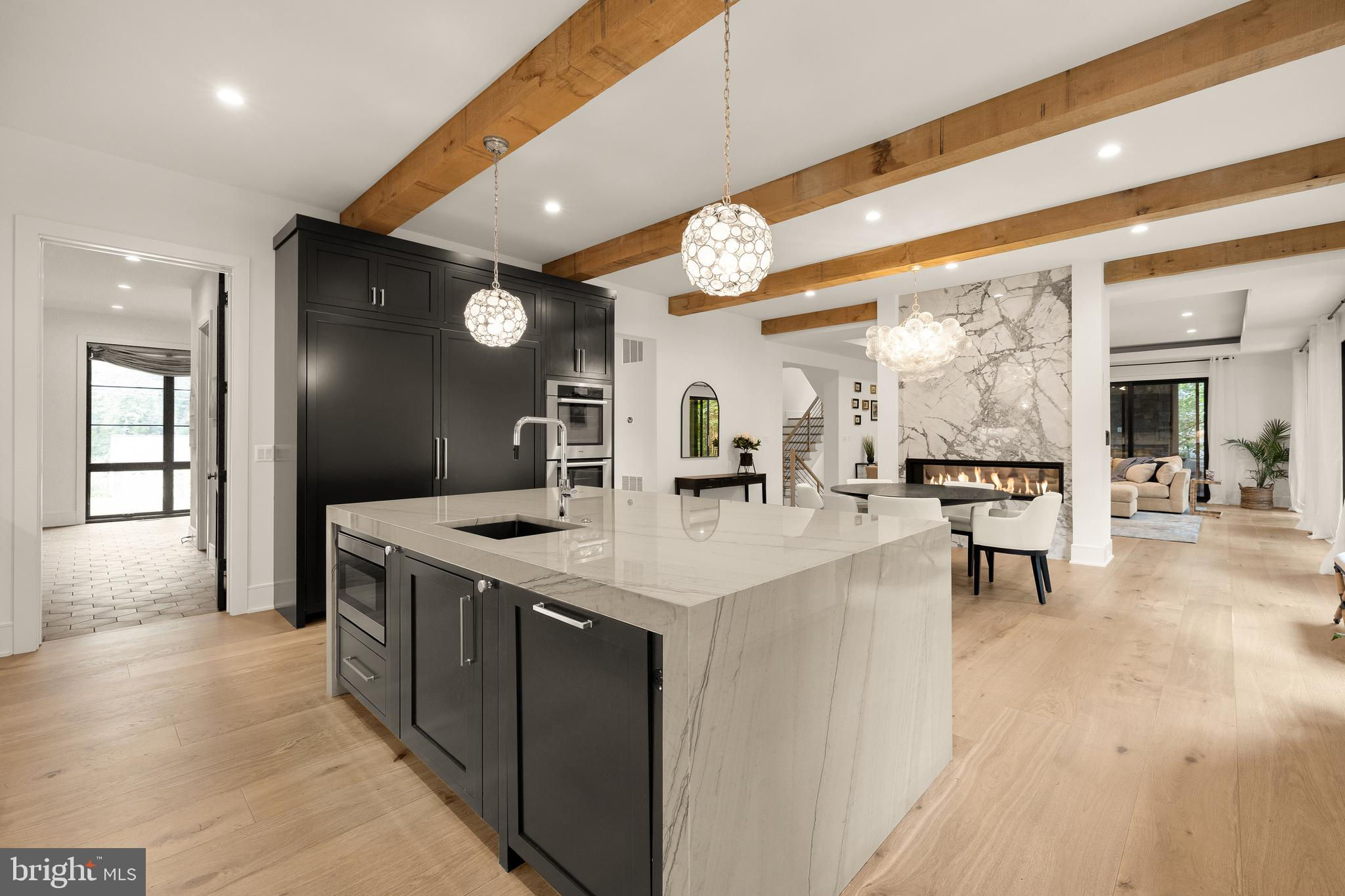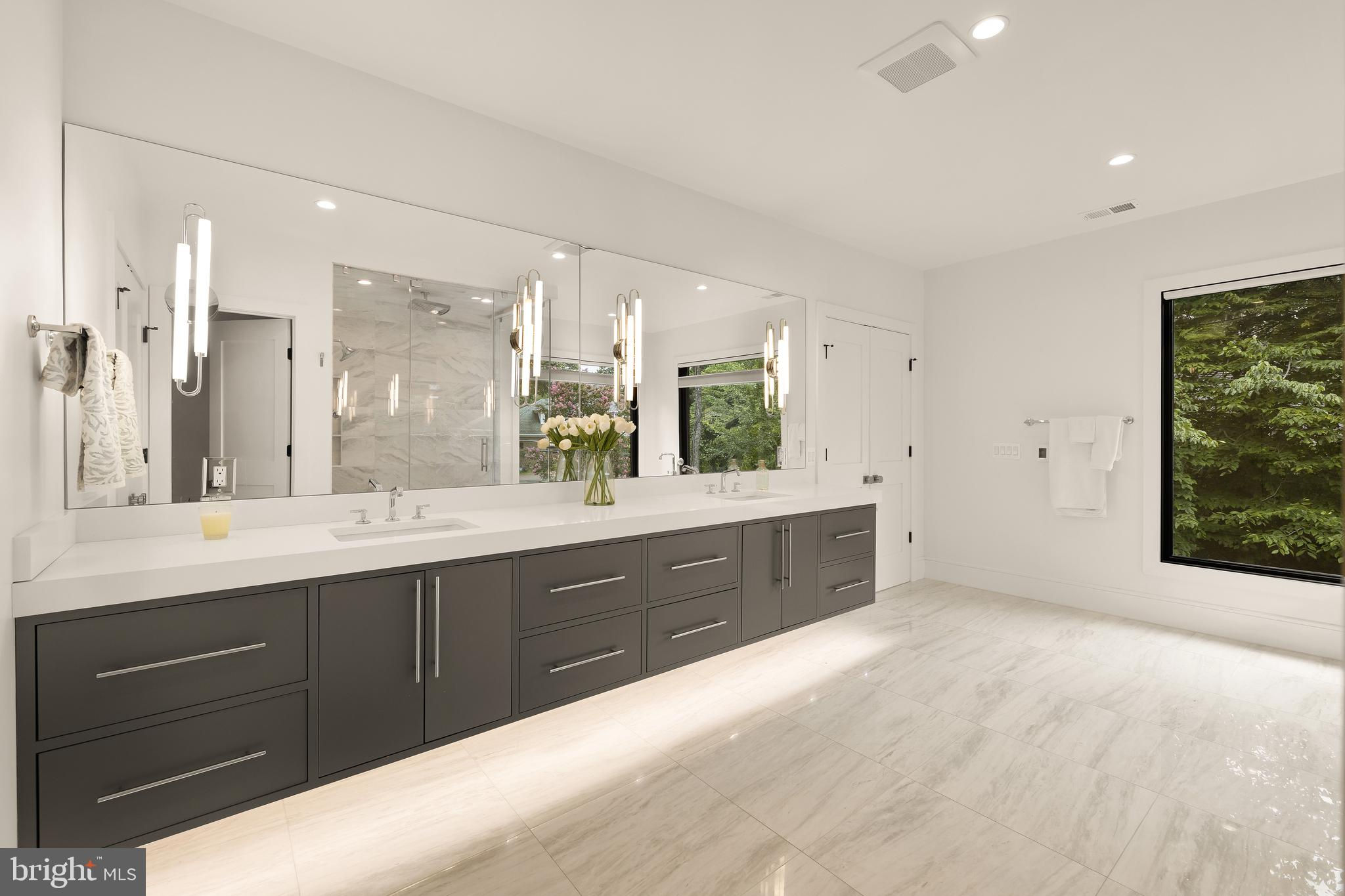 PRICE REDUCED—UNBELIEVABLE VALUE! 1216 Earnestine offers the chance to own a custom residence in a premium McLean location, completed in 2023 by acclaimed Morbill Homes—renowned locally for pairing premium craftsmanship with timeless, livable design. Meticulously maintained and thoughtfully enhanced, the home provides a truly move-in ready experience. Designed for both elegance and everyday comfort, this 8,000+ square foot property features five en-suite bedrooms, a study, exercise studio, recreation room, loft, bonus room, screened porch, covered balcony, whole-home surround sound, and a rare four-car garage with EV charging. Multiple spaces invite you to gather with family and friends or to relax and unwind among the fireplaces, integrated sound, and outdoor retreats. Set on nearly half an acre of wooded seclusion within the esteemed Churchill/Cooper/Langley school pyramid, this residence affords an unmatched blend of privacy and convenience. Enjoy walkable access to downtown McLean’s fine dining, boutique shopping, and the amenities of McLean Central Park, including its scenic trails, playgrounds, pickleball and tennis courts, and library. Moments from Tysons Corner, the Metro, and Washington, DC, the property offers a rare opportunity to experience tranquil living without compromising proximity to the region’s most dynamic destinations. The Morbill attention to detail and architectural integrity is evident throughout the home. Behind mahogany double doors framed in stone, wide-plank European oak floors, designer lighting, and six fireplaces establish a warm yet sophisticated atmosphere. The great room with double-sided fireplace flows into the chef’s Miele kitchen, complete with dual paneled dishwashers and sinks, six-burner range with griddle and pot filler, steam and convection ovens, and an oversized waterfall quartz island. Rustic beams, contrasting cabinetry, and sparkling accents create a refined but inviting setting. Multiple sliding doors open to the private yard and to a screened porch with fireplace and hardware for a swing. A butler’s pantry, walk in pantry and mud room with cubbies provide ample storage. The primary suite is an upper-level sanctuary featuring a vaulted ceiling, fireplace, beverage bar, dual walk-in closets, and spa bath with heated floors, sculptural soaking tub, and glass shower. A wraparound balcony and covered patio extends the suite into a serene outdoor escape among the treetops. Additional en suite bedrooms, a loft with fireplace and balcony, and a large laundry room complete the level. The walkout lower level is designed for entertaining and wellness, with a recreation room and linear fireplace, wet bar, glass-enclosed wine room, professional-grade exercise studio, and a flex room. A light filled private fifth bedroom with full bath on the lower level provides numerous opportunities for multigenerational living or guests. Additional highlights include dual Rinnai tankless water heaters, four-zone HVAC, and app-based smart home systems controlling lighting, climate, security, garage doors, surround sound and appliances. Outside, Hardiplank and stone exteriors pair with full-length casement windows, while mature trees surround a flat, private yard with ample room for a pool or sport court. Home and construction warranties extend through 2028 and 2033, and mounted TVs may convey. Move-in ready and designed with no detail spared, this residence truly balances luxury, practicality, and location in one exceptional offering.