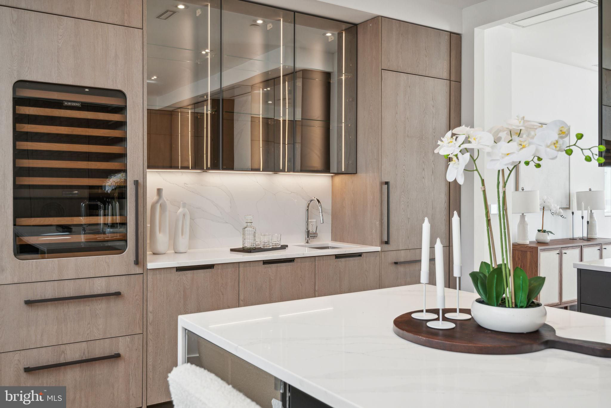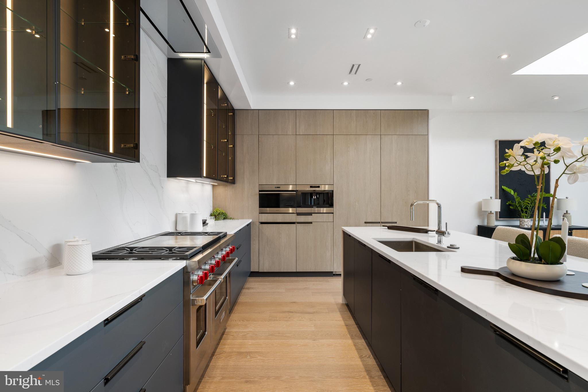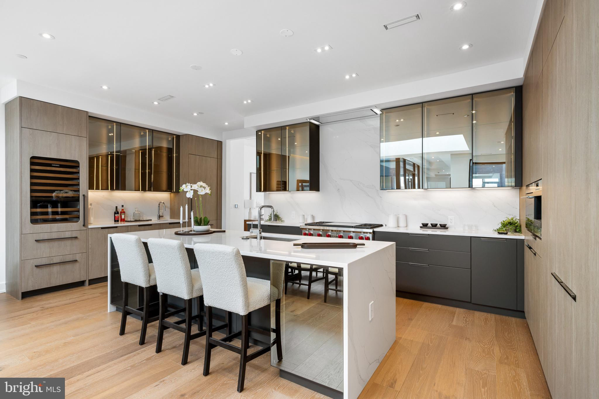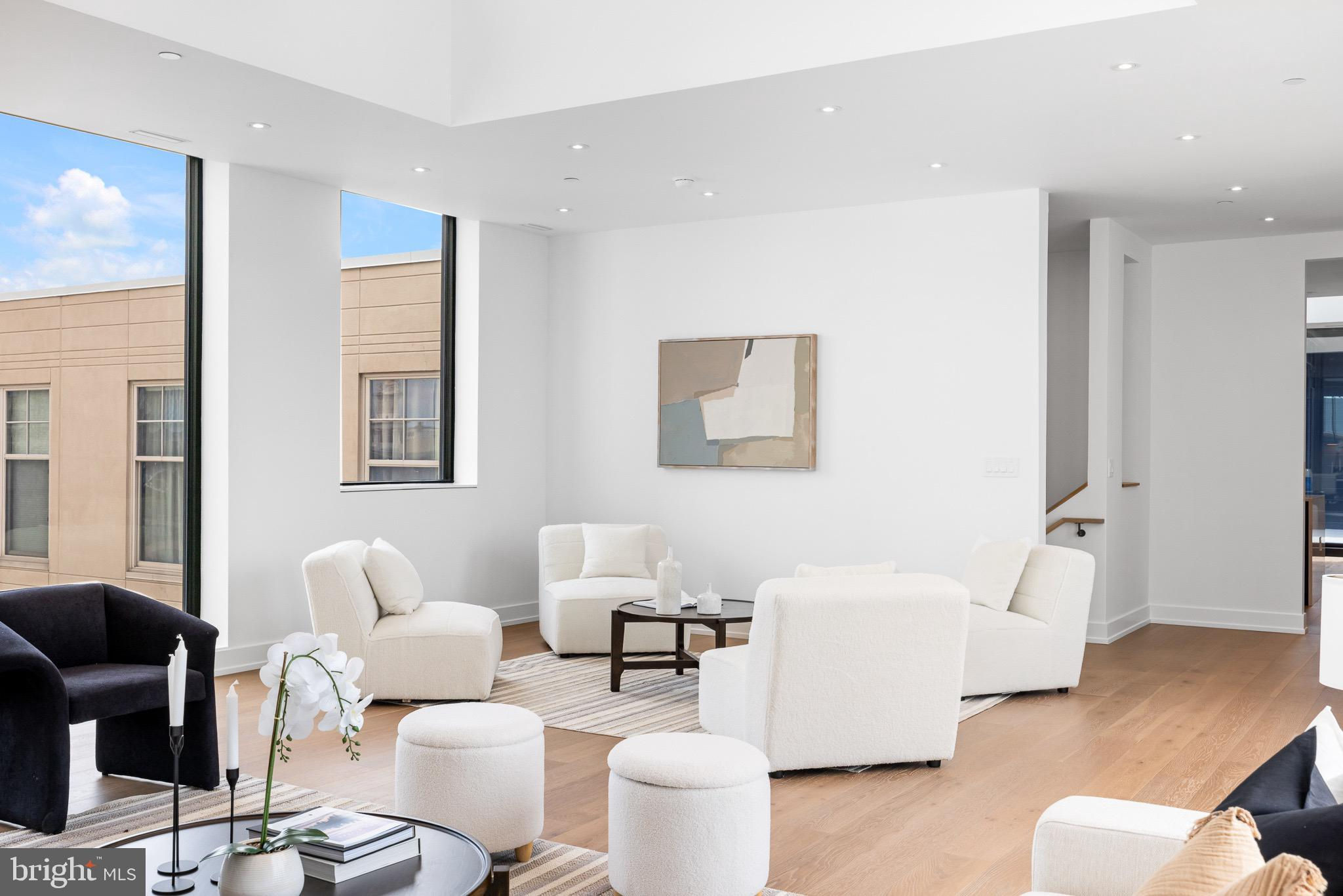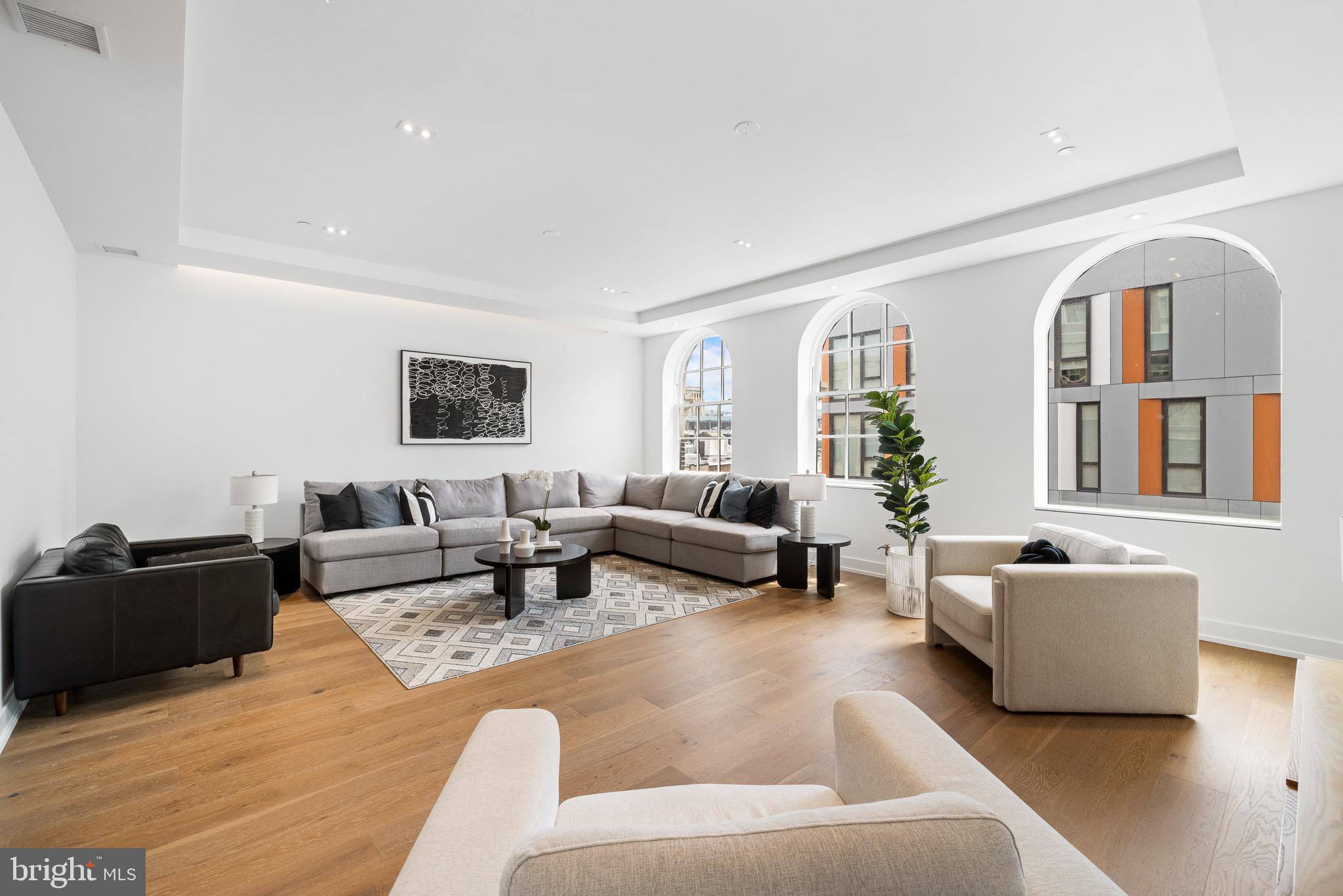 A rare opportunity to own one of Old City’s most coveted residences, this bi-level penthouse spans the entire fifth and sixth floors of an exclusive four-unit building. Set high above the cobblestone streets and historic charm of the neighborhood, this bespoke home is developed by Astoban Investments, renowned for their innovative design and exceptional craftsmanship. Combining architectural distinction, scale, and complete privacy, this penthouse represents an exceptional offering rarely available in Philadelphia’s elite market. Spanning 4,786 square feet across two floors accessible by private elevator, the penthouse is designed for entertaining and practical living. The lower level is thoughtfully arranged with four generously proportioned bedroom suites, each featuring its own ensuite bath and custom walk-in closet. A central lounge with built-in kitchenette creates an ideal space for guests or extended living. The primary suite is a sanctuary unto itself, featuring radiant heated floors, a custom steam shower, Scavolini vanities, and elegant fixtures by Fantini, Dornbracht, and Grohe. The walk-in closet is outfitted with floor-to-ceiling exposed built-ins and extensive hanging space, delivering exceptional functionality. Ascend to the upper level and discover a seamless blend of indoor-outdoor living. The chef’s kitchen, crafted in Italy by Scavolini, anchors the space with a striking 48” Wolf gas range, built-in coffee system, 30” Sub-Zero wine fridge, and bookmatched Calacatta stone countertops. A dramatic dining area with 15-foot ceilings opens onto an interior atrium, offering a tranquil open-air escape at the center of the home. Beyond, a nearly 700-square-foot private terrace provides the perfect backdrop for al fresco dining and cityscape views. At the opposite end, a glass-enclosed great room, also with soaring 15+ foot ceilings, offers a versatile retreat for a media lounge, library, or executive office, all bathed in natural light. Throughout the home, high-caliber finishes define every surface: wide-plank Austrian oak flooring, two-zone Daikin HVAC, Porcelanosa tilework, frameless glass showers, custom cabinetry, and integrated smart home systems including Nest keyless entry and ButterflyMX video intercom. One garage parking space is included with the option to purchase a second, and a full 10-year tax abatement adds long-term value. The original 1920s façade complements the character of the neighborhood, while the interior is newly built - a seamless fusion of historic charm and contemporary design. Ideally situated just five minutes from I-95, with New York City under 90 minutes away. The highly anticipated transformative I-95 capping project, currently underway, will soon deliver landscaped parks, expanded green space, and a vibrant riverfront promenade that redefines Old City’s connection to the waterfront. For the discerning buyer seeking exclusivity, scale, and sophisticated design, this is a rare opportunity to own a private custom-designed penthouse in one of Philadelphia’s most historically rich and dynamically evolving neighborhoods.