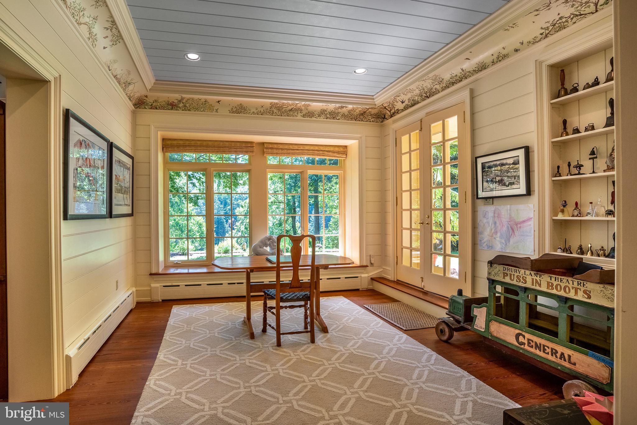 A truly rare offering in the heart of Birchrunville—this extraordinary private estate combines timeless elegance, master craftsmanship, and serene natural beauty. Designed by acclaimed architect John Milner, this custom Chester County farmhouse is sited on over 30 acres of verdant grounds, offering the utmost privacy and refinement. Constructed to the highest standards, the home features fine stonework and distinctive touches such as intricate mahogany cornices and standing seam copper roofing. Inside, every detail has been thoughtfully curated: full plaster walls, bespoke millwork, and an exquisite blend of flooring materials including pegged walnut, 100-year-old long leaf yellow pine, herringbone brick, and imported tile. Every room was carefully designed to enjoy the southern exposure and idyllic views overlooking the Birchrun stream, a tranquil pond, open meadow, and partial woods with a variety of nature and landscape. The residence offers 4 Bedrooms, all with en suite baths. The elegant primary suite features a separate dressing room and private access to an upstairs bonus room. Five fireplaces enhance the home’s living areas—including the living room, dining room, family room, primary suite, and guest suite. The mudroom offers a convenient wash basin for boots (or dogs!). A detached, four-car garage adds convenience and utility. Beyond the main residence, the estate features a fully restored 18th-century bank barn with an additional four-car garage wing—perfect for a car collection, event space, or studio. This property is enrolled in Act 319 for favorable tax treatment, without any deed restrictions. A rare masterpiece blending together quality, privacy, and possibility - it is ideal for the discerning buyer seeking timeless beauty in a coveted Birchrunville setting.