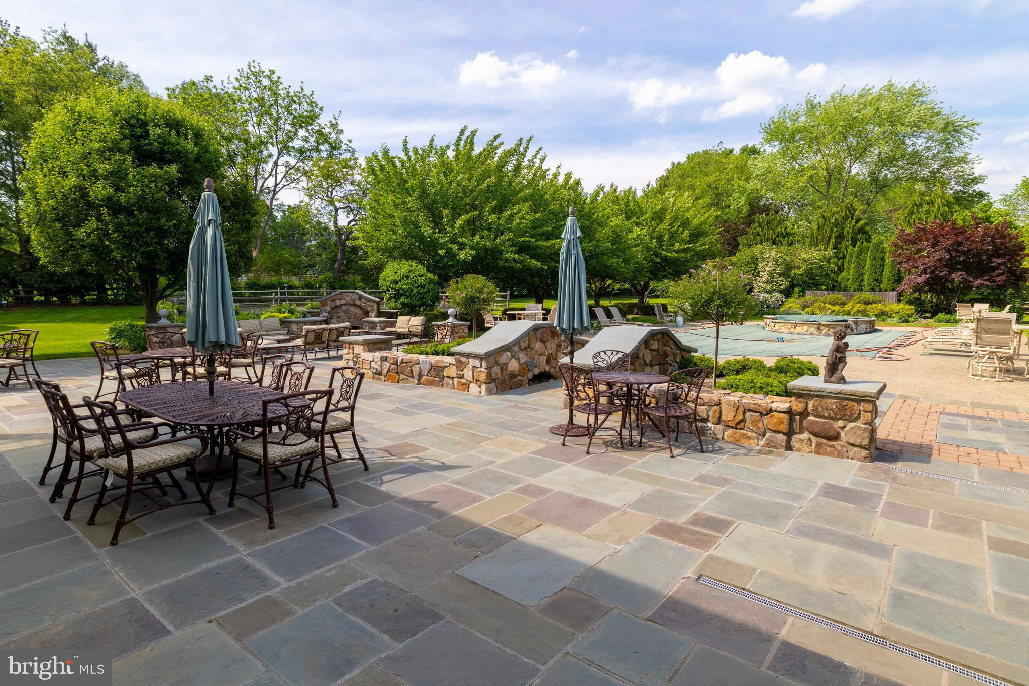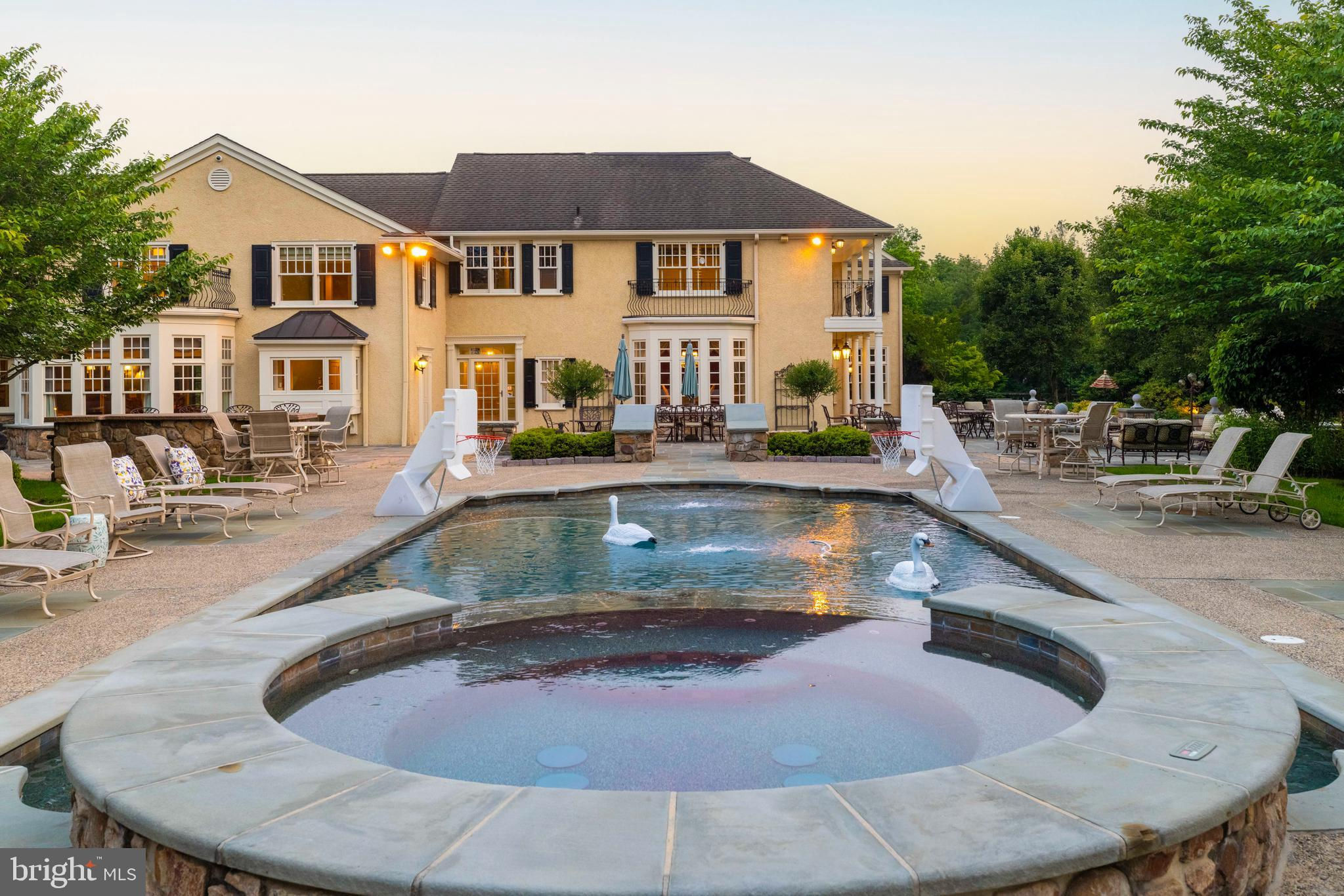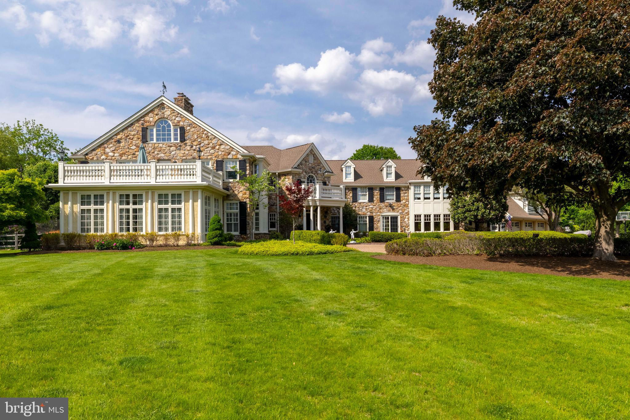 Timing is everything—and this is your moment. Nestled in one of Blue Bell’s most prestigious and convenient locations, this extraordinary estate offers a rare blend of luxury, privacy, and architectural distinction. Set behind a gated entrance, a long private drive winds past a fountained lily pond and curated specimen plantings designed to bloom in sequence, offering vibrant color and texture throughout the year. Originally a charming 3,000 sq ft stone farmhouse, the residence has been meticulously expanded with a 5,500 sq ft custom addition by a design-build team, thoughtfully conceived for both graceful living and effortless entertaining. Step into a world of refined comfort where a grand living room/great room anchors the home with 9’ ceilings and natural light, complemented by a conservatory-style sunroom that brings the outdoors in year-round. The heart of the home is a gourmet kitchen featuring premium cabinetry, high-end appliances, and a seamless connection to a formal dining room complete with a service area for hosting ease as well as an inviting library/den. A handsome home office with built-in cabinetry offers a quiet retreat for work or study, while an elevator discreetly services the first and second floors, ensuring accessibility for all. The home features six spacious bedrooms—two with private ensuites and two connected by a Jack and Jill bath—as well as six fireplaces that grace the great room, kitchen, office, library, and select bedrooms, each adding character and warmth. Upstairs includes a den/study area, plus two climate-controlled cedar closets ideal for wardrobe storage. Radiant heated floors throughout, six HVAC zones, and a full-property generator ensure comfort and peace of mind in every season. The finished lower level includes 2000 sq ft of finished space including a recreation room, game room and a media room for endless entertainment. The exterior is truly a sanctuary, with oversized windows and balconies capturing panoramic views of the breathtaking grounds. Enjoy an inground saltwater pool and spa surrounded by an expansive bluestone patio—perfect for alfresco entertaining. A breezeway connects the main house to the garage, and the estate also includes a gentleman’s barn, an organic garden, and a designated play area to delight all ages. Ideally located with quick access to the Blue Route (I-476), Route 76, and the PA Turnpike, this property offers unmatched convenience to Center City, the Main Line, Doylestown, Philadelphia International Airport, Wings Field, King of Prussia, local shopping districts, and some of the region’s finest public and private schools. This is more than a home—it’s a legacy property built for generations to enjoy. Don’t miss the opportunity to make this exceptional estate your own. Please note: There are 2 videos posted. The second is longer and includes the interior.