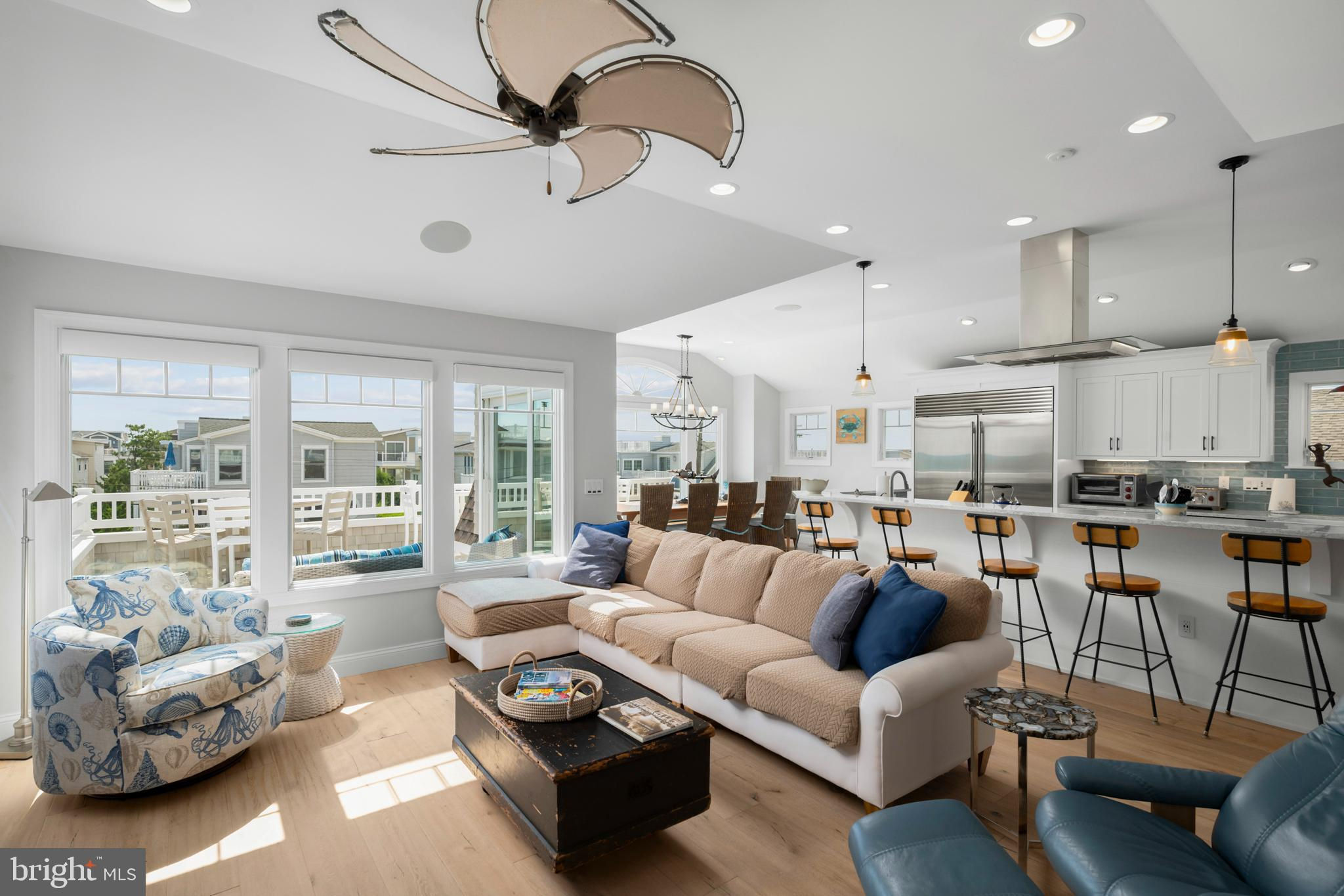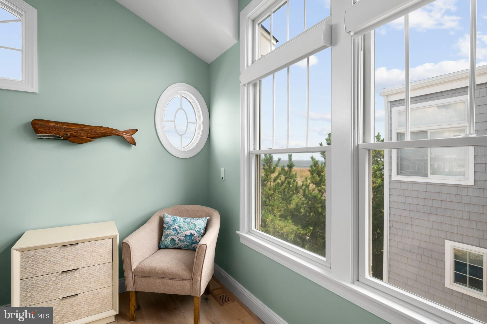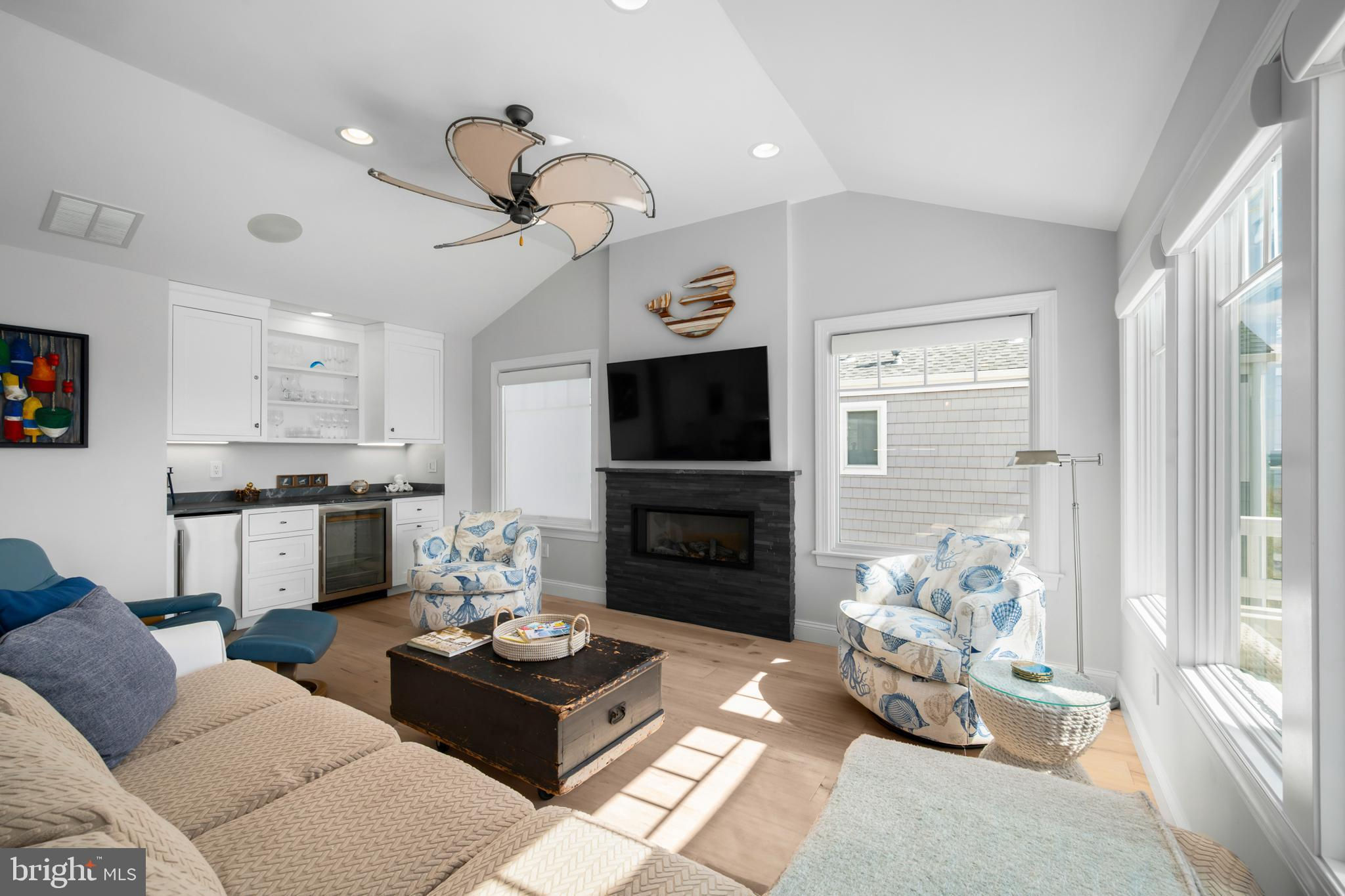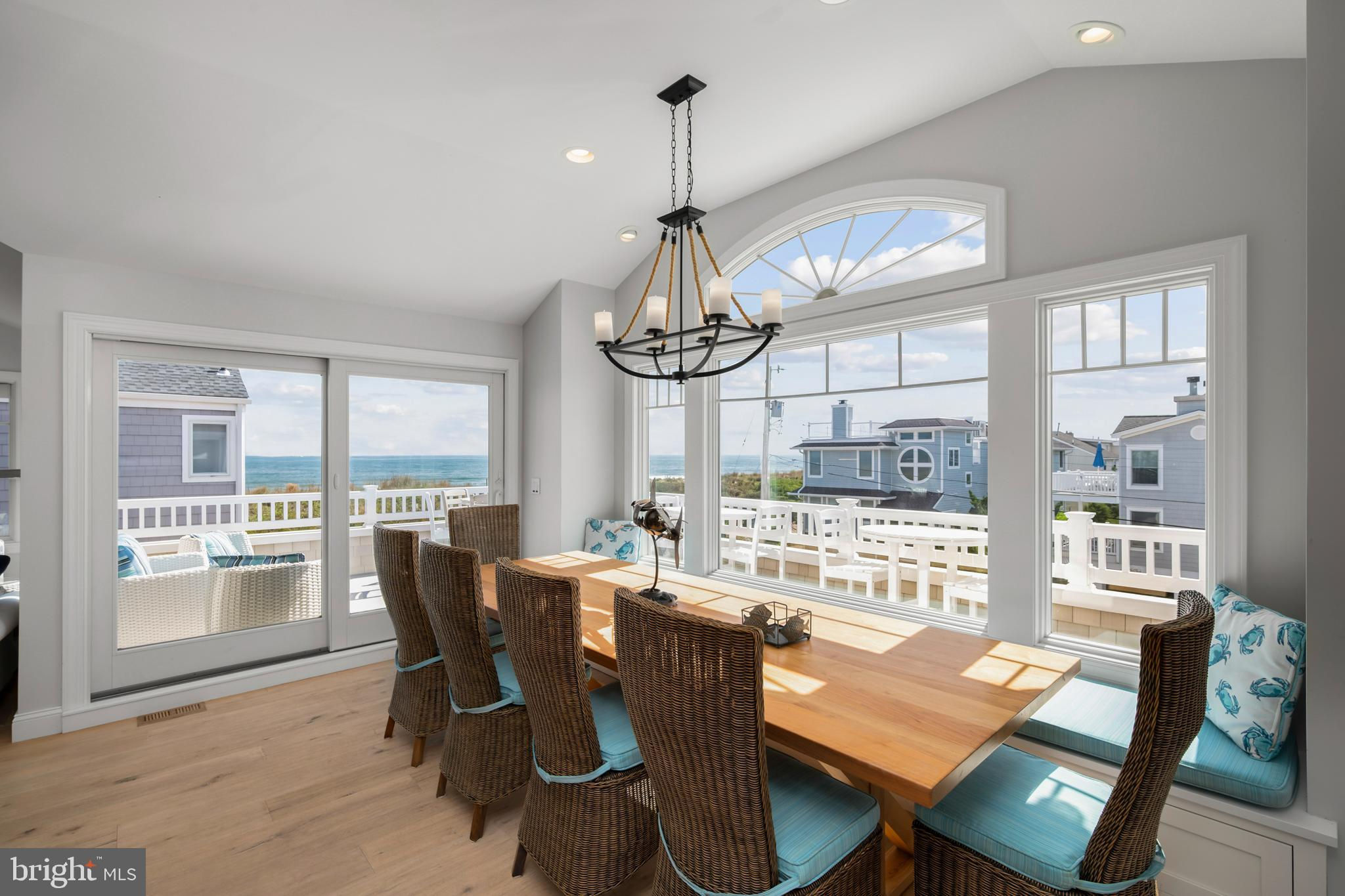 Absolutely superior ocean views come easy from this second from the ocean coastal shingle style home that is a viable alternative to purchasing oceanfront! Desirably located “in town” with an easy stroll on the newly created sidewalks to restaurants, shops and markets - you literally don't need to use a car once you arrive. In addition to being on a lifeguarded ocean beach, the yacht club and bay bathing beach are within one block. 4 bedrooms; 3 full baths with heated floors and double vanities; 2 half baths; den; elevator shaft; two master suites, one with walk in shower and walk in closet the other with walk in shower, soaking tub, and toilet closet; one guest bedroom with its own outdoor shower, private balcony, and in-room sink; one guest bunk room with custom made built-ins. The Chef's kitchen is highlighted by a huge center island with seating for nine, two Subzero refrigerators, two Miele dishwashers, two sinks with disposals, Wolf gas cooktop, microwave, and wall oven. The large brick driveway can accommodate five cars and is located east of the no parking line preventing parking in front of your house and oversized one car garage with Level 2 EV charger. Other prominent features include great room with linear gas fireplace, bar with wine refrigeration, ice maker, vaulted ceiling, large wrap around deck and fantastic ocean views; large covered deck on lower level; easy access roof top deck with sweeping ocean views; Castle Combe oiled wood flooring throughout; dining area with banquette seating; two laundries; exercise nook; ceiling fans in all rooms; Sonos sound system; Nu Cedar siding; and so much more! The fun filled outdoor program includes and in-ground heated salt-water pool with huge patio, 3 outdoor showers including the surfboard beach rinse off, putting green, ping pong, room for privacy plantings, and firepit. This one checks all the boxes!