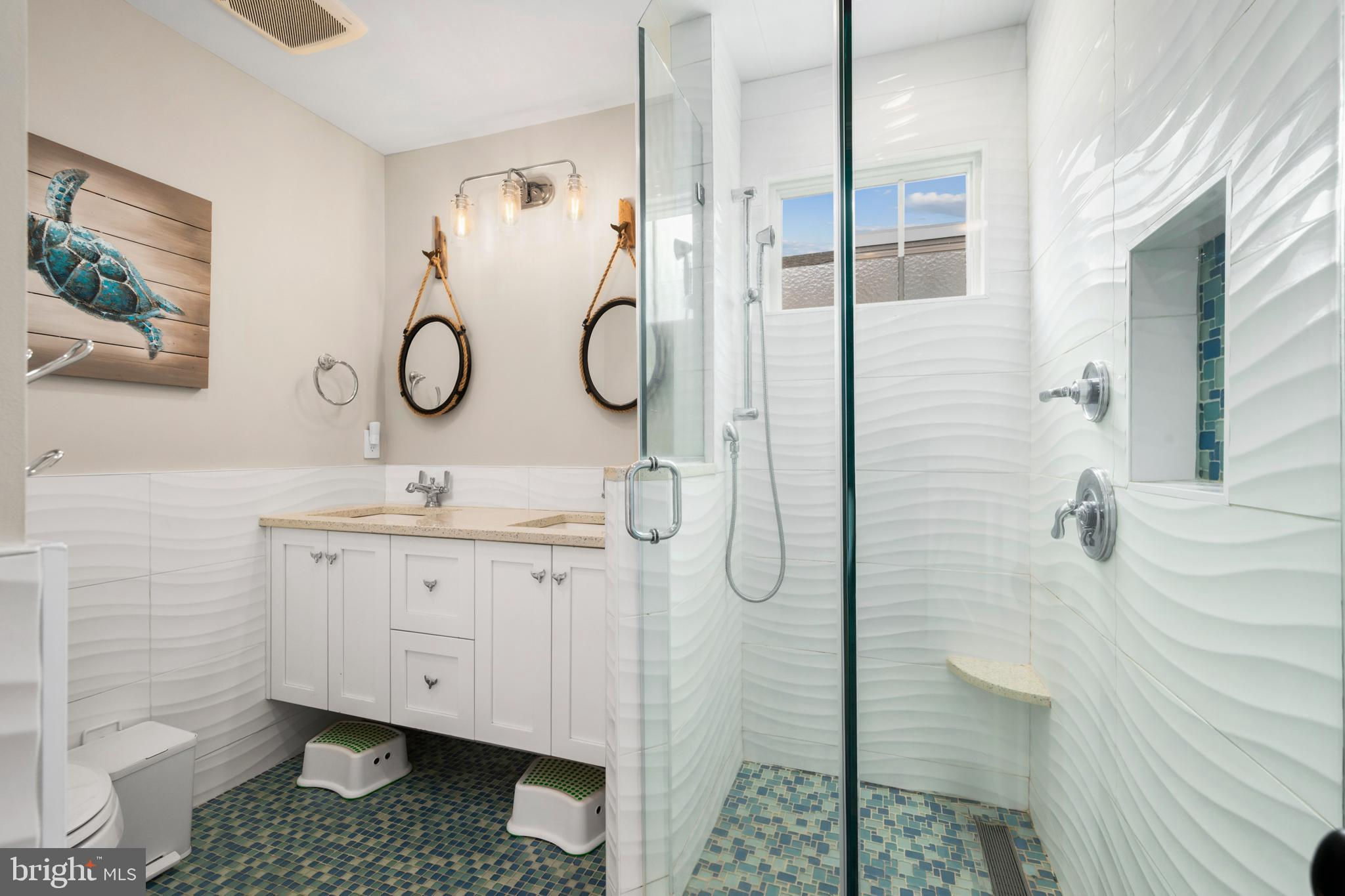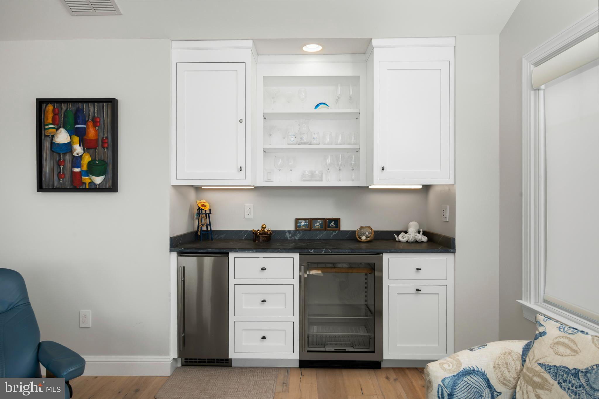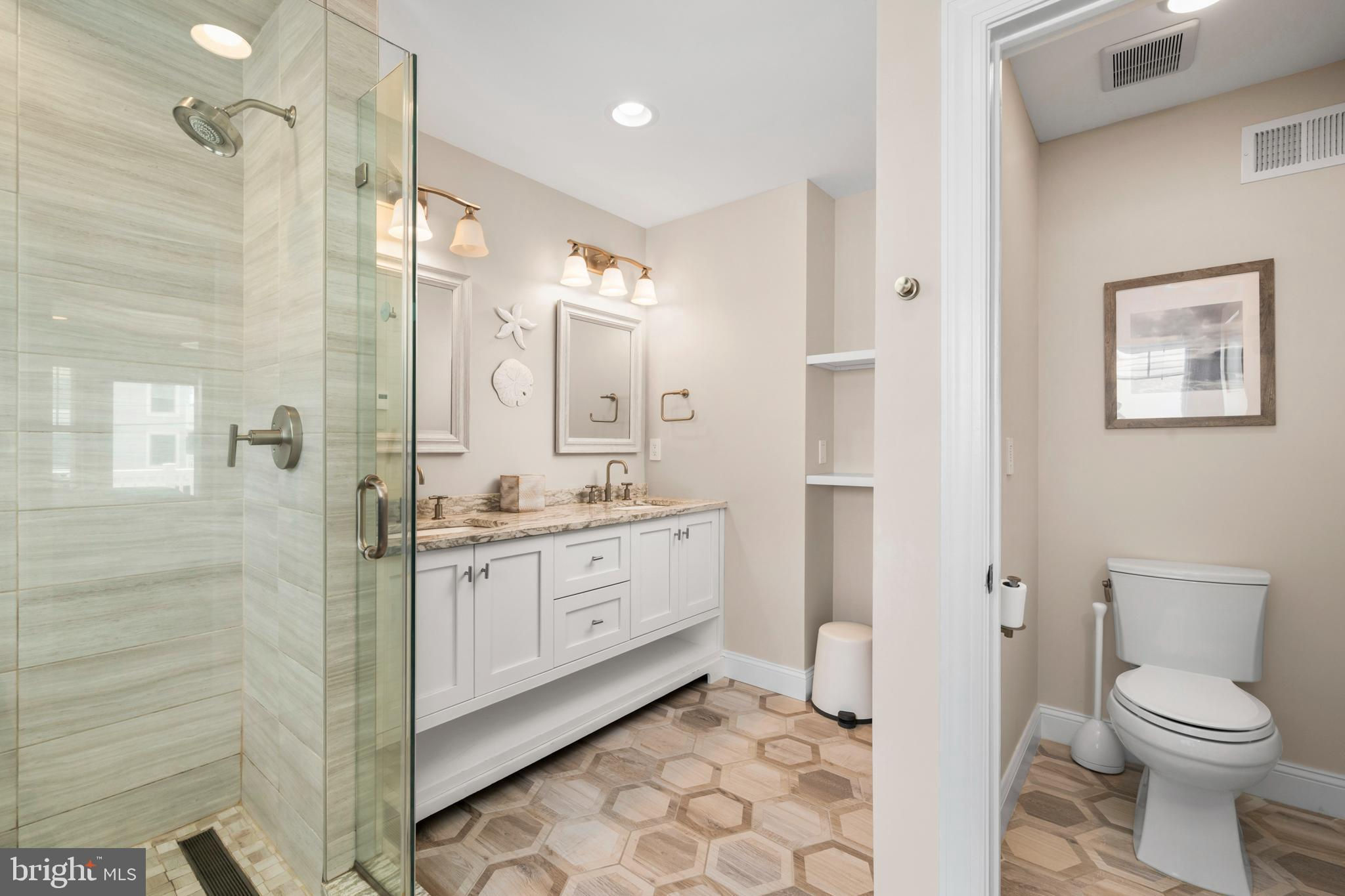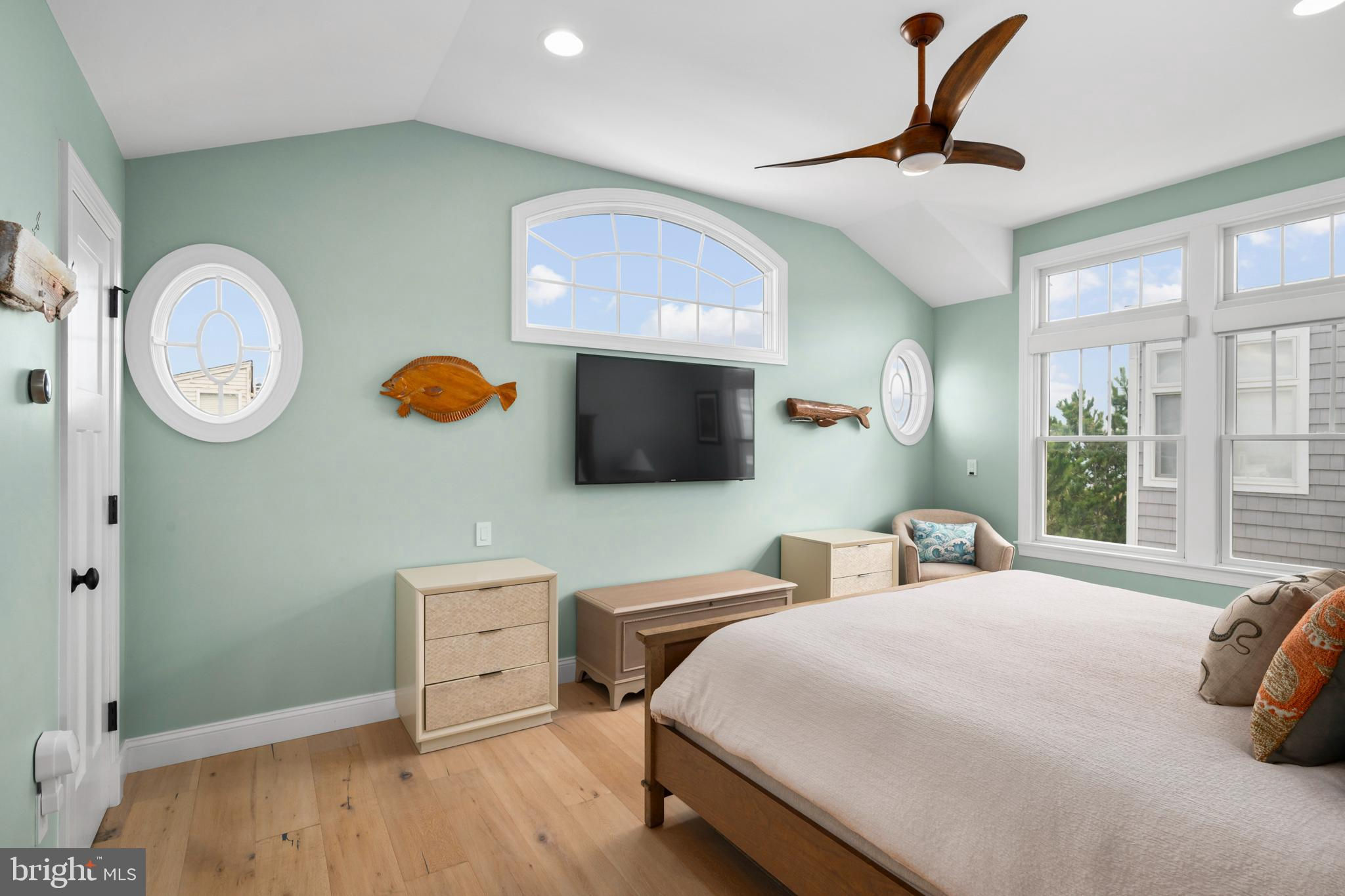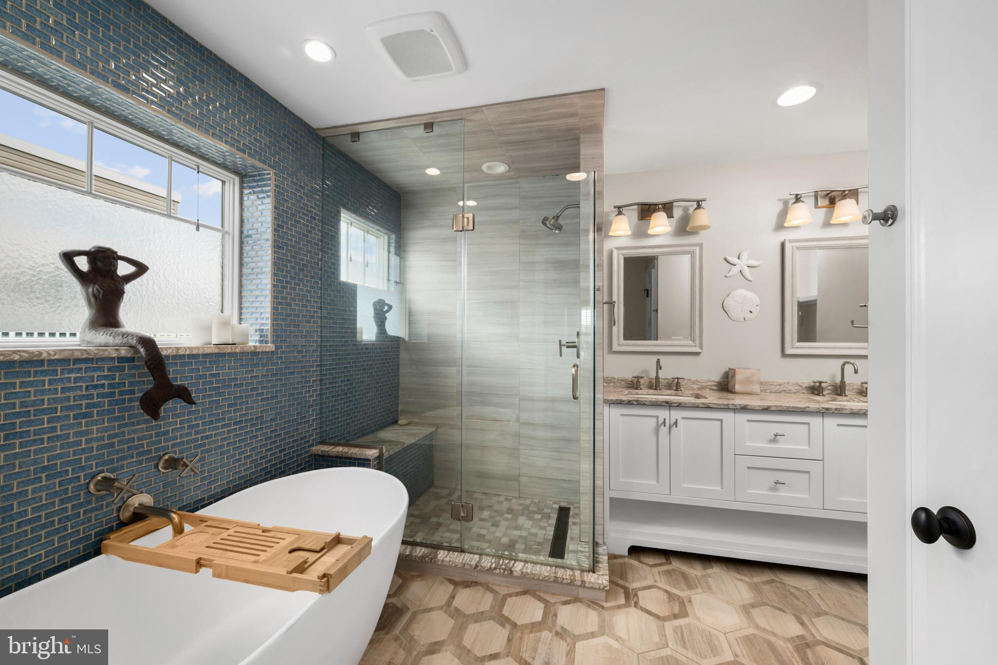 Absolutely superior ocean views come easy from this second from the ocean coastal shingle style home that is a viable alternative to purchasing oceanfront! Desirably located “in town” with an easy stroll on the newly created sidewalks to restaurants, shops and markets - you literally don't need to use a car once you arrive. In addition to being on a lifeguarded ocean beach, the yacht club and bay bathing beach are within one block. 4 bedrooms; 3 full baths with heated floors and double vanities; 2 half baths; den; elevator shaft; two master suites, one with walk in shower and walk in closet the other with walk in shower, soaking tub, and toilet closet; one guest bedroom with its own outdoor shower, private balcony, and in-room sink; one guest bunk room with custom made built-ins. The Chef's kitchen is highlighted by a huge center island with seating for nine, two Subzero refrigerators, two Miele dishwashers, two sinks with disposals, Wolf gas cooktop, microwave, and wall oven. The large brick driveway can accommodate five cars and is located east of the no parking line preventing parking in front of your house and oversized one car garage with Level 2 EV charger. Other prominent features include great room with linear gas fireplace, bar with wine refrigeration, ice maker, vaulted ceiling, large wrap around deck and fantastic ocean views; large covered deck on lower level; easy access roof top deck with sweeping ocean views; Castle Combe oiled wood flooring throughout; dining area with banquette seating; two laundries; exercise nook; ceiling fans in all rooms; Sonos sound system; Nu Cedar siding; and so much more! The fun filled outdoor program includes and in-ground heated salt-water pool with huge patio, 3 outdoor showers including the surfboard beach rinse off, putting green, ping pong, room for privacy plantings, and firepit. This one checks all the boxes!