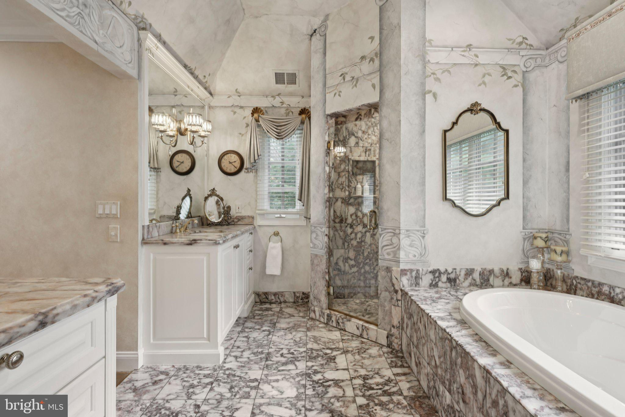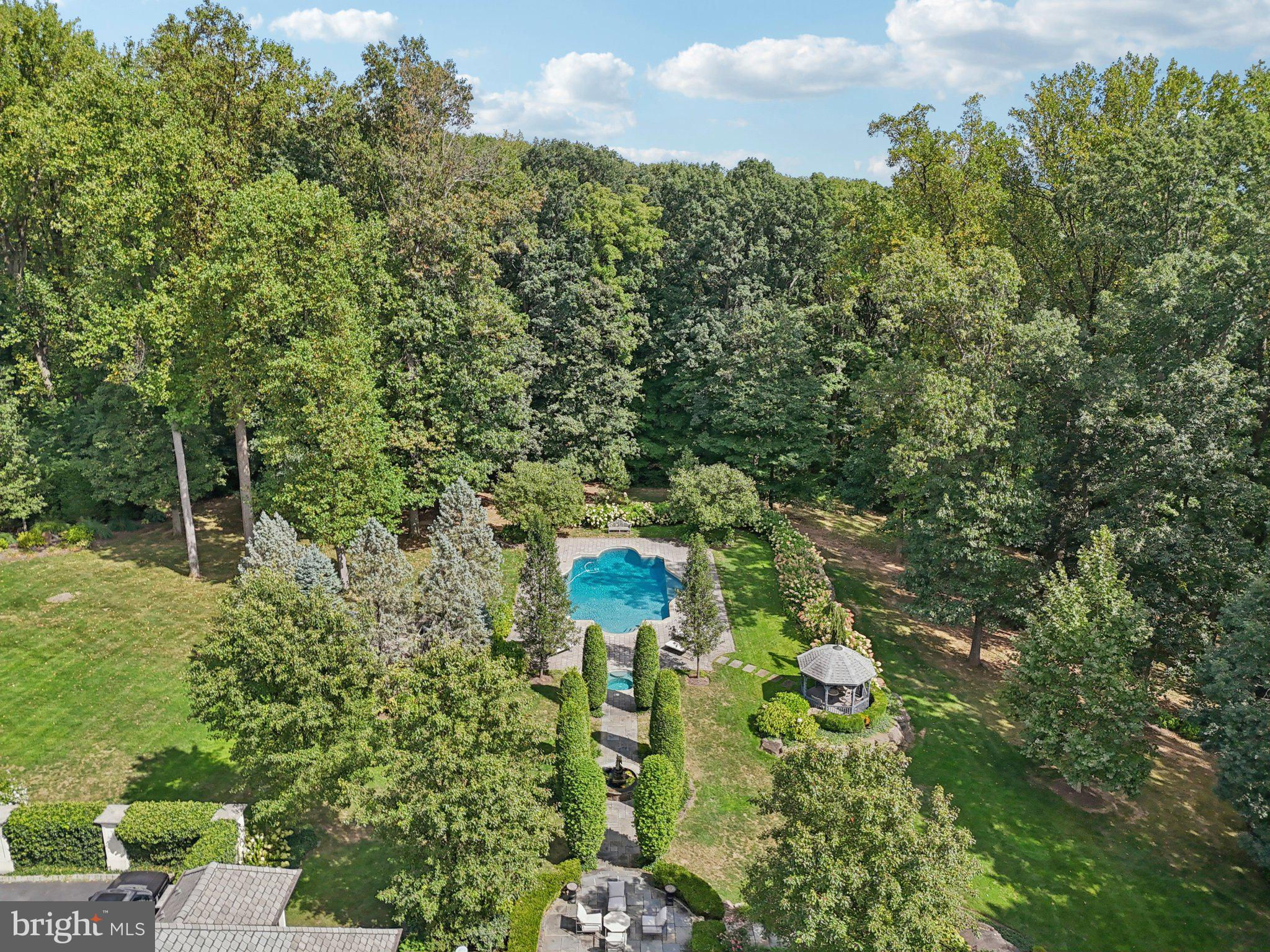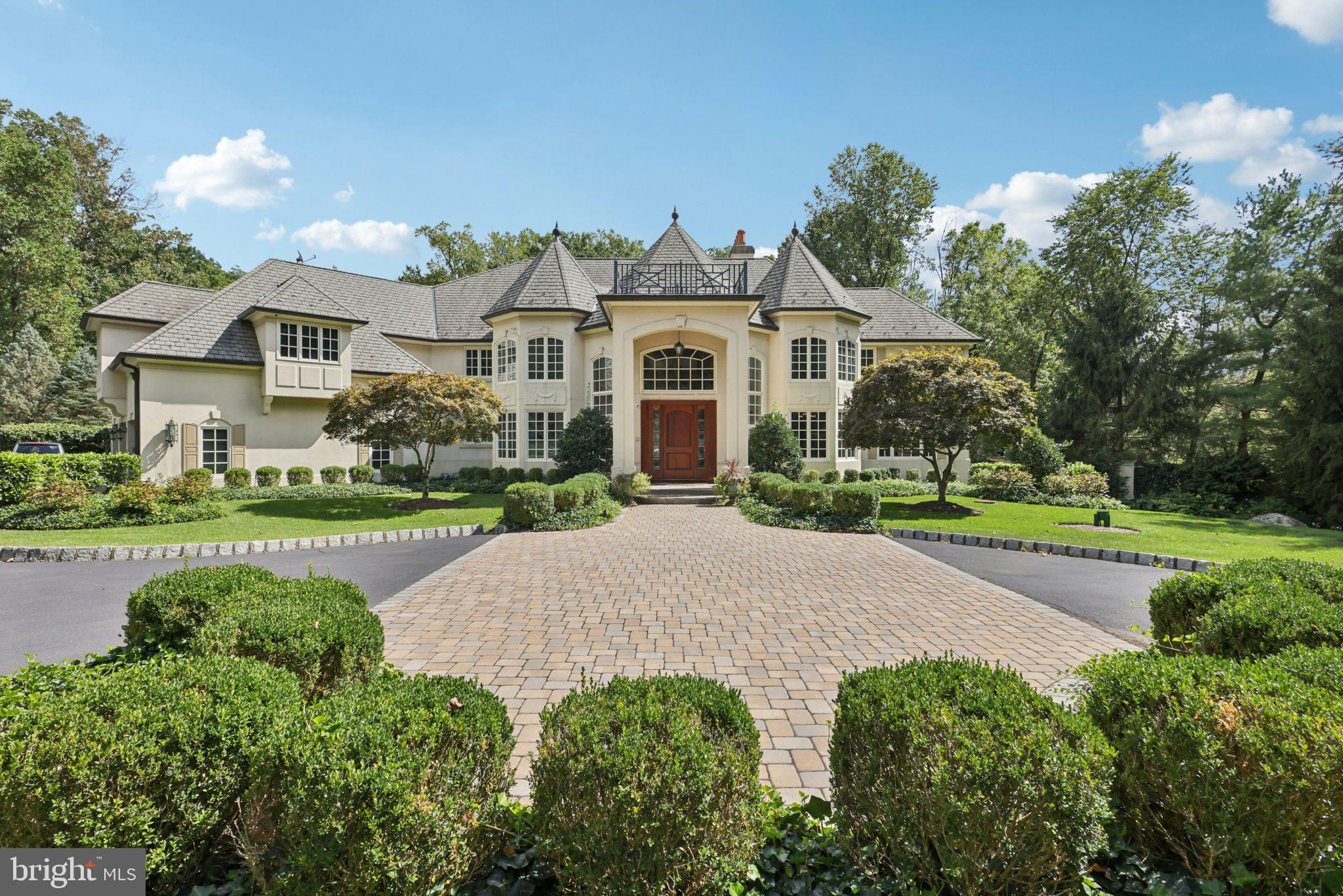 A Landmark Estate in Princeton: Set on 4.5 pristine acres bordering 100 acres of preserved woodland, 13 Hageman Road is a French Normandy–style masterpiece. Gated, landscaped, and timelessly designed, it offers private resort-style living with terraces, gardens, and a stunning pool retreat in one of Princeton’s most sought-after neighborhoods. Beyond a gated entrance, a circular Belgian block-lined driveway introduces the home, gracefully leading to the stately front façade and a side-entry three-car garage. Inside, the dramatic two-story foyer unfolds with soaring ceilings and a sweeping curved staircase. From here, the eye is drawn straight through to the magnificent two-story great room, where a wall of bay windows frames panoramic views of the stunning grounds. Throughout the home, refined details abound—gleaming hardwood floors, intricate mouldings, custom window treatments, and hand-selected light fixtures elevate every space. The formal living room, flooded with natural light from three exposures, offers an ideal setting for a grand piano or intimate conversation. Across the foyer, the dining room stands elegantly behind architectural columns, perfectly suited for gatherings both formal and relaxed. A richly panelled mahogany library—complete with gas fireplace, French doors, and a balcony—sets the stage for work, reading, or quiet reflection. At the heart of the home, the chef’s kitchen combines beauty and function with a Viking Tuscany series six-burner gas range, SubZero refrigerator, Miele dishwasher, and expansive granite island with seating. French doors open to the bluestone patio, seamlessly extending the living space outdoors. Upstairs, the primary suite is a sanctuary, entered through double doors to reveal a fireplace, private balcony, dual walk-in closets, a sitting room, and a sumptuous marble bath with jetted tub and separate shower. Three additional en suite bedrooms and a spacious, recently remodelled study—complete with built-ins and balcony access—offer comfort and versatility. The finished lower level, just 8 years young, was designed with entertaining and relaxation in mind. At its heart is a mahogany bar with stained-glass accents, a tin ceiling, and full appointments similar to the Waldorf Astoria —including a sink, ice maker, dishwasher and beverage fridge. Just beyond, the adjoining game room offers plenty of space for recreation and outside access to the professionally landscaped patio area. A media room with a raised-hearth stone fireplace, built-in bookcases, and a full wall of windows overlooking the patio and backyard provides an elegant yet comfortable setting for gatherings. A well-equipped gym and a gorgeous full bath complete this level, ensuring it is as functional as it is inviting. Outdoors, the property is a natural masterpiece by Princeton Land Design. Expansive bluestone patios, a gazebo, fountain, and an in-ground pool with separate spa are thoughtfully integrated into a landscape defined by massive boulders, mature trees, and manicured lawns. Backing to Woodfield Preserve, the grounds offer both serenity and privacy, with a fully deer-fenced yard creating the feel of your own secluded retreat. 13 Hageman Lane is a statement of timeless elegance and modern luxury in one of Princeton’s most beautiful settings, close to some of the area’s finest private schools and a short drive to downtown Princeton and the University.