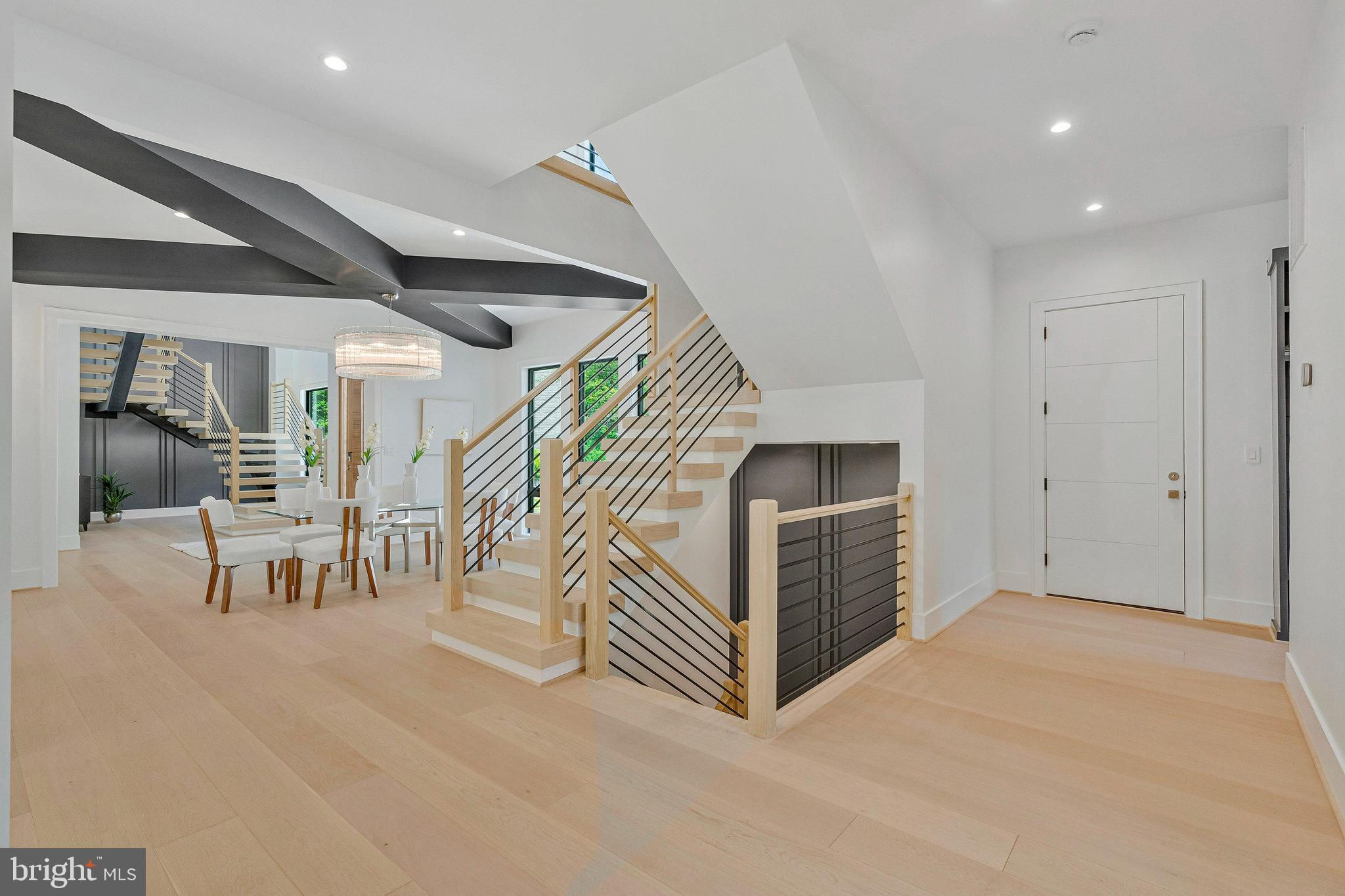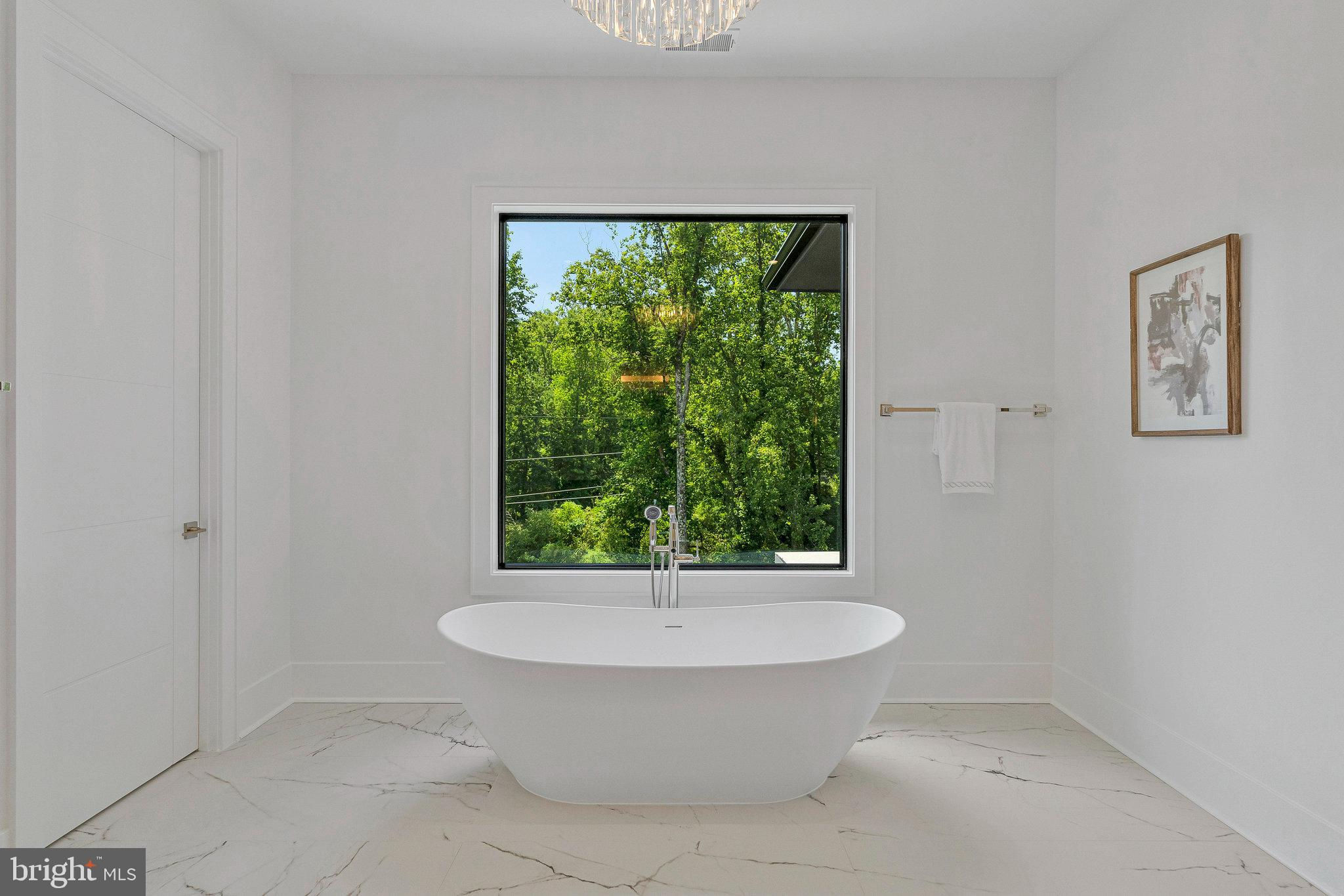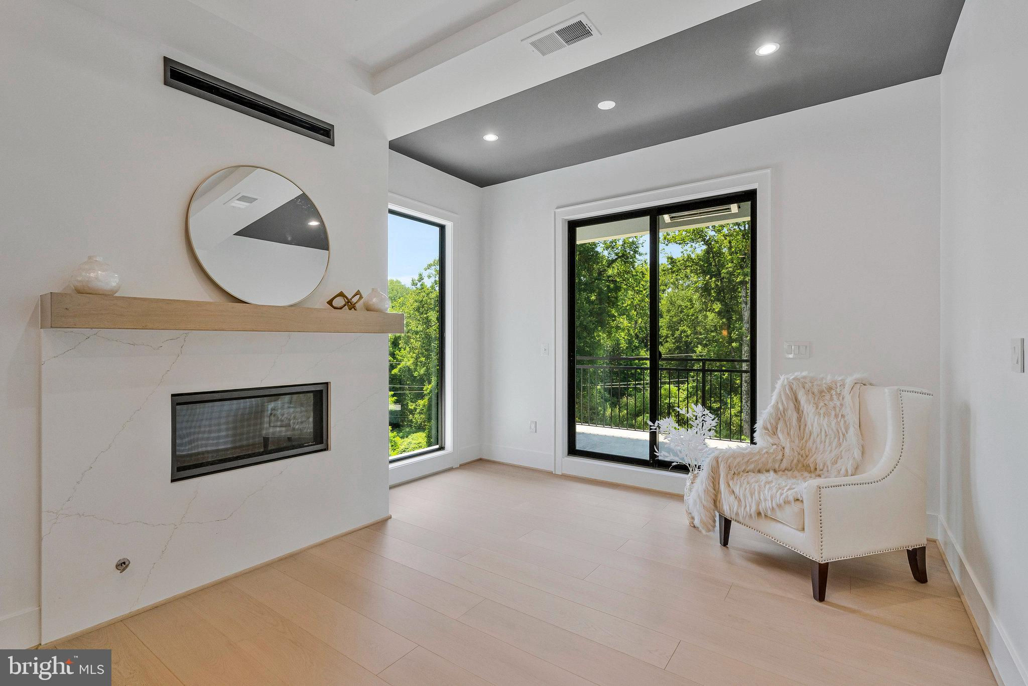 Modern Elegance Meets Resort-Style Living in the Heart of McLean Nestled on a rare, flat 31,533 sq ft lot in a quiet McLean enclave, this architecturally striking residence blends modern design with resort-style amenities. The expansive, level grounds are ideal for a future pool or a game of soccer, easily watched from the comfort of the screened porch—perfect for family living and entertaining. Backing to a tranquil creek and lush wooded views, the property offers exceptional privacy and a serene natural setting. A sleek stucco façade, expansive glass windows and doors, and a spacious three-car garage create impressive curb appeal. Inside, soaring 10-foot ceilings on all levels enhance the home’s open, airy atmosphere. Luxurious finishes include 10-inch wide pre finished oak hardwood floors, solid 8-foot modern doors, and exotic designer lighting throughout. The open-concept layout flows seamlessly into a dramatic family room featuring a floor-to-ceiling linear gas fireplace, and a large screened porch with metal-framed screens and a gas fireplace—ideal for year-round entertaining. The primary suite is a private sanctuary, complete with its own gas fireplace, a Juliet balcony, and a secluded terrace overlooking the scenic backyard. Whether you're sipping morning tea or enjoying a quiet evening read, the peaceful natural surroundings are always in view. The ensuite bathroom is a modern masterpiece, featuring heated floors, elegant finishes, and spa-like comfort. Each additional bedroom on the upper level is ensuite, offering exceptional privacy and comfort for family or guests. Every room includes custom walk-in closets, marble-topped vanities, and beautifully tiled bathrooms that reflect timeless elegance and quality craftsmanship. The fully finished, walk-out lower level continues the home’s luxurious feel with high ceilings, large windows, and abundant natural light. At the center is an expansive recreation room with a custom wet bar, rich wood paneling, ambient lighting, and a cozy stone fireplace. A state-of-the-art media room with tiered seating provides a true cinematic experience, while a dedicated exercise room with access to a full bath offers flexibility for workouts or guest accommodations. Located just minutes from downtown McLean, top-rated schools, premier shopping, dining, and major commuter routes, this residence offers a rare combination of luxury, livability, and convenience.