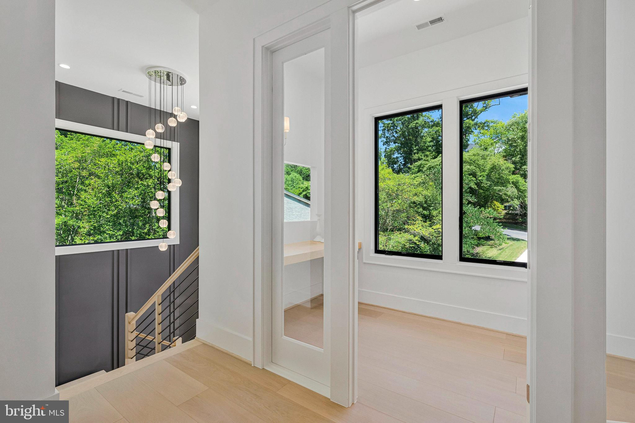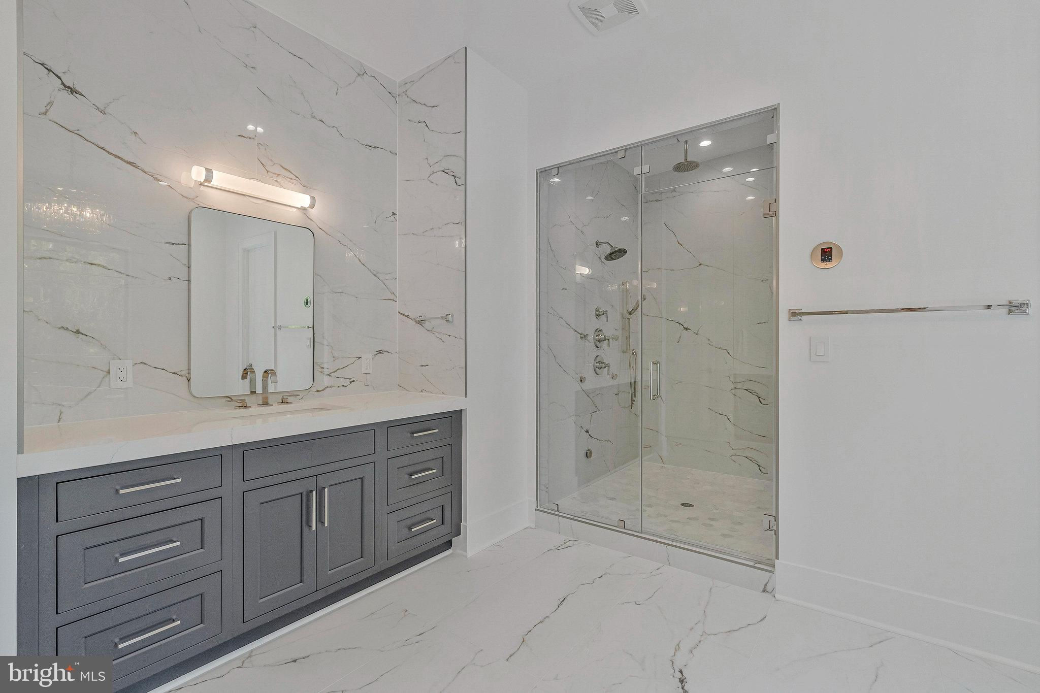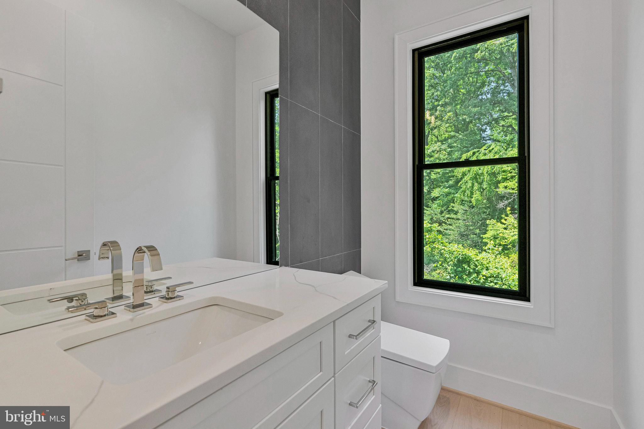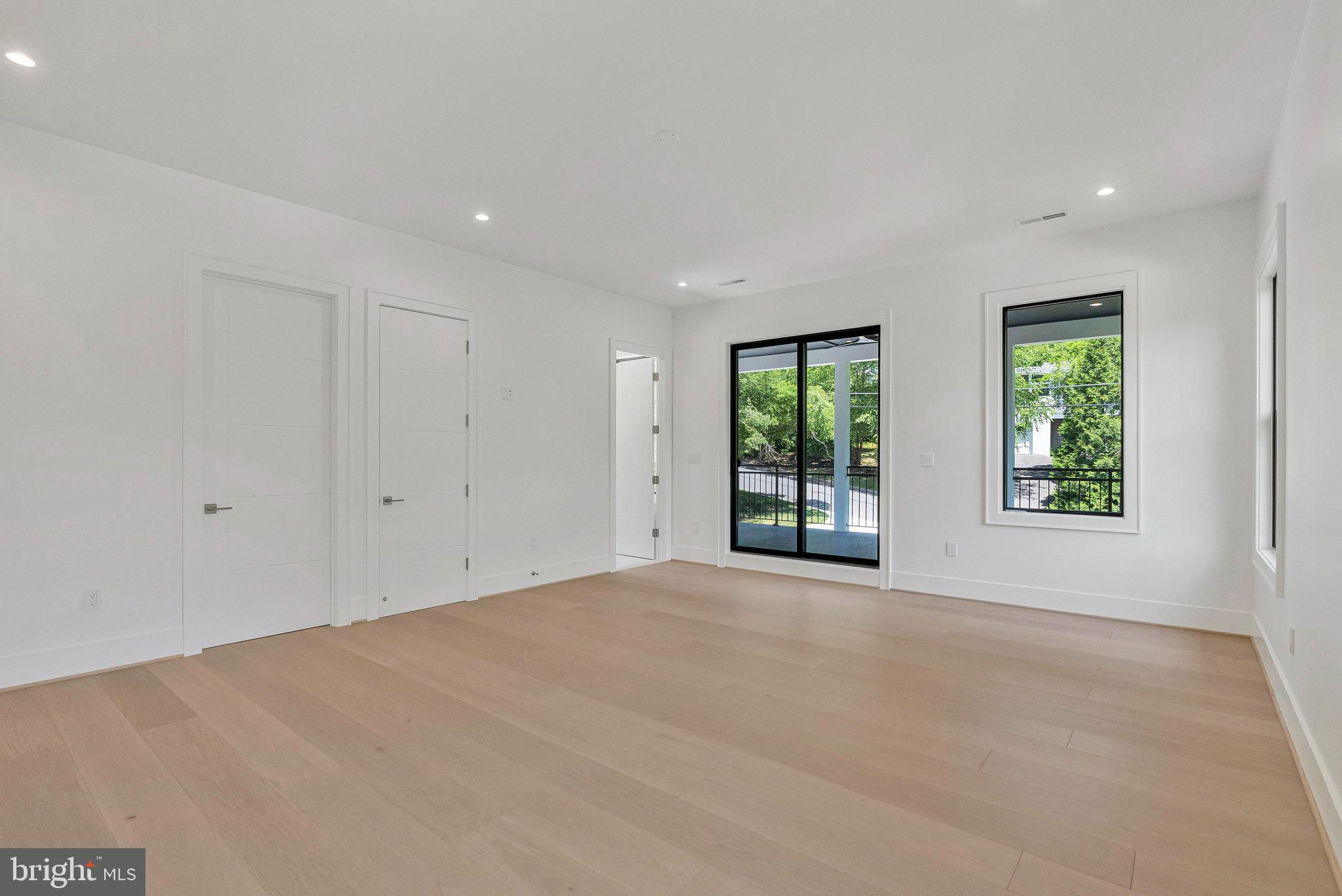 Modern Elegance Meets Resort-Style Living in the Heart of McLean Nestled on a rare, flat 31,533 sq ft lot in a quiet McLean enclave, this architecturally striking residence blends modern design with resort-style amenities. The expansive, level grounds are ideal for a future pool or a game of soccer, easily watched from the comfort of the screened porch—perfect for family living and entertaining. Backing to a tranquil creek and lush wooded views, the property offers exceptional privacy and a serene natural setting. A sleek stucco façade, expansive glass windows and doors, and a spacious three-car garage create impressive curb appeal. Inside, soaring 10-foot ceilings on all levels enhance the home’s open, airy atmosphere. Luxurious finishes include 10-inch wide pre finished oak hardwood floors, solid 8-foot modern doors, and exotic designer lighting throughout. The open-concept layout flows seamlessly into a dramatic family room featuring a floor-to-ceiling linear gas fireplace, and a large screened porch with metal-framed screens and a gas fireplace—ideal for year-round entertaining. The primary suite is a private sanctuary, complete with its own gas fireplace, a Juliet balcony, and a secluded terrace overlooking the scenic backyard. Whether you're sipping morning tea or enjoying a quiet evening read, the peaceful natural surroundings are always in view. The ensuite bathroom is a modern masterpiece, featuring heated floors, elegant finishes, and spa-like comfort. Each additional bedroom on the upper level is ensuite, offering exceptional privacy and comfort for family or guests. Every room includes custom walk-in closets, marble-topped vanities, and beautifully tiled bathrooms that reflect timeless elegance and quality craftsmanship. The fully finished, walk-out lower level continues the home’s luxurious feel with high ceilings, large windows, and abundant natural light. At the center is an expansive recreation room with a custom wet bar, rich wood paneling, ambient lighting, and a cozy stone fireplace. A state-of-the-art media room with tiered seating provides a true cinematic experience, while a dedicated exercise room with access to a full bath offers flexibility for workouts or guest accommodations. Located just minutes from downtown McLean, top-rated schools, premier shopping, dining, and major commuter routes, this residence offers a rare combination of luxury, livability, and convenience.
