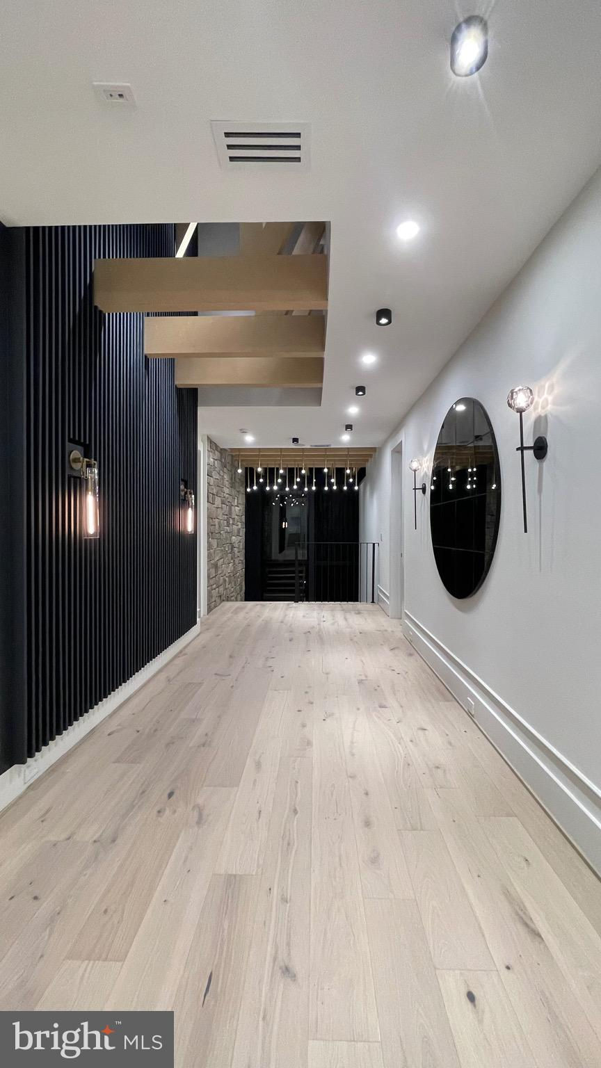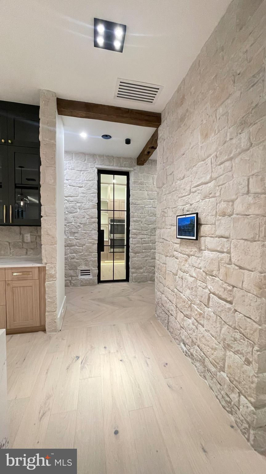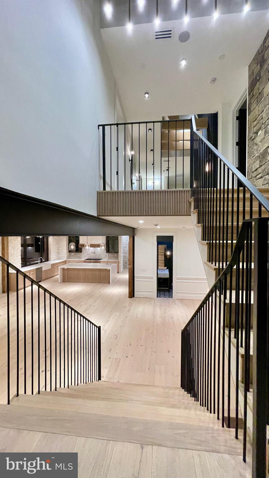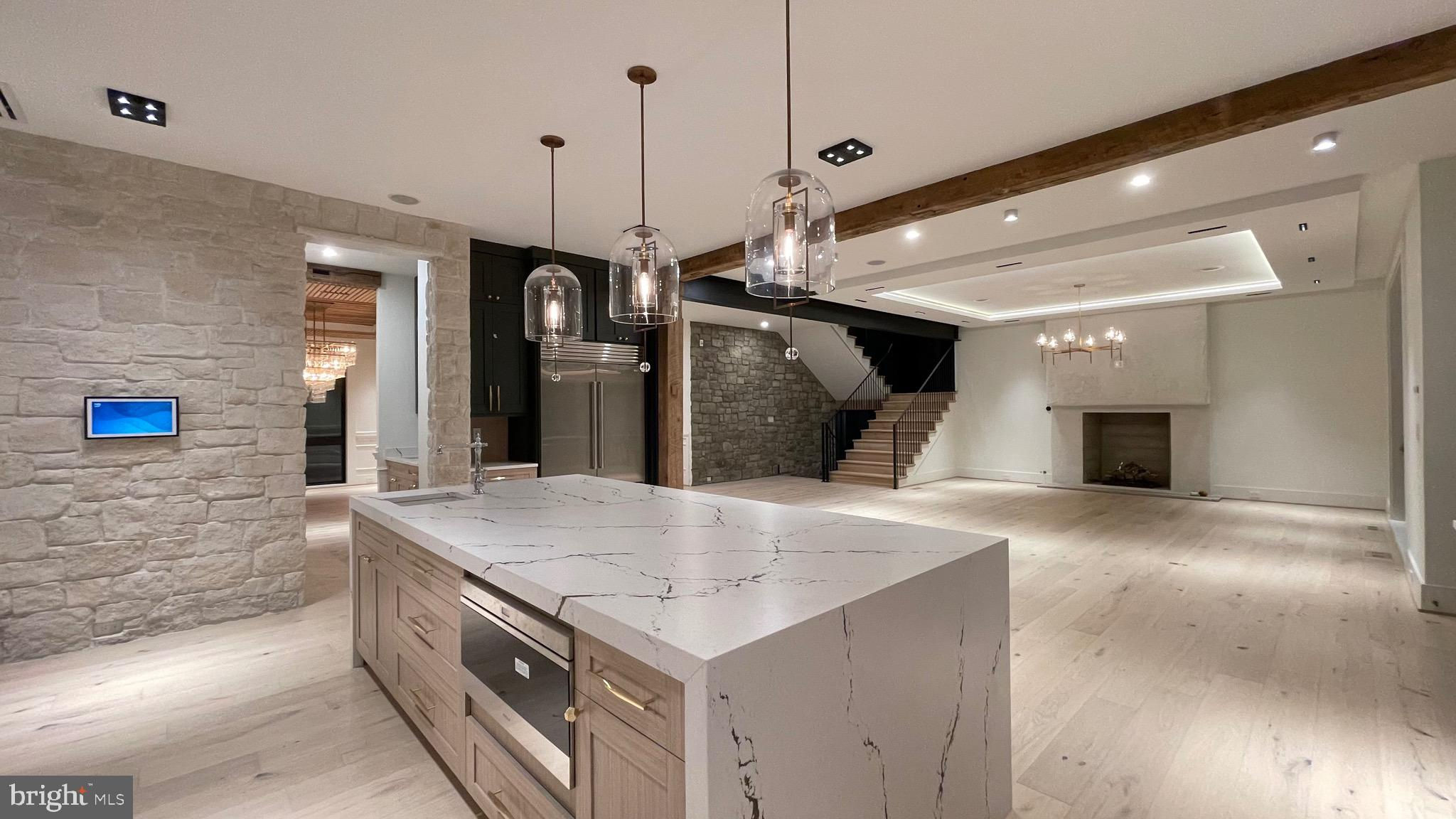 Introducing The Barn, a relaxed luxury by Artsy Homes, where timeless elegance blends effortlessly with refined comfort. A true expression of modern sophistication. From serene retreats in Washington, D.C. to countryside escapes reimagined in an urban setting, every detail of this home tells a story in the heart of Chesterbrook Woods, one of McLean’s premier neighborhoods. The exterior captivates with meticulous craftsmanship. Twelve-foot beams at the front entrance complement intricate stonework, while a grand Canadian maple Andersen door exudes striking presence. French gas lanterns paired with RH light fixtures add refined charm. A metal roof blends seamlessly with premium architectural shingles, and the façade combines stone with Shou Sugi Ban siding, accented by thoughtful landscaping that completes this cohesive architectural statement. At the heart of the home is a breathtaking thirty-foot-high lounge crowned with sixteen-foot windows, featuring a reclaimed roof rafter from 1847, salvaged from the last cotton mill of Virginia, that invites cascades of natural light throughout the day. The room, wrapped in century-old rugged heart pine and dark textured brick, carries a stillness that resonates deeply. Exposed roof rafters meticulously wrapped in birch wood add organic warmth to the soaring volume and create a space where serene grandeur meets quiet storytelling. Suspended above, the Arcachon Round brass chandelier anchors the room with rhythmic grace. Below, a custom-built fireplace framed by built-in bookshelves offers both intimacy and presence. The kitchen is an artful composition of form, light, and texture. A ten-foot brass-textured waterfall countertop exudes understated charm, while sun-filled windows invite the day’s shifting moods. The Fulcrum Pendant, with its hand-blown glass and brass, hovers sculpturally, casting a gentle glow. Limestone walls evoke the Tuscan countryside’s earthy timelessness. Chevron white oak floors, soft-toned cabinetry, and polished brass hardware from the Camden Collection, inspired by mid-century French and Italian design, blend quiet confidence with craftsmanship. Reclaimed beams paired with structural I-beams create a dialogue between history and modernity, making the kitchen a celebration of refined restraint and comfort. A slatted ceiling designed and constructed onsite guides you toward the dining area with a rhythm that feels intentional and fluid. There, a Tiered Rectangular Chandelier from the Marignan Collection, composed of more than one thousand crystal elements, takes center stage. Its interlocking formations float effortlessly, casting a shimmering cascade of light that fills the space with quiet drama. The Thaddeus Powder Room collection, inspired by the surreal artistry of Salvador Dalí and Diego Giacometti, features hand-forged metals, a bespoke custom sink, and refined fixtures that intertwine with effortless sophistication, resonating with the home’s cohesive aesthetic. (This offers just a glimpse of the main level, with even more to explore throughout the home.) At its core, Artsy Homes believes every house should tell a story, with each space unfolding as a meaningful chapter that endures over time, crafting environments that awaken reflection and wonder, where elegance and beauty invite you to slow down, breathe deeply, and embrace the true essence of feeling at home.