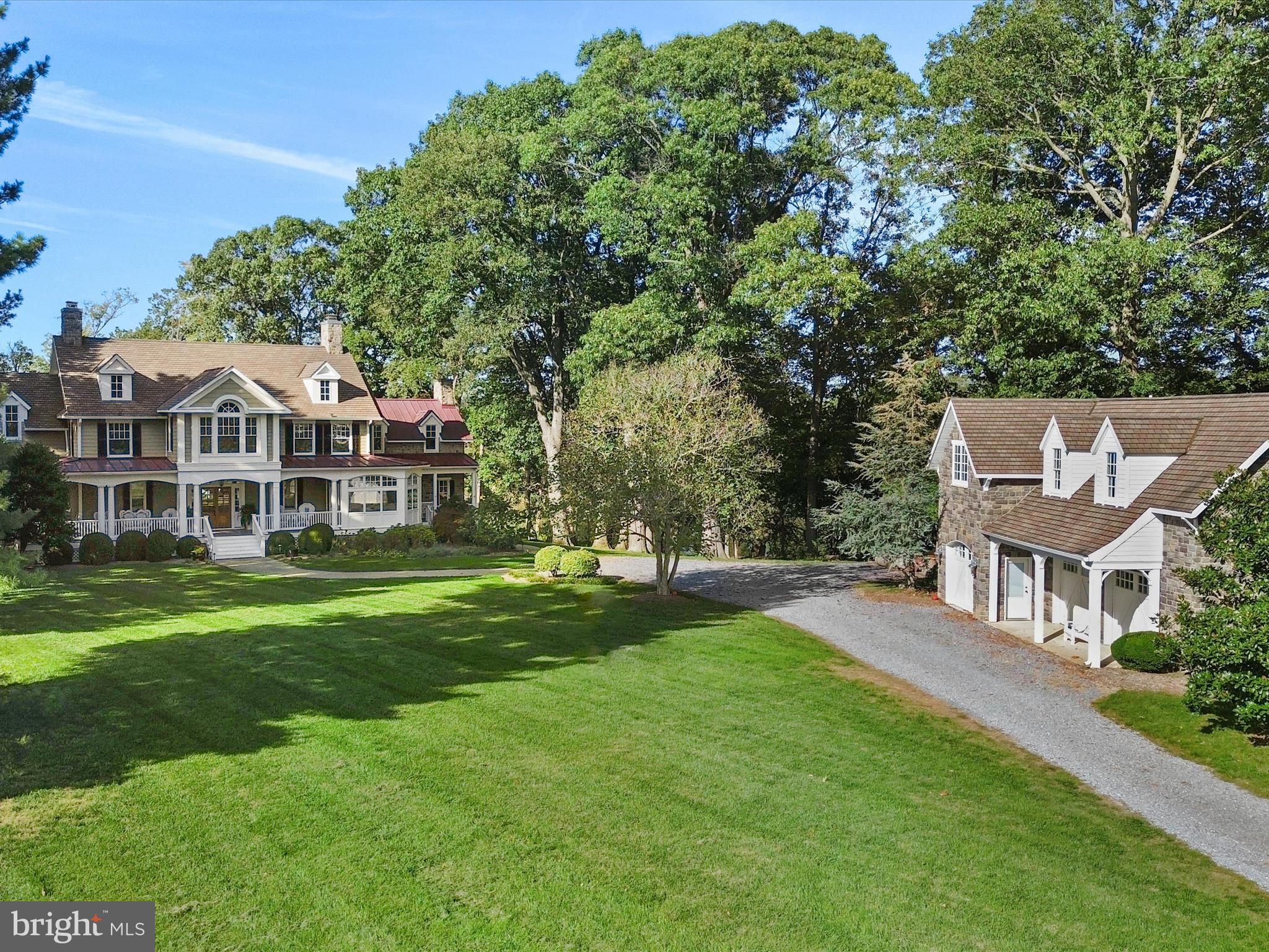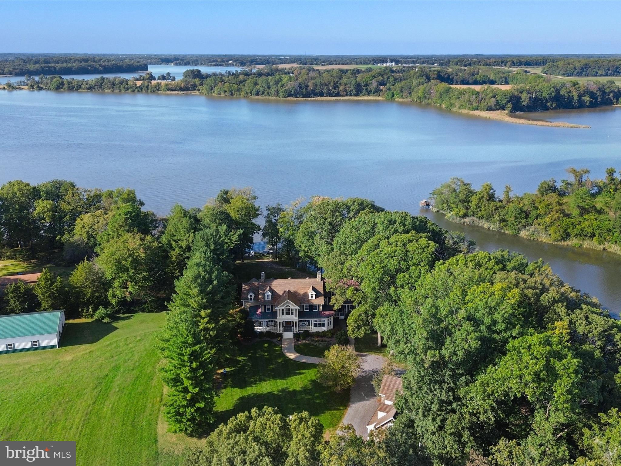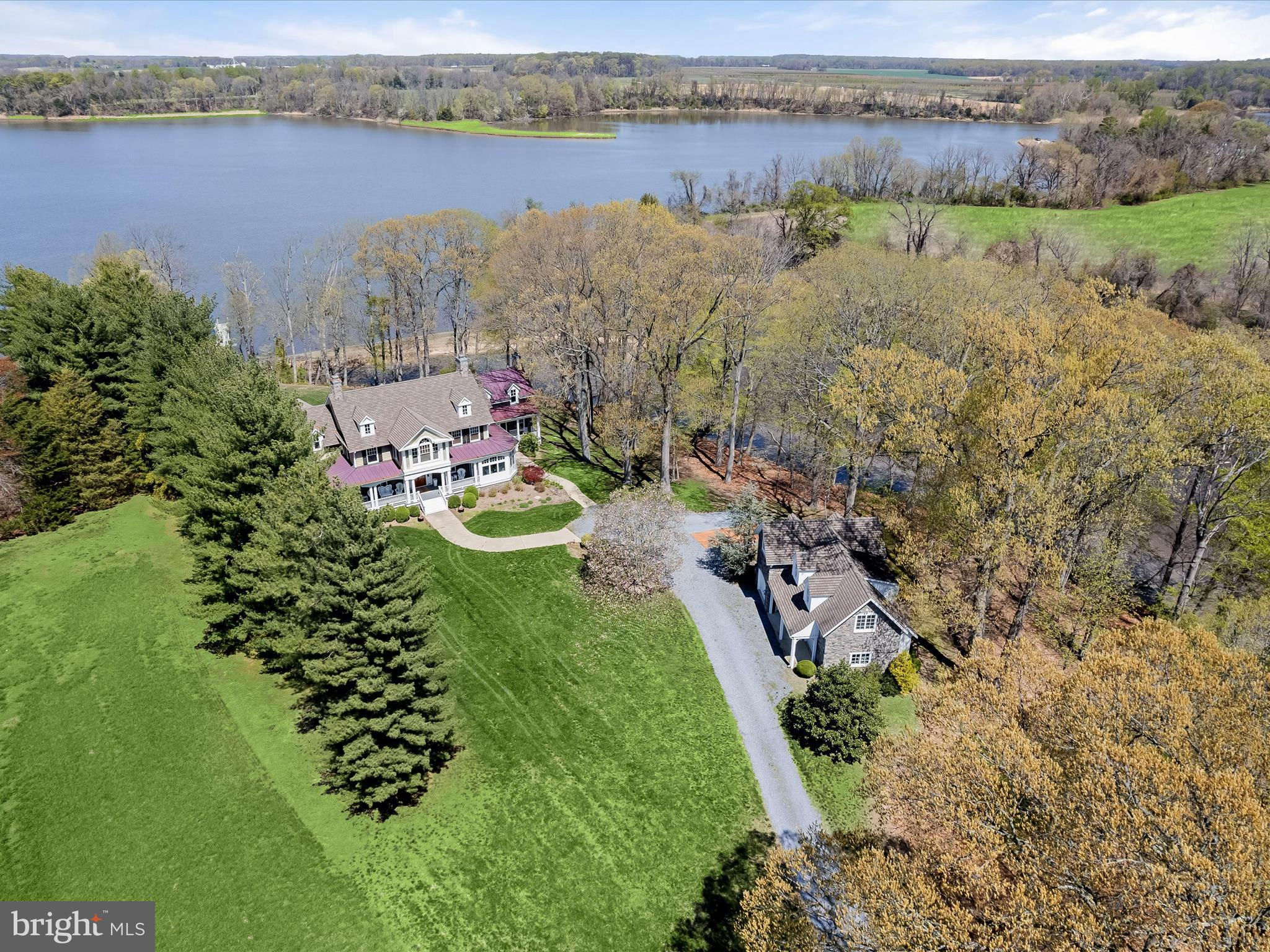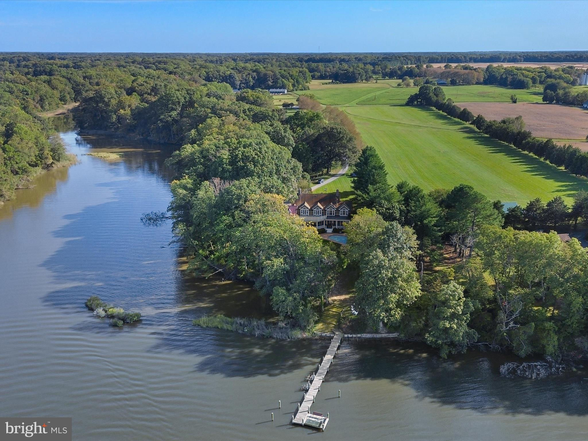 Experience unparalleled waterfront living in this stunning Coastal Farmhouse situated on 13.2 private acres in the desirable Kennersley Farm community. Custom-built as a former builder’s residence, this home showcases the highest quality materials and exceptional craftsmanship throughout. With 8 bedrooms and 6 full baths in the main house, plus a charming 2-bedroom Carriage House with a full kitchen and bath, this estate offers expansive space for family and guests to gather. The detached stone carriage house is located over a 2-car side-loading garage with a conditioned work/storage room. Step inside the main house to find meticulously designed interiors featuring low-maintenance hewn pine hardwood floors, 8-inch wood base, solid wood doors, and raised wood panel wainscoting. The waterside family room is a true showstopper with a coffered ceiling, stone fireplace, a designer mantle, built-in media, and panoramic views. Entertain effortlessly in the central gourmet kitchen with waterside access or enjoy vibrant indoor games in the oversized adjacent recreation room. Later, a quiet vibe will draw you to unwind in the main-level ensuite with an attached sunroom offering access to a serene side deck for a good read or morning coffee. With thoughtful design and attention to comfort and convenience, this home includes both main-level and upper-level laundry rooms, a finished attic bonus bedroom with a sitting area and a half bath, and endless customization possibilities for a future expansion in the unfinished basement with an exterior door and walk-up stair. Outdoor living is paramount with 450 feet of private navigable waterfront along Southeast Creek and views of the Chester River. A private dock equipped with water, electric service, 2 slips, and 2 ski lifts makes boating fun and accessible. Enjoy summer days by the waterside saltwater pool, complete with a paver patio, diving rock, and a 10-foot diving well. Evenings can be spent by the waterside stone fire pit or on the tiered covered porch and upper balcony overlooking the water. Nature enthusiasts will appreciate the natural shoreline, kayak launch, mature trees, and the presence of mated bald eagles. Professional landscaping and outdoor lighting enhance the estate’s beauty, while a private lane with a security alarm ensures seclusion. Perfectly situated near Kennersley Point Marina and other nearby marinas, this location offers convenient access to Chestertown, Rock Hall, and Annapolis by boat, as well as MD 213, Rte-50, and Rte-301 by car. This fully furnished home is an entertainer's dream and a rare waterfront oasis—schedule your private tour today!