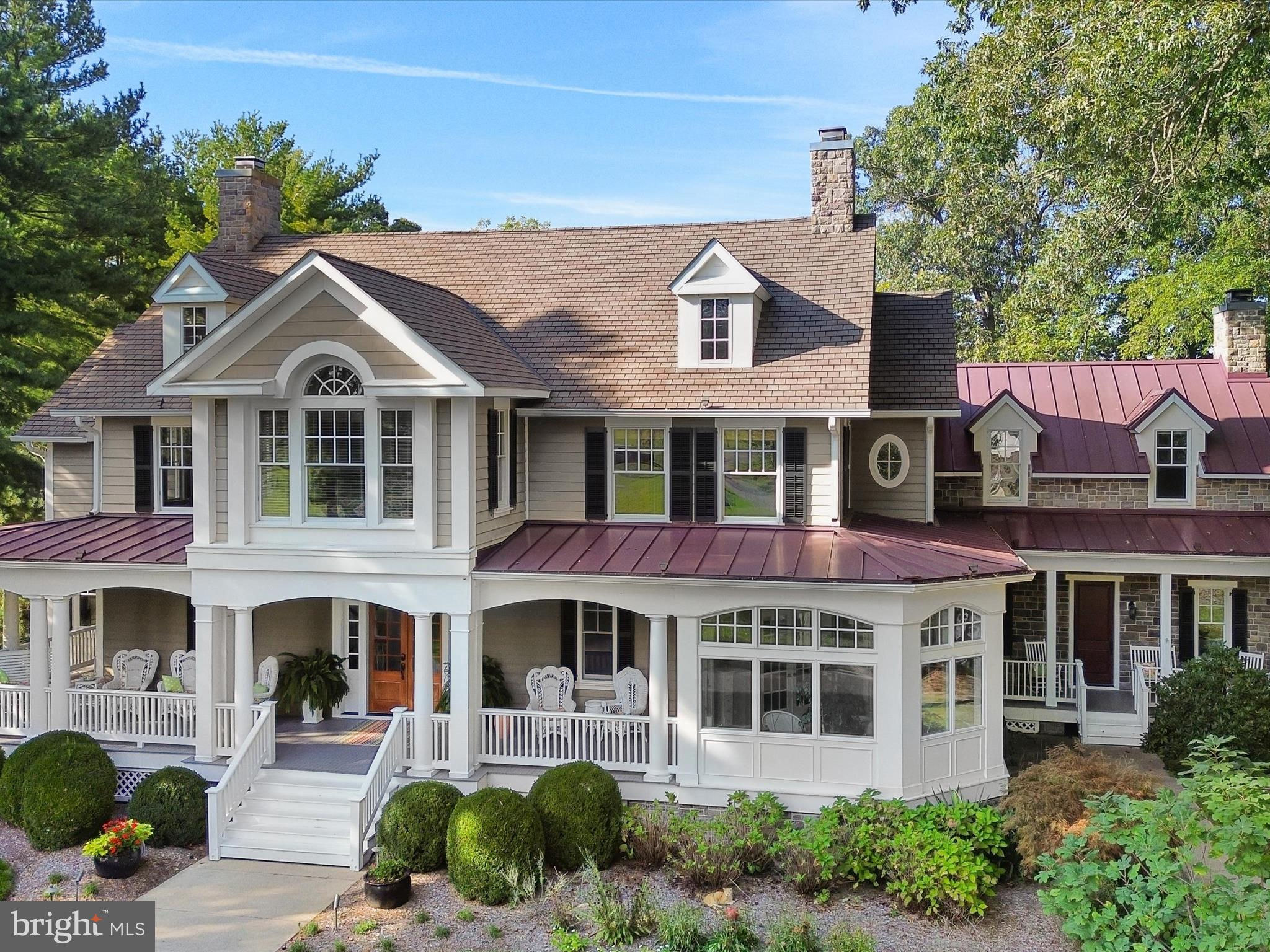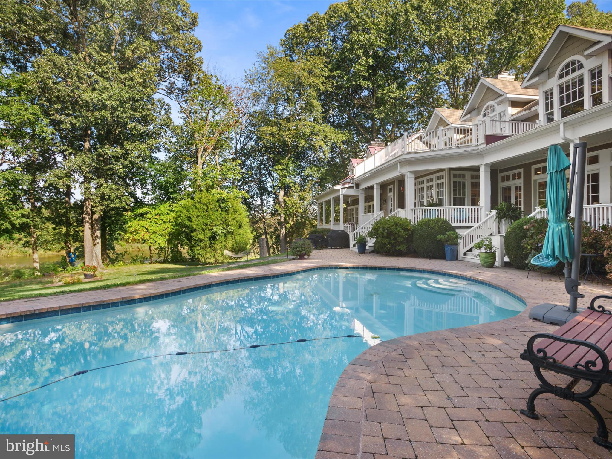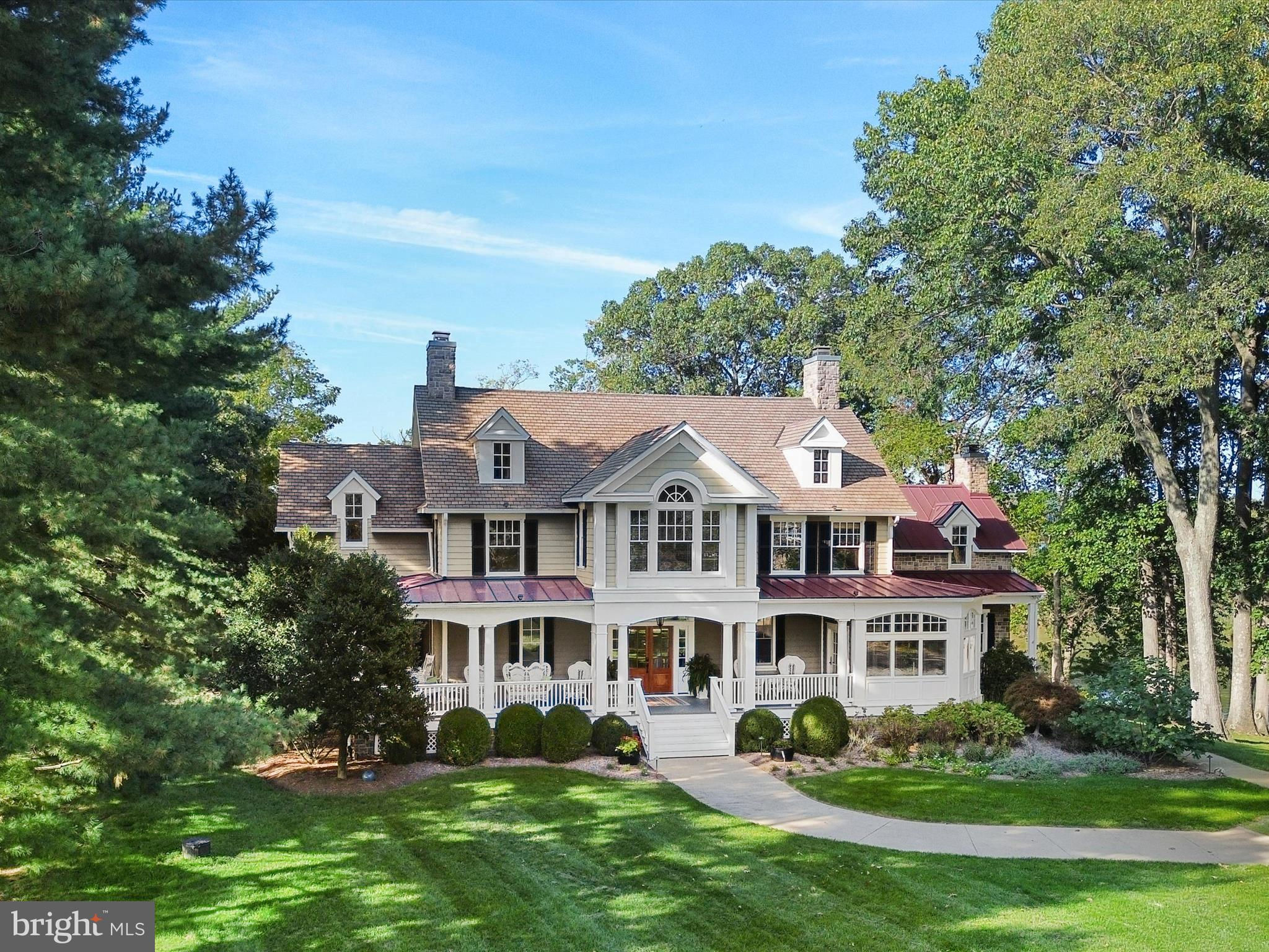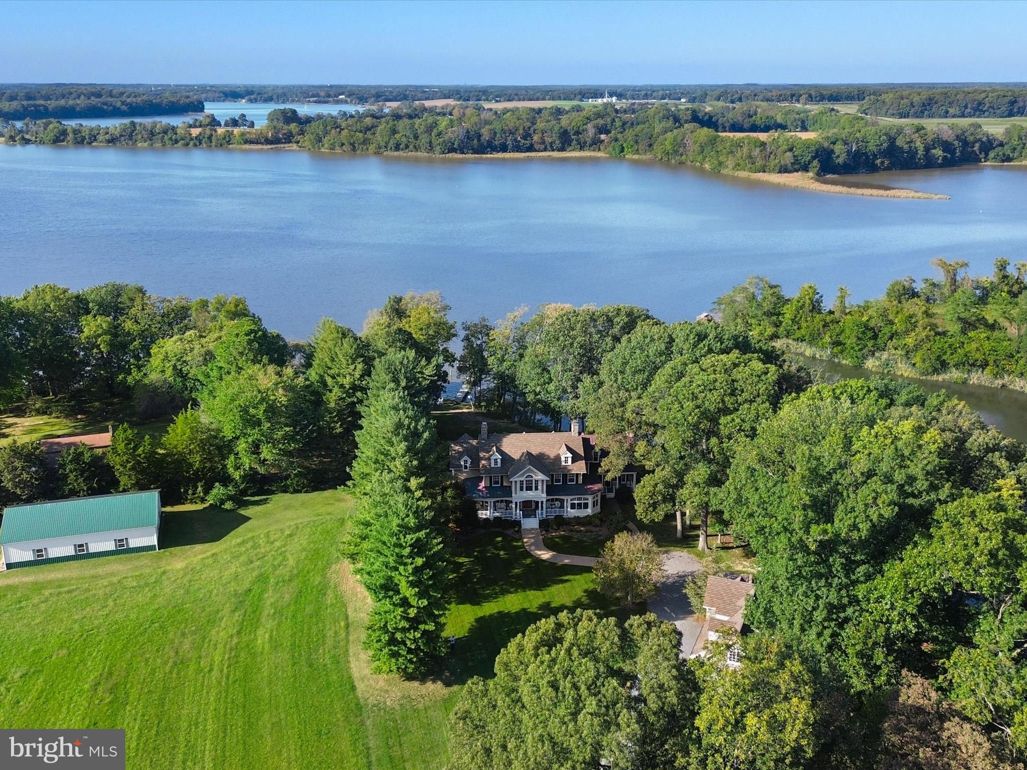 Experience unparalleled waterfront living in this stunning Coastal Farmhouse situated on 13.2 private acres in the desirable Kennersley Farm community. Custom-built as a former builder’s residence, this home showcases the highest quality materials and exceptional craftsmanship throughout. With 8 bedrooms and 6 full baths in the main house, plus a charming 2-bedroom Carriage House with a full kitchen and bath, this estate offers expansive space for family and guests to gather. The detached stone carriage house is located over a 2-car side-loading garage with a conditioned work/storage room. Step inside the main house to find meticulously designed interiors featuring low-maintenance hewn pine hardwood floors, 8-inch wood base, solid wood doors, and raised wood panel wainscoting. The waterside family room is a true showstopper with a coffered ceiling, stone fireplace, a designer mantle, built-in media, and panoramic views. Entertain effortlessly in the central gourmet kitchen with waterside access or enjoy vibrant indoor games in the oversized adjacent recreation room. Later, a quiet vibe will draw you to unwind in the main-level ensuite with an attached sunroom offering access to a serene side deck for a good read or morning coffee. With thoughtful design and attention to comfort and convenience, this home includes both main-level and upper-level laundry rooms, a finished attic bonus bedroom with a sitting area and a half bath, and endless customization possibilities for a future expansion in the unfinished basement with an exterior door and walk-up stair. Outdoor living is paramount with 450 feet of private navigable waterfront along Southeast Creek and views of the Chester River. A private dock equipped with water, electric service, 2 slips, and 2 ski lifts makes boating fun and accessible. Enjoy summer days by the waterside saltwater pool, complete with a paver patio, diving rock, and a 10-foot diving well. Evenings can be spent by the waterside stone fire pit or on the tiered covered porch and upper balcony overlooking the water. Nature enthusiasts will appreciate the natural shoreline, kayak launch, mature trees, and the presence of mated bald eagles. Professional landscaping and outdoor lighting enhance the estate’s beauty, while a private lane with a security alarm ensures seclusion. Perfectly situated near Kennersley Point Marina and other nearby marinas, this location offers convenient access to Chestertown, Rock Hall, and Annapolis by boat, as well as MD 213, Rte-50, and Rte-301 by car. This fully furnished home is an entertainer's dream and a rare waterfront oasis—schedule your private tour today!