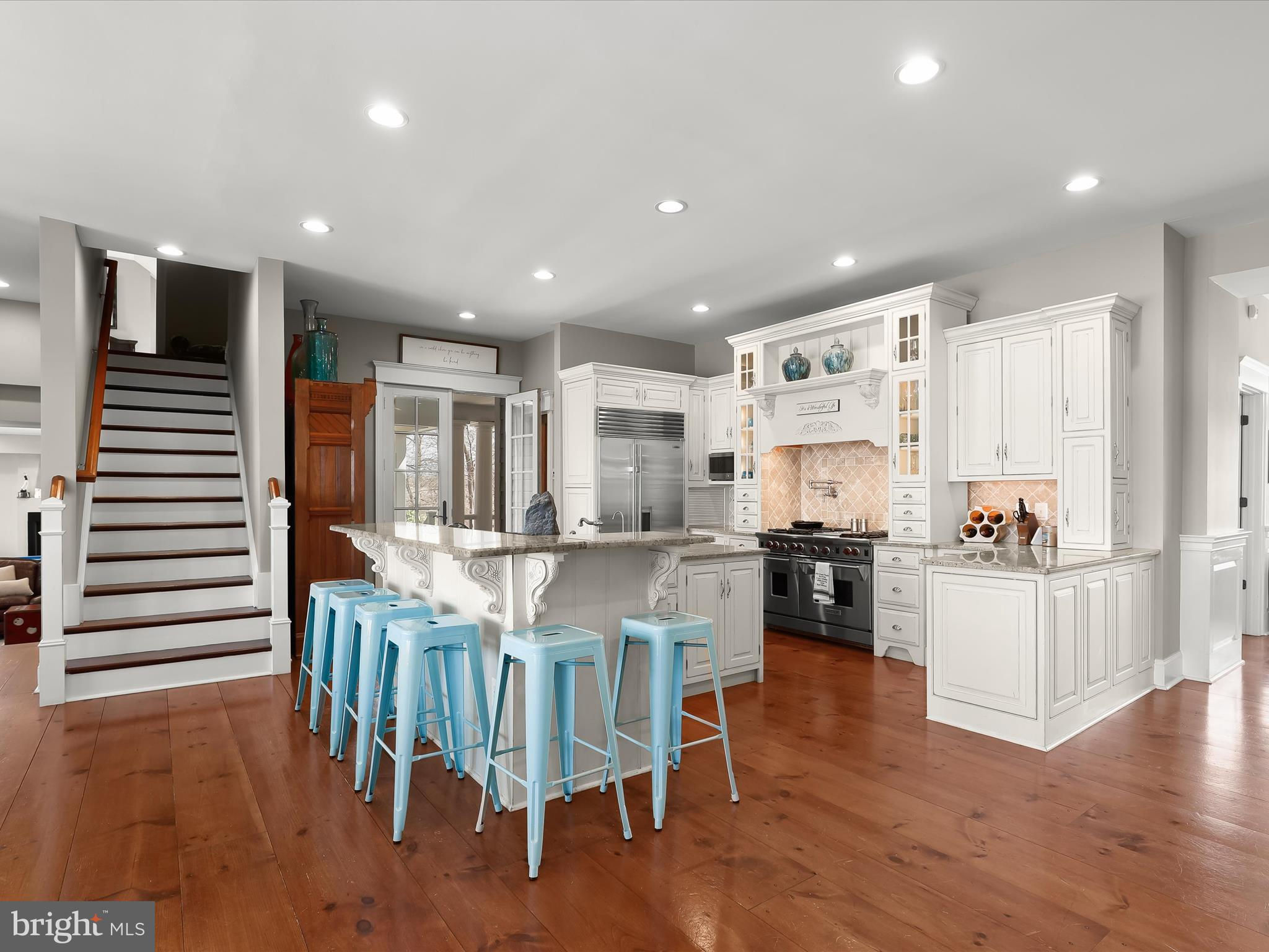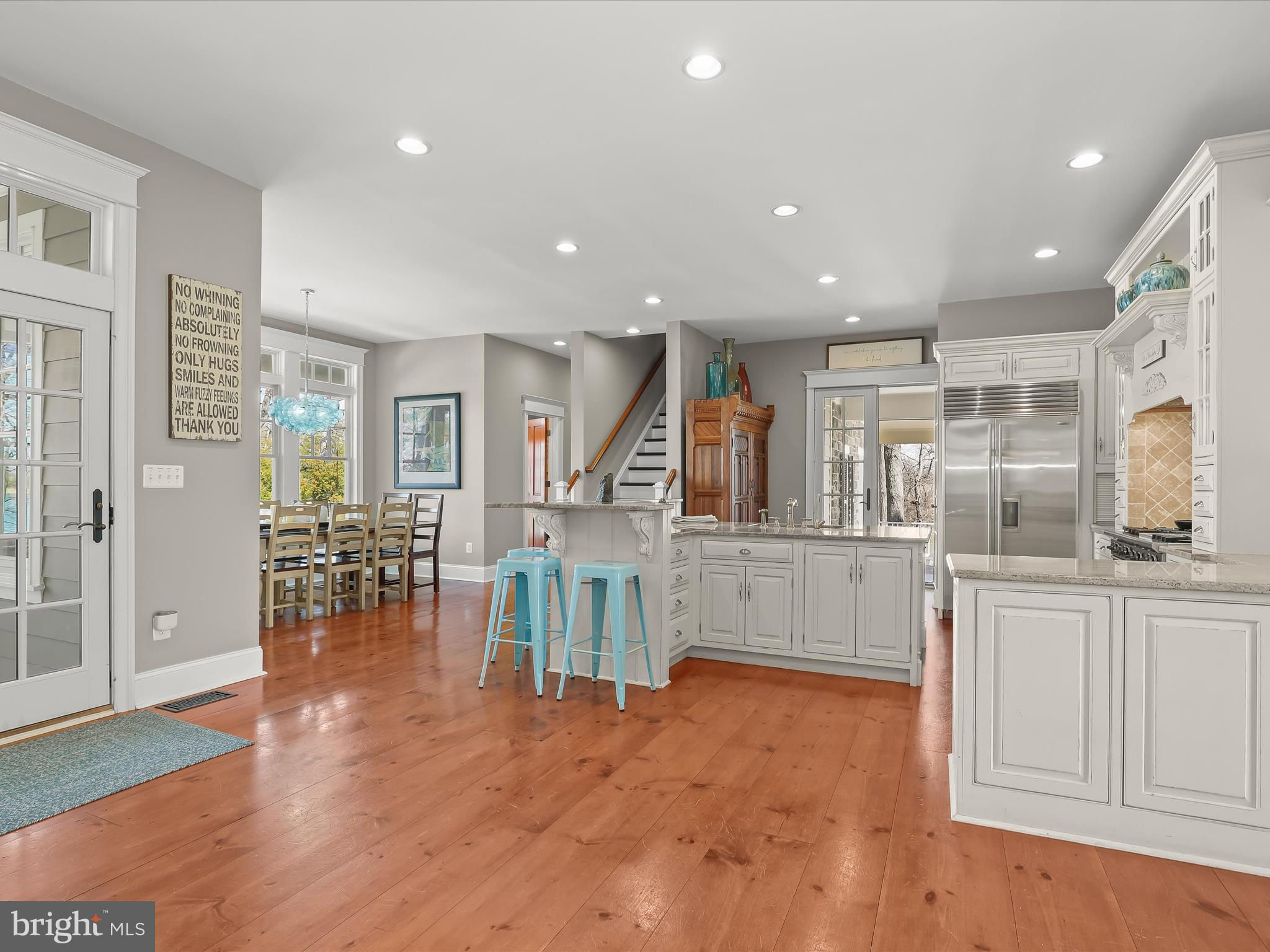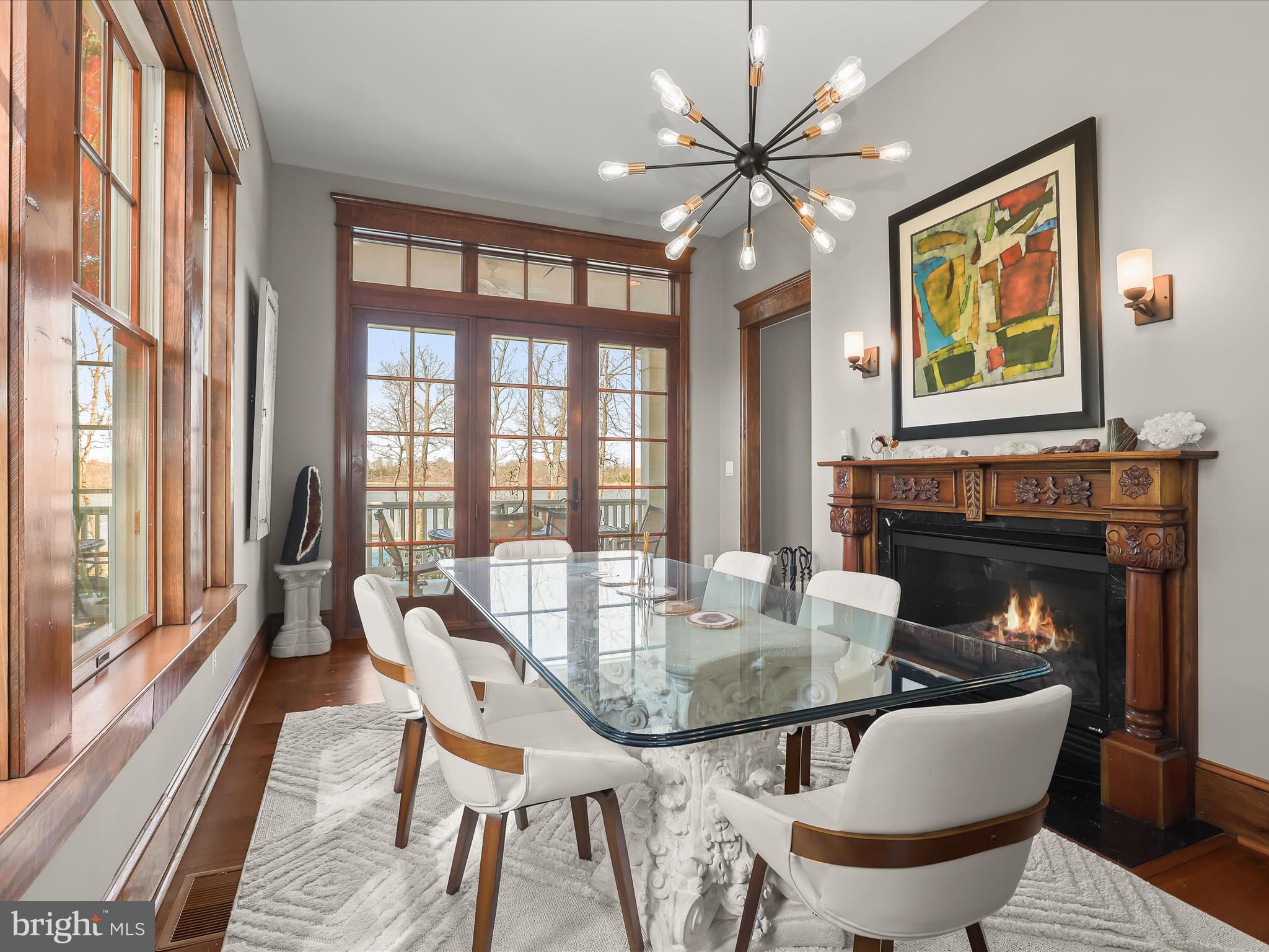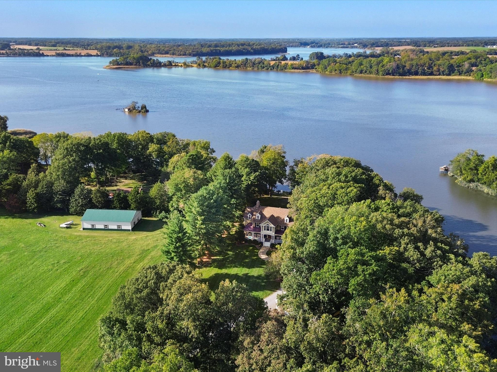 Experience unparalleled waterfront living in this stunning Coastal Farmhouse situated on 13.2 private acres in the desirable Kennersley Farm community. Custom-built as a former builder’s residence, this home showcases the highest quality materials and exceptional craftsmanship throughout. With 8 bedrooms and 6 full baths in the main house, plus a charming 2-bedroom Carriage House with a full kitchen and bath, this estate offers expansive space for family and guests to gather. The detached stone carriage house is located over a 2-car side-loading garage with a conditioned work/storage room. Step inside the main house to find meticulously designed interiors featuring low-maintenance hewn pine hardwood floors, 8-inch wood base, solid wood doors, and raised wood panel wainscoting. The waterside family room is a true showstopper with a coffered ceiling, stone fireplace, a designer mantle, built-in media, and panoramic views. Entertain effortlessly in the central gourmet kitchen with waterside access or enjoy vibrant indoor games in the oversized adjacent recreation room. Later, a quiet vibe will draw you to unwind in the main-level ensuite with an attached sunroom offering access to a serene side deck for a good read or morning coffee. With thoughtful design and attention to comfort and convenience, this home includes both main-level and upper-level laundry rooms, a finished attic bonus bedroom with a sitting area and a half bath, and endless customization possibilities for a future expansion in the unfinished basement with an exterior door and walk-up stair. Outdoor living is paramount with 450 feet of private navigable waterfront along Southeast Creek and views of the Chester River. A private dock equipped with water, electric service, 2 slips, and 2 ski lifts makes boating fun and accessible. Enjoy summer days by the waterside saltwater pool, complete with a paver patio, diving rock, and a 10-foot diving well. Evenings can be spent by the waterside stone fire pit or on the tiered covered porch and upper balcony overlooking the water. Nature enthusiasts will appreciate the natural shoreline, kayak launch, mature trees, and the presence of mated bald eagles. Professional landscaping and outdoor lighting enhance the estate’s beauty, while a private lane with a security alarm ensures seclusion. Perfectly situated near Kennersley Point Marina and other nearby marinas, this location offers convenient access to Chestertown, Rock Hall, and Annapolis by boat, as well as MD 213, Rte-50, and Rte-301 by car. This fully furnished home is an entertainer's dream and a rare waterfront oasis—schedule your private tour today!