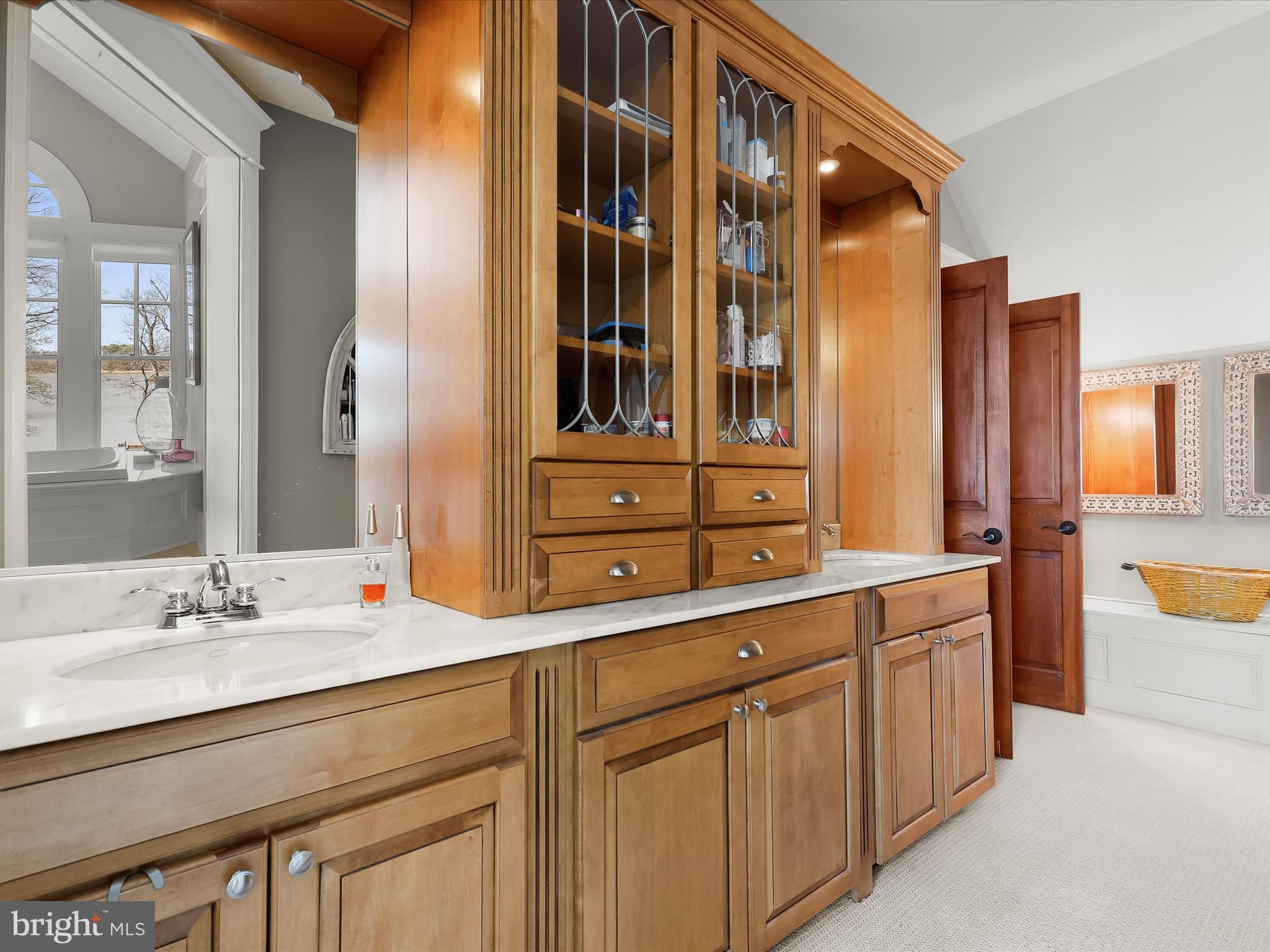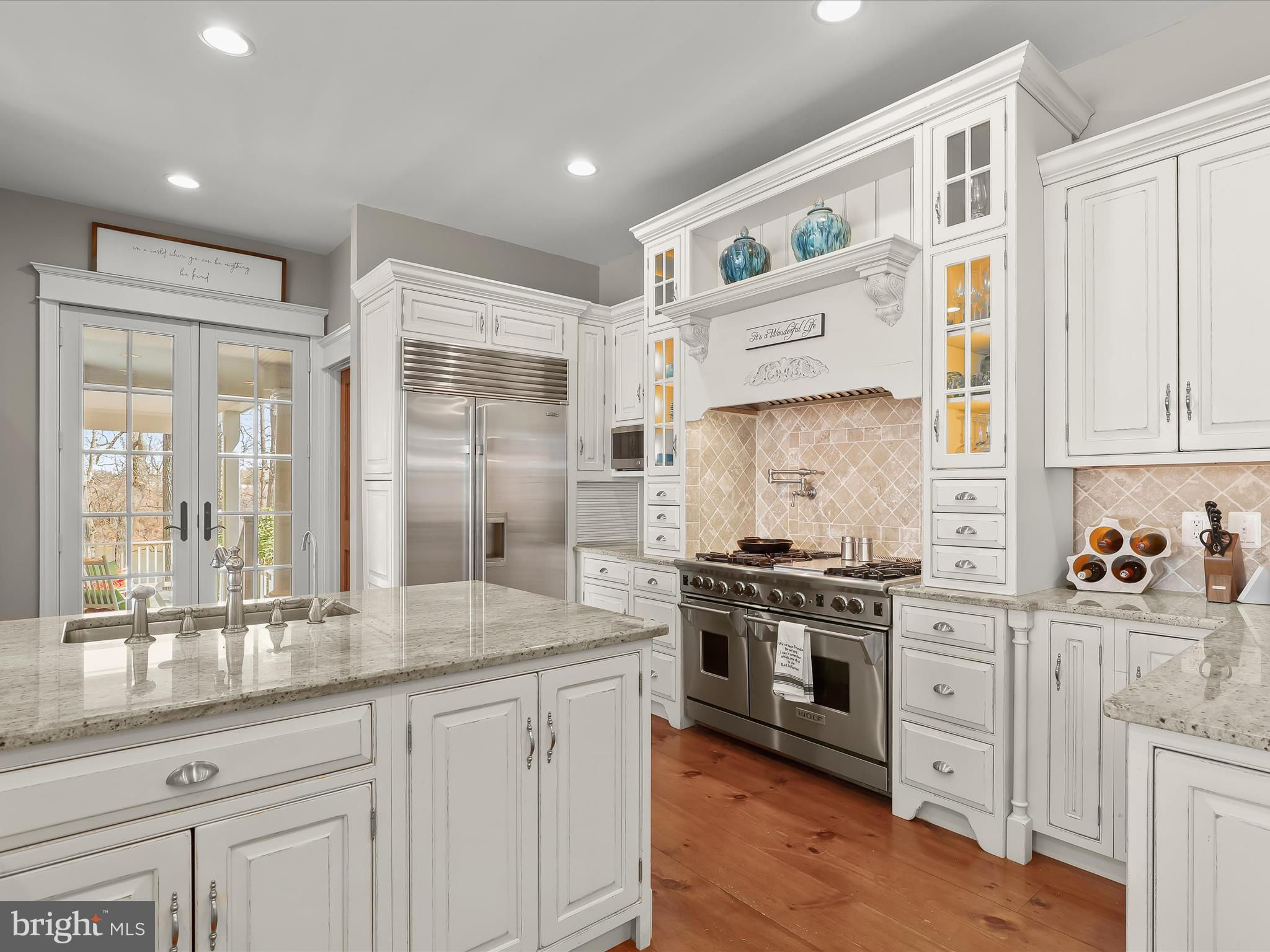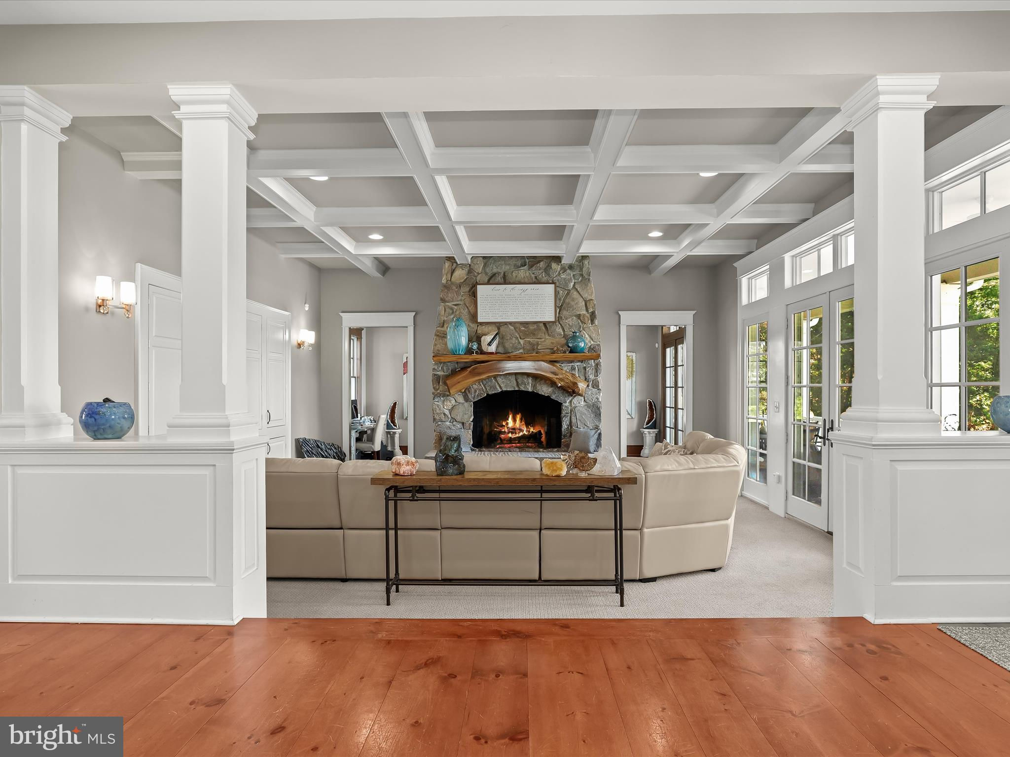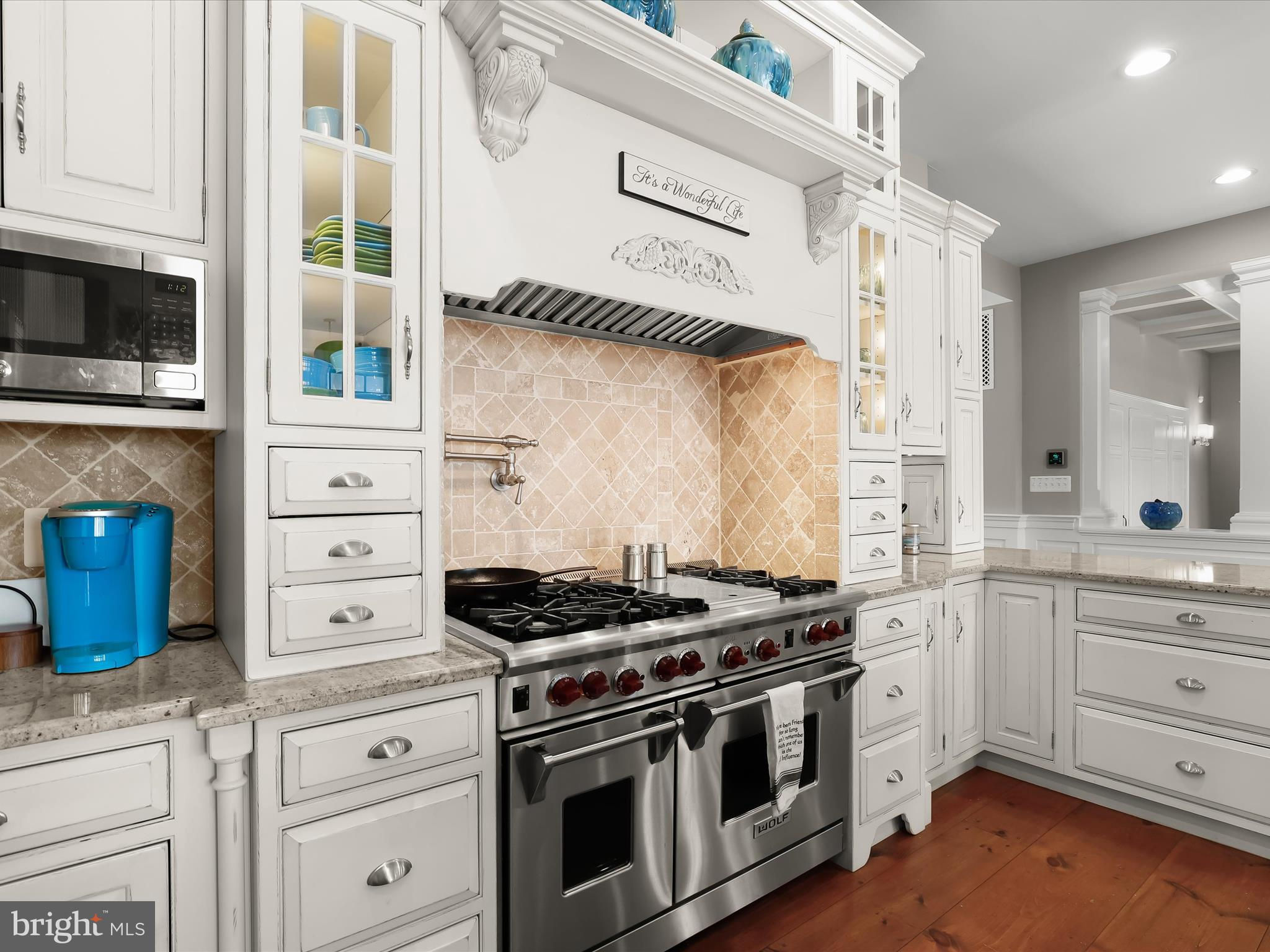 Experience unparalleled waterfront living in this stunning Coastal Farmhouse situated on 13.2 private acres in the desirable Kennersley Farm community. Custom-built as a former builder’s residence, this home showcases the highest quality materials and exceptional craftsmanship throughout. With 8 bedrooms and 6 full baths in the main house, plus a charming 2-bedroom Carriage House with a full kitchen and bath, this estate offers expansive space for family and guests to gather. The detached stone carriage house is located over a 2-car side-loading garage with a conditioned work/storage room. Step inside the main house to find meticulously designed interiors featuring low-maintenance hewn pine hardwood floors, 8-inch wood base, solid wood doors, and raised wood panel wainscoting. The waterside family room is a true showstopper with a coffered ceiling, stone fireplace, a designer mantle, built-in media, and panoramic views. Entertain effortlessly in the central gourmet kitchen with waterside access or enjoy vibrant indoor games in the oversized adjacent recreation room. Later, a quiet vibe will draw you to unwind in the main-level ensuite with an attached sunroom offering access to a serene side deck for a good read or morning coffee. With thoughtful design and attention to comfort and convenience, this home includes both main-level and upper-level laundry rooms, a finished attic bonus bedroom with a sitting area and a half bath, and endless customization possibilities for a future expansion in the unfinished basement with an exterior door and walk-up stair. Outdoor living is paramount with 450 feet of private navigable waterfront along Southeast Creek and views of the Chester River. A private dock equipped with water, electric service, 2 slips, and 2 ski lifts makes boating fun and accessible. Enjoy summer days by the waterside saltwater pool, complete with a paver patio, diving rock, and a 10-foot diving well. Evenings can be spent by the waterside stone fire pit or on the tiered covered porch and upper balcony overlooking the water. Nature enthusiasts will appreciate the natural shoreline, kayak launch, mature trees, and the presence of mated bald eagles. Professional landscaping and outdoor lighting enhance the estate’s beauty, while a private lane with a security alarm ensures seclusion. Perfectly situated near Kennersley Point Marina and other nearby marinas, this location offers convenient access to Chestertown, Rock Hall, and Annapolis by boat, as well as MD 213, Rte-50, and Rte-301 by car. This fully furnished home is an entertainer's dream and a rare waterfront oasis—schedule your private tour today!