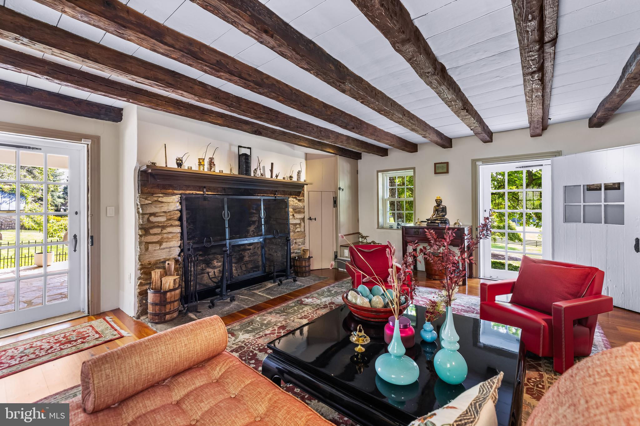 Simply one of Baltimore County's most remarkable estate farms! Beautifully manicured 29 acres in the heart of Western Run Valley. Circa 1821 stone farmhouse has been completely renovated and seamlessly expanded to suit today's modern living, keeping much of it's original charm such as vintage floors and beamed ceilings yet with state-of-the-art systems and high-speed internet. Original Keeping Room with beamed ceiling and oversize stone fireplace. Formal Living Room and Dining Room each with fireplace. Sunny Solarium with heated bluestone floor. Custom fitted Butler's Pantry, Family Room with window wall and stone fireplace flows to gourmet Kitchen. Mudroom, Laundry Room and main level Bath. Primary Suite with Sitting Room and spa Bath with heated floor share the 2nd level with 2 additional Bedrooms, 2 more baths and Office with custom built-ins. 3rd level Bedroom and Bath. Covered porches, patios, terraces, tennis court and an-in ground pool all overlook the Western Run Valley. A storybook 2-story Guesthouse with cook's Kitchen and the 2-story Gym each occupy a thoroughly renovated vintage stone outbuilding. The original stone Bank Barn is equipped as a party barn. Other vintage stone outbuildings include a detached Garage, working Spring House and rebuilt Smoke House. A stunning circa 2017 Barn Complex, built by Amish craftsmen, includes a thoroughly wood-paneled center aisle barn with 4 oversize stalls, tack room, living room, full bath, feed room, utility room , huge loft and oversize sliding barn doors to a tremendous indoor riding arena- perfect for equestrian pursuits or the avid car collector. A third renovated Farmhouse, Tractor/Machine Shed with workshop, Chicken Coop, Animal Enclosure and acres of manicured fenced and watered paddocks. Beautiful gardens with butterflies, pollinating bees and a bird-watcher's paradise including Bald Eagles. All outbuildings have water and electric service and the entire property is impeccably and lovingly maintained.