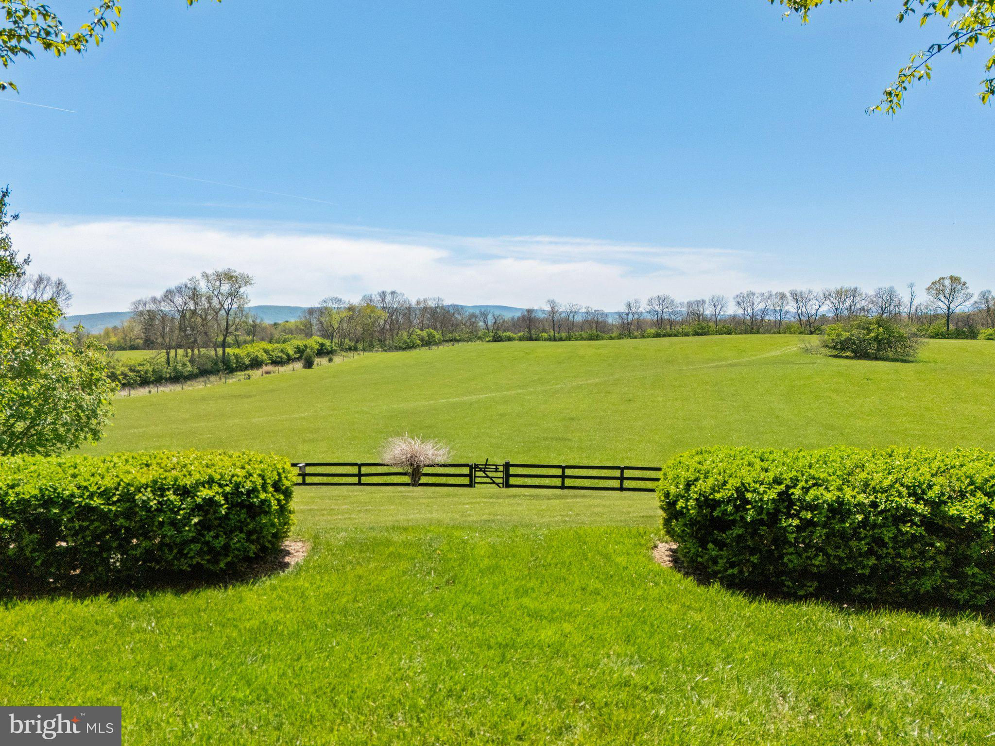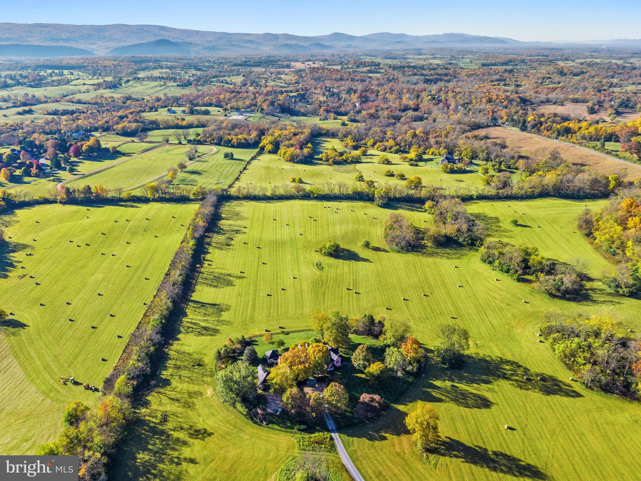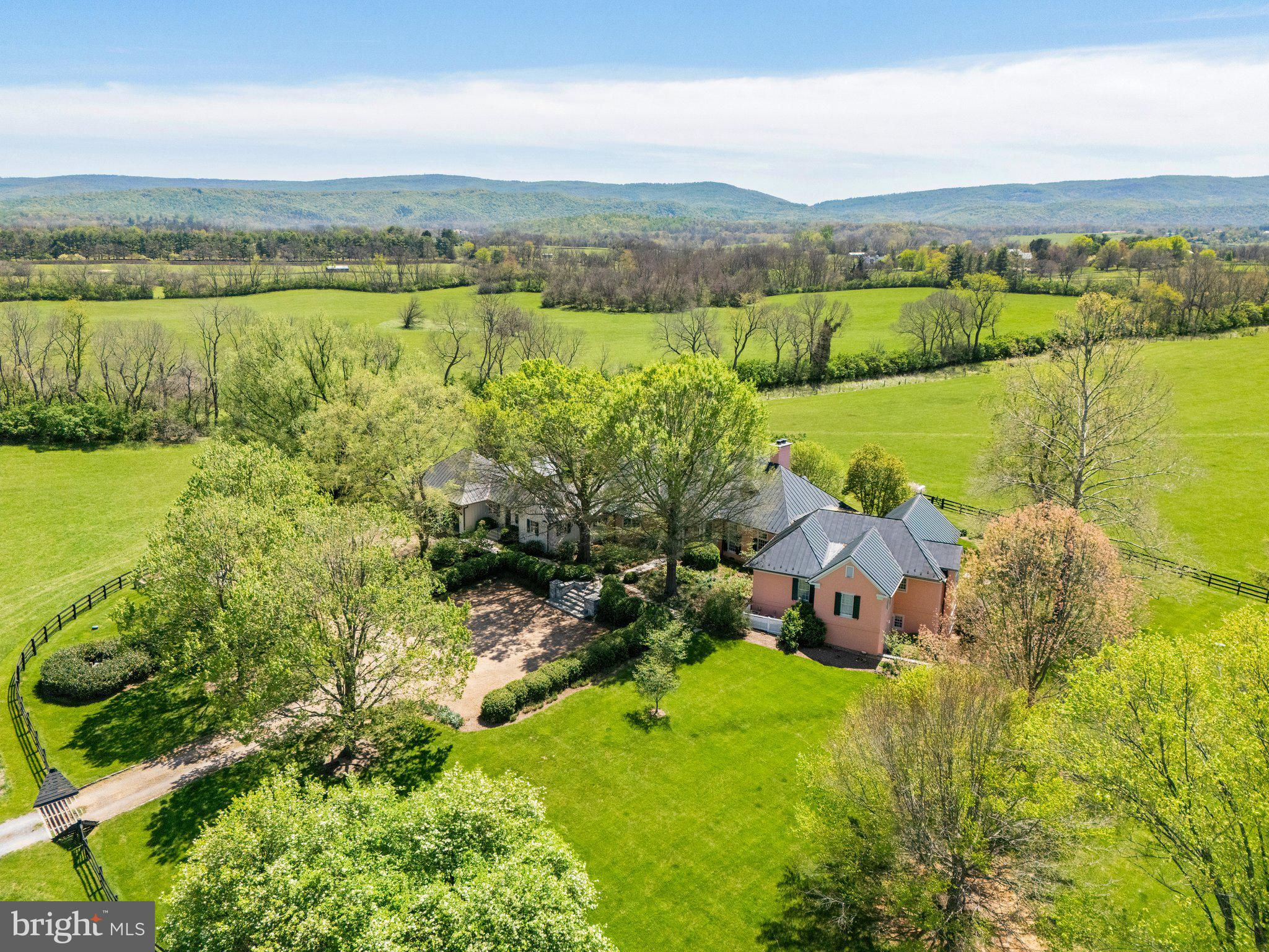 “Salterhill” sits atop a knoll in the heart of 145 acres, offering sweeping views of the Blue Ridge Mountains. Designed by Charlottesville architect Jay Dalgliesh and built in 1989 the 7,000+ sq ft home features 6 bedrooms, 5 full baths and 2 half baths. The farm spans two parcels beautifully blending open hay fields and mature hardwood forest. Surrounded by large farms protected by conservation easements, Salterhill remains unencumbered and offers tax credit potential as well as having four additional dwelling unit rights. A winding drive through the woods and over two cattle guards lead to a pea gravel courtyard framed by trees and mature landscaping. A flagstone path welcomes guests to the mahogany double doors. Inside, a curved front hall with Zuber French woodblock wallpaper panels opens to the light-filled living room, where a fireplace and a wall of windows showcase the southern views. The formal dining room, with chair rail and intricate moldings, flows seamlessly from here. The gourmet kitchen, remodeled in 2021, features a tray ceiling, large island and an adjoining family room anchored by a floor to ceiling Albemarle greenstone fireplace. Off the kitchen hallway are a wet bar, gardening nook with antique soapstone sink and a powder room. In the back hallway, which connects to a two-car garage, are large pantry closets. A four-season room with interchangeable screens and glass panels offers year-round enjoyment of the views. The main level also includes a pine paneled library with fireplace and passage to the primary suite. The luxury primary suite has built-ins, large bath with dual vanities, dressing table and separate walk-in closets. There are two more-bedroom suites, laundry room and powder room. Upstairs a guest suite with full bath and walk-in closet is joined by attic storage. The walk-out lower level offers two more bedrooms with a Jack & Jill bath, a spacious recreation room, full kitchen, and private entrance—ideal for guests or an in-law suite. The original landscape plan was done by the renowned landscape architect, the late Meade Palmer. More recent changes and additions have been made by Nicole Seiss of LanDesign. Nature lovers will appreciate the magnolia, sycamore, pin oak, beech, red maple, weeping willow, and horse chestnut trees, as well as two large perennial beds. The Hartley Botanic greenhouse from England, tiered vegetable beds and 3 acre quail habitat enhance the property’s charm. Perfectly located – within the historic Blue Ridge Hunt territory, 10 minutes to the Virginia State Arboretum and Shenandoah River, 20 minutes to Sky Meadows State Park, 50 minutes to Dulles International Airport and 90 minutes to Washington, C.C. – Salterhill offers privacy, beauty and turn-key readiness.