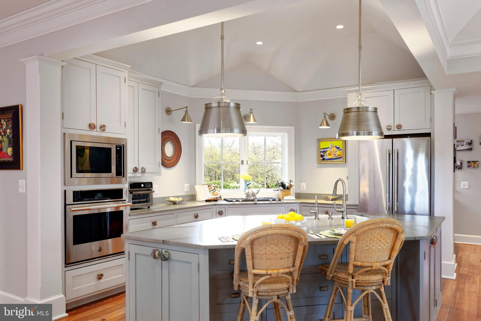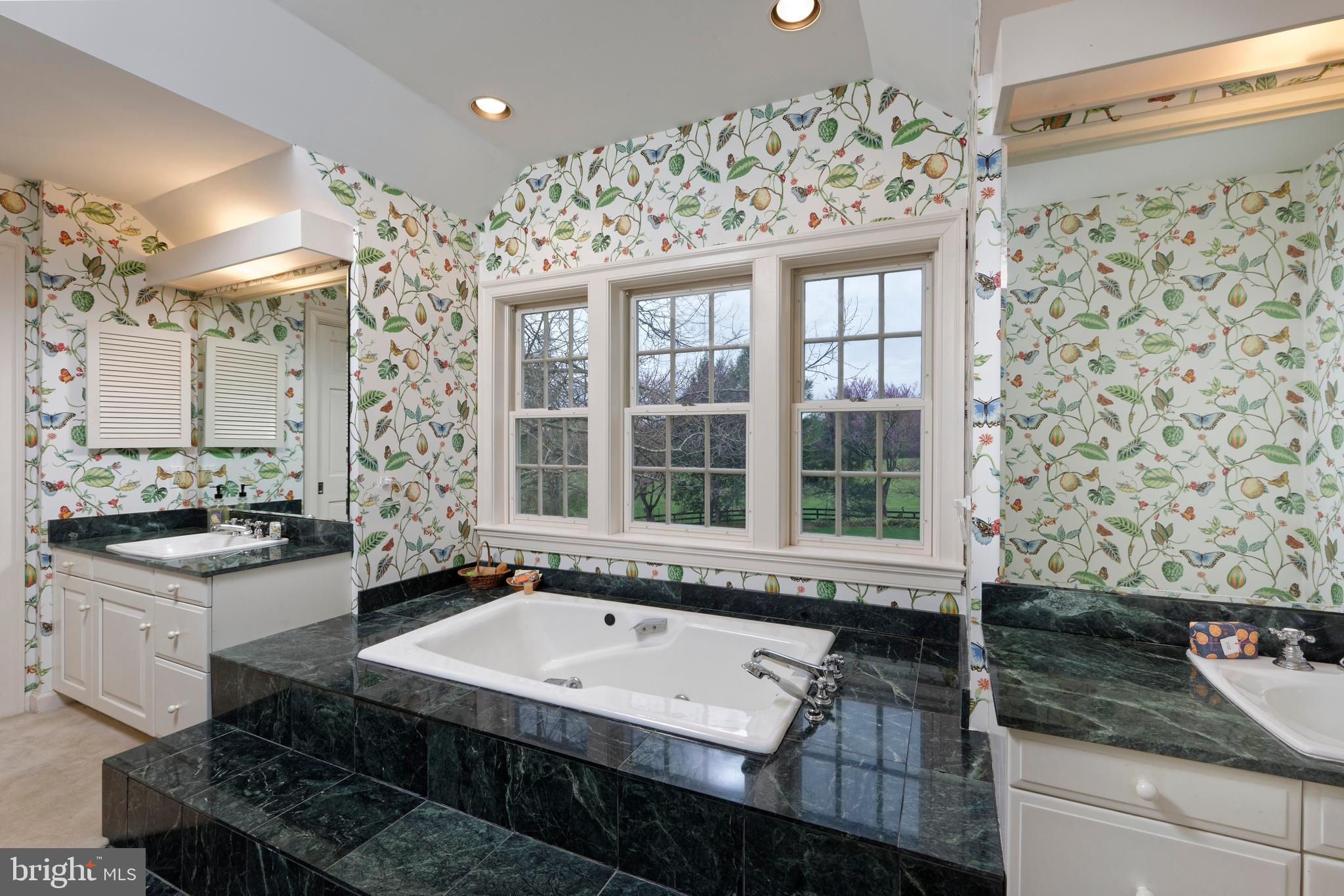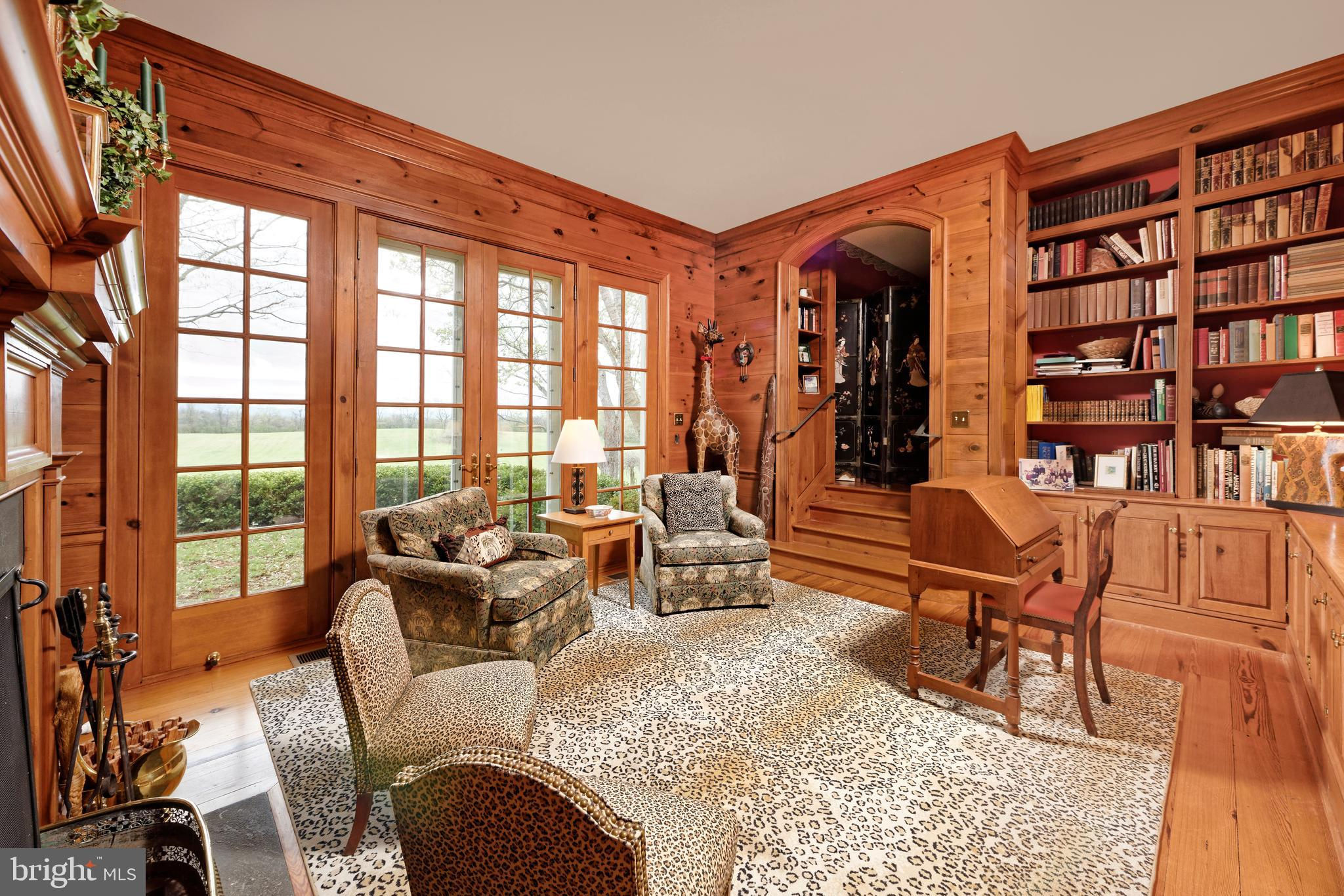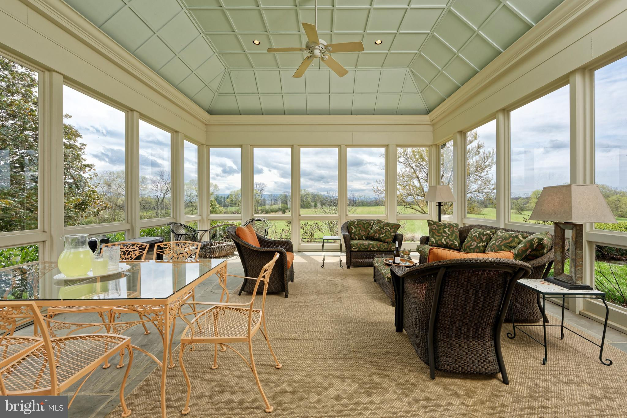 “Salterhill” sits atop a knoll in the heart of 145 acres, offering sweeping views of the Blue Ridge Mountains. Designed by Charlottesville architect Jay Dalgliesh and built in 1989 the 7,000+ sq ft home features 6 bedrooms, 5 full baths and 2 half baths. The farm spans two parcels beautifully blending open hay fields and mature hardwood forest. Surrounded by large farms protected by conservation easements, Salterhill remains unencumbered and offers tax credit potential as well as having four additional dwelling unit rights. A winding drive through the woods and over two cattle guards lead to a pea gravel courtyard framed by trees and mature landscaping. A flagstone path welcomes guests to the mahogany double doors. Inside, a curved front hall with Zuber French woodblock wallpaper panels opens to the light-filled living room, where a fireplace and a wall of windows showcase the southern views. The formal dining room, with chair rail and intricate moldings, flows seamlessly from here. The gourmet kitchen, remodeled in 2021, features a tray ceiling, large island and an adjoining family room anchored by a floor to ceiling Albemarle greenstone fireplace. Off the kitchen hallway are a wet bar, gardening nook with antique soapstone sink and a powder room. In the back hallway, which connects to a two-car garage, are large pantry closets. A four-season room with interchangeable screens and glass panels offers year-round enjoyment of the views. The main level also includes a pine paneled library with fireplace and passage to the primary suite. The luxury primary suite has built-ins, large bath with dual vanities, dressing table and separate walk-in closets. There are two more-bedroom suites, laundry room and powder room. Upstairs a guest suite with full bath and walk-in closet is joined by attic storage. The walk-out lower level offers two more bedrooms with a Jack & Jill bath, a spacious recreation room, full kitchen, and private entrance—ideal for guests or an in-law suite. The original landscape plan was done by the renowned landscape architect, the late Meade Palmer. More recent changes and additions have been made by Nicole Seiss of LanDesign. Nature lovers will appreciate the magnolia, sycamore, pin oak, beech, red maple, weeping willow, and horse chestnut trees, as well as two large perennial beds. The Hartley Botanic greenhouse from England, tiered vegetable beds and 3 acre quail habitat enhance the property’s charm. Perfectly located – within the historic Blue Ridge Hunt territory, 10 minutes to the Virginia State Arboretum and Shenandoah River, 20 minutes to Sky Meadows State Park, 50 minutes to Dulles International Airport and 90 minutes to Washington, C.C. – Salterhill offers privacy, beauty and turn-key readiness.