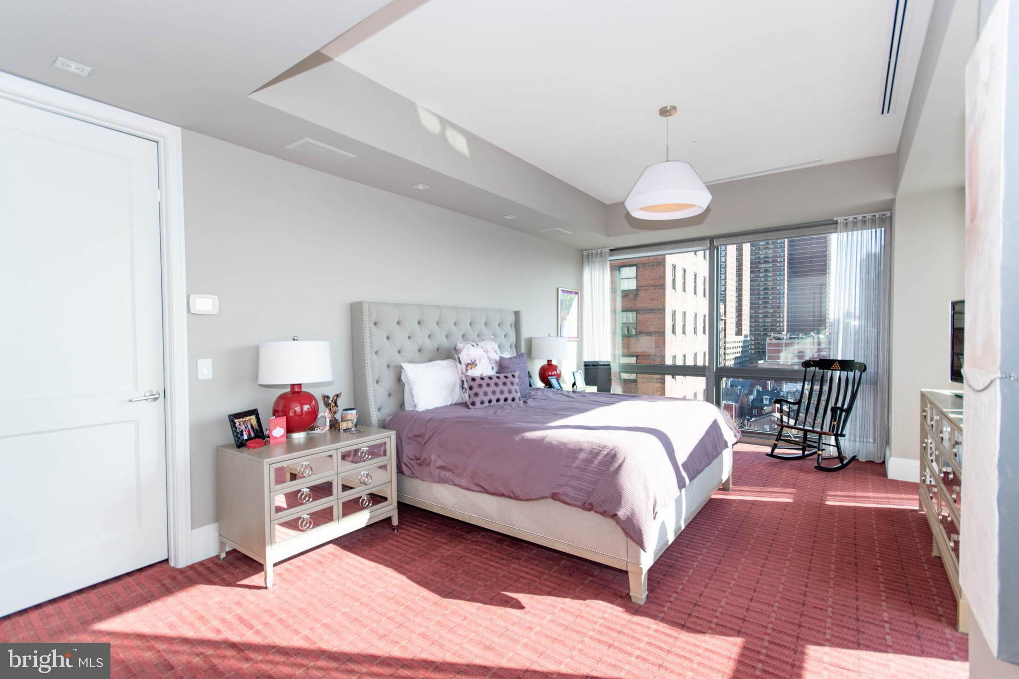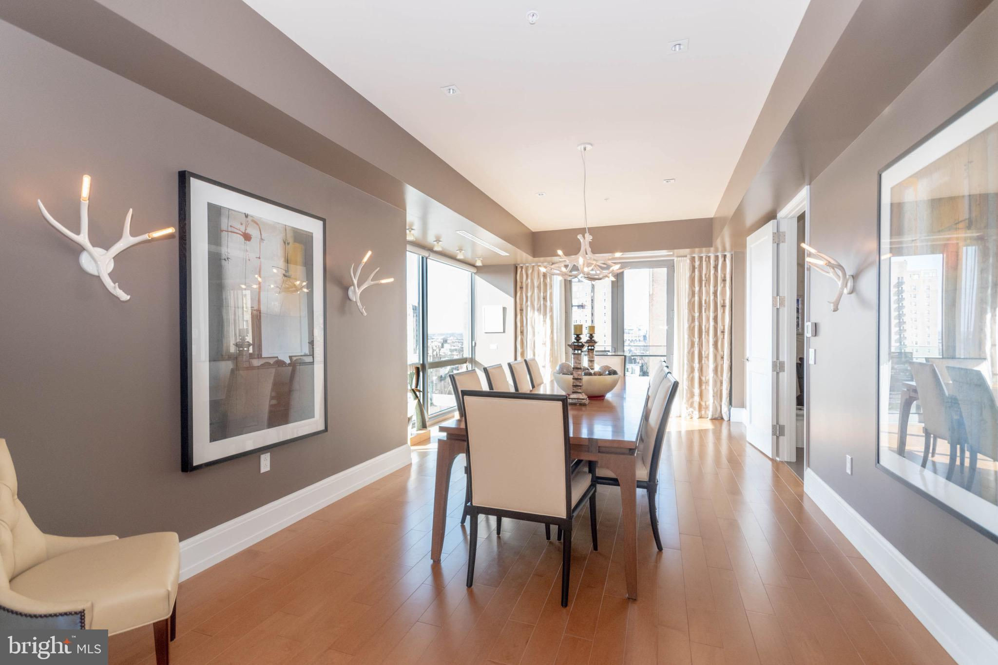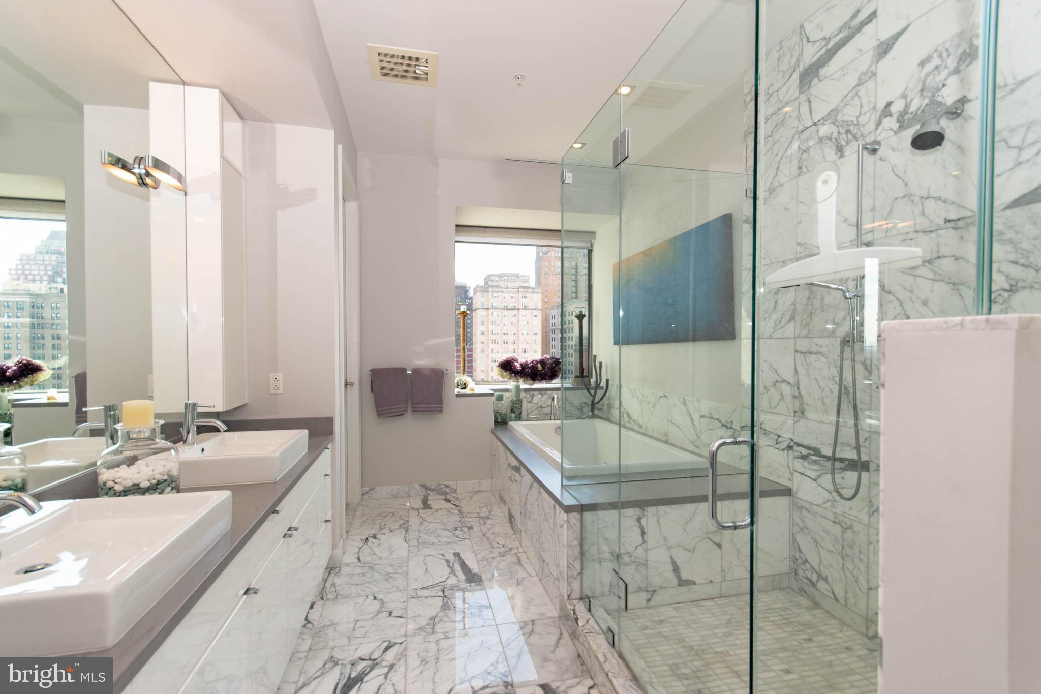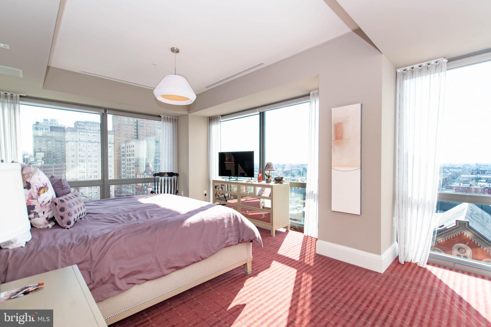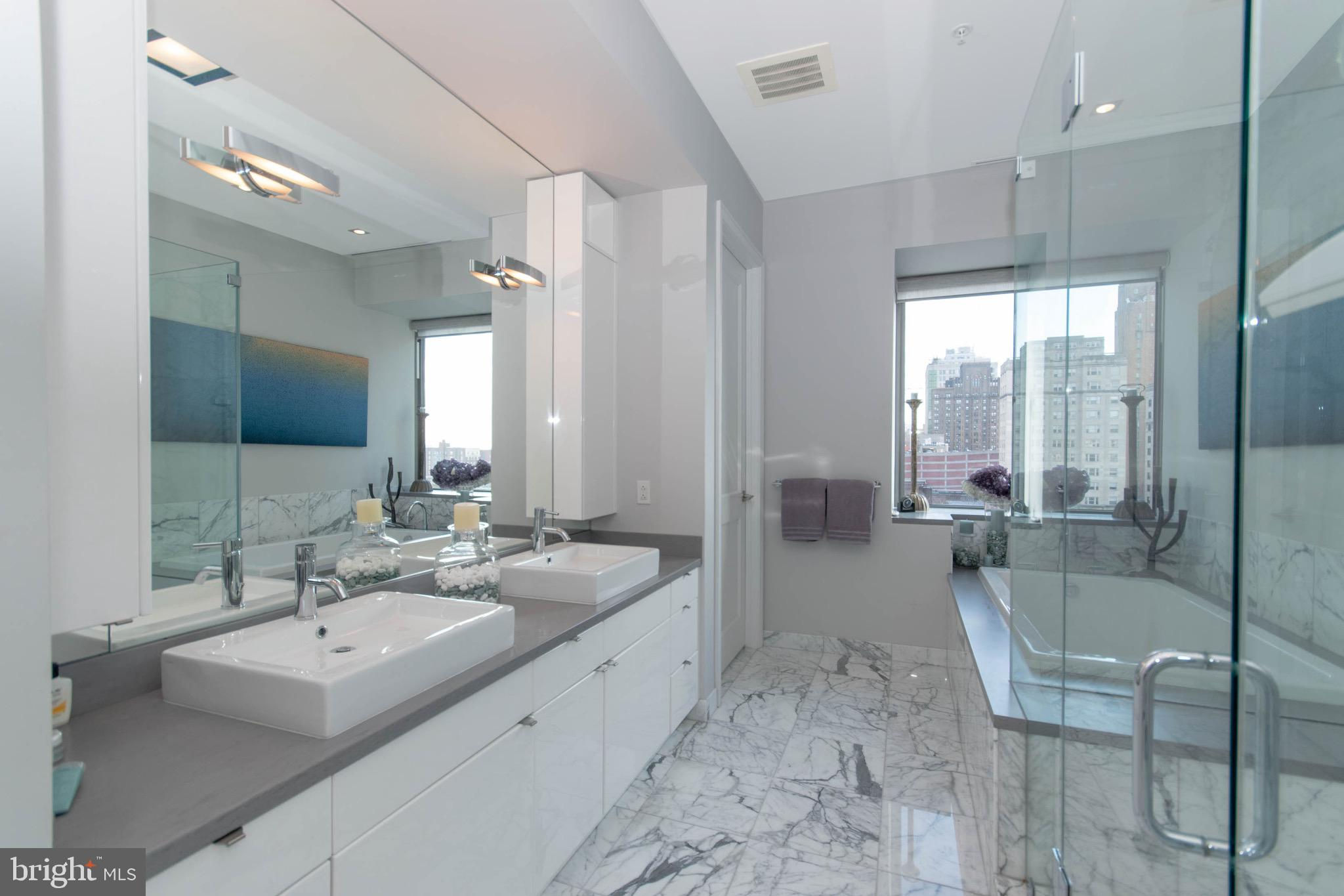Located in luxurious and prominent 1706 - this modern building offers the combination of luxury & privacy - an exclusive 31 story, 31 unit building. Unit 801 is spectacular, fully renovated & offering 4,200+/- sq ft including 4 bedrooms with gorgeous views from every room. Take the keyed elevator to your inviting and private entryway, leading directly to a spacious and spectacular living room, with floor-to-ceiling windows & French doors that access the stunning terrace. This modern layout allows for indoor & outdoor entertaining with multiple patios. Extraordinary exposure & views pour in from every direction. A dramatic, sun-filled interior with 10' ceilings & gorgeous wide-plank oak floors. The sleek & refined chef's kitchen features a large eat-in dining nook, stunning city views, an extremely functional center island, beautiful custom cabinetry, quartz counters, & high-end appliances. Entertain in your new dining room - ideally sized for small intimate parties or large gatherings featuring doors out to your private terrace. Master suite will truly be your own sanctuary with custom walk-in closets & a spa-like en-suite bathroom. The master bath features a soaking tub, separate shower, dual vanity, marble floors, & luxurious fixtures. Two additional bedrooms with sun-lit exposures share a bath & have great closets. The 4th bedroom is currently a Home Theater & screening room. Other features include marble power room, zoned central HVAC system, & automated underground parking for 2 cars. 1706 Rittenhouse Square is the exclusive doorman condominium building in Philadelphia. It is where you want to live in Center City & was designed by Cecil Baker, completed in 2011. Residents enjoy an impressive array of building amenities including full-time doorman, a heated indoor pool, private health club, steam rooms, saunas, bike rooms, & on-site parking. The prime Rittenhouse Square location is in close proximity to the Philadelphia Museum of Art, the new Rodin Museum, many of the worlds finest contemporary art galleries, & some of Philadelphia's best restaurants & shops.