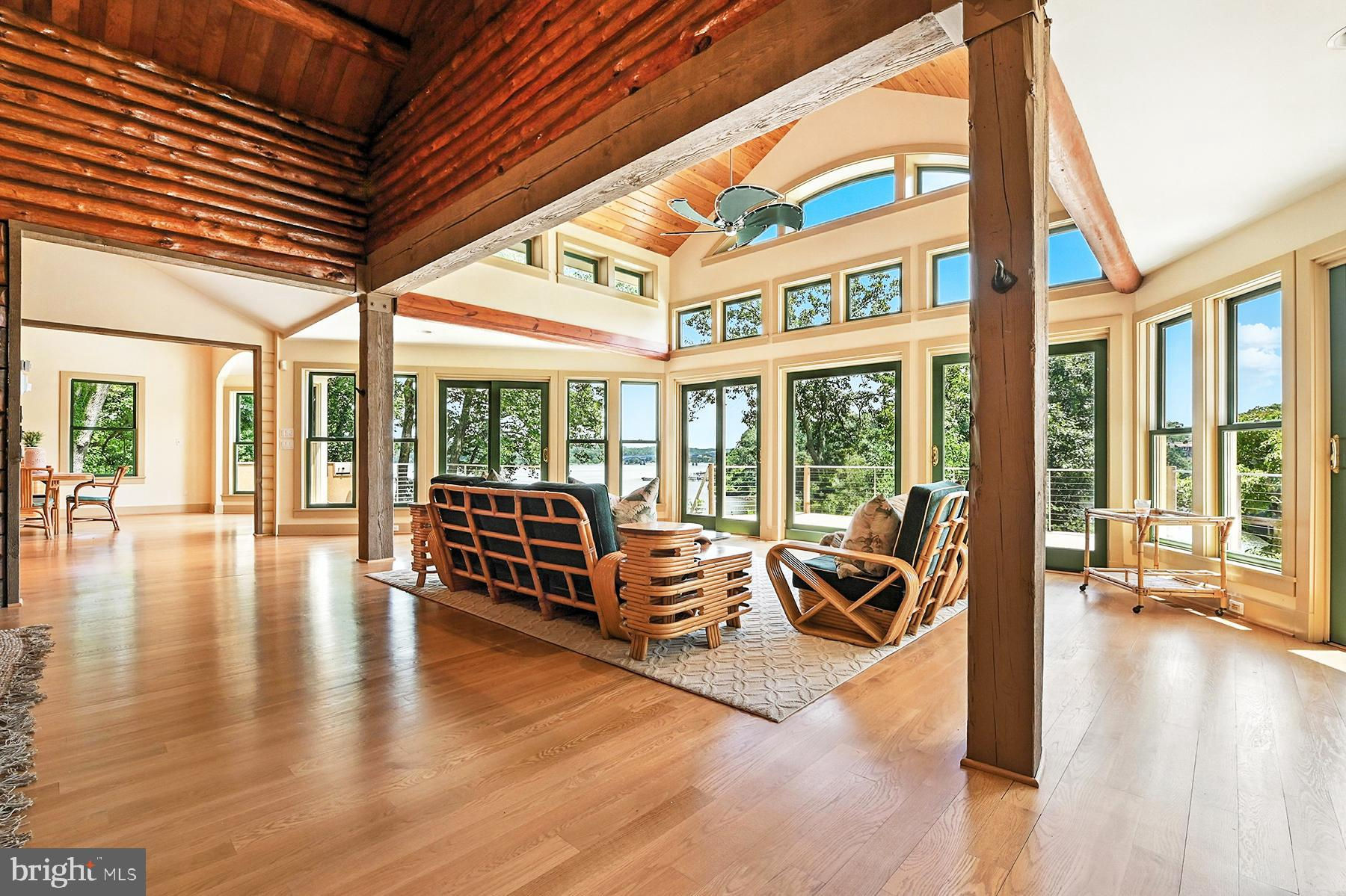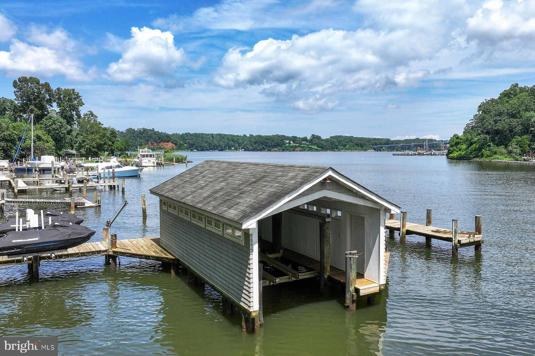 Ideally situated on the banks of Luce Creek with sweeping views down the Severn River, 1715 Porters Hill Road is a unique heritage property with over a century of history. Set on a 1.7 acre lot with 265 ft of waterfrontage, the property includes a large, hard-to-find boathouse that provides both charm and utility for all your waterfront adventures. The private pier has 7+ ft water depth and can accommodate a large vessel as well as an assortment of smaller boats. The tram makes access to the water effortless, and the entire property enjoys an exceptional privacy. Steeped in its storied past yet thoughtfully updated for modern living, this retreat captures the perfect balance of historic charm and casual elegance. The heart of the home is a sunlit great room with original log walls and quarried stone fireplace, a vaulted ceiling, and expansive windows which frame water views at every turn. An adjoining den, with separate entrance option, is a perfect place to relax. This could easily become another main level bedroom with ensuite bathroom. The kitchen is striking under its vaulted ceiling accented by exposed beams. The custom cabinetry, GE Monogram stainless steel appliances and generous island give the space so much functionality while maintaining the artisanal character. The kitchen opens to the dining area overlooking the water. The table is anchored by a craftsman-style light fixture, and the entire first and second floors have beautiful wood floors. Step outside and you’re embraced by nature: multiple porches and decks overlook lush, manicured grounds that lead down to the water’s edge. The main-level primary suite is a true sanctuary, designed for privacy and tranquility. The bedroom, with a vaulted ceiling, has a screened porch overlooking the water. Two expansive walk-in closets offer custom organization systems that would make a clothing connoisseur smile. The spa-like bathroom gets lots of natural light from the windows that frame the water, and the freestanding soaking tub is situated to enjoy this view. A dual-sink vanity, heated floors, generous walk-in shower with a built-in bench, and a spacious cosmetic area with dedicated seating make getting ready feel effortless and luxurious. A dedicated laundry area just off the hallway makes day-to-day living very easy. Part of the primary suite is a gracious office with gas fireplace and outdoor access. This is a totally flexible space: install a wall of bookshelves and you’d have a lovely library. Upstairs, there are two generously sized bedrooms. One has water views and a waterside balcony; the other overlooks the lush landscaping out front. There is a hall bathroom. A separate guest bedroom suite above the garage, complete with its own living area and luxe bathroom, is ideal for visiting friends and family who desire more privacy. The Historical Context: Originally built in the 1880s, this log house was one of three identical structures used as hunting lodges. It is the only one that remains. The construction of the log house is one of great craftmanship, including sizing each log to be approximately the same diameter as others. Lore has it that around the turn of the 20th century, the Naval academy wanted to acquire more land by the academy and traded this peninsula for land across from College Creek. The Naval Academy superintendent, Admiral David Porter, could be where the name Porter’s Hill derived from. In the 1920’s, the Whitehead family – three brothers known for running bootleg liquor to Baltimore and Washington during Prohibition — used the property as a place to entertain and stop on the way to Baltimore. In the 1940s, the brothers’ exploits caught up with them, and the State of Maryland confiscated the Porters Hill peninsula. Through a unique trade involving the Jones family’s gravel pit (now the site of the 895 Tunnel), this private waterfront enclave found its next chapter.