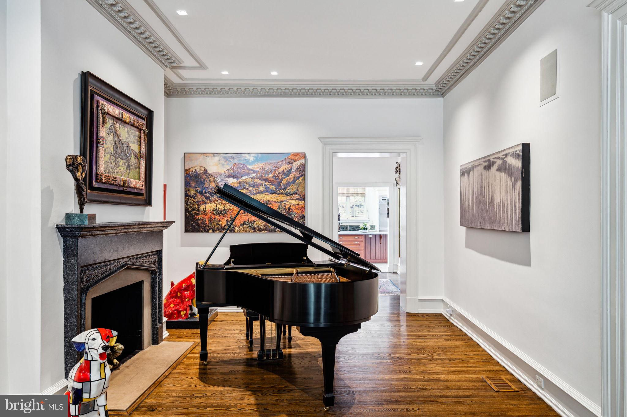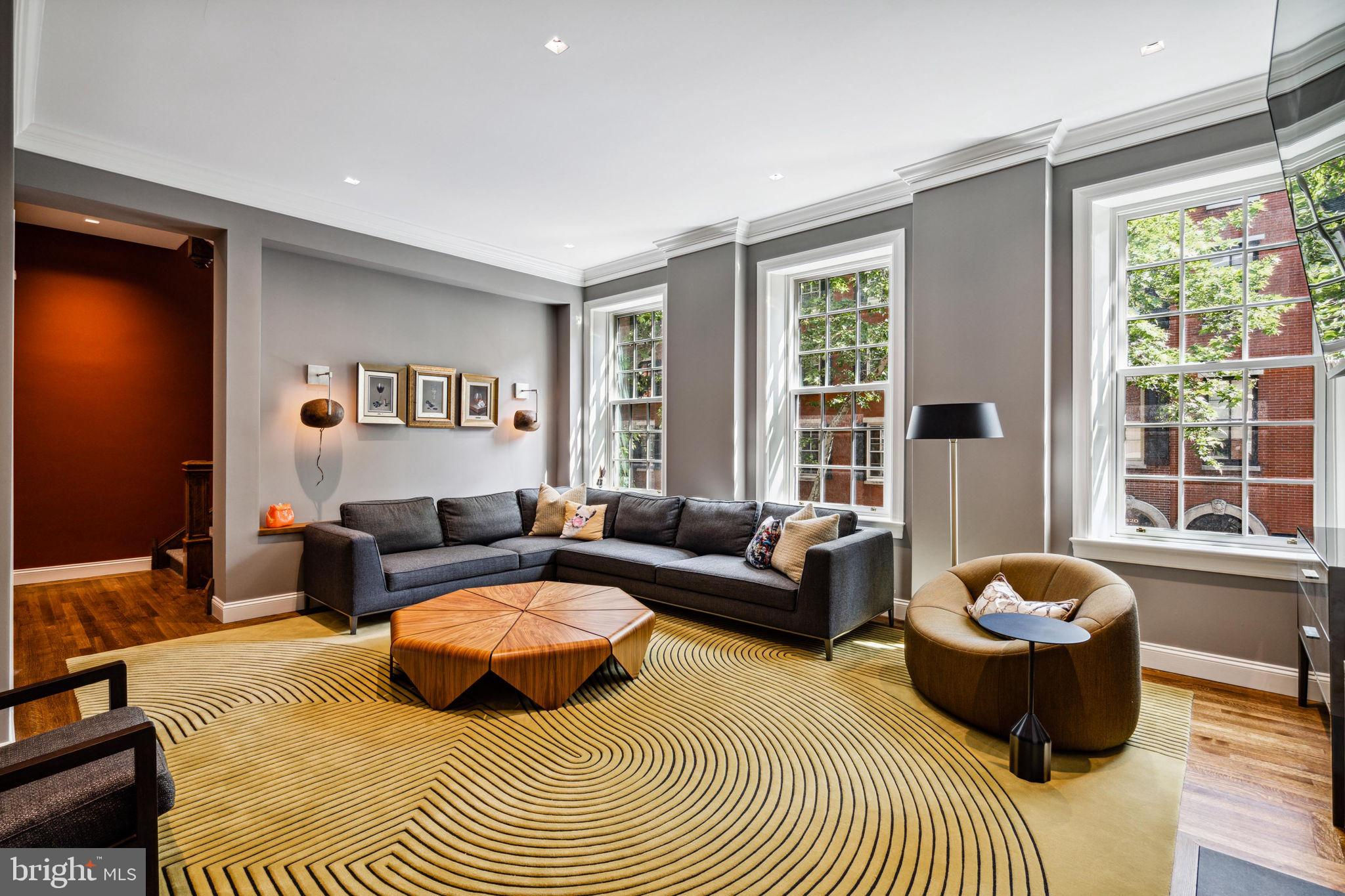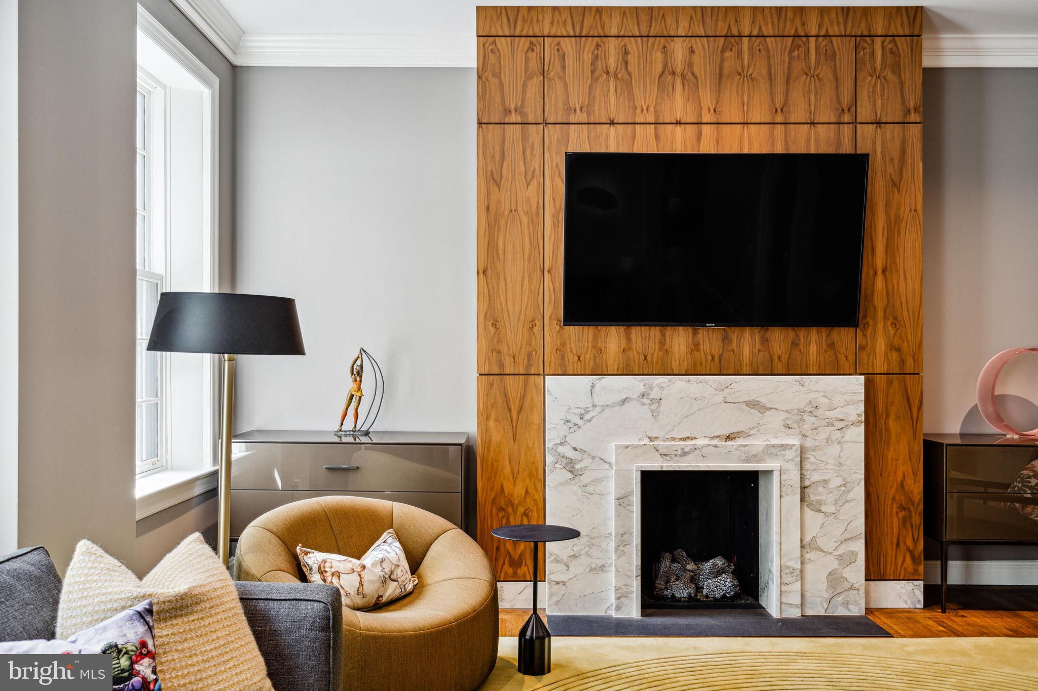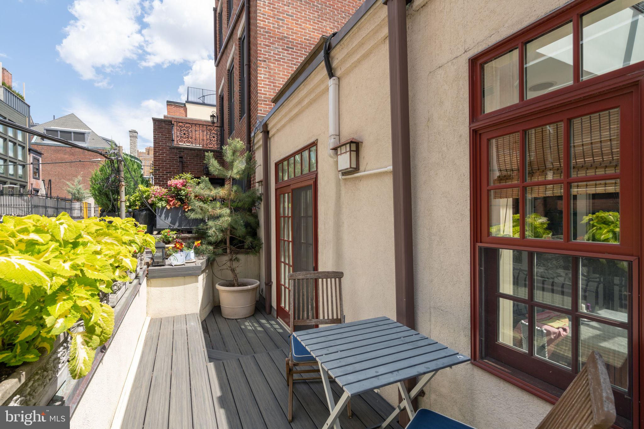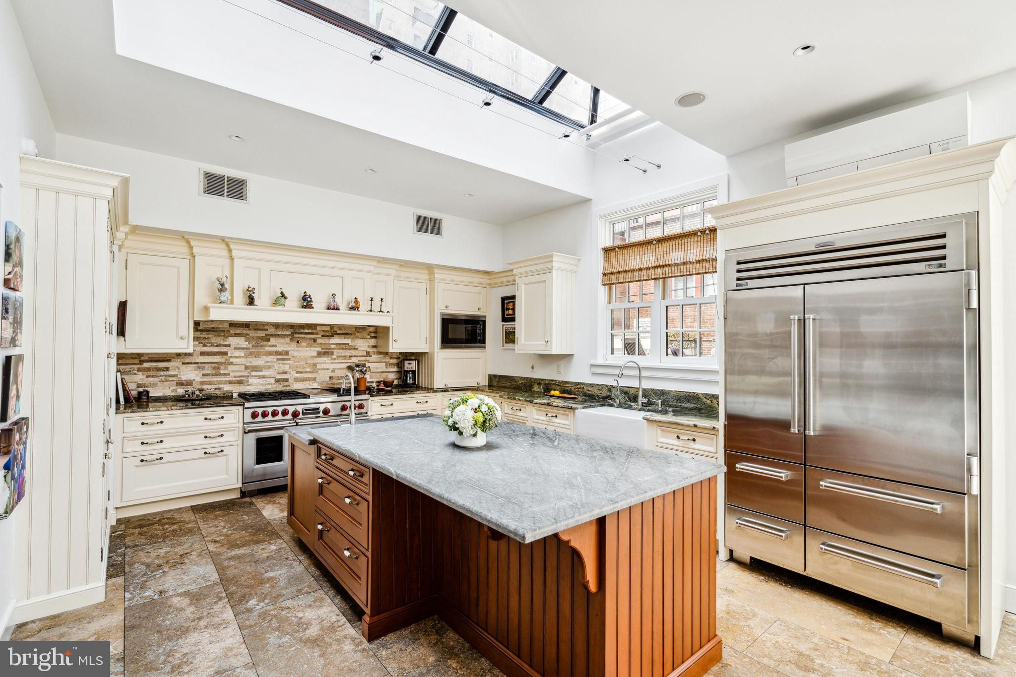 The epitome of elegance and grace, 1819 Delancey Place is a tribute to the past with its classic brick exterior and historic details within, which blend seamlessly with its modern appointments and finishes. This stately Civil War-era build is 29 ft wide on a 75 ft lot -- allowing for grand rooms and light filled spaces which span over 6000 SF on 5 levels of living. Enter through the vestibule into a handsome foyer with the home's hallmark staircase. Off of the foyer are entrances to both the formal dining room and the living room. The living room features 14 ft ceilings, ornate crown molding and is flanked with 2 marble fireplaces. The eat-in kitchen is just as stunning as the rest with 2 vaulted skylights allowing for incredible natural light, plus gourmet appointments such as the center soapstone island, Wolf 6 Burner Range with custom hood vent, 60'' Sub-Zero Refrigerator, built-in microwave, dual sinks and ample custom cabinetry. Just off of the kitchen is a lovely patio - perfect for morning coffee, grilling and al fresco dining. The first level is complete with a powder room and coat closet. The second level of this home underwent a complete renovation on 2020 with the highest level of finish and craftsmanship. The stairway landing opens to an exquisite family room with a gas-burning fireplace with a marble mantle and custom tiger wood paneling. Adjacent to the family room is the Primary Suite which features a bedroom with custom built-ins, an en-suite bathroom with dual vanities, frosted glass shower and water closet. Additionally, the primary suite includes a 200 SF walk-in closet with custom walnut millwork, plus a conveniently located bonus laundry room. The 3rd floor includes 2 bedrooms with 2 renovated hall bathrooms, plus a home office. The top level of this home features 2 additional bedrooms (one is currently being used as a home gym) with a marble bathroom, plus a cedar closet and large custom outfitted storage room. The lower level is an additional 1000 sf of living space which includes a media room with a wet bar with refrigerator & built-in 132 bottle wine cooler plus a very special "Mummers" powder room. Also on this level is a large mud room with full size washer & dryer, storage room, coat closet and access to the 2-car side-by-side garage. Additional features include an elevator which services all 5 levels, a home automation system, recently upgraded multi-zoned HVAC, new historic certified custom windows and a new roof.