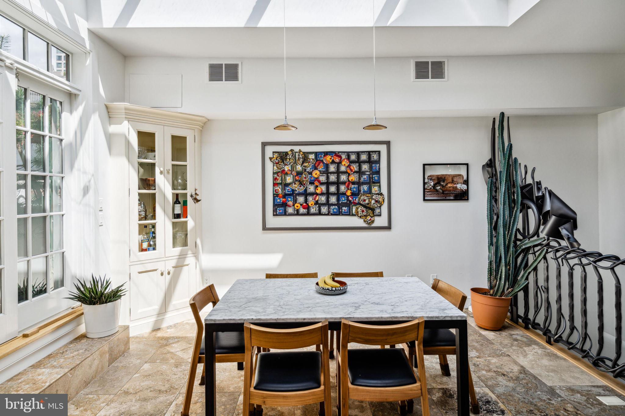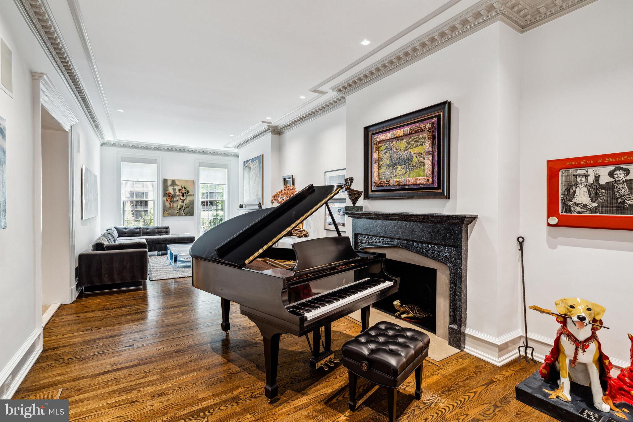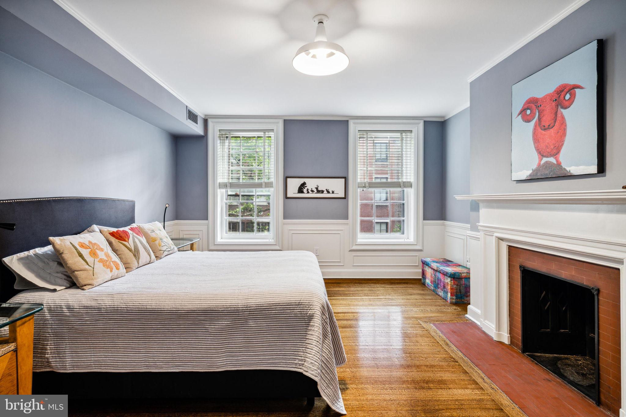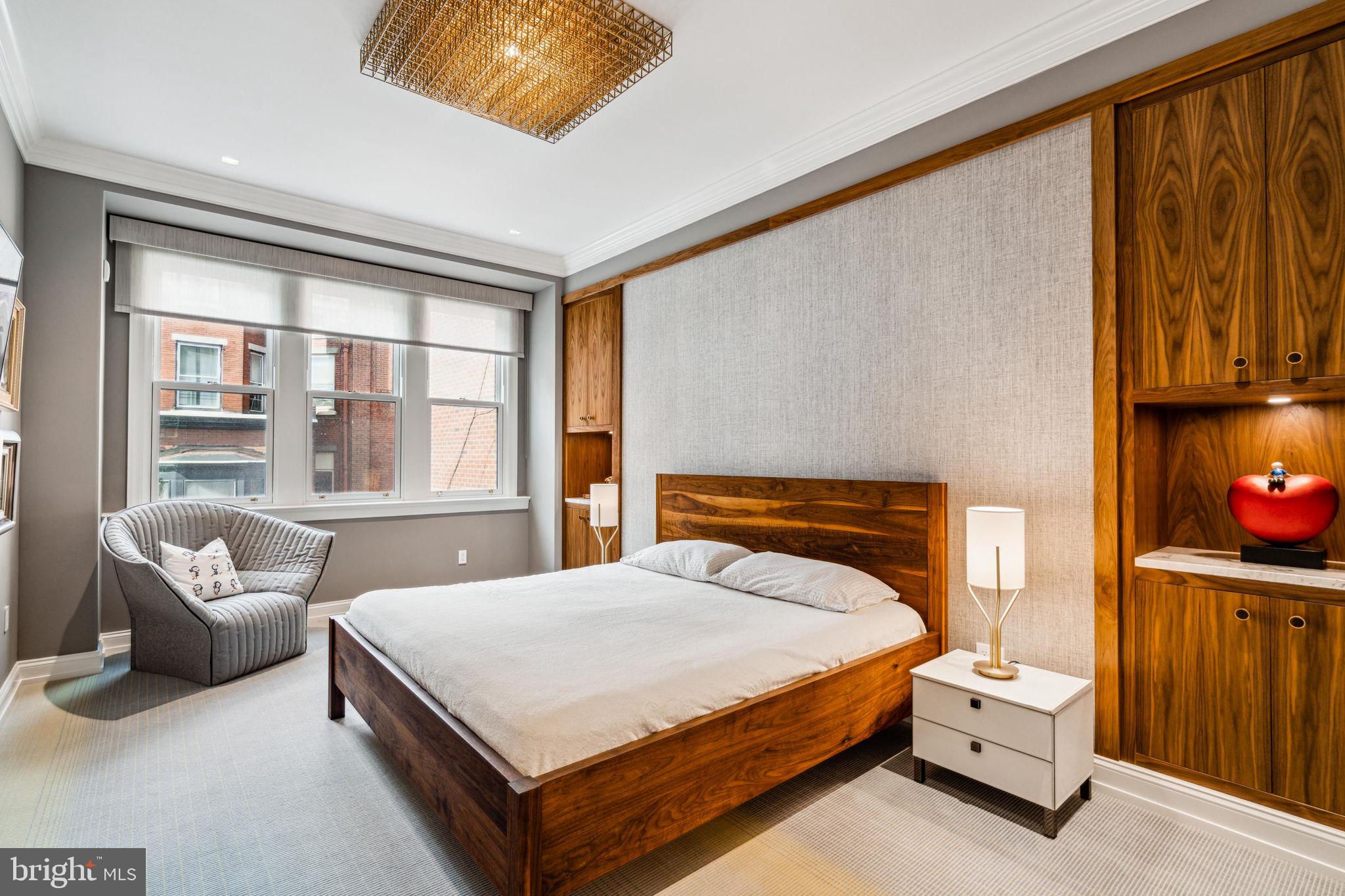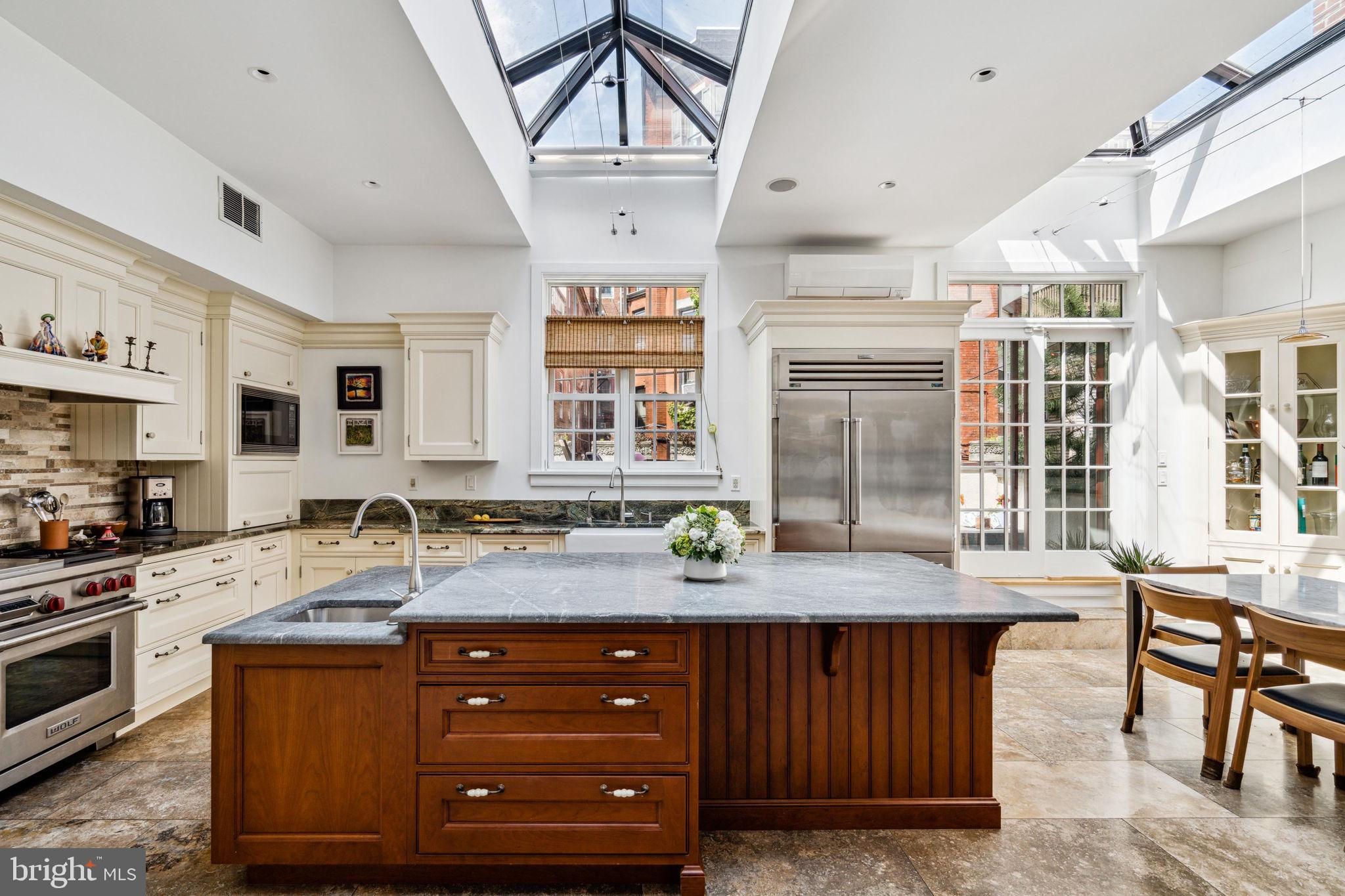 The epitome of elegance and grace, 1819 Delancey Place is a tribute to the past with its classic brick exterior and historic details within, which blend seamlessly with its modern appointments and finishes. This stately Civil War-era build is 29 ft wide on a 75 ft lot -- allowing for grand rooms and light filled spaces which span over 6000 SF on 5 levels of living. Enter through the vestibule into a handsome foyer with the home's hallmark staircase. Off of the foyer are entrances to both the formal dining room and the living room. The living room features 14 ft ceilings, ornate crown molding and is flanked with 2 marble fireplaces. The eat-in kitchen is just as stunning as the rest with 2 vaulted skylights allowing for incredible natural light, plus gourmet appointments such as the center soapstone island, Wolf 6 Burner Range with custom hood vent, 60'' Sub-Zero Refrigerator, built-in microwave, dual sinks and ample custom cabinetry. Just off of the kitchen is a lovely patio - perfect for morning coffee, grilling and al fresco dining. The first level is complete with a powder room and coat closet. The second level of this home underwent a complete renovation on 2020 with the highest level of finish and craftsmanship. The stairway landing opens to an exquisite family room with a gas-burning fireplace with a marble mantle and custom tiger wood paneling. Adjacent to the family room is the Primary Suite which features a bedroom with custom built-ins, an en-suite bathroom with dual vanities, frosted glass shower and water closet. Additionally, the primary suite includes a 200 SF walk-in closet with custom walnut millwork, plus a conveniently located bonus laundry room. The 3rd floor includes 2 bedrooms with 2 renovated hall bathrooms, plus a home office. The top level of this home features 2 additional bedrooms (one is currently being used as a home gym) with a marble bathroom, plus a cedar closet and large custom outfitted storage room. The lower level is an additional 1000 sf of living space which includes a media room with a wet bar with refrigerator & built-in 132 bottle wine cooler plus a very special "Mummers" powder room. Also on this level is a large mud room with full size washer & dryer, storage room, coat closet and access to the 2-car side-by-side garage. Additional features include an elevator which services all 5 levels, a home automation system, recently upgraded multi-zoned HVAC, new historic certified custom windows and a new roof.