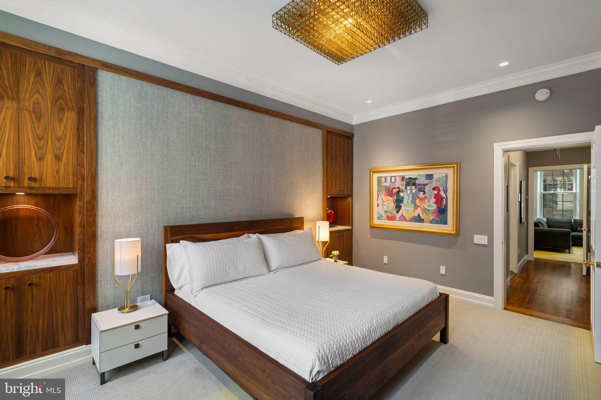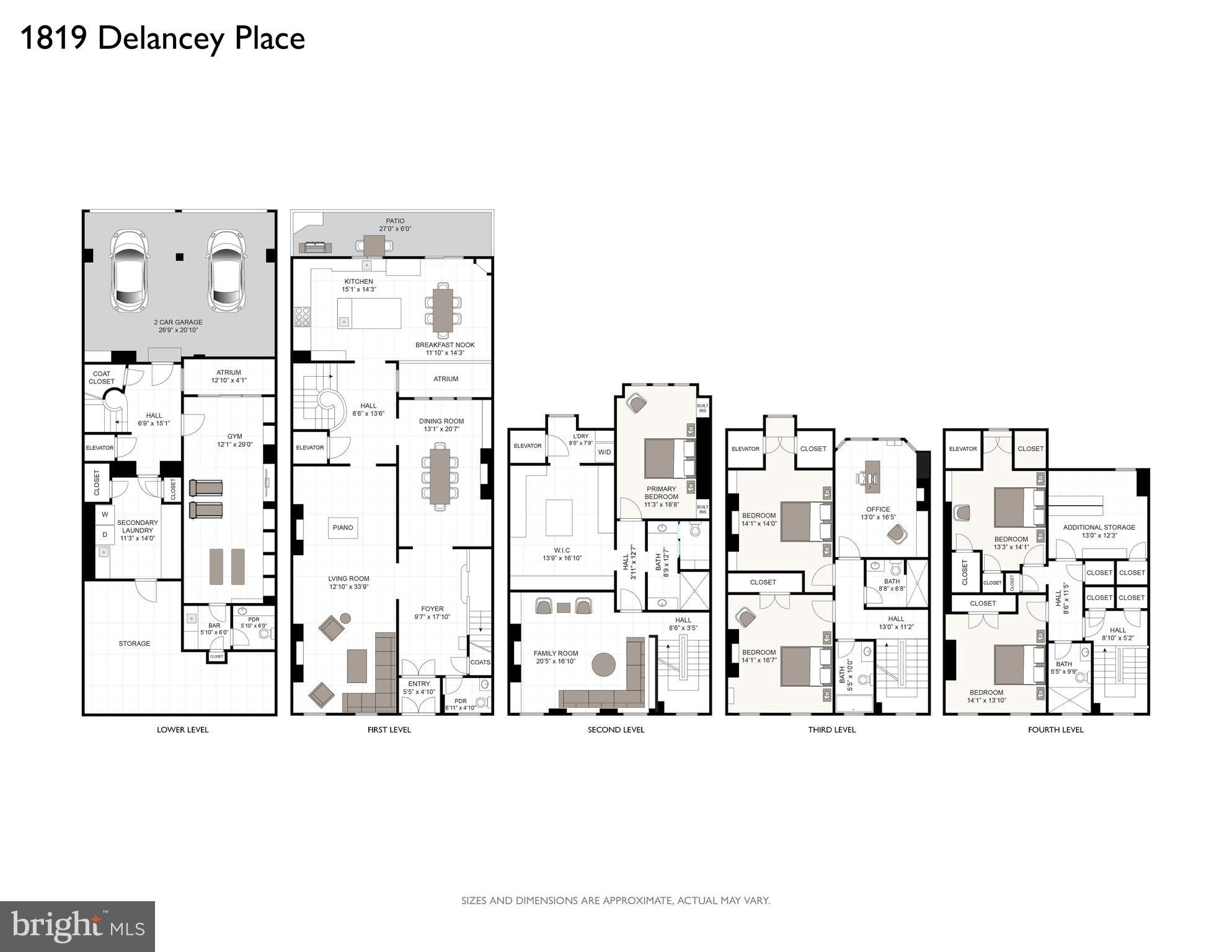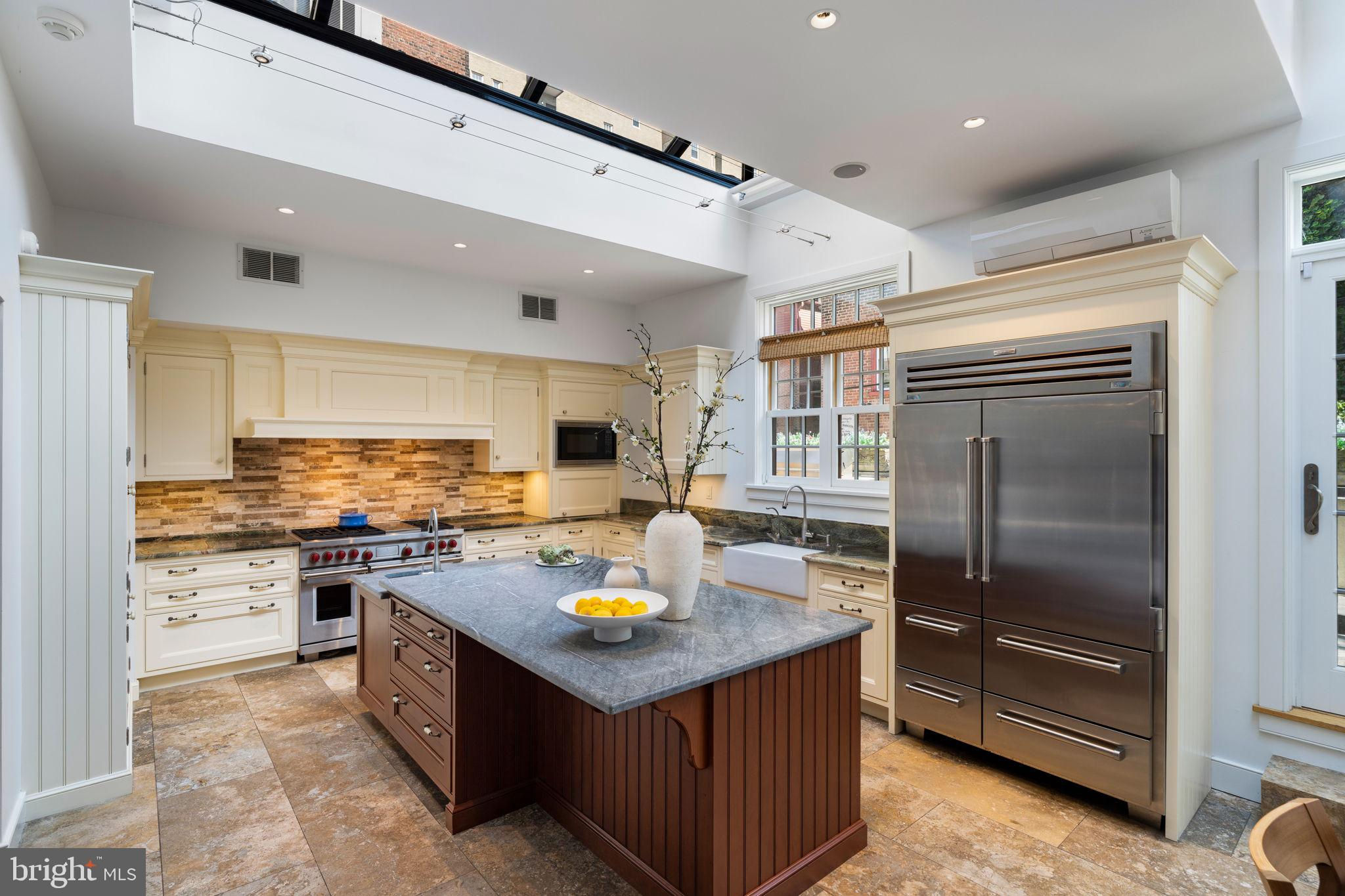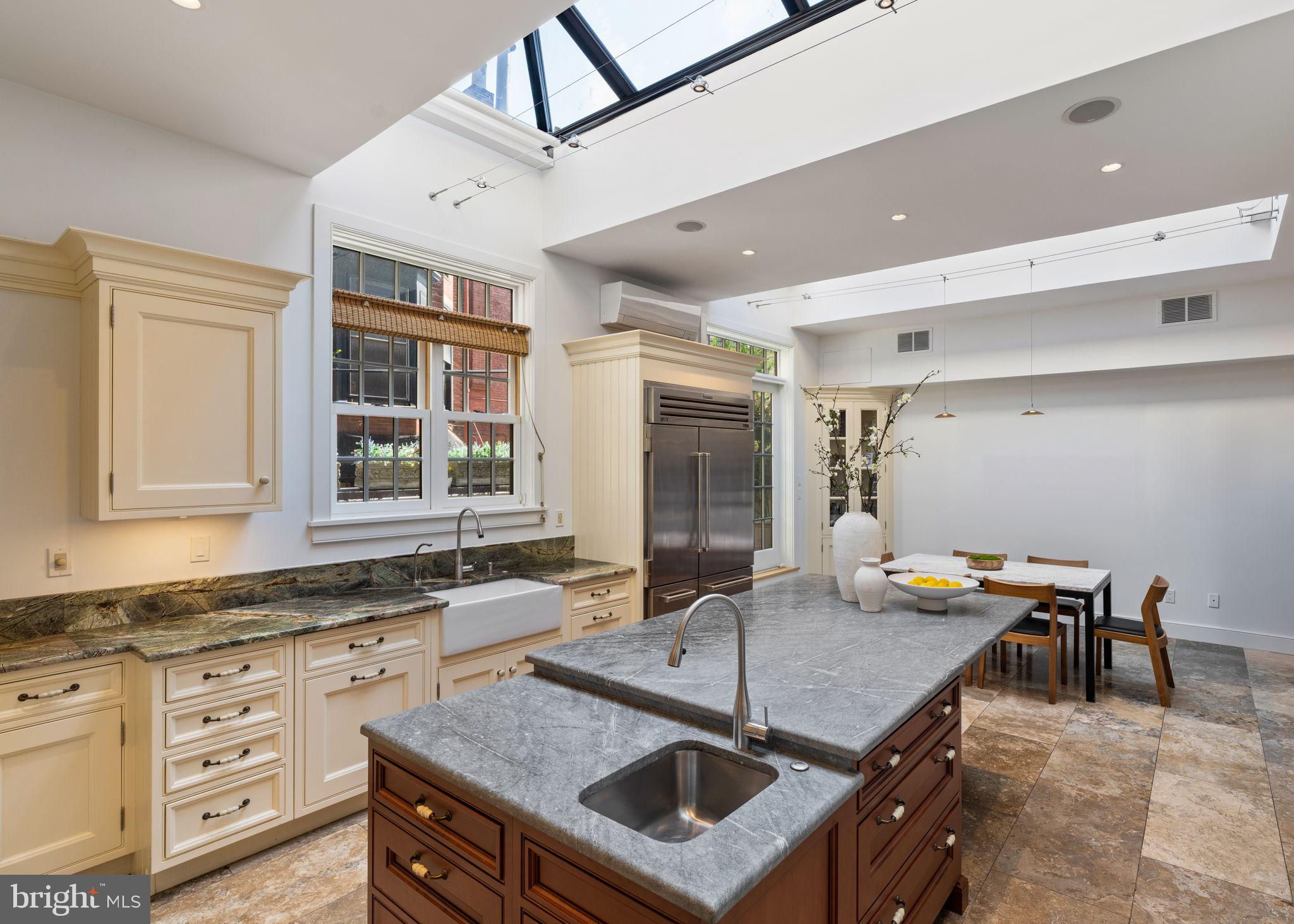 A Rare Double-Wide Gem on Iconic Delancey Place Welcome to 1819 Delancey Place—one of only four double-wide homes on this highly coveted, Rittenhouse Square block. Spanning an impressive 29 feet in width—compared to the street standard of 20 feet—this grand, historically significant estate residence offers over 6,000 square feet of luxurious living space and exemplifies the grandeur of classic pre-war design while offering contemporary comforts. Behind its stately brick façade lies a home of exceptional scale and comfort. The expansive layout includes five floors serviced by a 5-stop elevator and a true side-by-side TWO-car garage—a rare and highly sought-after convenience in this location. The main level invites you into a gracious foyer, setting the tone for the home’s classic design and scale. The formal living and dining rooms feature soaring ceilings, intricate crown molding, and three marble fireplaces, complemented by Lutron recessed lighting and a built-in sound system—perfect for hosting in style. At the heart of the home is the chef’s kitchen, anchored by a large soapstone island and flooded with natural light thanks to two dramatic skylights. Outfitted with a 48 inch Wolf range, 60" Sub-Zero refrigerator, dual sinks, and custom cabinetry, the kitchen flows directly to a private rear patio with a built-in gas grill—ideal for outdoor entertaining and alfresco dining. The second floor has been completely reimagined into a thoughtfully designed living level. It features a stunning family room (approx 21 feet wide) overlooking Delancey Place, adorned with tigerwood paneling, a gas fireplace and enjoys southern exposure. The adjacent primary suite is a peaceful and newly done retreat, boasting an elegant en-suite bath with dual vanities, frosted glass rainfall shower, and water closet. A standout feature is the 200-square-foot custom walk-in closet—fully outfitted in walnut millwork and cleverly integrated with its own laundry area and direct elevator access for ultimate convenience. Upstairs, you'll find four additional bedrooms and three full bathrooms—two of which have been completely gut renovated with designer finishes. There's also a dedicated home office, a cedar closet, and a large storage room. There are stairs that do go up to the roof making a roof top project easier! The lower level offers an additional 1,000 square feet of living space. Thanks to a central atrium, this level feels bright and open, unlike any typical city basement — making it ideal for a media room, home fitness center, or casual lounge. It also includes a wet bar with a wine cooler, a whimsical “Mummers” powder room, a full laundry room, extra storage, and direct access to the garage. Other highlights include a Crestron smart home system, upgraded multi-zone HVAC, new historic-certified windows, programmable Lutron lighting throughout, and a recently installed roof. Perfectly positioned just steps from Rittenhouse Square and the city’s premier dining, shopping, and cultural offerings, 1819 Delancey Place is an unparalleled legacy property on the most prestigious tree-lined Philadelphia block.