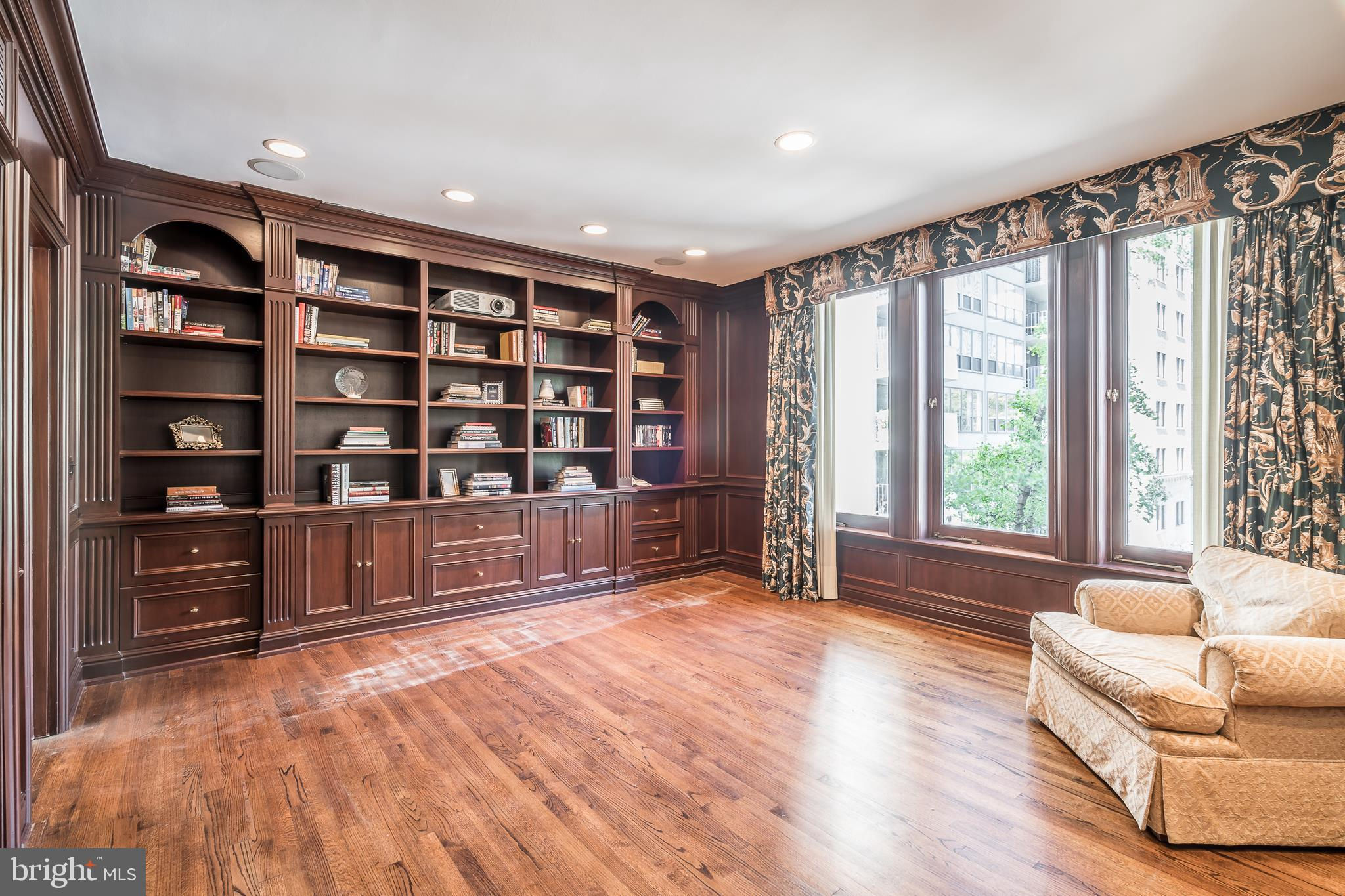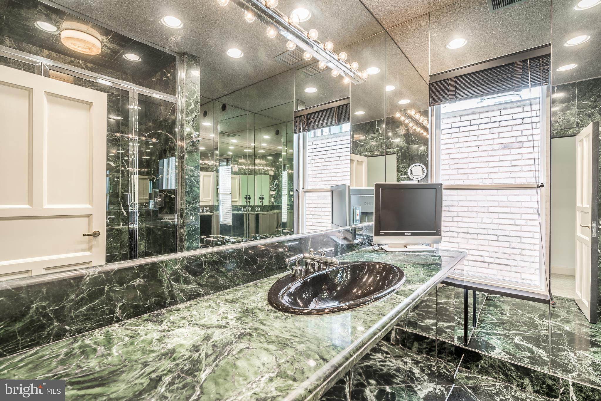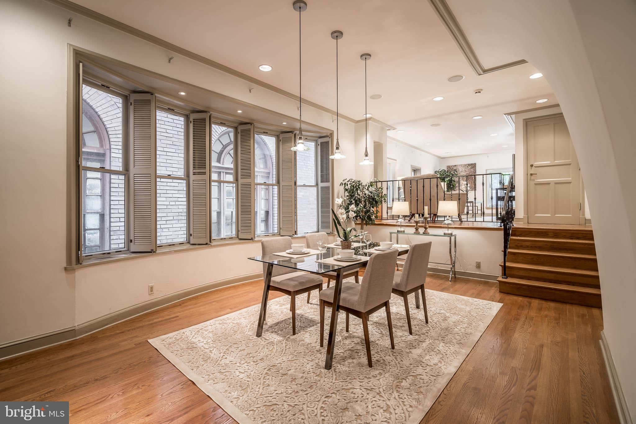 Location, location, location! One of only two townhomes on Rittenhouse Square; 1910 Rittenhouse boasts magnificent, unobstructed views of The Square. The residence has 20 of frontage along Rittenhouse Square and extends all the way back to Manning Street where there is access to a private, underground 2-car tandem garage. The first floor of the townhome features a foyer, study, entertainment room with wet bar, a second study or den and a powder room. The second floor of the townhome has a living room with working fireplace; dining room with working fireplace and ceiling mural done by a well-known European church painter; kitchen with granite countertops, custom stainless cabinets, a Sub-Zero refrigerator and an island; and a powder room. The third floor offers three bedrooms (currently being used as one bedroom, a dressing room and an exercise room), a media room with built-in bookcases, a full bathroom and a powder room. The fourth floor is a large master suite with curved wall architectural detail and three porthole windows. The lower level of the house is home to a two car tandem garage, laundry room, full bathroom and storage room. There is an atrium over the central staircase that runs the height of the home; the top of the atrium has a custom Charles Ross sculpture. All finishes, details and appointments were custom designed and installed for this house and are of the highest quality.