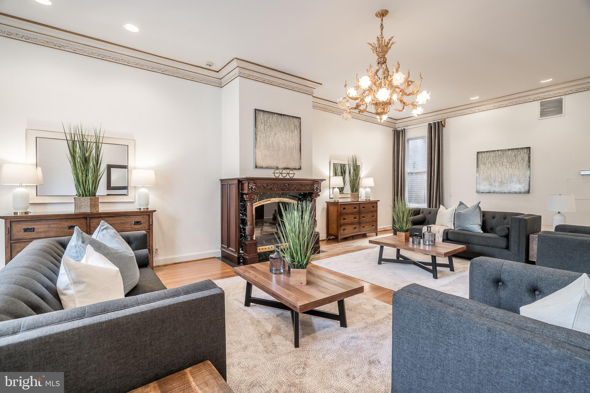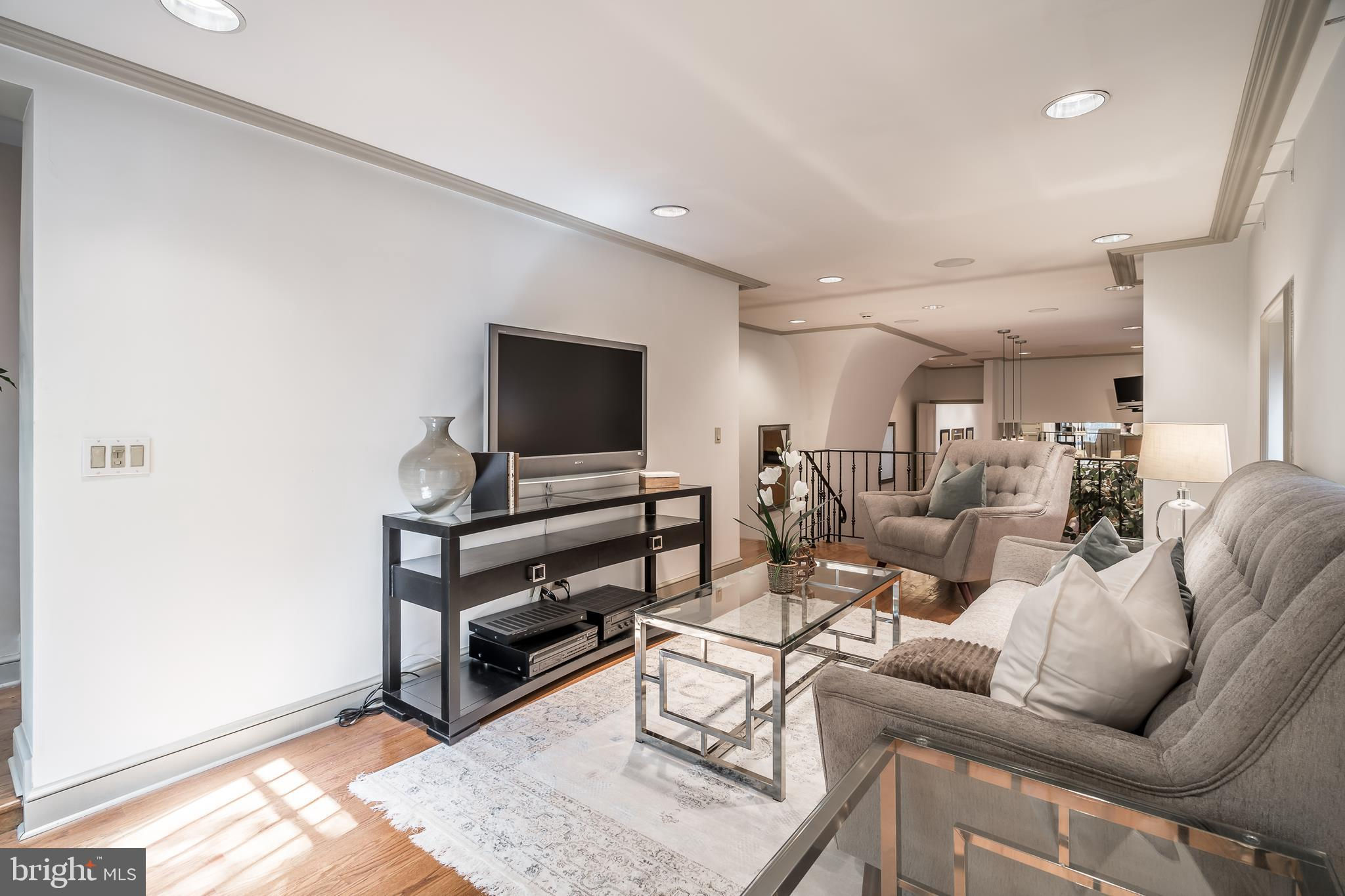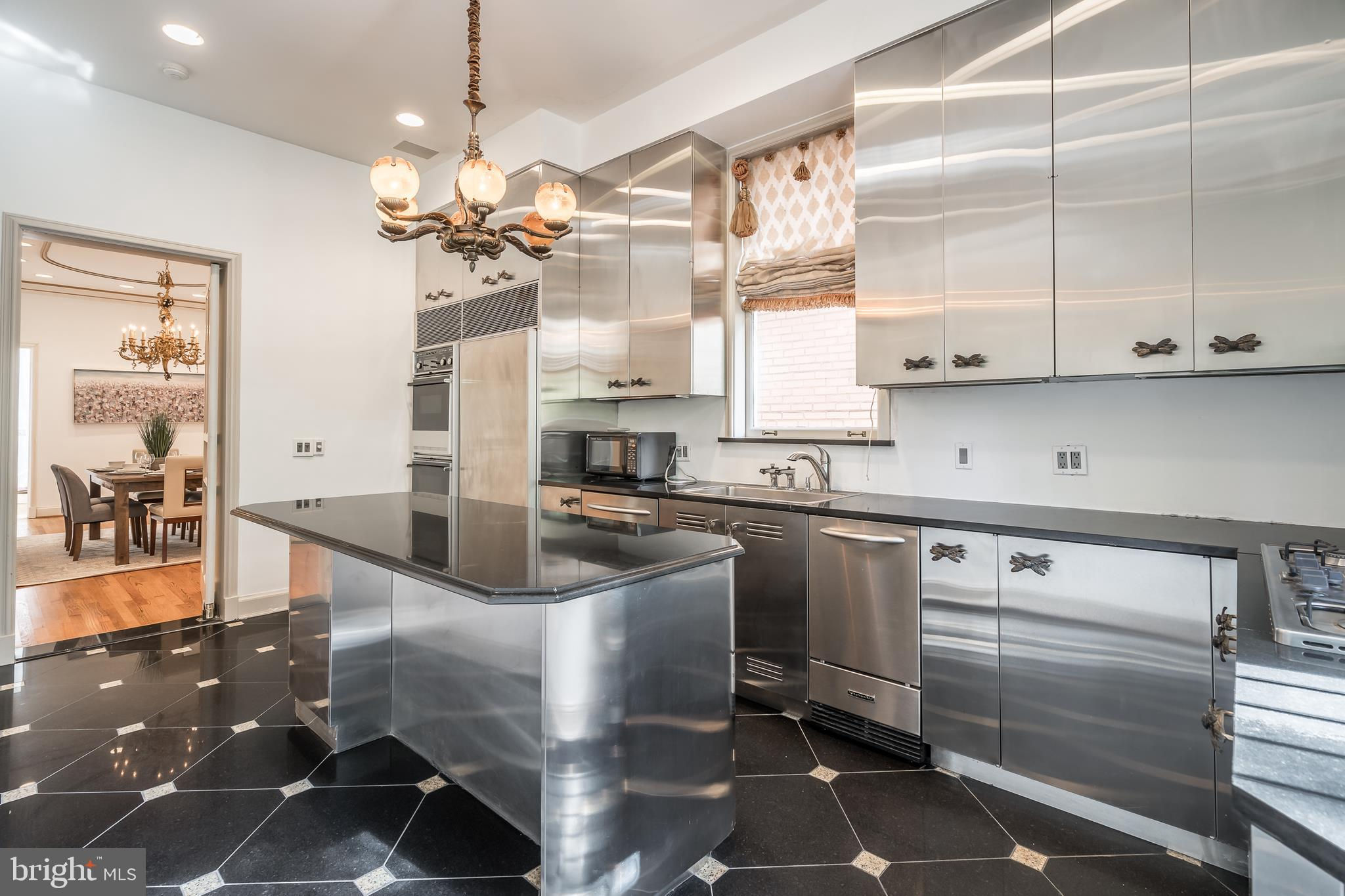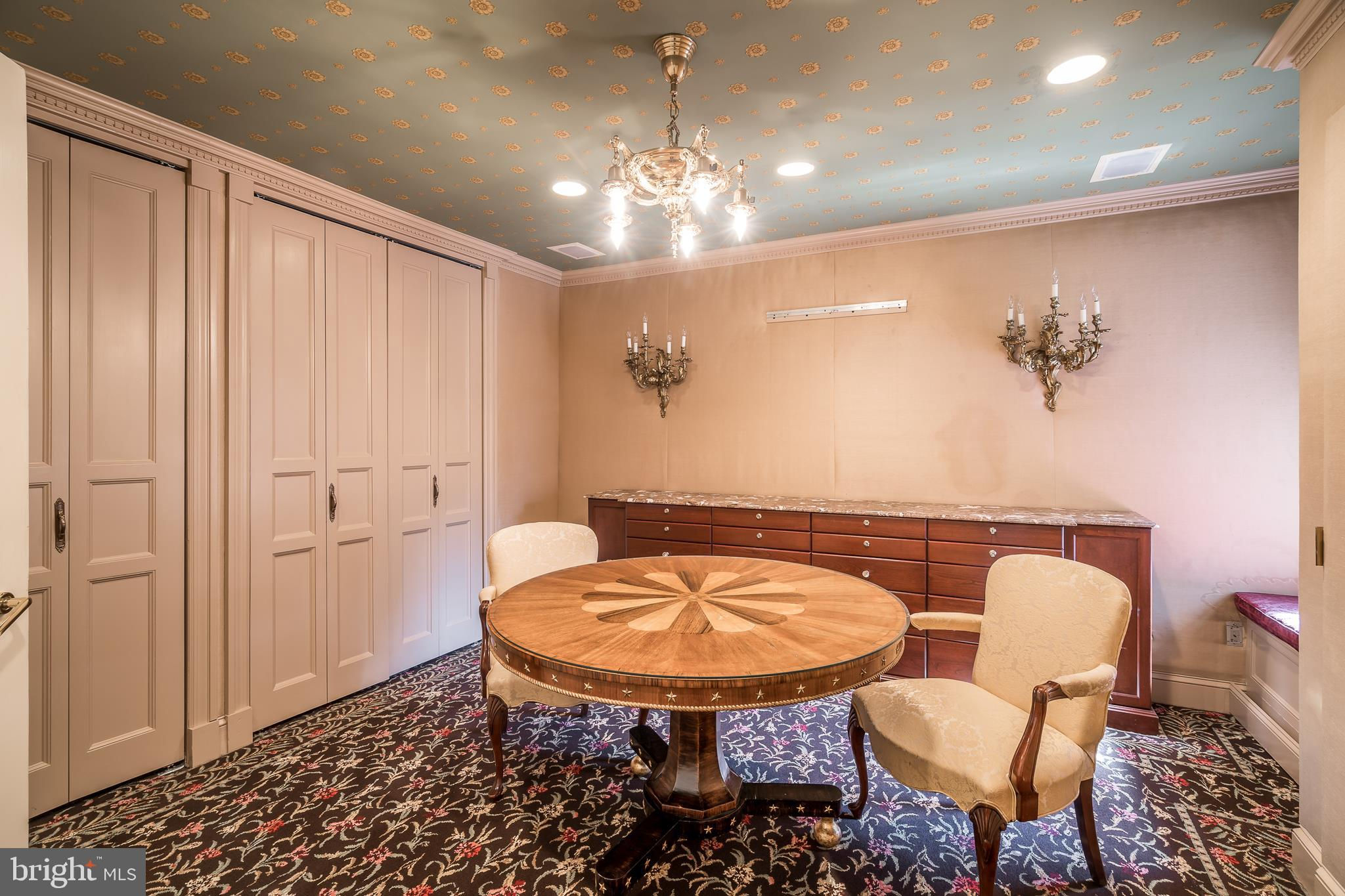 Location, location, location! One of only two townhomes on Rittenhouse Square; 1910 Rittenhouse boasts magnificent, unobstructed views of The Square. The residence has 20 of frontage along Rittenhouse Square and extends all the way back to Manning Street where there is access to a private, underground 2-car tandem garage. The first floor of the townhome features a foyer, study, entertainment room with wet bar, a second study or den and a powder room. The second floor of the townhome has a living room with working fireplace; dining room with working fireplace and ceiling mural done by a well-known European church painter; kitchen with granite countertops, custom stainless cabinets, a Sub-Zero refrigerator and an island; and a powder room. The third floor offers three bedrooms (currently being used as one bedroom, a dressing room and an exercise room), a media room with built-in bookcases, a full bathroom and a powder room. The fourth floor is a large master suite with curved wall architectural detail and three porthole windows. The lower level of the house is home to a two car tandem garage, laundry room, full bathroom and storage room. There is an atrium over the central staircase that runs the height of the home; the top of the atrium has a custom Charles Ross sculpture. All finishes, details and appointments were custom designed and installed for this house and are of the highest quality.