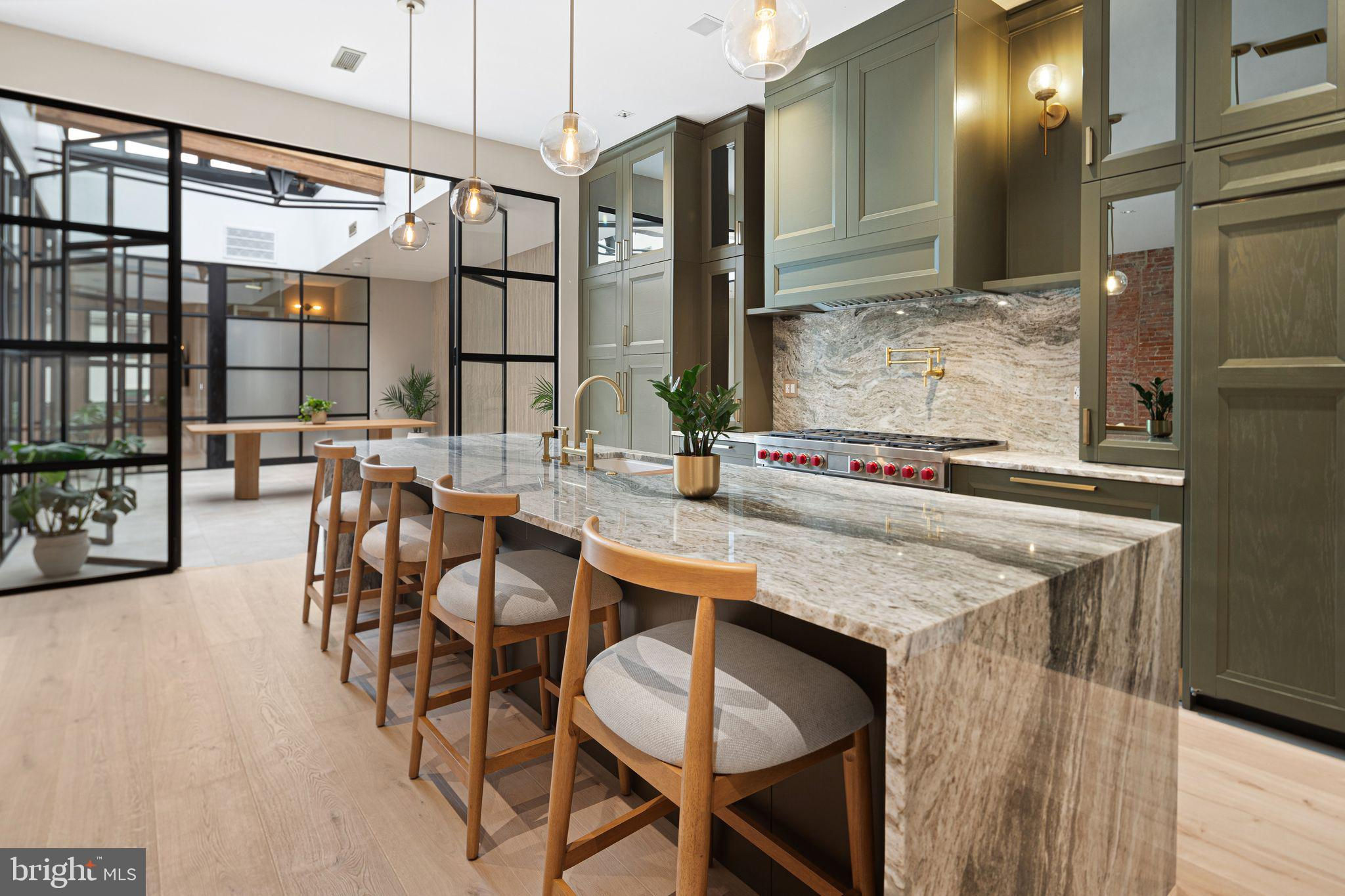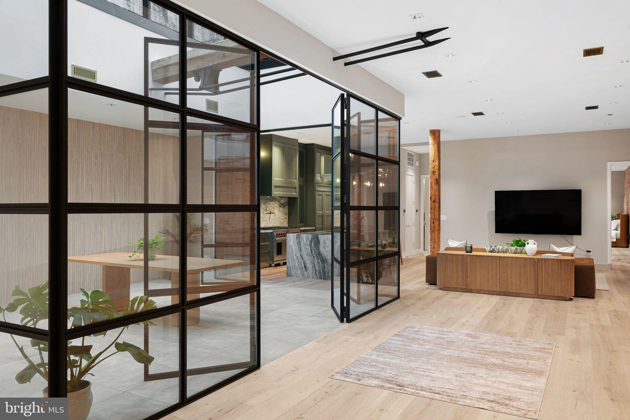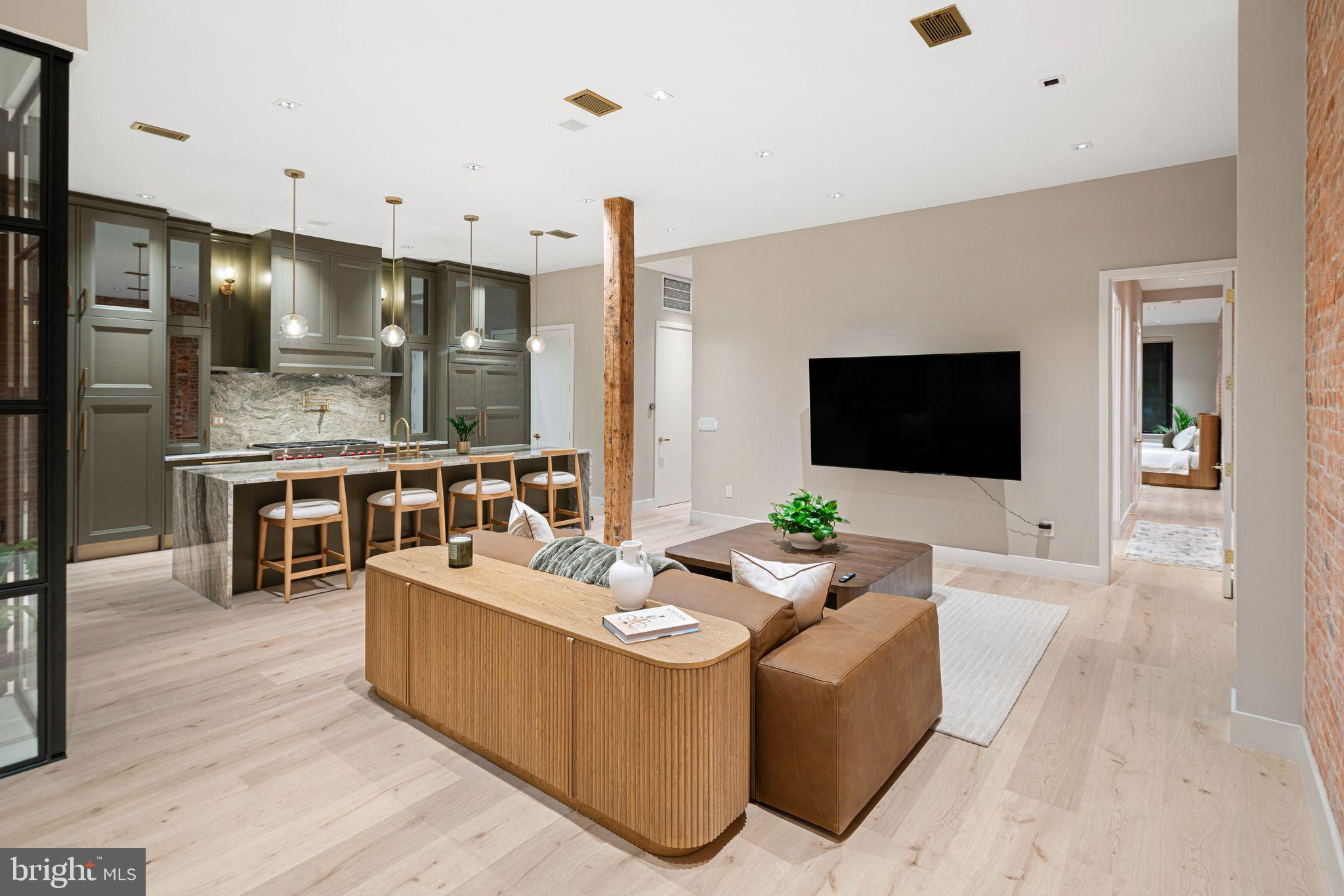 2017 Sansom Street is a designer-curated masterpiece unlike anything on the market and located in the heart of prestigious Rittenhouse Square. This expansive residence was thoughtfully designed from top to bottom and offers nearly 6,000 square feet of space. The expansive single floor living area is paired with an unheard-of 12+ car private garage with incredible ceiling height. Combining historic charm with modern elegance, the home’s dramatic exposed brick walls, wood beams and soaring ceilings set the stage for an unparalleled lifestyle. The magazine-worthy living space is an expression of design and taste, where the stunning Chef’s kitchen is the heart of the home. The stunning custom cabinetry is combined with premium finishes and top of the line appliances. Multiple living spaces allow you to effortlessly entertain formally or informally. A true testament to the uniqueness of this home is a center glass-encased indoor arboretum allowing natural light to pour in, creating a striking centerpiece for everyday living and elegant entertaining. The luxurious primary suite is designed as a retreat, complete with a spa-inspired bathroom featuring a double vanity, soaking tub and oversized walk-in shower. Two additional bedrooms and bathrooms provide comfort and versatility for guests, office, or creative space. The crowning feature of this property is its 12+ car private garage—a true rarity in Center City and the ultimate urban luxury. Climate controlled with stunning ceiling heights and custom lighting, this is the perfect showcase for an owner's collection. Offering scale, character, and conveniences unlike anything else in Philadelphia, this Rittenhouse Square residence is truly one of a kind. Taxes and square footage are the responsibility of the buyer to have verified independently.