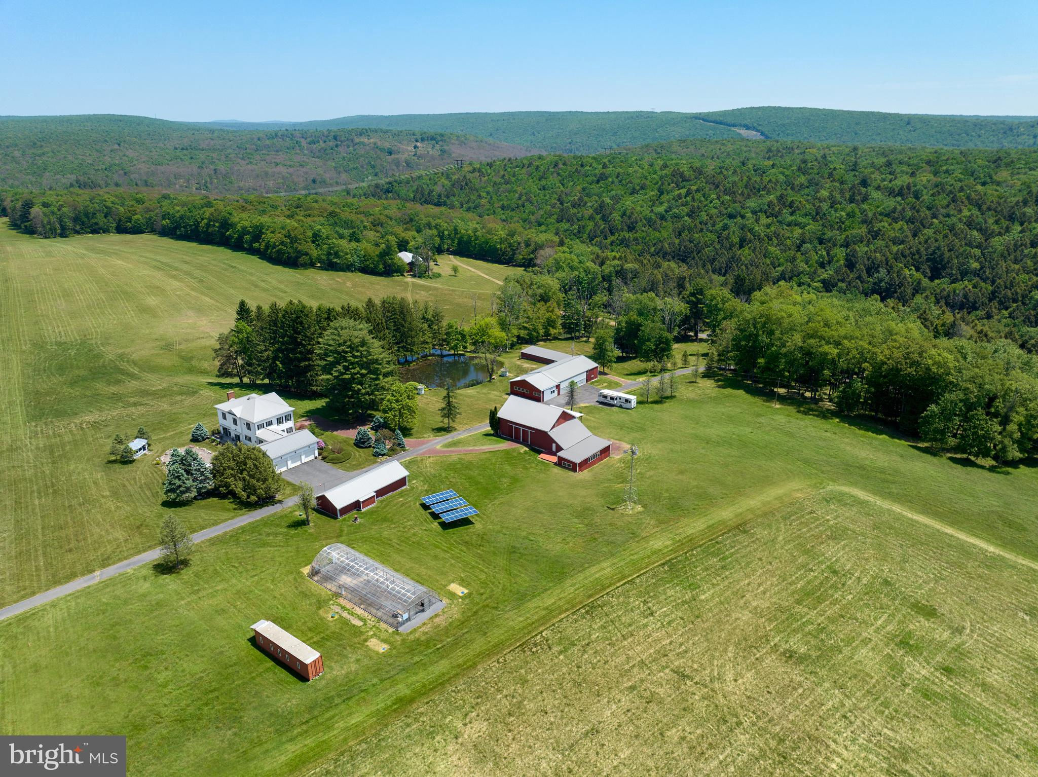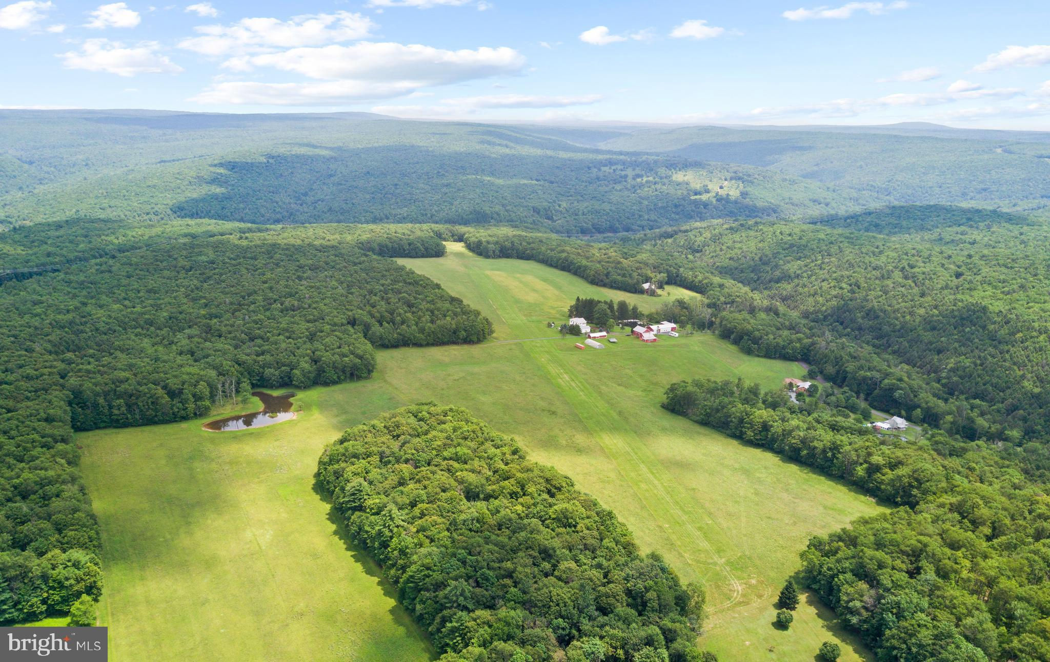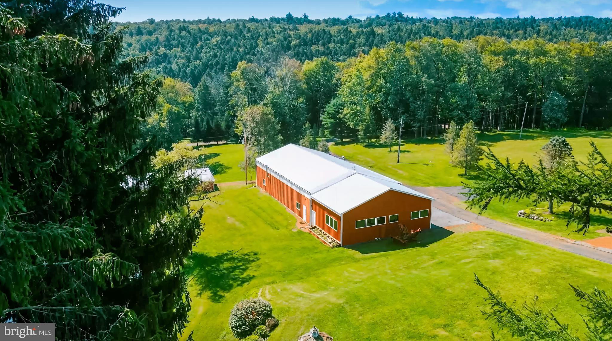 This peaceful and secluded Country Mountain Estate of over 370 acres is truly one of a kind. From the scenic water views and nature's wildlife to the rolling meadows and rich wooded acreage, the property is a dream come true. For aircraft enthusiasts, there's a registered 3,500 ft private grass airstrip with a heated and insulated hangar that will house up to three planes. (Identifier: 8PA3, Deer Meadows Airstrip). Also highlighting the property are a beautiful custom-built English Manor home, an updated 19th century bank barn, 60 ft x 100 ft pole barn, greenhouse, windmill, and countless more amenities throughout. The tranquil grounds are perfect for relaxing away the worries and chaos of everyday life. Enjoy scenic views from one of the custom gazebos overlooking the amazing ponds and catch a glimpse of white-tailed deer, wild turkey, geese, ducks, and all that nature has to offer. Also included in the sale are two beautiful cabins that can be used for extended family, guest homes, or even as income driven vacation rentals. Rustic, yet still luxurious, these two cabins offer three bedrooms, two baths, spacious open ceilings, and covered private decks on both levels. The cabins are decorated with unique and rare root furniture and include numerous fireplaces and fully equipped kitchens. You will feel warm and welcomed the moment you step through the door! The two-story English Manor home is a breathtaking gem with a classic feel and modern amenities, featuring three bedrooms and two and a half baths. As soon as you step inside, you'll immediately notice the stunning hardwood floors, high ceilings, gorgeous crown molding, and large windows with beautiful views around every corner. The main level includes an open kitchen with center island and cooktop, a plethora of cabinet space, and stainless-steel appliances. The perfect gathering space is the family room which hosts a warm fireplace, gorgeous crown and chair rail molding, and convenient access to the side patio. The finished lower level adds to the entertainment space, offering a spacious recreational area for game nights, and even an entertainment area for watching movies or catching the big game with a group of friends. An incredible backyard patio awaits, leading to an in-ground pool that's perfect for the warm summer season! It is truly the ideal area for soaking in the sun and relaxing under a calm breeze surrounded by nature. There is truly something for everyone on and around this property. Go fishing in your private spring fed trout ponds and streams with convenient access to nearby lakes and rivers. Enjoy biking on miles of trails, hiking to the 50-foot waterfall on your way to the Lehigh River. You will find yourself just minutes from whitewater rafting, tubing, and other water recreational activities. Also have fun mountain biking and snowmobiling on your own groomed trails. Endless activities are yours to enjoy every season. Words truly cannot describe this breathtaking estate in the way it deserves. Schedule your showing now and witness this once in a lifetime property with your own eyes today!