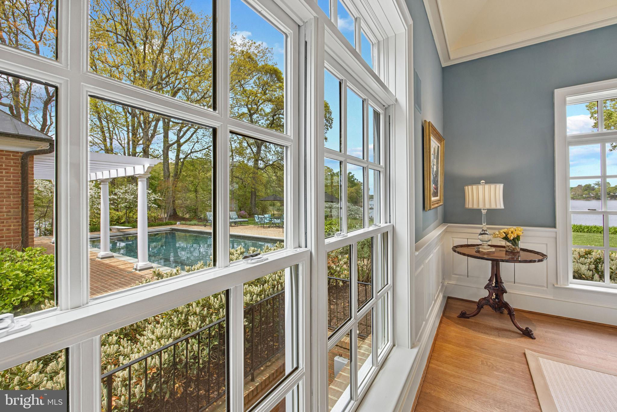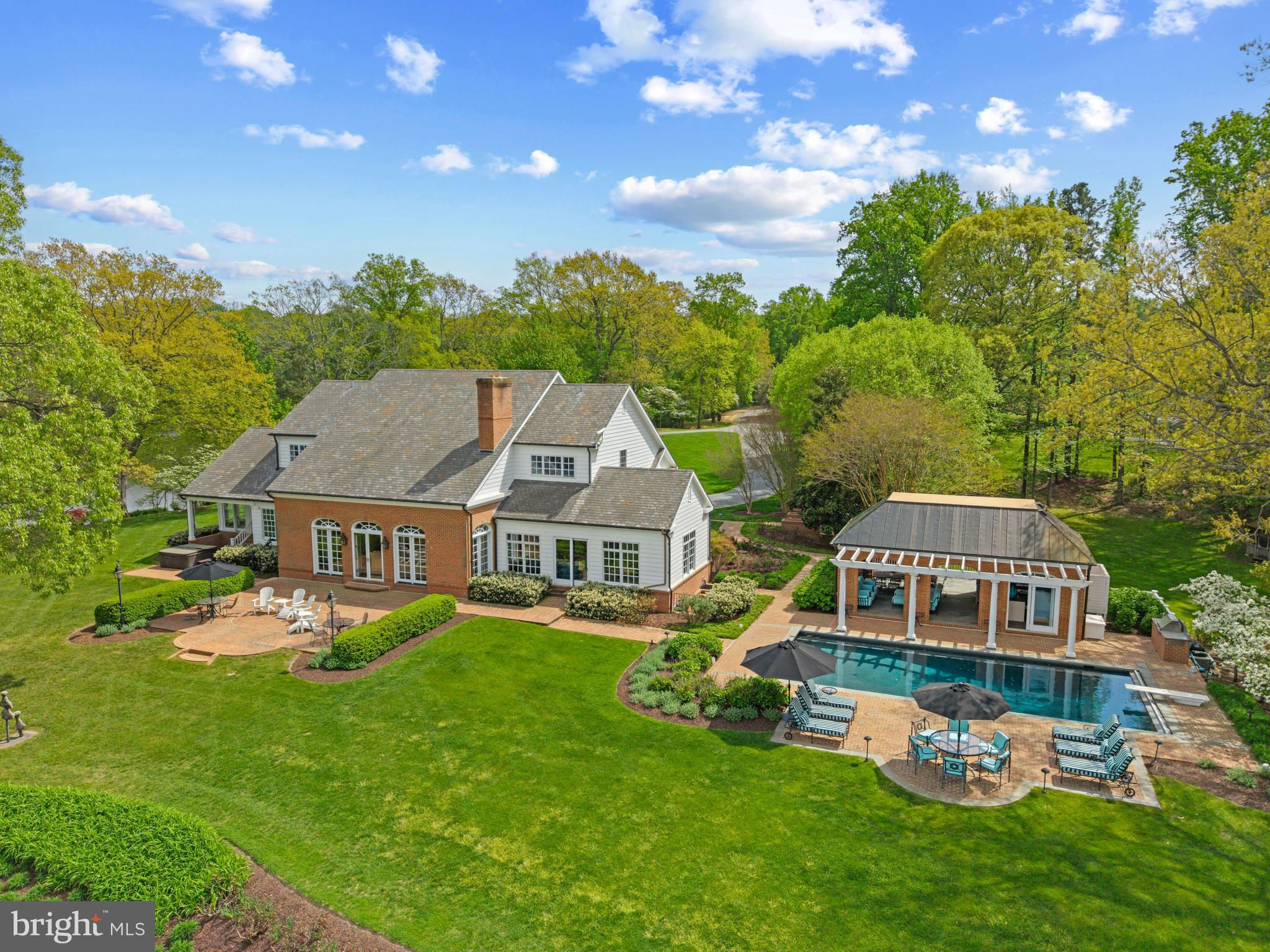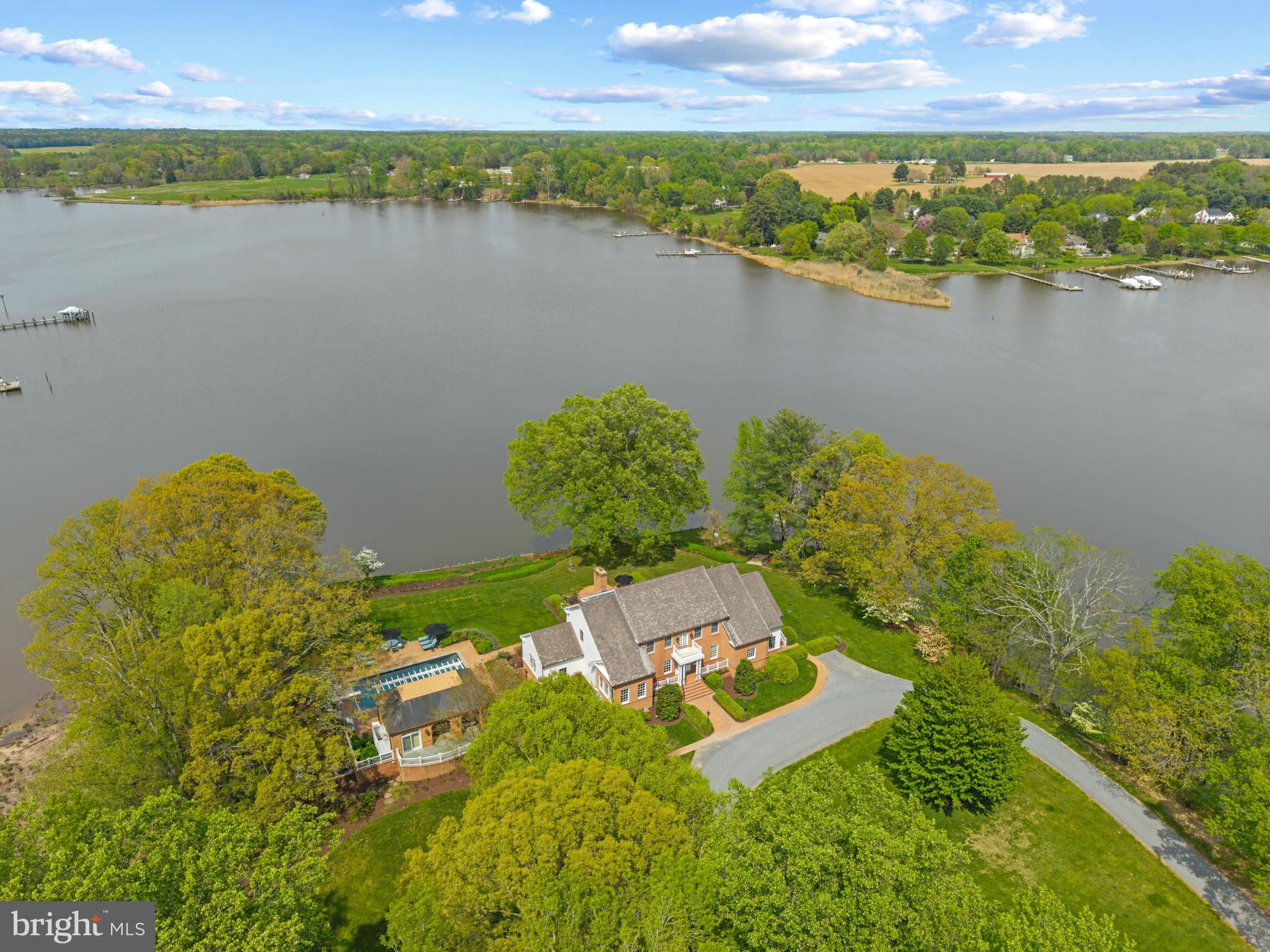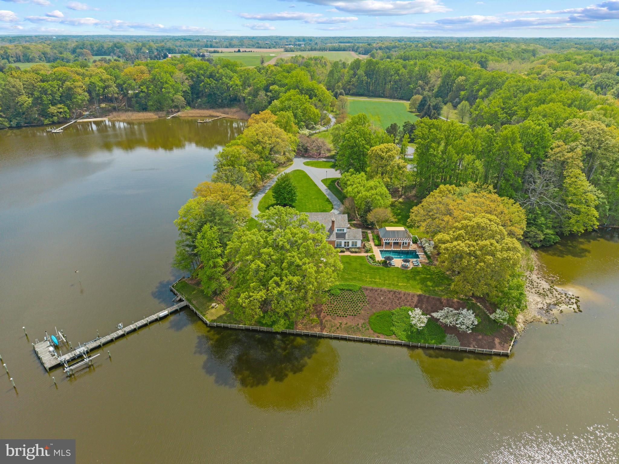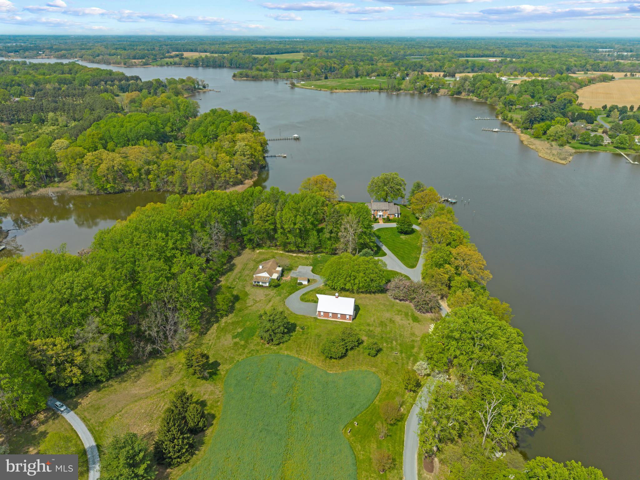 A true legacy property, Corsica Point Lane is an offering unlike any other. Situated on the Corsica River on Maryland’s Eastern Shore, the estate boasts 1200 feet of shoreline, deep water pier with boat lift and spans 14.7 acres. It serves as a serene contrast to urban living, with open expanses, permeated only by the gentle sounds of the river and surrounding wildlife. A long, meandering driveway winds through the open field past the barn and guest house to the stately brick home and pool house. Upon entry the attention to detail, beautiful woodwork and impressive 2 story Living room is only surpassed by the water views framed by the oversized windows and doors leading out to the brick patio. The patio provides the perfect place to relax and soak in the surroundings or head over to the pool house and pool for a refreshing dip. The pool house boasts a full kitchen, half bath and covered loggia to escape the sun. The ultimate setup for easy entertaining and enjoying the waterfront lifestyle. Inside the main home, the gourmet Kitchen is a marvel of craftsmanship, beautifully constructed with old world charm but filled with modern conveniences including a fully equipped butler’s pantry. The adjacent formal dining room is spacious enough for gatherings large or small. Rounding out this level is the light filled sunroom with panoramic views overlooking the yard and the river, a distinguished home office and the Family room with wet bar, water views and access to rear patio and pool area. The homes layout effortlessly flows from formal to casual spaces making for easy everyday living or hosting extravagant parties! The picturesque views from every room continues with the 3 bedrooms on the upper level including 2 spacious primary ensuite bedrooms with water views. The lower level is an entertainer's dream featuring a rec room, wet bar, wine cellar, exercise room and tons of storage. The guest house with cathedral ceilings, spacious living room, full kitchen, dining room, screened porch and 3 bedrooms with 2 baths is ideal to comfortably house all the guest you are sure to host. The bucolic views of pastures, trees and the epic barn creates the perfect setting for this estate. The heated barn with 17' ceilings, 14' sliding doors and attic storage space provides endless options for multiple uses. Head out for a day on the water from the private pier, perfectly located on the Corsica River, allowing easy access to the Chester River and beyond. Welcome Home!