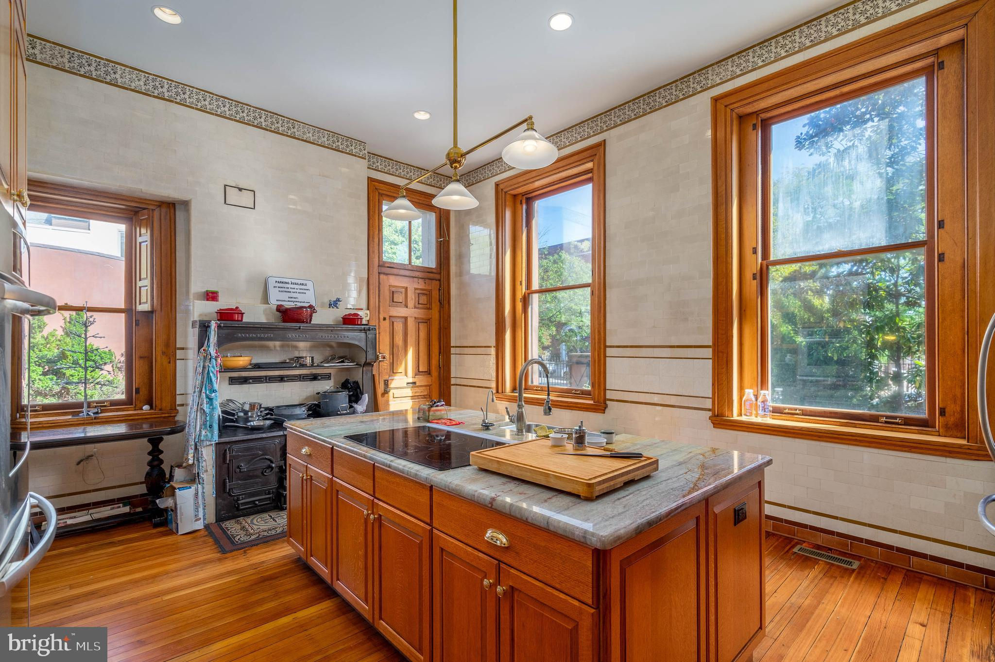 Sat majestically atop a hill at the corner of Fairmount's most iconic block, the Bergdoll Mansion has stood as a prominent symbol of Philadelphia's rich history for over 100 years. It was 1856 when The Kemble family commissioned famed architect James H. Windrim to design his momentous family residence in the then-popular Beaux-Arts/Italianate style. Later purchased by City Park Brewery founder Louis Bergdoll, the result was a grand, 14,000 sq ft property brimming with elaborate architectural details that showcase the craftsmanship of its time. Ever since, it has been painstakingly maintained, retaining its original character, and converted to one-of-a-kind apartments with modern conveniences. Currently, the layout features an expansive owner's suite with 2-3 bedrooms, 2 bathrooms, and 2 kitchens on the first level, an additional bedroom, bathroom, and kitchen in the finished basement, and a huge private yard. The upper levels feature one 2-bedroom unit, four 1-bedroom units, and an oversized studio in the former library, all separately metered. There's also a gated parking lot with 9 spaces. The commanding exterior facade is made of classic brownstone with a private entrance to the owner's suite separate from the apartment foyer. Stepping through the towering double doors, you're immediately transported to a bygone era when form matched function, and every small detail was a chance to highlight exacting craftsmanship. At every turn, there is ornate trim, columns and fireplaces, intricate millwork, hand-laid tile, and stained glass. Natural light pours in from double-height windows adorned with wood shutters that tuck away neatly, and even the soaring ceilings feature gilded artwork. A grand dining room, modern kitchen, multiple living rooms, and bespoke curved library add to an opulent feel that continues throughout the other units and the manicured grounds. There are also 8 separate gas meters (6 apartments, 1st floor, common areas) and 8 separate electric meters w/ 1 expansion space (6 apartments, 1st floor, common areas). In addition to everything inside, this sought-after location earns a Walk Score Of 90! Fairmount is a vibrant neighborhood overflowing with top-rated restaurants, friendly local shops, and lively entertainment. Whole Foods, Target, and Wine & Spirit are nearby, as are landmarks, including The Philadelphia Museum of Art, Kelly Drive, and Eastern State Penitentiary. There's also easy access to the Community College of Philadelphia, I-676, I-76, and public transit. Schedule your showing today!