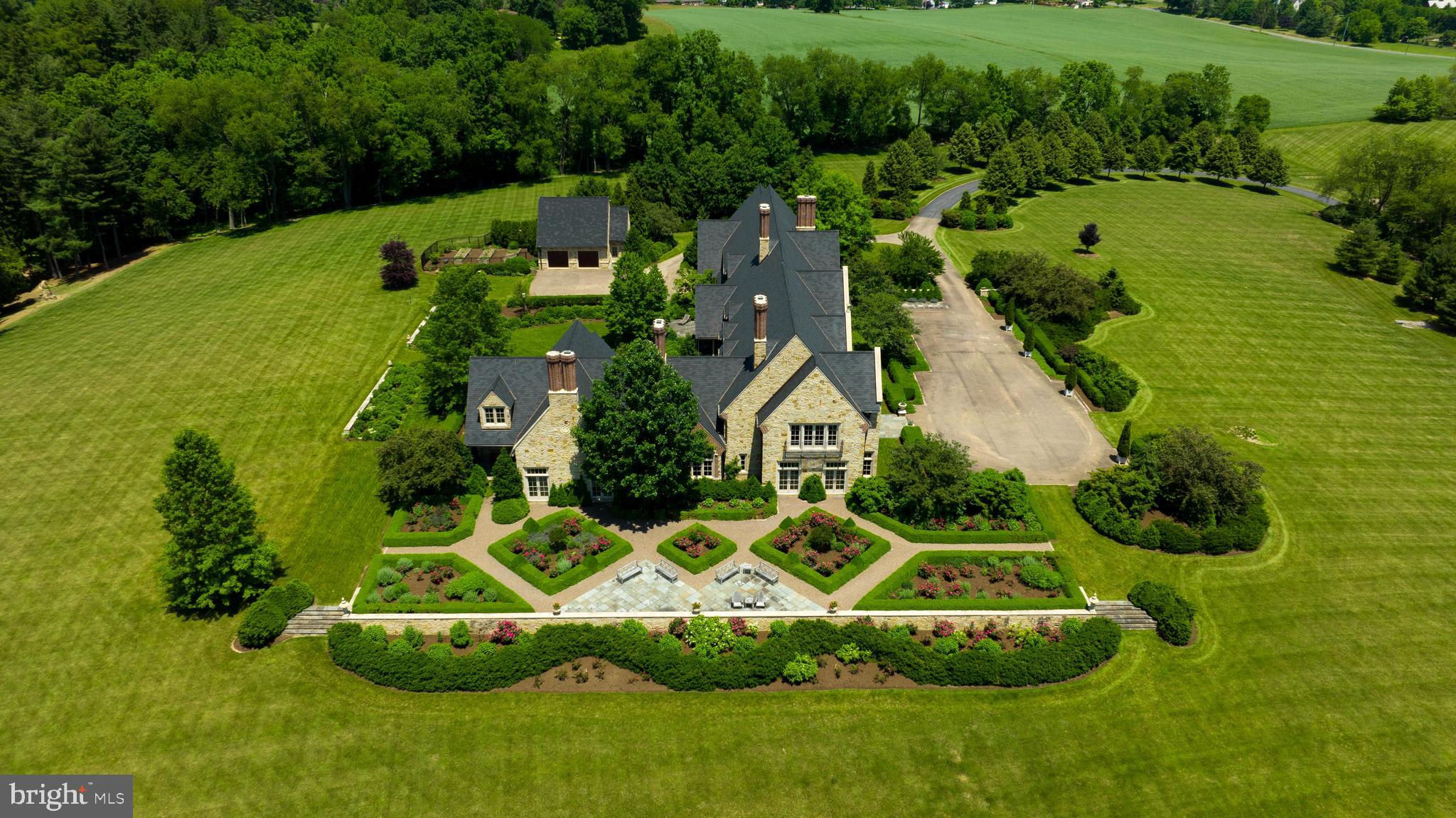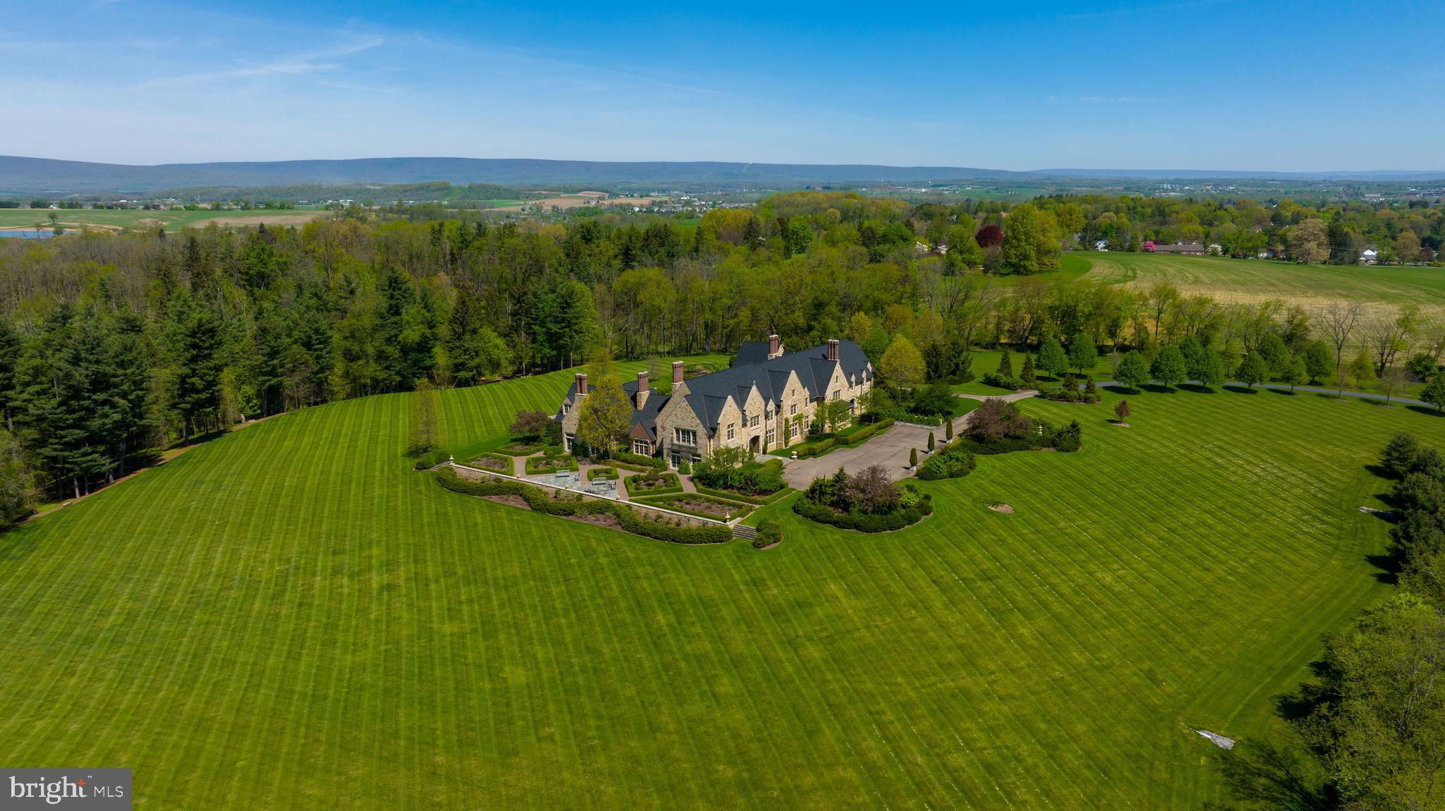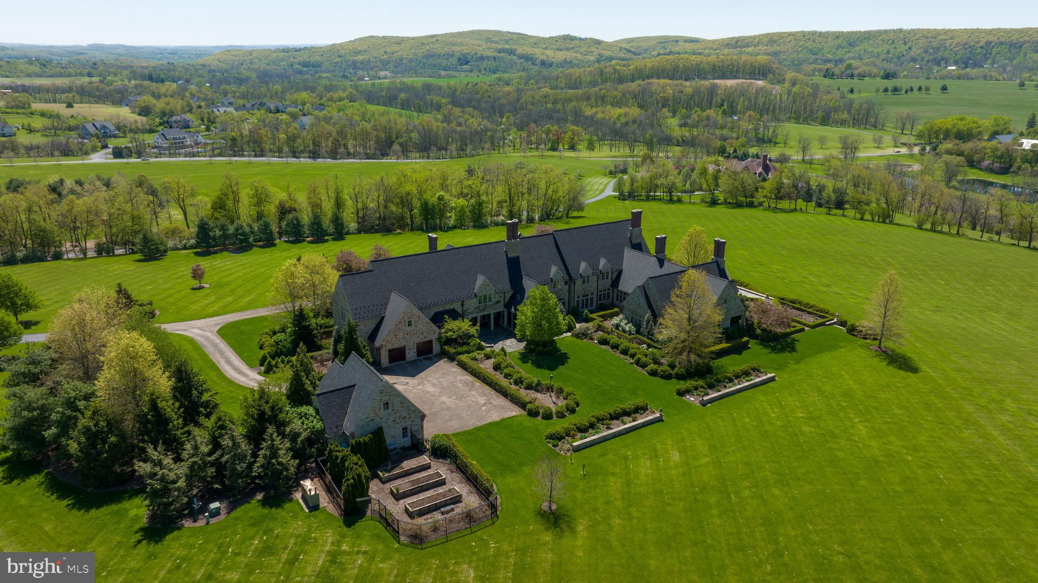 Perched atop a high hill in Union County, you'll find this exquisite English Country Manor, 225 Highfields Lane offering luxurious living at its finest. A private lane leads past the most peaceful and majestic views. As you pass a cherry blossom field on your right you will arrive at the front with an eye-catching custom-built natural stone home overlooking the pristine 122 acres. This marvelous and authentic hilltop English Country manor in East Buffalo Township was built in 2007. It features the most stunning craftsmanship and exceptional architectural design. The interior boasts 5 bedrooms, 6 full and 2 half baths, and over 13,000 square feet of living space. There are 3 laundry rooms, multiple walk-in closets with built-in storage, built-in speakers, and more. The grand foyer is elegant and welcoming, with detailed plaster and mahogany wood moldings, hardwood floors and it provides a feeling of relaxation. The hall straight through the foyer unveils a professional home office, ideal for working from home. Located on the 1st floor is the elegant owner’s suite with gas fireplace with marble mantle, high ceilings, detailed molding, and private covered patio. The owner’s private bath is open with dual vanities, jetted tub, and walk-in steam shower. An additional 1st floor suite is delightful and has a full bath. The chef’s dream gourmet kitchen is a work of art by Andersen-Knudsen Design with double center islands with marble countertops, lots of custom built-in storage, and top-of-the-line appliances. The walk-in pantry is phenomenal with storage, large built-in Subzero wine fridge and a full refrigerator. A highlight is the screened-in patio, features a vaulted ceiling, wood burning fireplace, built-in Wolf grill and sink. The upper level has 4 bedrooms, 4 full baths, and laundry room. The property at 2078 Stein Lane is truly a unique gem. The 1820’s farmhouse is elegantly designed with three spacious bedrooms and two full bathrooms. The eat-in kitchen is fully equipped with modern appliances including a refrigerator, stove, microwave, and dishwasher. The living room serves as a cozy retreat with beautiful hardwood floors and a charming wood-burning fireplace. The main level of the house features a primary bedroom complete with a wood stove for added comfort and ambiance. Two additional bedrooms and a bonus room provide plenty of space for family and guests. The property also includes a historic German designed bank barn, perfect for storing farming equipment. Adjacent to the bank barn are two large, fenced pastures and an exercise ring for the equestrian enthusiast. As you explore the stable area, you'll find top-of-the-line amenities; heated self-watering systems in each horse stall and each pasture, infrared heating systems in both wash stalls, individual fans for all eight horse stalls, and three fans in the center aisle for optimal comfort. The stables also feature an office, half bathroom, and laundry in the tack room. An acre and half pond on the property features a waterfall that adds to the picturesque setting, and beyond the pond lies a private lake. Next to the lake, a charming gazebo awaits with a wood-burning fireplace, outdoor kitchen, and built-in BBQ grill, perfect for entertaining. A bridge connects the property to 225 Highfields Ln, making it easy to enjoy all the amenities of the two truly remarkable estates. Quiet country roads lead to Lewisburg, a charming small town with little traffic and easy parking. This historic small-town community inspires delightful architecture, parks, and is located along the Susquehanna River and the home of Bucknell University. In a location close to Williamsport, State College, and Penn State University. Travel is a breeze with access to I80, Rte 11/15, and I76. Close to the Selinsgrove airport for easy air travel via private jet or helicopter. New York City (3.5 Hrs), Philadelphia (3 Hrs) Washington DC (3.5). Witness this grand English Manor for yourself today.