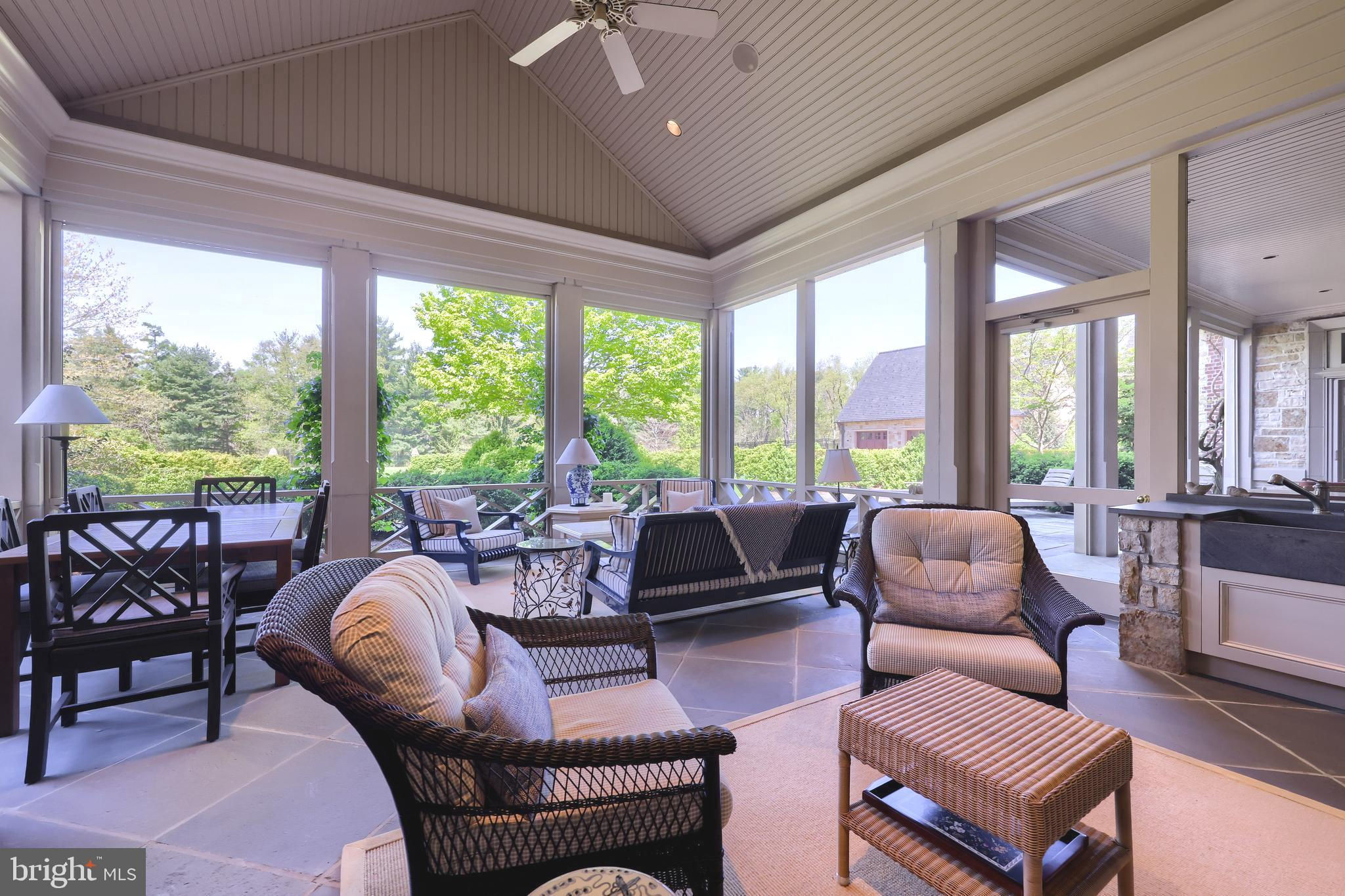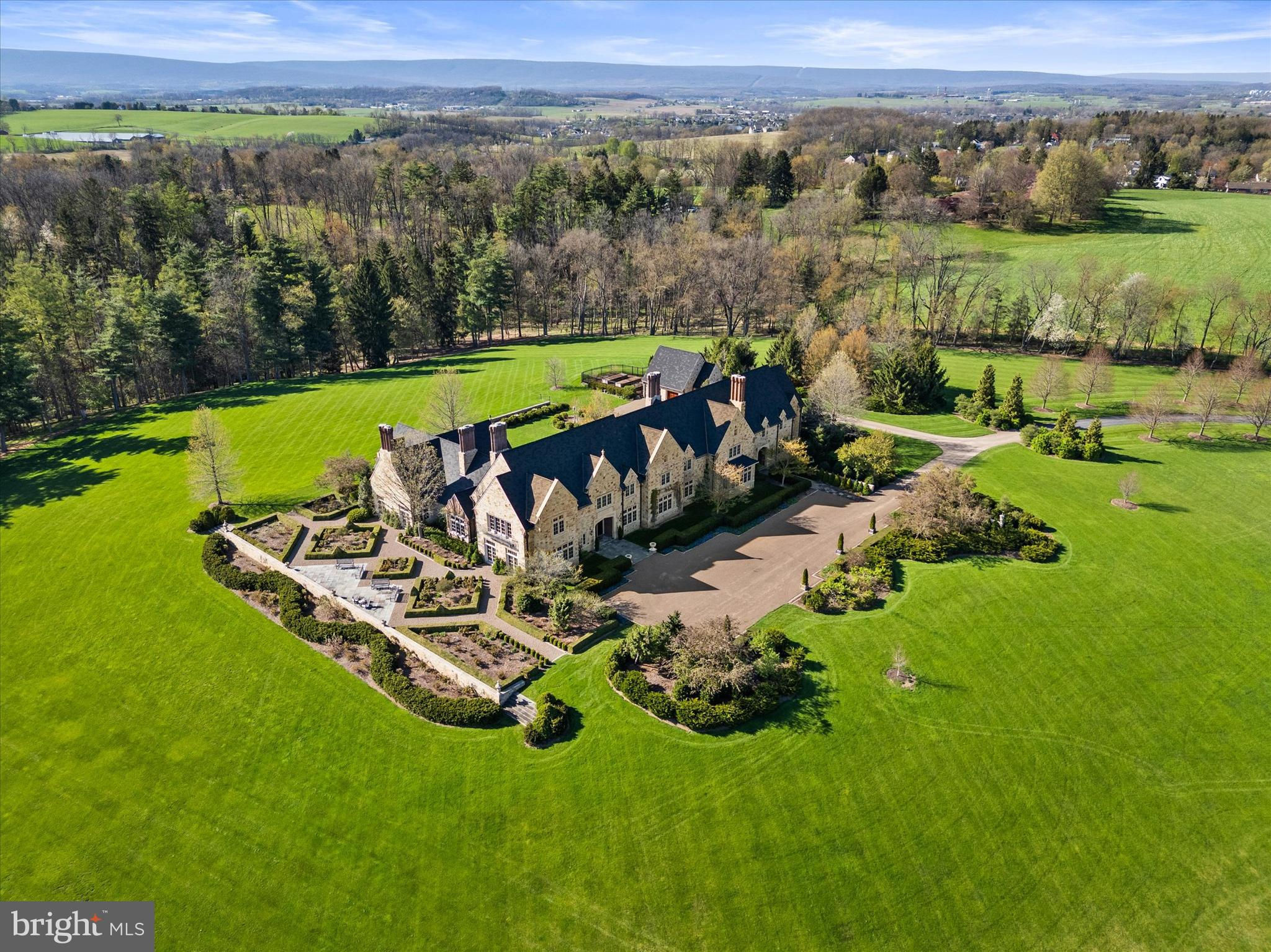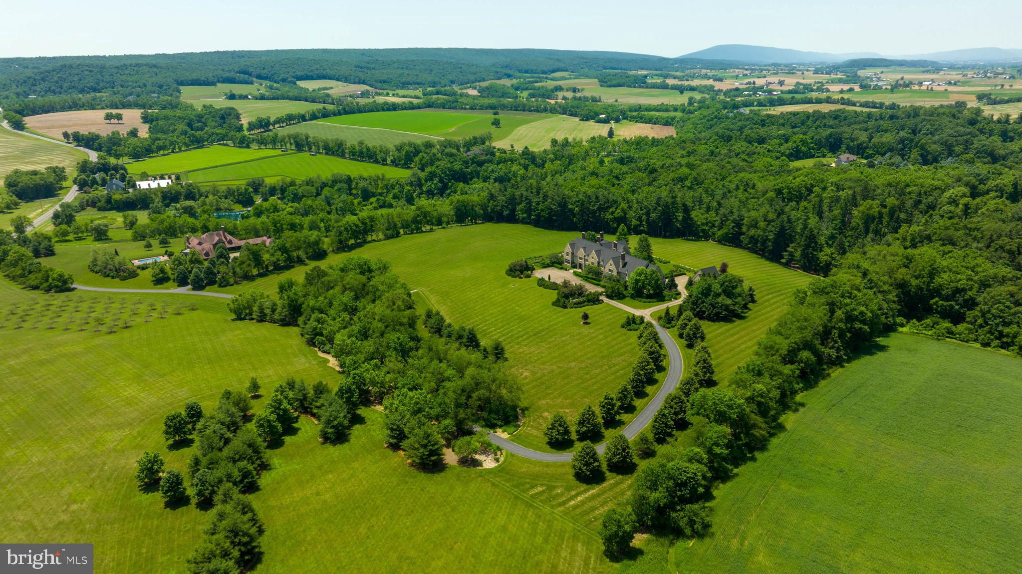 Perched atop a high hill in Union County, you'll find this exquisite English Country Manor, 225 Highfields Lane offering luxurious living at its finest. A private lane leads past the most peaceful and majestic views. As you pass a cherry blossom field on your right you will arrive at the front with an eye-catching custom-built natural stone home overlooking the pristine 122 acres. This marvelous and authentic hilltop English Country manor in East Buffalo Township was built in 2007. It features the most stunning craftsmanship and exceptional architectural design. The interior boasts 5 bedrooms, 6 full and 2 half baths, and over 13,000 square feet of living space. There are 3 laundry rooms, multiple walk-in closets with built-in storage, built-in speakers, and more. The grand foyer is elegant and welcoming, with detailed plaster and mahogany wood moldings, hardwood floors and it provides a feeling of relaxation. The hall straight through the foyer unveils a professional home office, ideal for working from home. Located on the 1st floor is the elegant owner’s suite with gas fireplace with marble mantle, high ceilings, detailed molding, and private covered patio. The owner’s private bath is open with dual vanities, jetted tub, and walk-in steam shower. An additional 1st floor suite is delightful and has a full bath. The chef’s dream gourmet kitchen is a work of art by Andersen-Knudsen Design with double center islands with marble countertops, lots of custom built-in storage, and top-of-the-line appliances. The walk-in pantry is phenomenal with storage, large built-in Subzero wine fridge and a full refrigerator. A highlight is the screened-in patio, features a vaulted ceiling, wood burning fireplace, built-in Wolf grill and sink. The upper level has 4 bedrooms, 4 full baths, and laundry room. The property at 2078 Stein Lane is truly a unique gem. The 1820’s farmhouse is elegantly designed with three spacious bedrooms and two full bathrooms. The eat-in kitchen is fully equipped with modern appliances including a refrigerator, stove, microwave, and dishwasher. The living room serves as a cozy retreat with beautiful hardwood floors and a charming wood-burning fireplace. The main level of the house features a primary bedroom complete with a wood stove for added comfort and ambiance. Two additional bedrooms and a bonus room provide plenty of space for family and guests. The property also includes a historic German designed bank barn, perfect for storing farming equipment. Adjacent to the bank barn are two large, fenced pastures and an exercise ring for the equestrian enthusiast. As you explore the stable area, you'll find top-of-the-line amenities; heated self-watering systems in each horse stall and each pasture, infrared heating systems in both wash stalls, individual fans for all eight horse stalls, and three fans in the center aisle for optimal comfort. The stables also feature an office, half bathroom, and laundry in the tack room. An acre and half pond on the property features a waterfall that adds to the picturesque setting, and beyond the pond lies a private lake. Next to the lake, a charming gazebo awaits with a wood-burning fireplace, outdoor kitchen, and built-in BBQ grill, perfect for entertaining. A bridge connects the property to 225 Highfields Ln, making it easy to enjoy all the amenities of the two truly remarkable estates. Quiet country roads lead to Lewisburg, a charming small town with little traffic and easy parking. This historic small-town community inspires delightful architecture, parks, and is located along the Susquehanna River and the home of Bucknell University. In a location close to Williamsport, State College, and Penn State University. Travel is a breeze with access to I80, Rte 11/15, and I76. Close to the Selinsgrove airport for easy air travel via private jet or helicopter. New York City (3.5 Hrs), Philadelphia (3 Hrs) Washington DC (3.5). Witness this grand English Manor for yourself today.