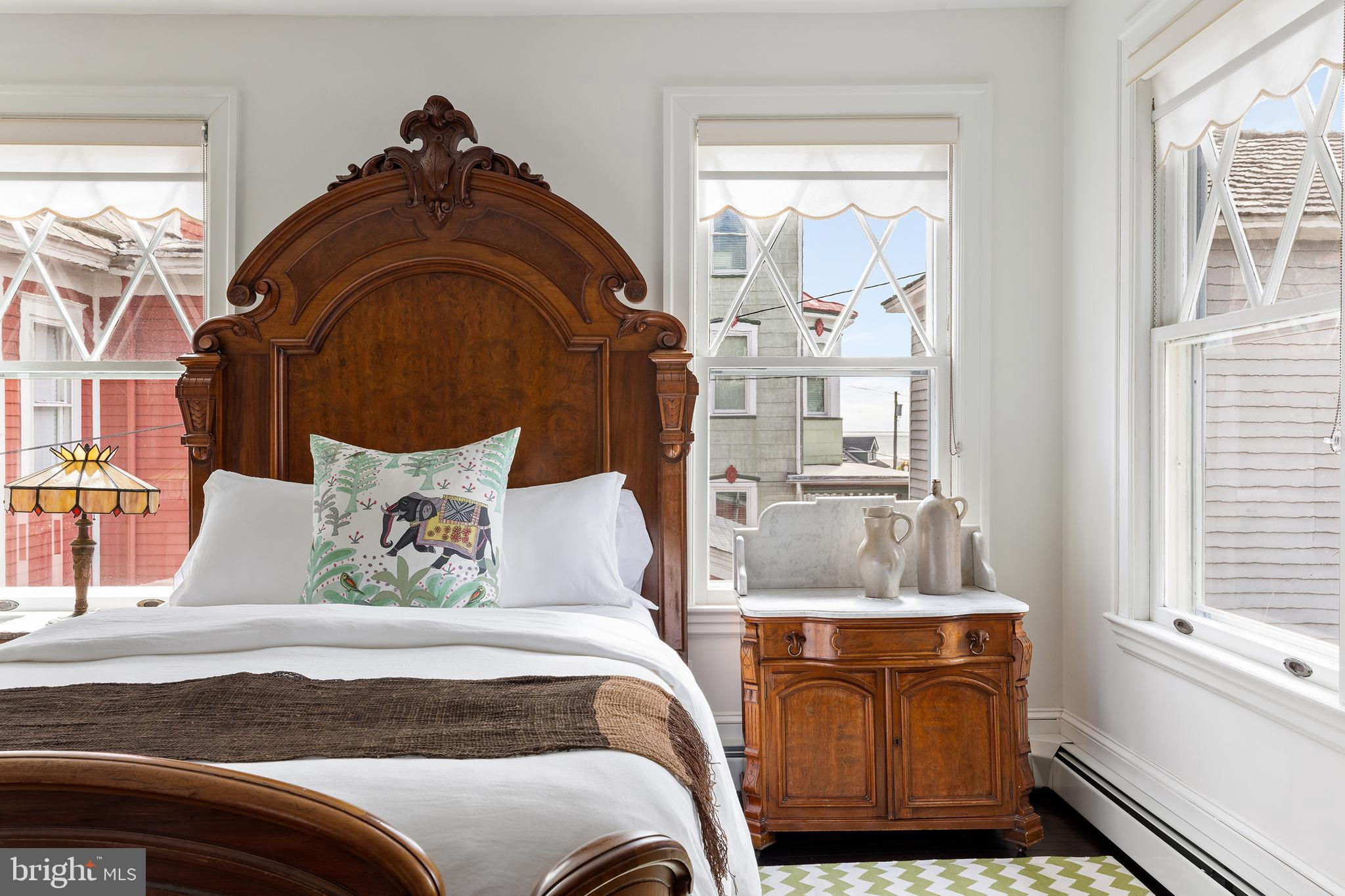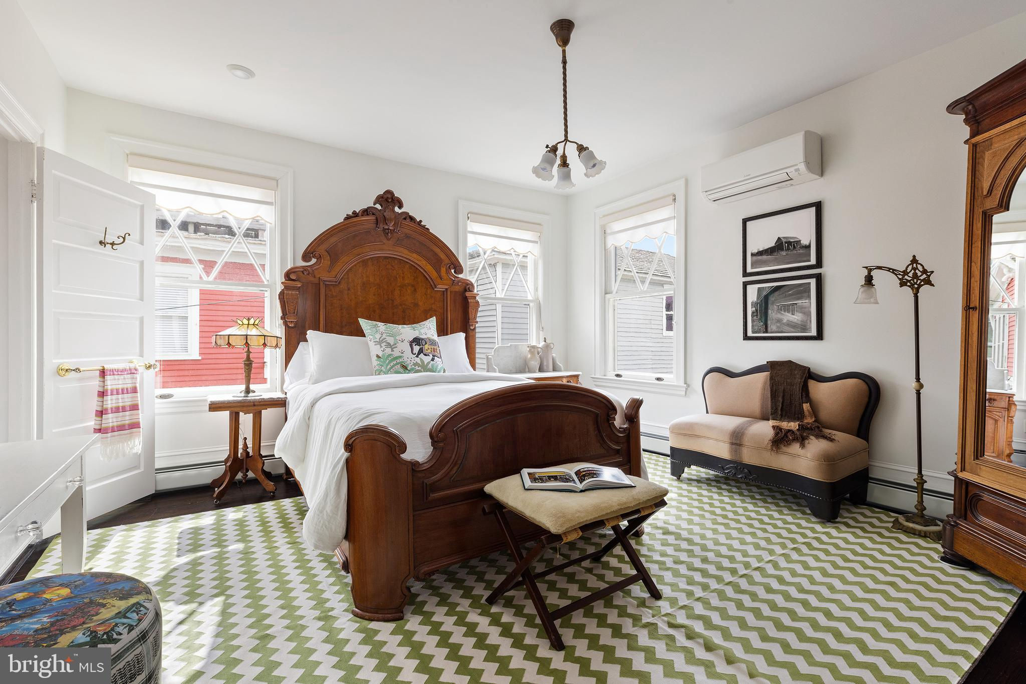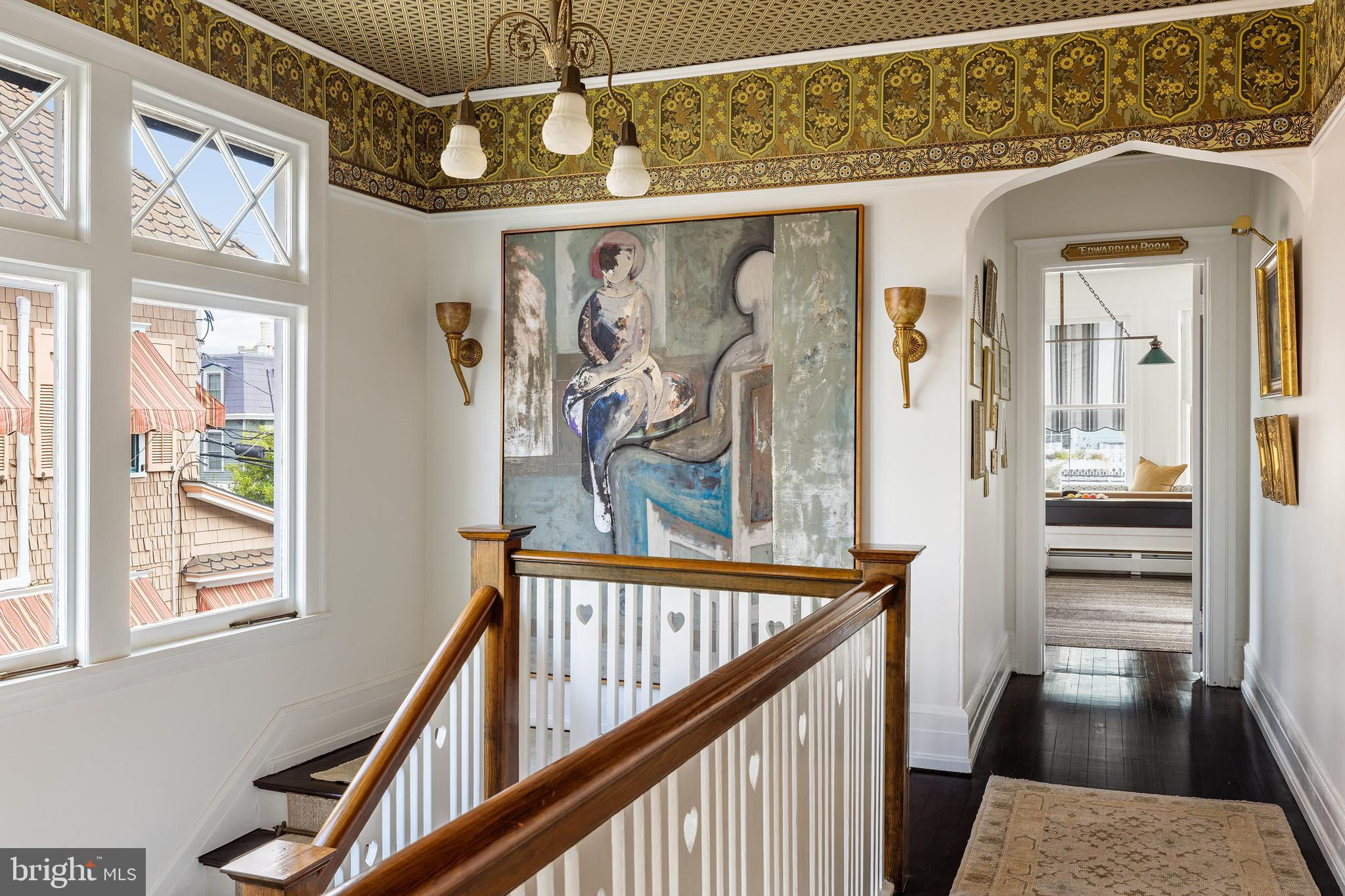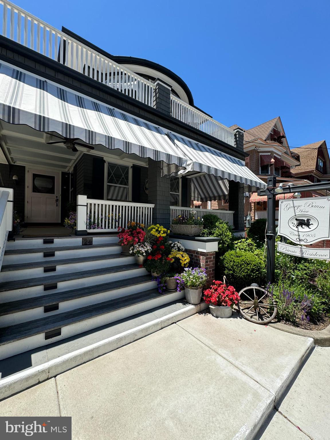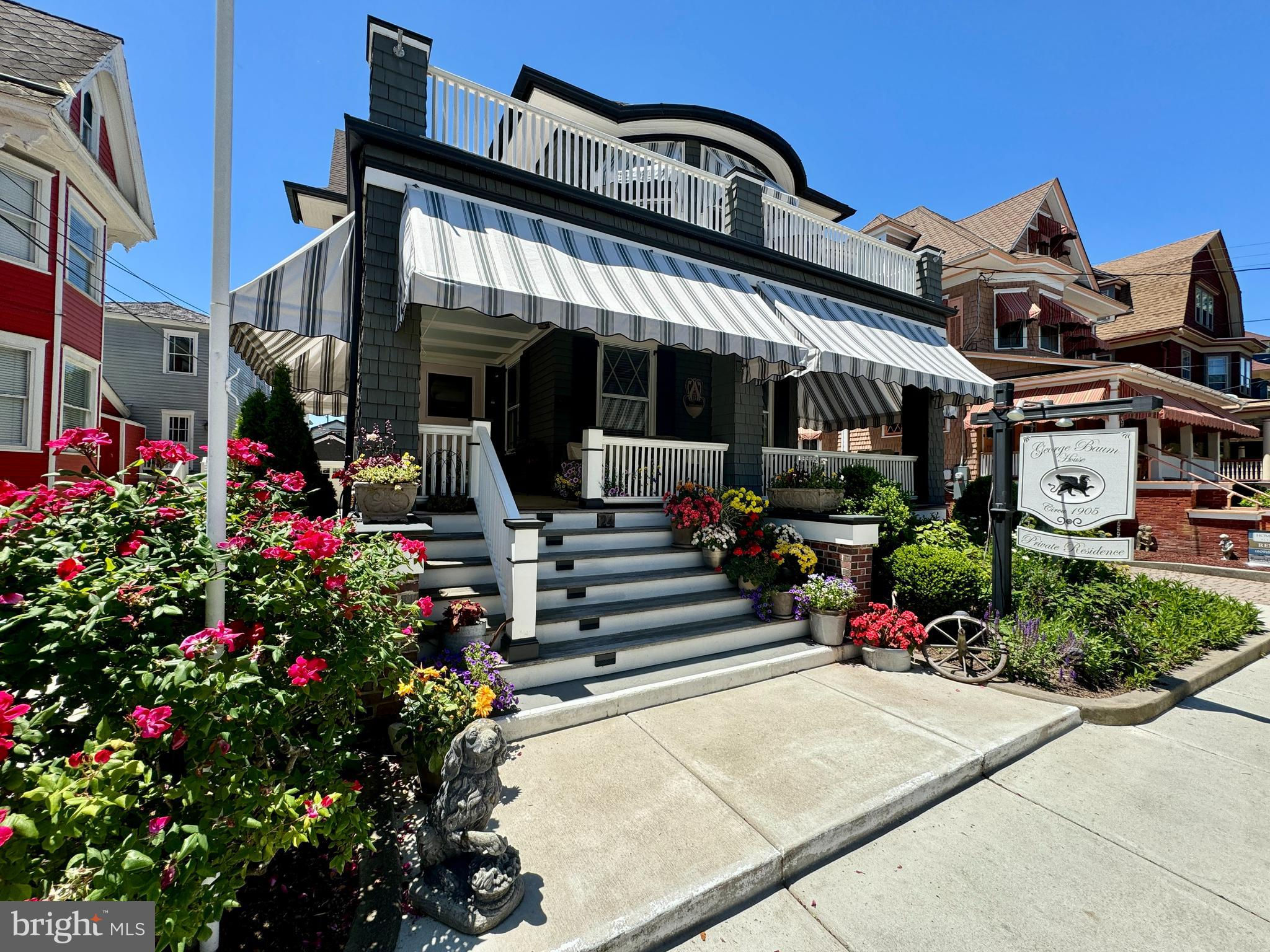 Unique opportunity to own this Edwardian-era Seaside Mansion on Historic Jackson Street in Cape May! The property consists of the main house, a garden apartment and a detached two car garage. Built during a period when rooms were large, spacious and airy, the main house offers three levels, with 7 bedrooms, 7.5 baths. There is no shortage of outdoor living space with three distinct spaces - a wraparound front porch, a second floor porch which is private to two bedrooms, and a third floor sundeck with spectacular ocean views. The first floor features a grand living room and gracious family room, along with the fully renovated kitchen. No expense was spared in the kitchen, which features Small Bone kitchen cabinets, double oven, steam oven, built-in coffee maker and wine refrigerator. Off the kitchen is a cozy breakfast nook. For more formal meals there is a dedicated dining room with gas fireplace. Also located on the first floor is an ensuite bedroom and powder room. The grand staircase leads to the second floor where you will find the ensuite primary bedroom with fully renovated bathroom and three additional ensuite bedrooms and laundry room. Accessible from the front two bedrooms is a large deck overlooking Jackson Street. The third floor offers two more ensuite bedrooms and a rear deck with beautiful ocean views. The Garden Level has a spacious apartment, currently one bedroom but easily convertible to two or three bedrooms, with separate exterior access and rear patio. There is an oversized utility room with two sets of washers and dryers, extra refrigerator/freezer space, plenty of workspace and storage, plus an additional art room. The property boasts plenty of parking, a premium on Jackson Street, with 2 driveways easily accommodating 8-10 cars. Extensive upgrades for today’s standards while carefully maintaining the historical character have been done. The highlights of the improvements include new plumbing, including water/sewer lines, new electric, new blown in insulation, new boiler and hot water heater, new mini-splits for AC, new concrete drives and sidewalks, and exterior paint just 2.5 years ago. This is truly a masterpiece and must be seen to be fully appreciated. Shown by appointment only.