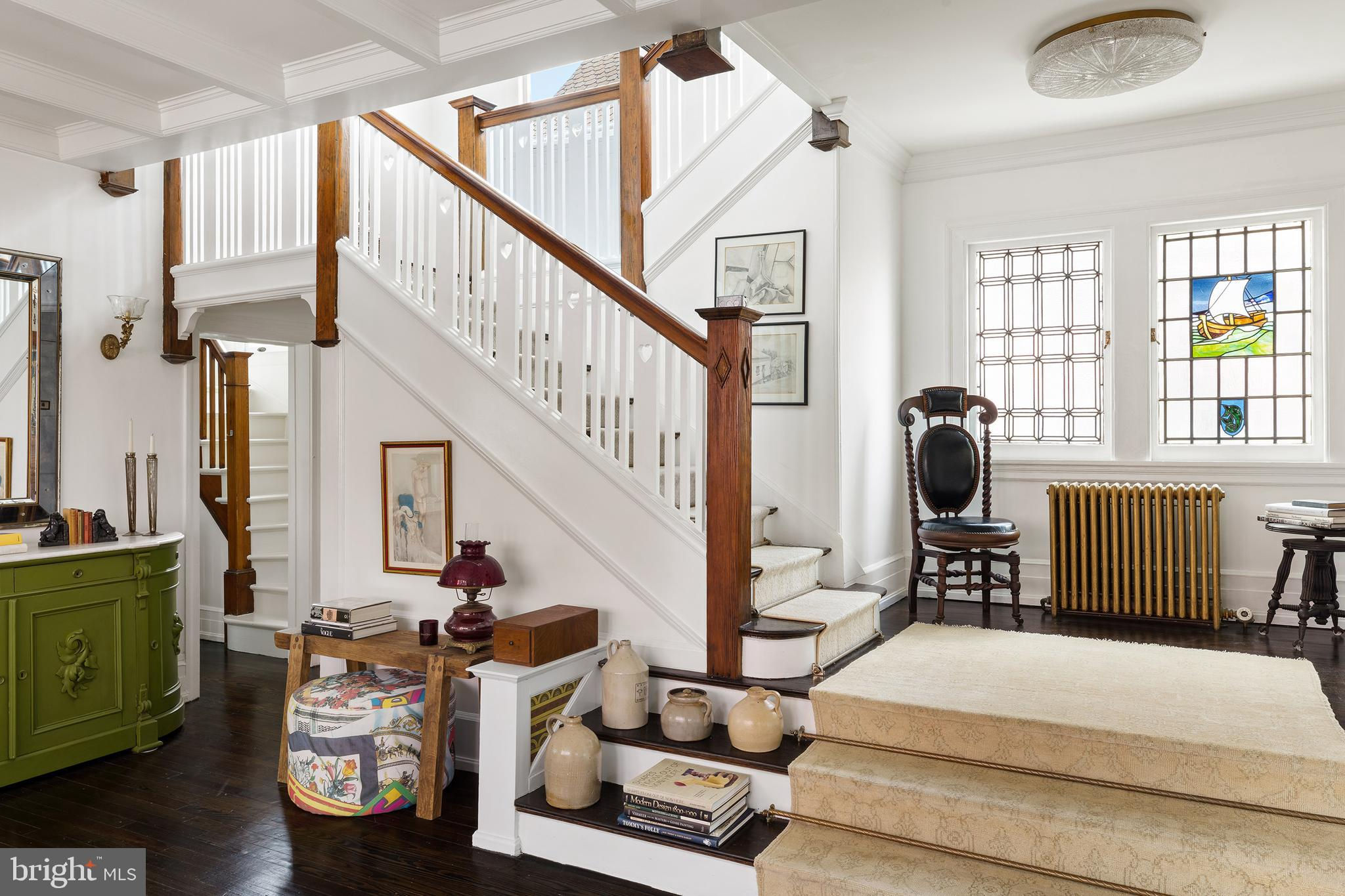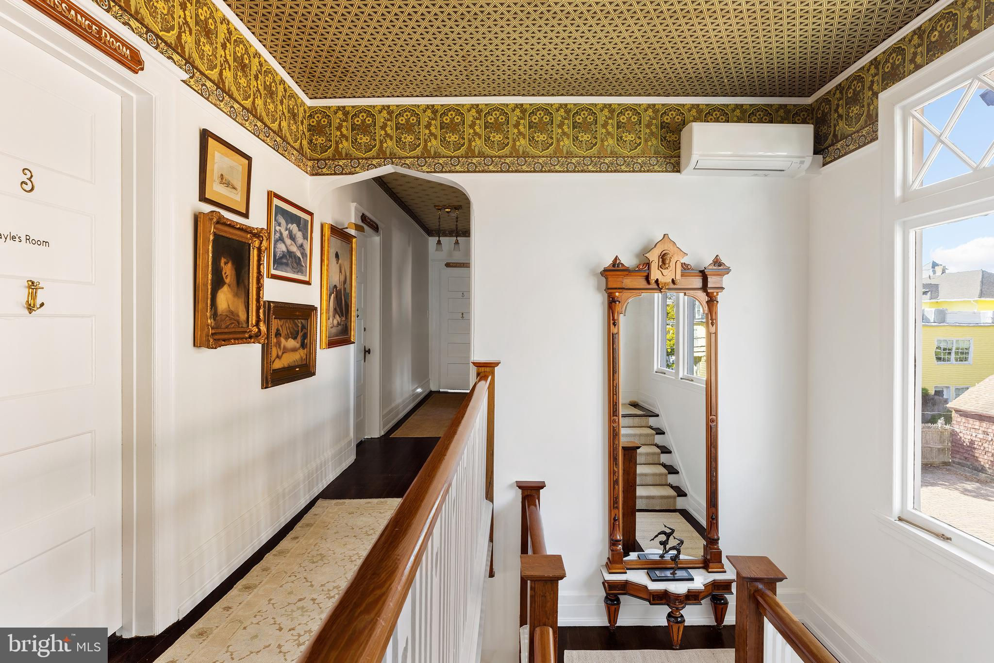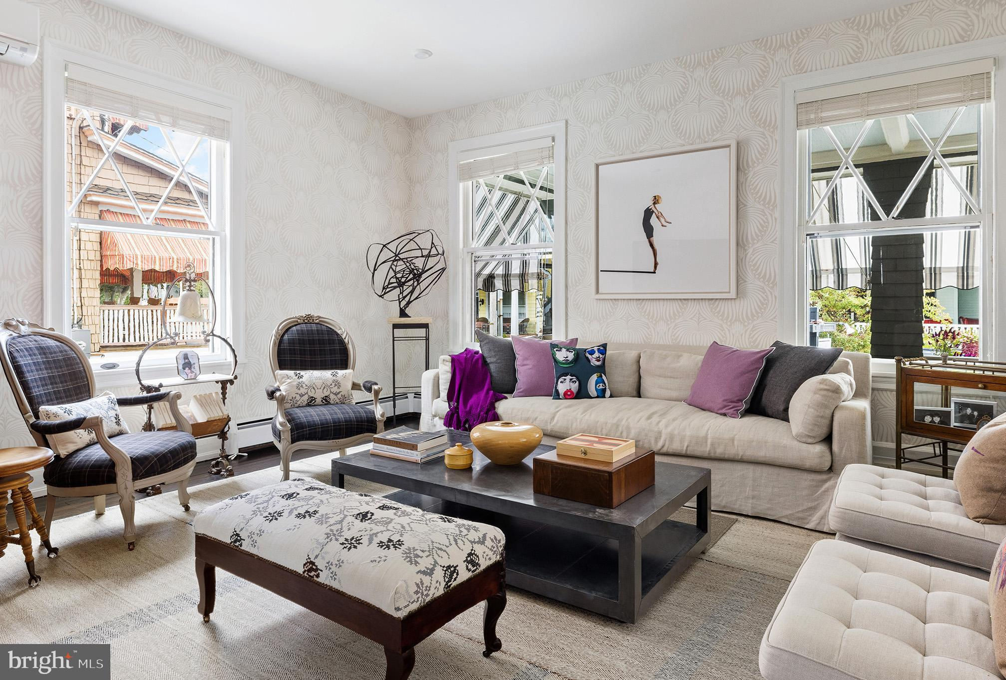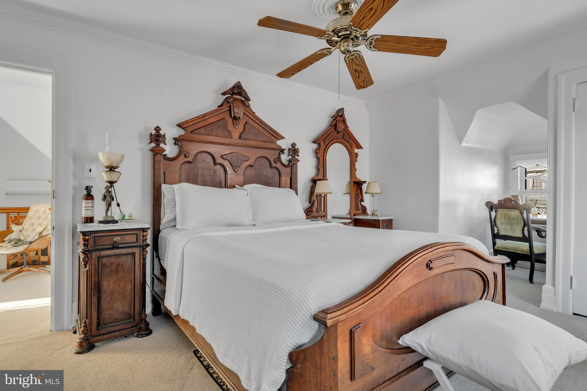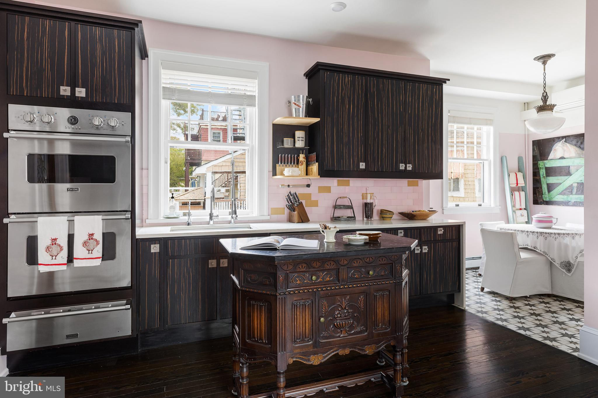 Unique opportunity to own this Edwardian-era Seaside Mansion on Historic Jackson Street in Cape May! The property consists of the main house, a garden apartment and a detached two car garage. Built during a period when rooms were large, spacious and airy, the main house offers three levels, with 7 bedrooms, 7.5 baths. There is no shortage of outdoor living space with three distinct spaces - a wraparound front porch, a second floor porch which is private to two bedrooms, and a third floor sundeck with spectacular ocean views. The first floor features a grand living room and gracious family room, along with the fully renovated kitchen. No expense was spared in the kitchen, which features Small Bone kitchen cabinets, double oven, steam oven, built-in coffee maker and wine refrigerator. Off the kitchen is a cozy breakfast nook. For more formal meals there is a dedicated dining room with gas fireplace. Also located on the first floor is an ensuite bedroom and powder room. The grand staircase leads to the second floor where you will find the ensuite primary bedroom with fully renovated bathroom and three additional ensuite bedrooms and laundry room. Accessible from the front two bedrooms is a large deck overlooking Jackson Street. The third floor offers two more ensuite bedrooms and a rear deck with beautiful ocean views. The Garden Level has a spacious apartment, currently one bedroom but easily convertible to two or three bedrooms, with separate exterior access and rear patio. There is an oversized utility room with two sets of washers and dryers, extra refrigerator/freezer space, plenty of workspace and storage, plus an additional art room. The property boasts plenty of parking, a premium on Jackson Street, with 2 driveways easily accommodating 8-10 cars. Extensive upgrades for today’s standards while carefully maintaining the historical character have been done. The highlights of the improvements include new plumbing, including water/sewer lines, new electric, new blown in insulation, new boiler and hot water heater, new mini-splits for AC, new concrete drives and sidewalks, and exterior paint just 2.5 years ago. This is truly a masterpiece and must be seen to be fully appreciated. Shown by appointment only.
