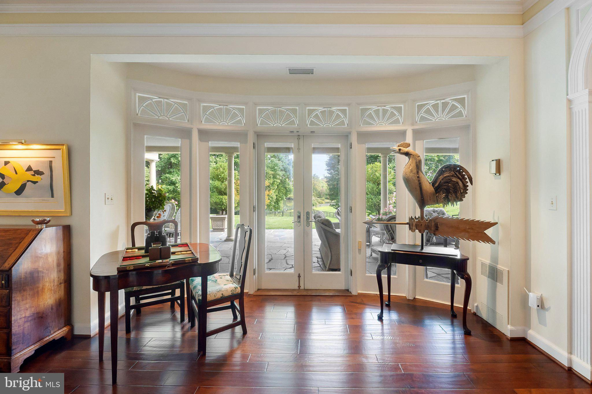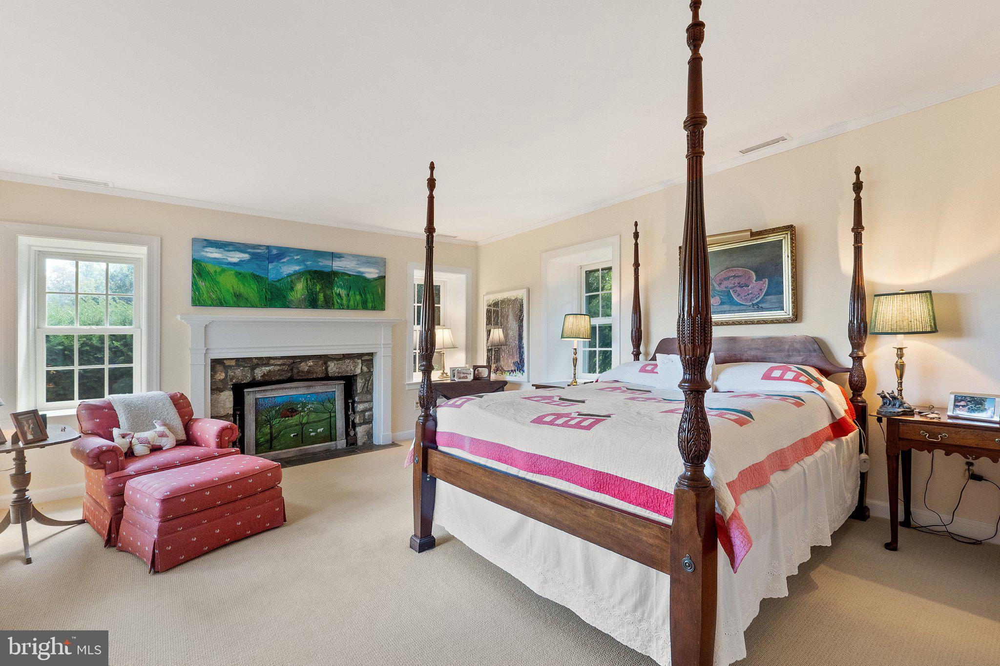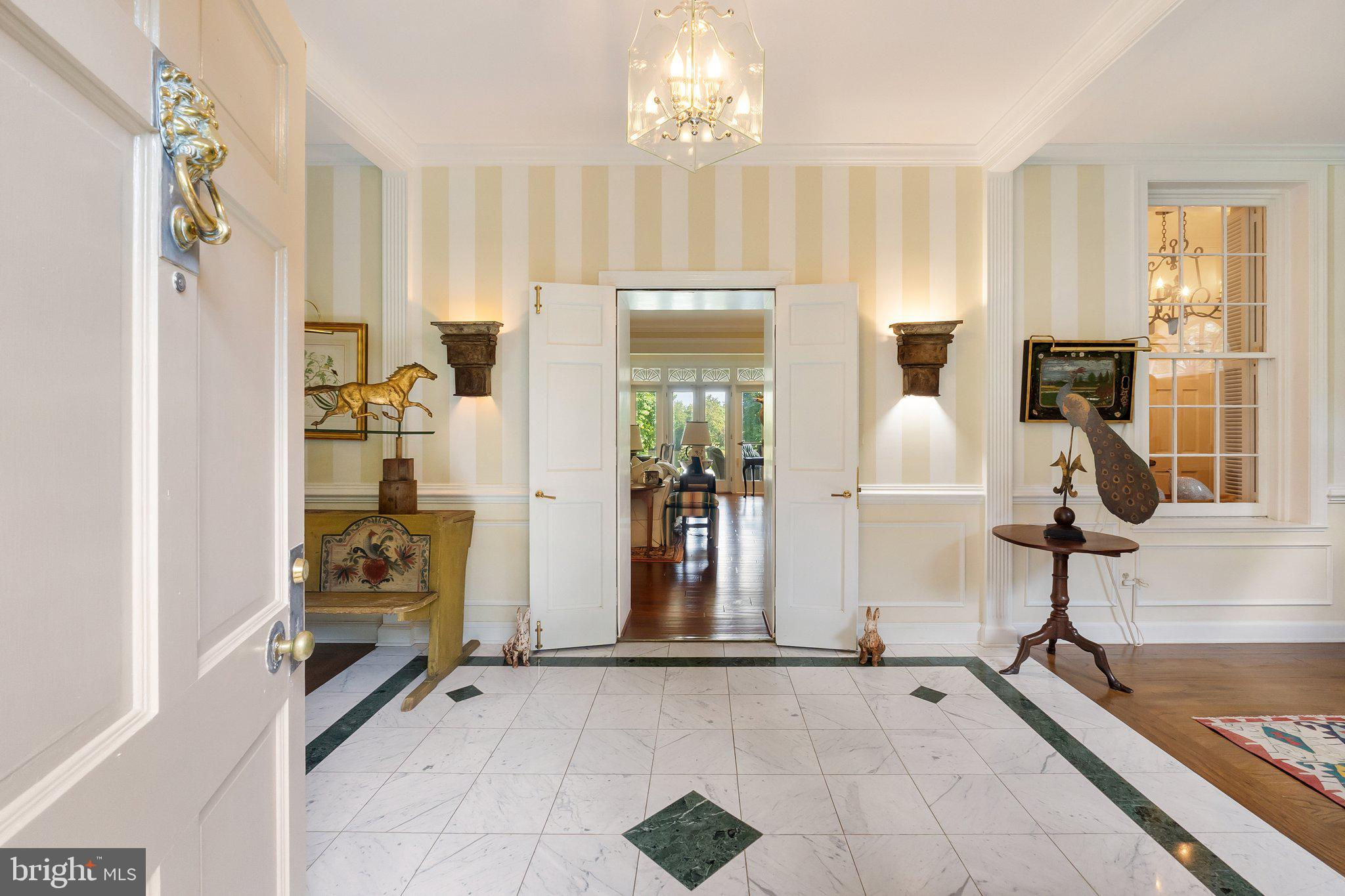 The handsome estate of Cloverwood encompasses 78 Acres, with frontage on both Zulla Road and Burrland Road. This is beautiful land which features large stands of professionally managed mature trees, the 4-acre Sherwood Lake, and board fenced paddocks and fields. In addition to the elegant manor house with a 20’ x 40’ pool, there is a guest house, 2 tenant houses, and 2 stables with a total of 26 stalls. Located within the prestigious Orange County Hunt territory, this property is also protected by an Open Space Easement with the Virginia Outdoors Foundation. Sited to enjoy privacy and expansive views, the one-level manor house is built of stone with a Buckingham Slate roof, and features a large, covered, stone terrace on the back of the home. Originally built in 1946 by Master Builder W.J. Hanback, the manor home underwent a major renovation, designed by Tommy Beach in the 1980’s, and in 2015 a stunning kitchen renovation. From the front, one enters the spacious foyer which then opens into the elegant living room adorned with beautiful moldings, deep set windows, a wood burning fireplace, and a bowed wall of windows and French doors which open to the covered terrace. This terrace is extraordinary and enjoys an eastern exposure and protection from the elements, providing beautiful 3 season living and dining space. Returning to the living room, arched doorways lead to the other living areas of the home. To the right, one has access to the wet bar, library and 2 bedroom suites. To the left, the doorways open into the dining room and the gourmet kitchen. The banquet sized dining room features a wall of windows and atrium doors which open to the terrace. The stunning kitchen features wonderful workspace, granite countertops, an abundance of cabinets, and gourmet appliances including a Wolf 6 burner gas cooktop, Miele double ovens and warming oven, and Subzero Refrigerator and Freezer. The bay window with built-in seating creates an inviting breakfast nook, made even more inviting bathed in the afternoon sunlight. Beyond the kitchen and dining room, one has access to the guest suite, laundry and butler’s pantry/mudroom with direct access to the 2-car garage and storage. To the right of the living room, a hallway leads past a powder room and then to the primary bedroom suite and the second bedroom with full bath. The primary suite features a wood burning fireplace, beautiful built-in cabinetry, a wall of closets and 2 separate baths. Between the bedroom hall and the living room is the charming library, ½ bath, and wet bar with ice maker. The library with heart pine cabinetry and shelving, features a lovely bay window with window seat, a wood burning fireplace and direct access to the back terrace. Cloverwood is a gracious estate which encompasses quiet elegance and privacy. Located just minutes from historic Middleburg, this location affords easy access to Dulles International Airport and Washington, D.C. Note: Pool cover sold in "as is" condition Accessory dwellings and structures: Zulla Road Access: Guest House: Just beyond the main home, a one-bedroom, 1 bath home offers wonderful privacy for your guest and features a living room with beautiful pond views, kitchen, 1 bedroom and 1 bath Tenant House: Accessed from Zulla Road and tucked into the woods is a 3 bedroom, 2 bath home with living/dining room, kitchen and 1 car garage. Stable with 14 stalls, 2 wash stalls, tack room, office and 2 bays for equipment Fenced fields: Outdoor riding arena Run-in sheds: Burrland Road Access: Tenant House with 2 bedrooms and 1 bath Stable with 12 stalls