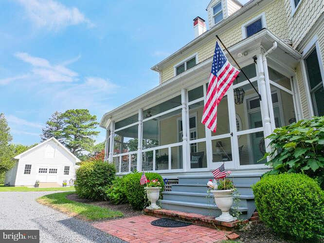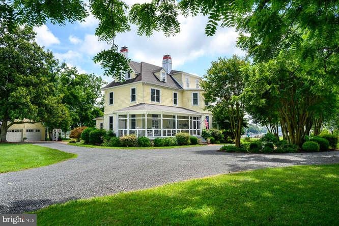 Welcome to “Leggacy” – A Timeless Eastern Shore Estate on the Majestic Miles River Tucked away on over six lush acres of premier waterfront, “Leggacy” is more than a home—it’s a lifestyle. Perfectly positioned on a point of land with sweeping, unobstructed views of the Miles River, this extraordinary estate is a rare offering for the most discerning buyer. With 8' +/- MLW, a substantial private dock with lift and multiple slips, your boat is always ready for a spontaneous cruise to St. Michaels or a sunset sail on the Chesapeake Bay. This breathtaking property is a sanctuary of refined coastal living—featuring its own sandy beach, a resort-style pool and pool house, full-size tennis court, and a paver patio with firepit designed for gathering under the stars. Surrounded by estate homes and sprawling farmland, “Leggacy” offers unrivaled privacy and peace, yet is just minutes from the charm of downtown Easton and the convenience of Easton Airport. Steeped in elegance and history, this grand home has been beautifully updated and impeccably maintained, earning its place on the prestigious Maryland House & Garden Tour. Inside, you’ll find exquisite craftsmanship at every turn—from intricate millwork and rich hardwood floors to gracious archways and custom built-ins. The stately main level begins with a grand foyer with fireplace, setting the tone for the refined spaces beyond. The formal living and dining rooms are ideal for hosting, while the cozy family room with corner fireplace invites relaxed evenings at home. The gourmet kitchen is a chef’s dream—complete with center island, breakfast bar seating, and a sunny breakfast room. A charming powder room, spacious laundry, and wraparound porches complete the picture of timeless charm and function. Upstairs, the second level offers five generously sized bedrooms, including a peaceful primary bedroom, three full baths, and a cozy sitting room perfect for curling up with a book. The third floor surprises with breathtaking water views from a private balcony and features three versatile bonus rooms—ideal for guests, a home office, game room, or studio—as well as a fourth full bath and additional attic storage. Beyond the main house, the property features three additional structures designed for both utility and entertainment: a large barn perfect for gatherings, complete with a lean-to for extra storage; a 3-bay equipment barn; and a detached 2-car garage. Mature shade trees, flowering gardens, and a vast manicured lawn frame this extraordinary estate.