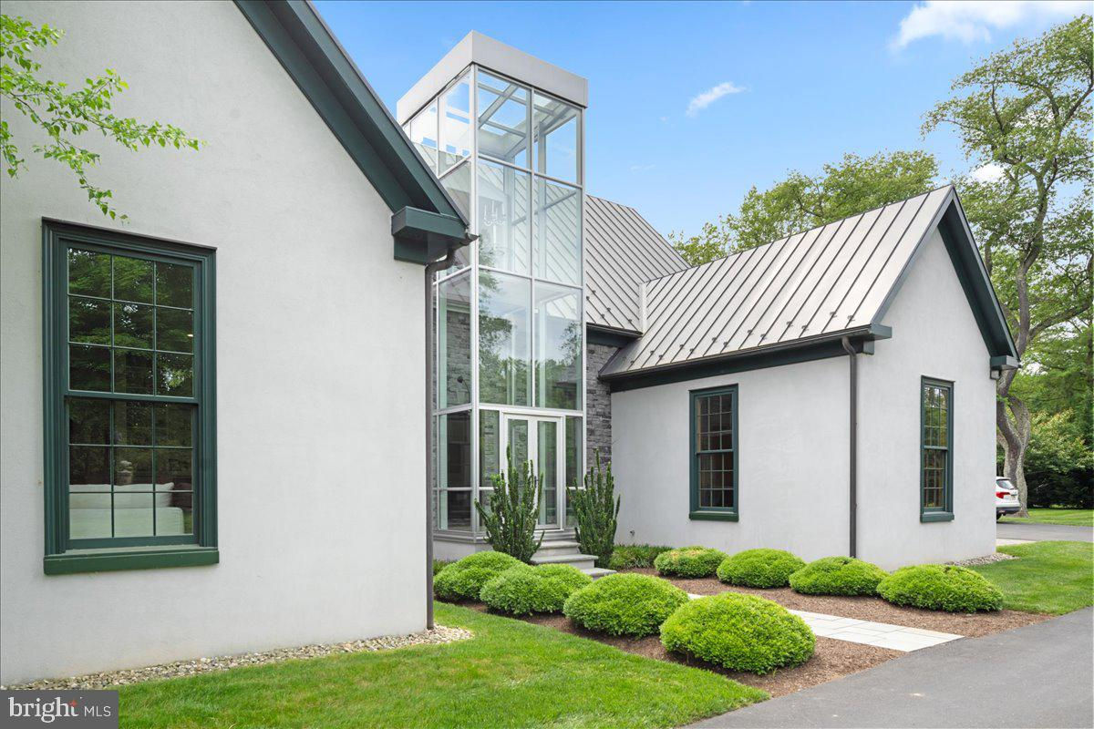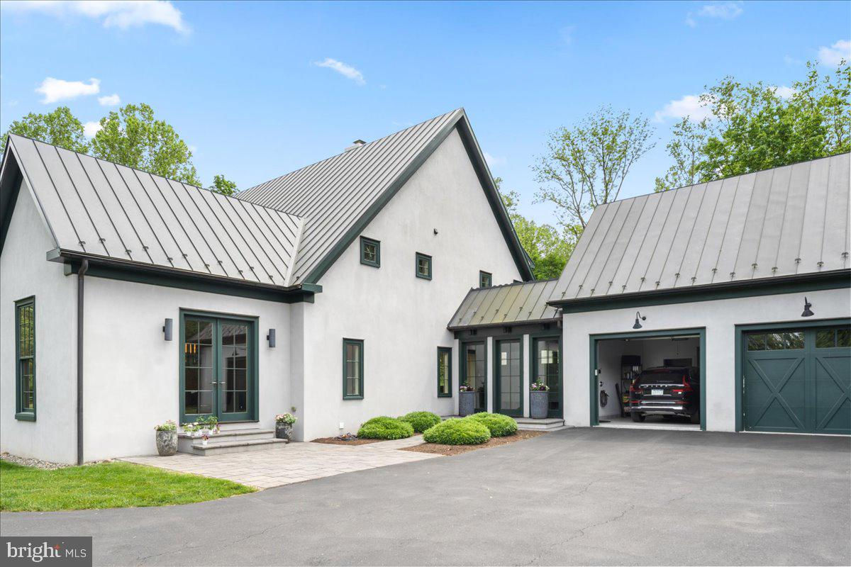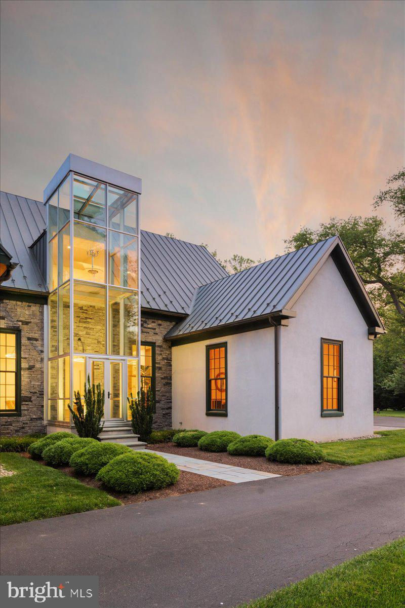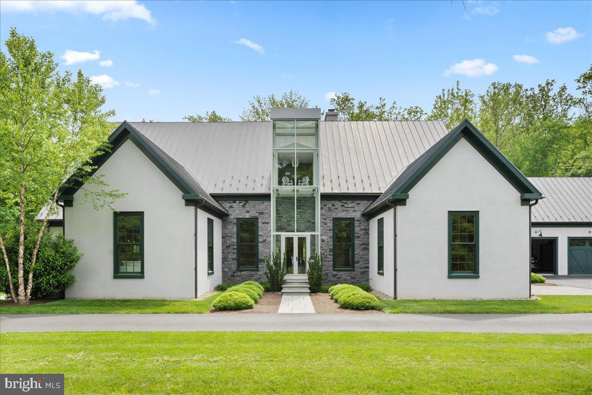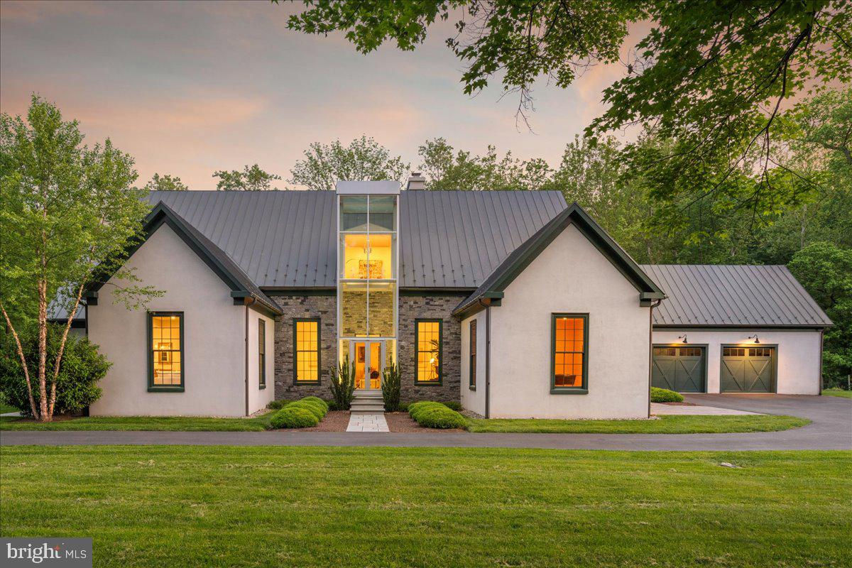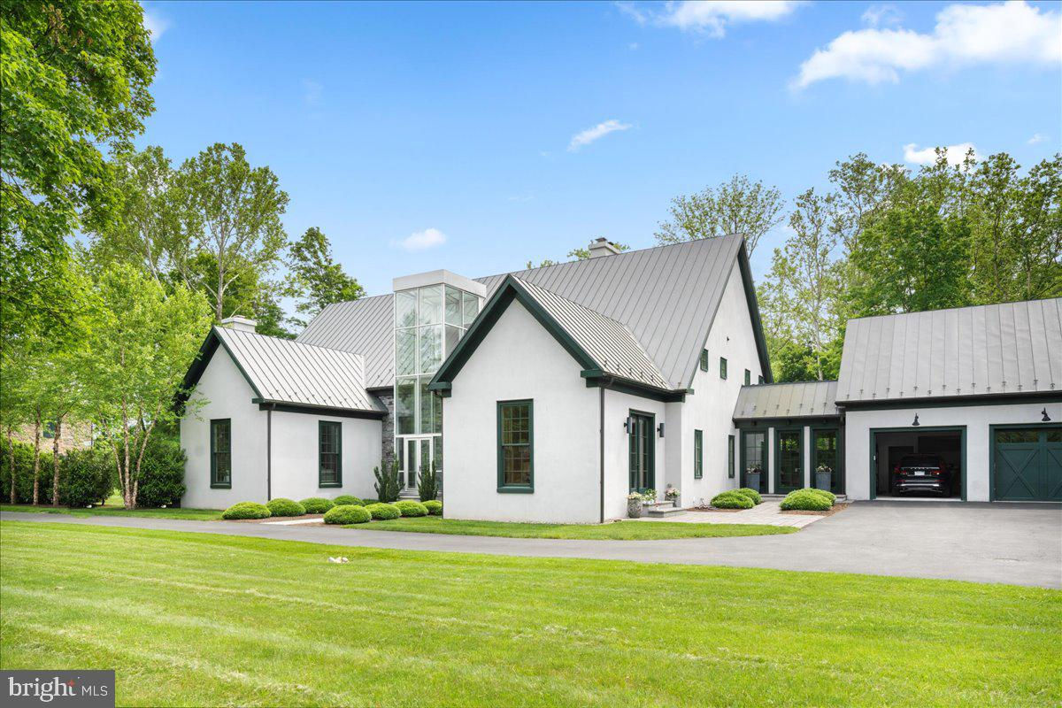 Welcome to ARIVA DWELL, a true masterpiece of modern design and green living in the heart of Solebury Township, Bucks County. This Philippe Starck-inspired estate seamlessly blends taste, modern flair, and sustainability, offering a near-zero carbon footprint home that exudes understated quality, detail and elegance at every turn. Custom builder Ed Stevenson and passive home architect Shannon Pendleton have crafted a visionary residence that elegantly pairs eco conscience luxury with sophisticated innovation. Set on 2.6 acres of canal-accessible, wooded, park-like property, this unique estate features an integrated multiple-well geothermal system that loops underground for over a mile, providing exceptional energy cost savings year-round. The gourmet Siematic kitchen, designed and installed by a team from Hamburg, Germany, is a chef's paradise . Boasting a six-burner Wolf range with an indoor grill, Sub-Zero Pro 48 glass door fridge, two Miele dishwashers, a Wolf warming drawer, and a stunning Franke hood. Strategically located alcove cafe offers barista drink options complete with dual-port Miele coffee machines, sink,and an under counter SubZero refrigerator. Geothermal hot water radiant heated floors ensure soothing warmth and comfort throughout the home when called upon. Recycled concrete poured floor tiles and FSC formaldehyde free, bamboo and Brazilian hardwood enhance the eco-friendly non toxic living environment. The state-of-the-art water system features all Toto fixtures and a salt and chlorine-free whole-home filter that delivers the best ever crystal clean water to every fixture in the house. An in wall Vacuum system with kitchen floor level sweep openings along with the intercom system are part of the story as well. The main floor boosts two en-suites ! The primary offers magical park views accented by the Victoria Albert oval soaking tub. Enjoy the open walk-in rainfall shower, poured concrete vanity with two Toto sinks, a large dressing area, additional closets and a small coffee bar for your added convenience. The second main floor suite includes a cozy lounge, king size bedroom, and complimentary to the kitchen Siematic cabinetry with SubZero wine storage, refrigeration drawers , ice maker and sink . The real wood burning, gas assist, highly efficient ‘Rumford’ fireplace is one of three in the home. An exterior door as well provides private access to the blue stone outdoor patio. The second level you will find Jack & Jill suites with tray ceilings, a shared full bath with walk-in stone shower, jacuzzi soaking air bath tub and dual vanities. There is also a powder room and a full laundry room with another under counter subzero refrigerator which comes in quite handy for the third floor lounge. The lounge on the third floor is an additional space to gather. The glass tower offers a fabulous place to sit surrounded by glass so you may truly absorb nature in all seasons . Beyond the upper level lounge is another very private large king size suite with a wonderful living room space and full bathroom. The private staircase takes you down to the first floor, laundry room off of the mudroom entrance adjacent to tue two car plus extra-large garage with dual car EV charger outlets, and ‘epoxy finished’ floors, a tool storage wall system and well lit handyman work area. Under the custom lifetime-guaranteed green steel roof, are non-toxic no VOC paints and stains that create a neutral backdrop with large wall space for art to hang. LED lighting, non-toxic seaweed based spray foam insulation, and a minimalist, sustainable landscaping further elevate the home's commitment to integrity and design excellence. As the sun sets, low-energy lighting illuminates the stunning 34-foot glass tower, providing natural temperature control and a captivating visual centerpiece. A 20 KW USA made Cummings house generator ensures uninterrupted comfort and security. #geothermal