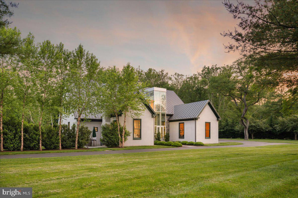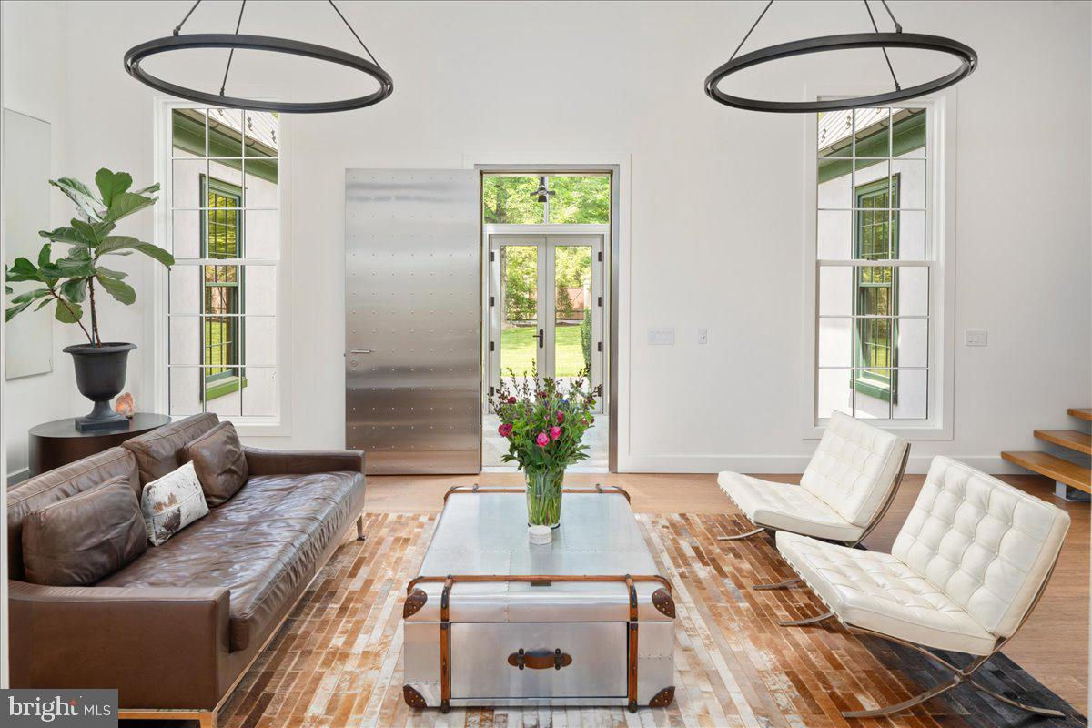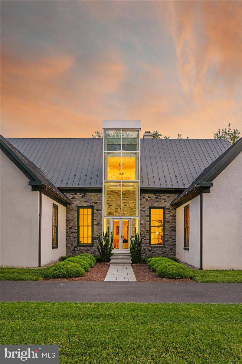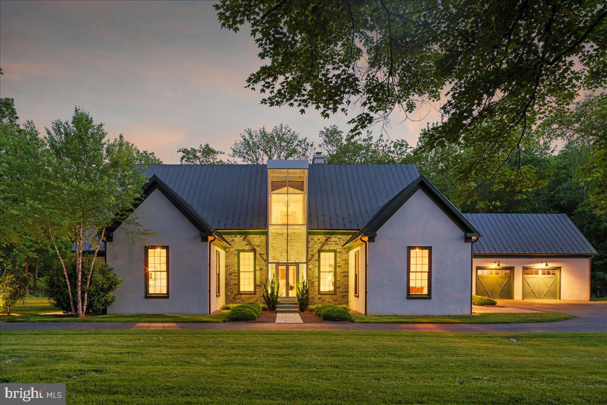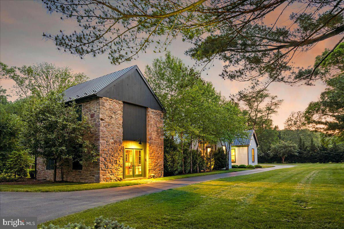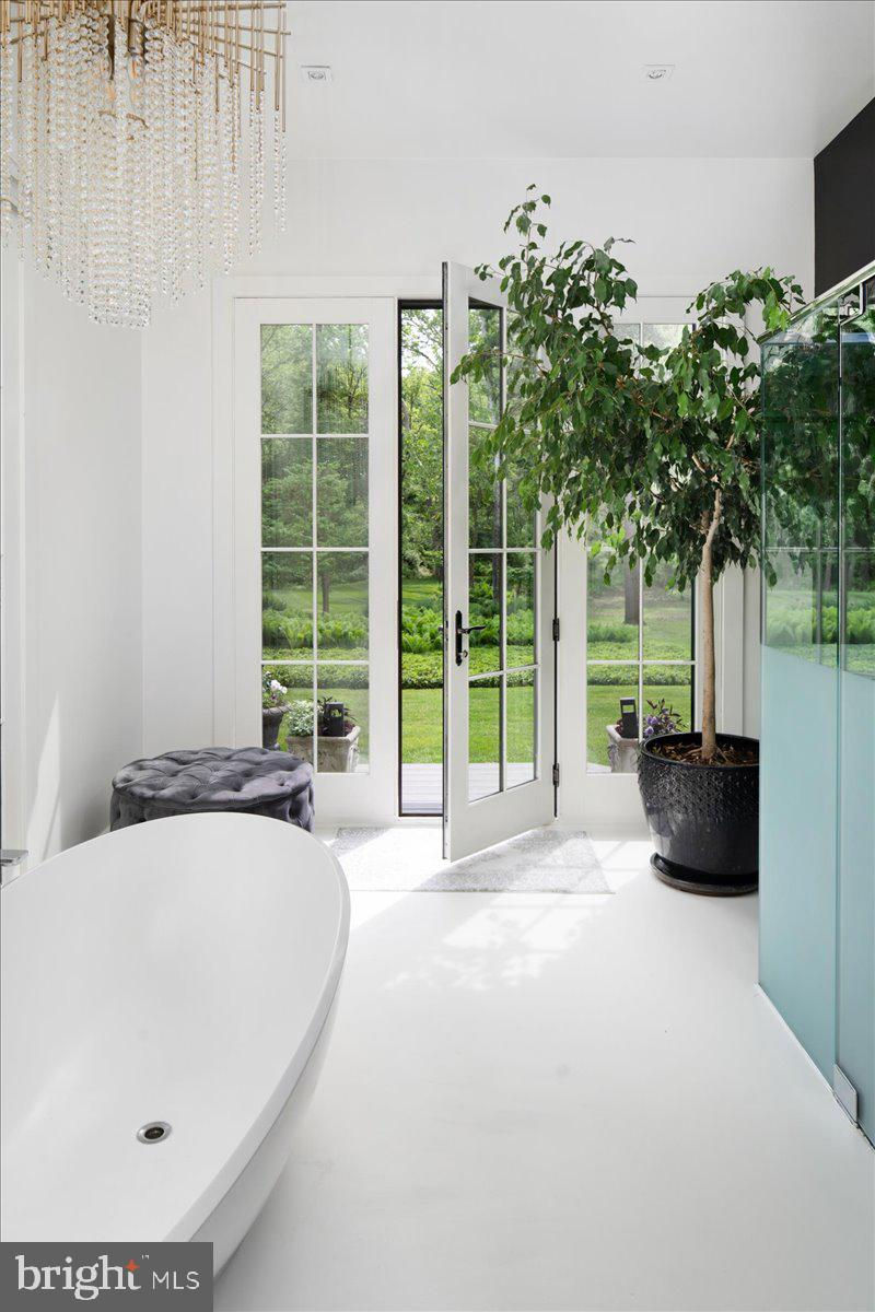 Welcome to ARIVA DWELL, a true masterpiece of modern design and green living in the heart of Solebury Township, Bucks County. This Philippe Starck-inspired estate seamlessly blends taste, modern flair, and sustainability, offering a near-zero carbon footprint home that exudes understated quality, detail and elegance at every turn. Custom builder Ed Stevenson and passive home architect Shannon Pendleton have crafted a visionary residence that elegantly pairs eco conscience luxury with sophisticated innovation. Set on 2.6 acres of canal-accessible, wooded, park-like property, this unique estate features an integrated multiple-well geothermal system that loops underground for over a mile, providing exceptional energy cost savings year-round. The gourmet Siematic kitchen, designed and installed by a team from Hamburg, Germany, is a chef's paradise . Boasting a six-burner Wolf range with an indoor grill, Sub-Zero Pro 48 glass door fridge, two Miele dishwashers, a Wolf warming drawer, and a stunning Franke hood. Strategically located alcove cafe offers barista drink options complete with dual-port Miele coffee machines, sink,and an under counter SubZero refrigerator. Geothermal hot water radiant heated floors ensure soothing warmth and comfort throughout the home when called upon. Recycled concrete poured floor tiles and FSC formaldehyde free, bamboo and Brazilian hardwood enhance the eco-friendly non toxic living environment. The state-of-the-art water system features all Toto fixtures and a salt and chlorine-free whole-home filter that delivers the best ever crystal clean water to every fixture in the house. An in wall Vacuum system with kitchen floor level sweep openings along with the intercom system are part of the story as well. The main floor boosts two en-suites ! The primary offers magical park views accented by the Victoria Albert oval soaking tub. Enjoy the open walk-in rainfall shower, poured concrete vanity with two Toto sinks, a large dressing area, additional closets and a small coffee bar for your added convenience. The second main floor suite includes a cozy lounge, king size bedroom, and complimentary to the kitchen Siematic cabinetry with SubZero wine storage, refrigeration drawers , ice maker and sink . The real wood burning, gas assist, highly efficient ‘Rumford’ fireplace is one of three in the home. An exterior door as well provides private access to the blue stone outdoor patio. The second level you will find Jack & Jill suites with tray ceilings, a shared full bath with walk-in stone shower, jacuzzi soaking air bath tub and dual vanities. There is also a powder room and a full laundry room with another under counter subzero refrigerator which comes in quite handy for the third floor lounge. The lounge on the third floor is an additional space to gather. The glass tower offers a fabulous place to sit surrounded by glass so you may truly absorb nature in all seasons . Beyond the upper level lounge is another very private large king size suite with a wonderful living room space and full bathroom. The private staircase takes you down to the first floor, laundry room off of the mudroom entrance adjacent to tue two car plus extra-large garage with dual car EV charger outlets, and ‘epoxy finished’ floors, a tool storage wall system and well lit handyman work area. Under the custom lifetime-guaranteed green steel roof, are non-toxic no VOC paints and stains that create a neutral backdrop with large wall space for art to hang. LED lighting, non-toxic seaweed based spray foam insulation, and a minimalist, sustainable landscaping further elevate the home's commitment to integrity and design excellence. As the sun sets, low-energy lighting illuminates the stunning 34-foot glass tower, providing natural temperature control and a captivating visual centerpiece. A 20 KW USA made Cummings house generator ensures uninterrupted comfort and security. #geothermal