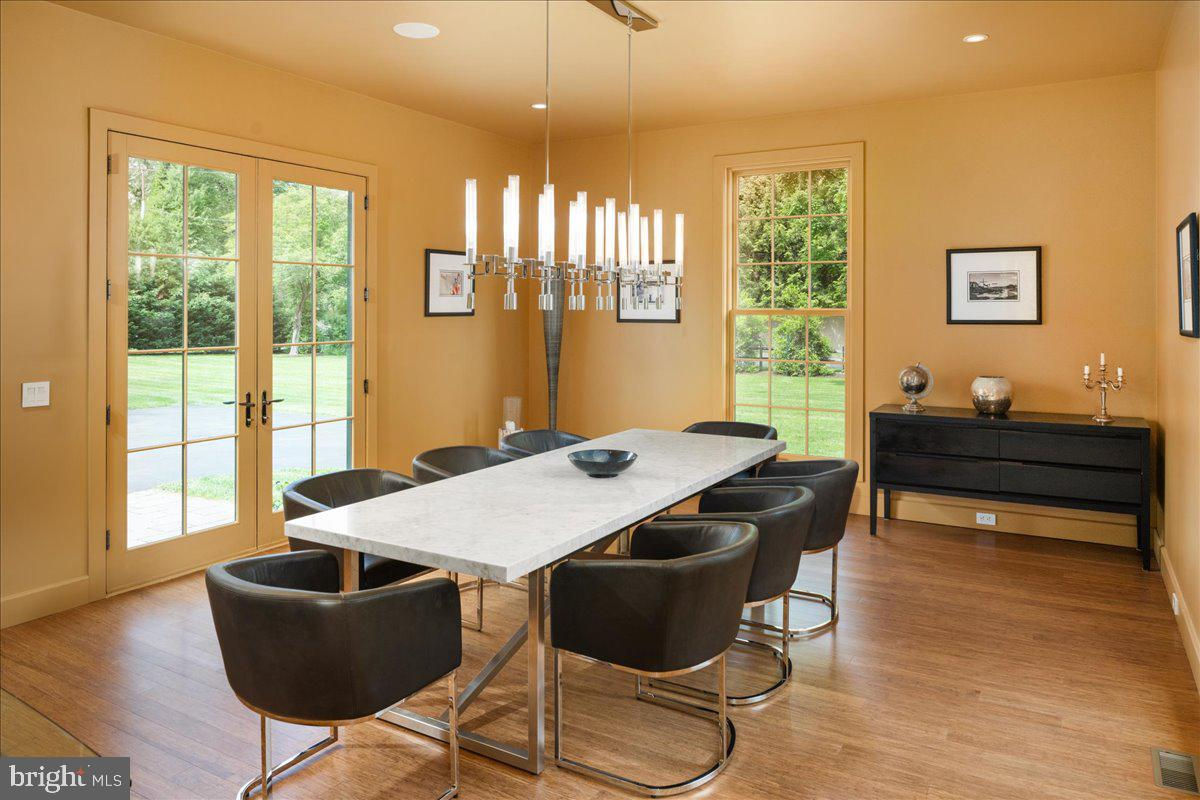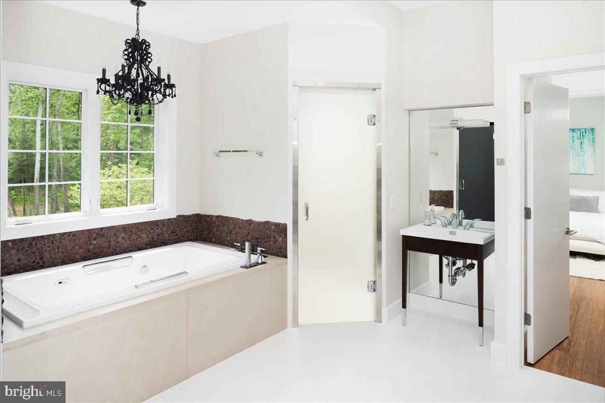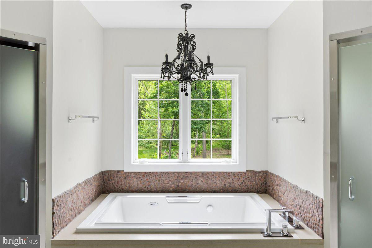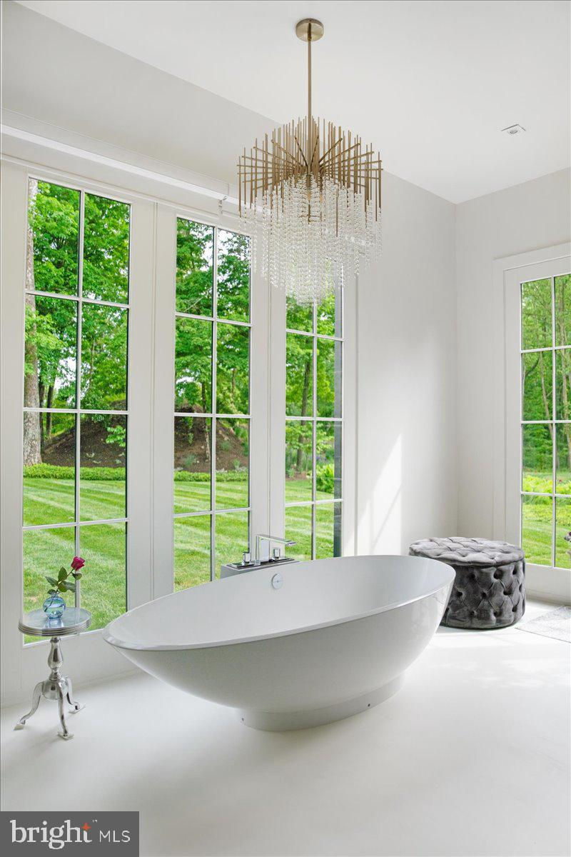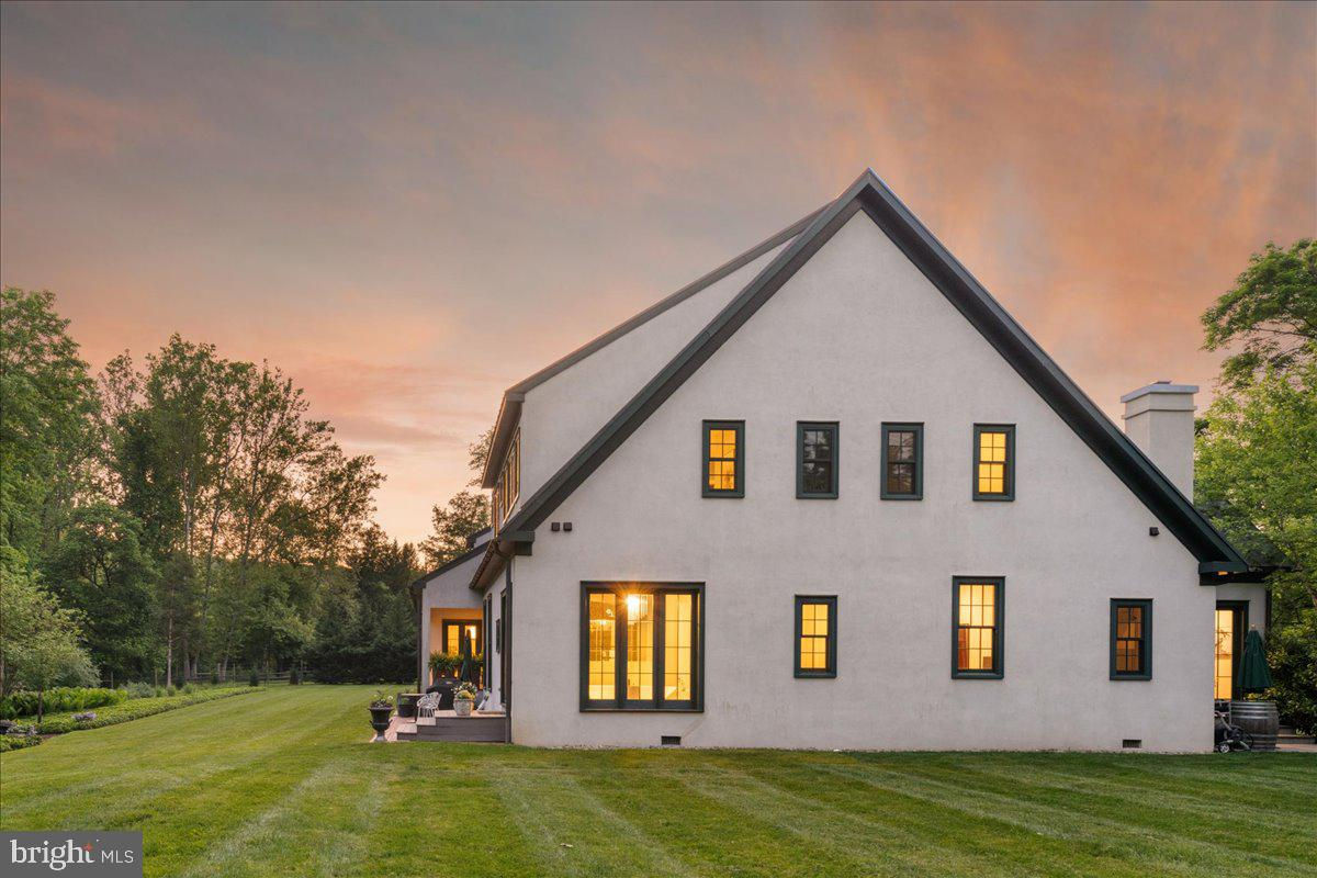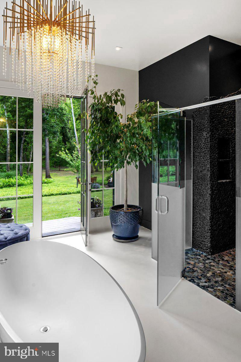 Welcome to ARIVA DWELL, a true masterpiece of modern design and green living in the heart of Solebury Township, Bucks County. This Philippe Starck-inspired estate seamlessly blends taste, modern flair, and sustainability, offering a near-zero carbon footprint home that exudes understated quality, detail and elegance at every turn. Custom builder Ed Stevenson and passive home architect Shannon Pendleton have crafted a visionary residence that elegantly pairs eco conscience luxury with sophisticated innovation. Set on 2.6 acres of canal-accessible, wooded, park-like property, this unique estate features an integrated multiple-well geothermal system that loops underground for over a mile, providing exceptional energy cost savings year-round. The gourmet Siematic kitchen, designed and installed by a team from Hamburg, Germany, is a chef's paradise . Boasting a six-burner Wolf range with an indoor grill, Sub-Zero Pro 48 glass door fridge, two Miele dishwashers, a Wolf warming drawer, and a stunning Franke hood. Strategically located alcove cafe offers barista drink options complete with dual-port Miele coffee machines, sink,and an under counter SubZero refrigerator. Geothermal hot water radiant heated floors ensure soothing warmth and comfort throughout the home when called upon. Recycled concrete poured floor tiles and FSC formaldehyde free, bamboo and Brazilian hardwood enhance the eco-friendly non toxic living environment. The state-of-the-art water system features all Toto fixtures and a salt and chlorine-free whole-home filter that delivers the best ever crystal clean water to every fixture in the house. An in wall Vacuum system with kitchen floor level sweep openings along with the intercom system are part of the story as well. The main floor boosts two en-suites ! The primary offers magical park views accented by the Victoria Albert oval soaking tub. Enjoy the open walk-in rainfall shower, poured concrete vanity with two Toto sinks, a large dressing area, additional closets and a small coffee bar for your added convenience. The second main floor suite includes a cozy lounge, king size bedroom, and complimentary to the kitchen Siematic cabinetry with SubZero wine storage, refrigeration drawers , ice maker and sink . The real wood burning, gas assist, highly efficient ‘Rumford’ fireplace is one of three in the home. An exterior door as well provides private access to the blue stone outdoor patio. The second level you will find Jack & Jill suites with tray ceilings, a shared full bath with walk-in stone shower, jacuzzi soaking air bath tub and dual vanities. There is also a powder room and a full laundry room with another under counter subzero refrigerator which comes in quite handy for the third floor lounge. The lounge on the third floor is an additional space to gather. The glass tower offers a fabulous place to sit surrounded by glass so you may truly absorb nature in all seasons . Beyond the upper level lounge is another very private large king size suite with a wonderful living room space and full bathroom. The private staircase takes you down to the first floor, laundry room off of the mudroom entrance adjacent to tue two car plus extra-large garage with dual car EV charger outlets, and ‘epoxy finished’ floors, a tool storage wall system and well lit handyman work area. Under the custom lifetime-guaranteed green steel roof, are non-toxic no VOC paints and stains that create a neutral backdrop with large wall space for art to hang. LED lighting, non-toxic seaweed based spray foam insulation, and a minimalist, sustainable landscaping further elevate the home's commitment to integrity and design excellence. As the sun sets, low-energy lighting illuminates the stunning 34-foot glass tower, providing natural temperature control and a captivating visual centerpiece. A 20 KW USA made Cummings house generator ensures uninterrupted comfort and security. #geothermal