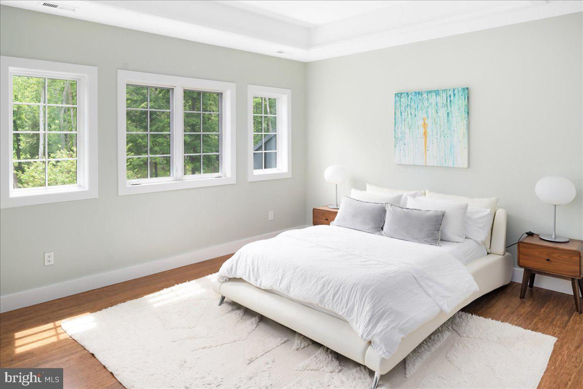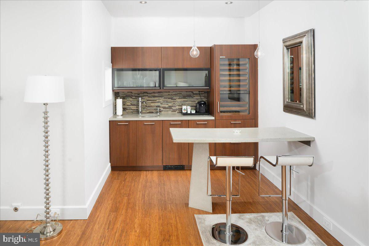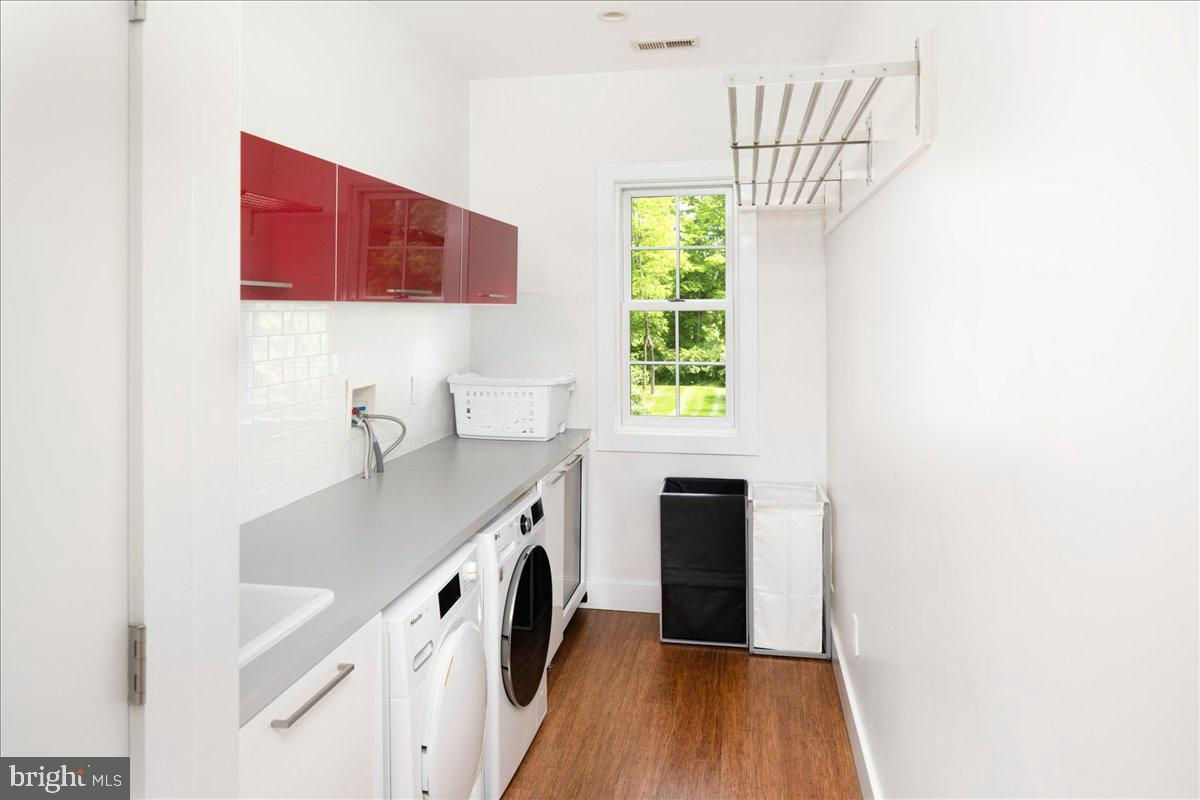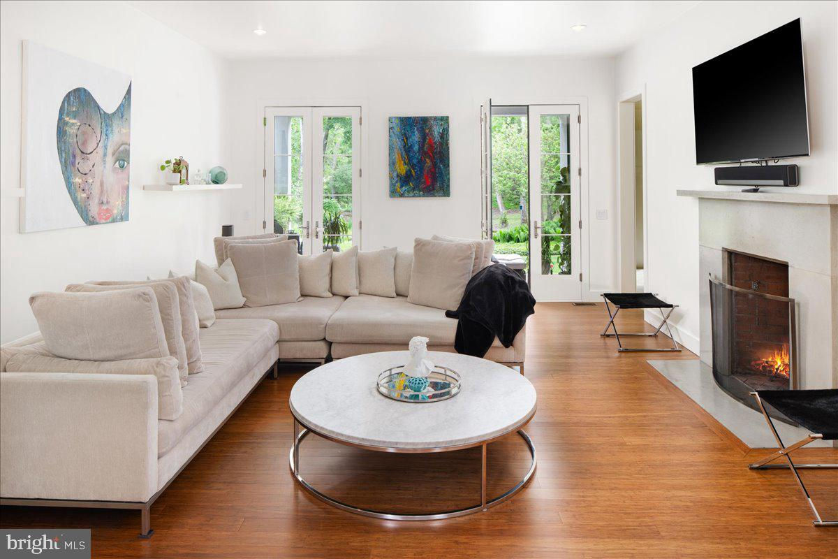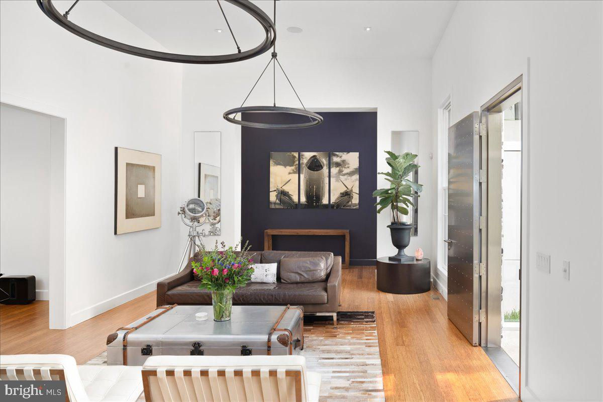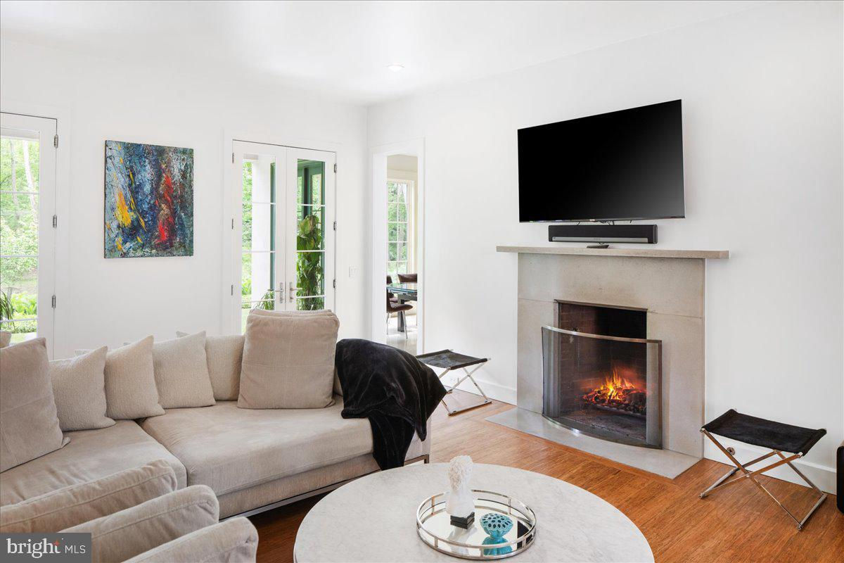 Welcome to ARIVA DWELL, a true masterpiece of modern design and green living in the heart of Solebury Township, Bucks County. This Philippe Starck-inspired estate seamlessly blends taste, modern flair, and sustainability, offering a near-zero carbon footprint home that exudes understated quality, detail and elegance at every turn. Custom builder Ed Stevenson and passive home architect Shannon Pendleton have crafted a visionary residence that elegantly pairs eco conscience luxury with sophisticated innovation. Set on 2.6 acres of canal-accessible, wooded, park-like property, this unique estate features an integrated multiple-well geothermal system that loops underground for over a mile, providing exceptional energy cost savings year-round. The gourmet Siematic kitchen, designed and installed by a team from Hamburg, Germany, is a chef's paradise . Boasting a six-burner Wolf range with an indoor grill, Sub-Zero Pro 48 glass door fridge, two Miele dishwashers, a Wolf warming drawer, and a stunning Franke hood. Strategically located alcove cafe offers barista drink options complete with dual-port Miele coffee machines, sink,and an under counter SubZero refrigerator. Geothermal hot water radiant heated floors ensure soothing warmth and comfort throughout the home when called upon. Recycled concrete poured floor tiles and FSC formaldehyde free, bamboo and Brazilian hardwood enhance the eco-friendly non toxic living environment. The state-of-the-art water system features all Toto fixtures and a salt and chlorine-free whole-home filter that delivers the best ever crystal clean water to every fixture in the house. An in wall Vacuum system with kitchen floor level sweep openings along with the intercom system are part of the story as well. The main floor boosts two en-suites ! The primary offers magical park views accented by the Victoria Albert oval soaking tub. Enjoy the open walk-in rainfall shower, poured concrete vanity with two Toto sinks, a large dressing area, additional closets and a small coffee bar for your added convenience. The second main floor suite includes a cozy lounge, king size bedroom, and complimentary to the kitchen Siematic cabinetry with SubZero wine storage, refrigeration drawers , ice maker and sink . The real wood burning, gas assist, highly efficient ‘Rumford’ fireplace is one of three in the home. An exterior door as well provides private access to the blue stone outdoor patio. The second level you will find Jack & Jill suites with tray ceilings, a shared full bath with walk-in stone shower, jacuzzi soaking air bath tub and dual vanities. There is also a powder room and a full laundry room with another under counter subzero refrigerator which comes in quite handy for the third floor lounge. The lounge on the third floor is an additional space to gather. The glass tower offers a fabulous place to sit surrounded by glass so you may truly absorb nature in all seasons . Beyond the upper level lounge is another very private large king size suite with a wonderful living room space and full bathroom. The private staircase takes you down to the first floor, laundry room off of the mudroom entrance adjacent to tue two car plus extra-large garage with dual car EV charger outlets, and ‘epoxy finished’ floors, a tool storage wall system and well lit handyman work area. Under the custom lifetime-guaranteed green steel roof, are non-toxic no VOC paints and stains that create a neutral backdrop with large wall space for art to hang. LED lighting, non-toxic seaweed based spray foam insulation, and a minimalist, sustainable landscaping further elevate the home's commitment to integrity and design excellence. As the sun sets, low-energy lighting illuminates the stunning 34-foot glass tower, providing natural temperature control and a captivating visual centerpiece. A 20 KW USA made Cummings house generator ensures uninterrupted comfort and security. #geothermal
