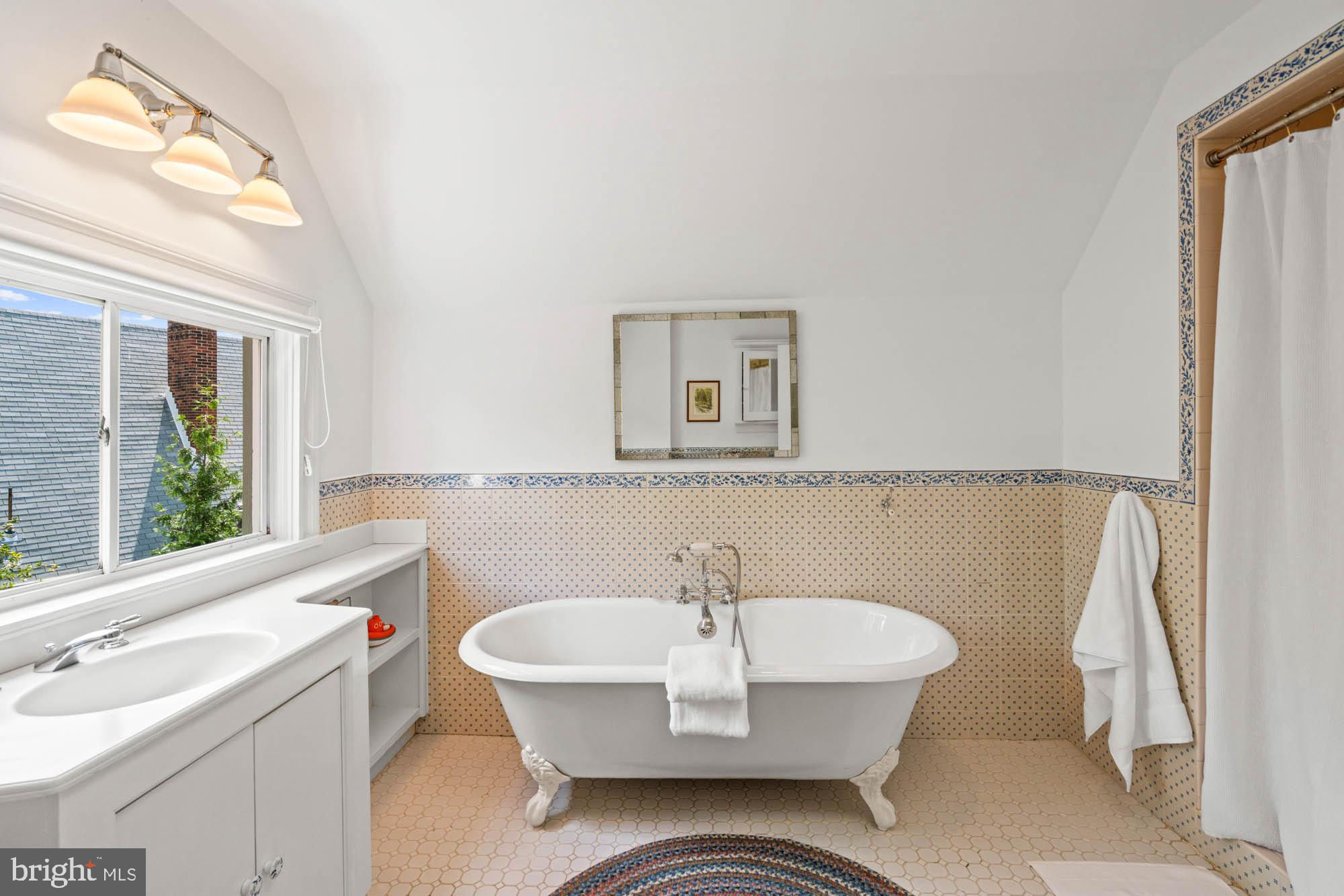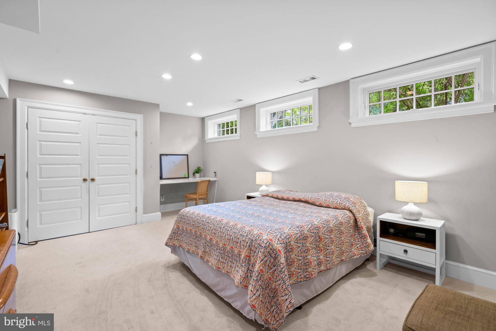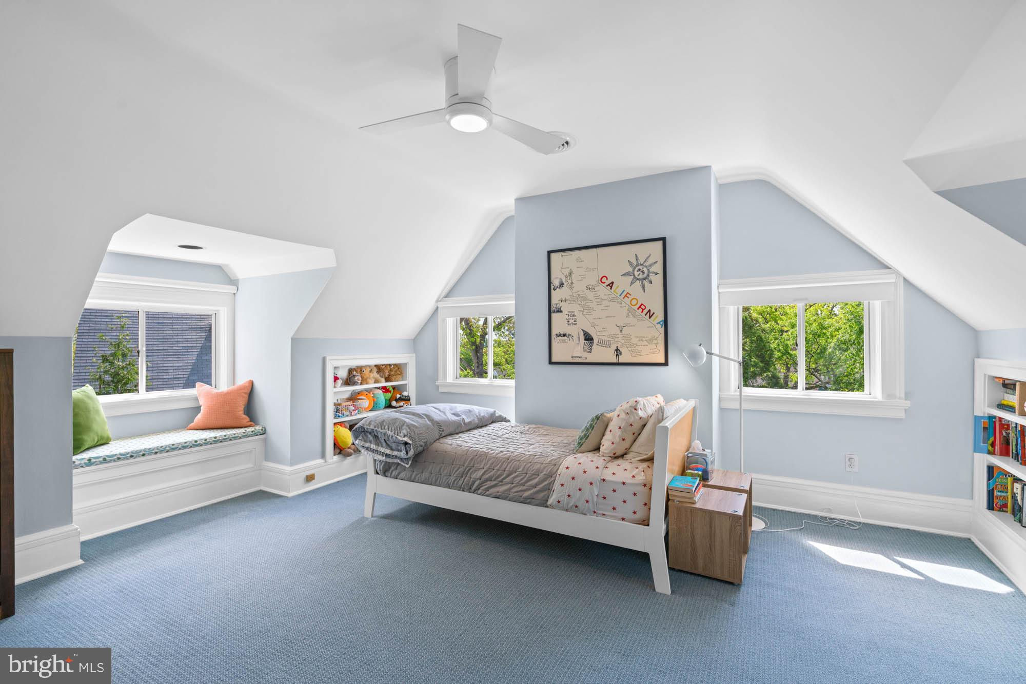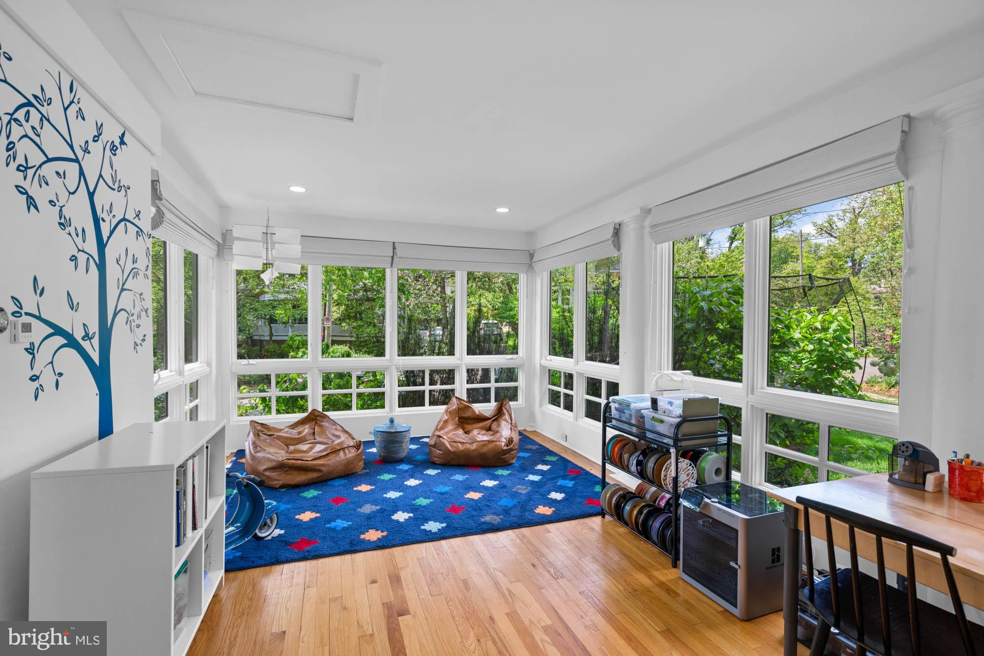 This elegant 1905 residence is ideally sited on a prominent corner lot in the highly coveted Cleveland Park neighborhood. Meticulously updated and expanded across four spacious levels, the home blends timeless architectural character with refined modern living. A gracious and inviting foyer, accented by elegant wall paneling and crown molding, introduces the sophisticated main level. Original hardwood floors and sliding pocket doors provide historic detail, while the living room showcases a beautifully crafted fireplace, intricate ceiling trim, custom built-ins, and doors leading to a charming screen porch offering lovely garden views. Expansive windows throughout fill the interiors with abundant natural light, enhancing the sense of warmth and space. The chef’s kitchen is well-appointed with a large center island, Sub-Zero refrigerator and freezer, double sinks and wall ovens, and ample custom cabinetry. The kitchen opens to the family and breakfast room, which features a soaring cathedral ceiling, fireplace, oversized windows, and French doors to the exterior gardens. The formal dining room exudes sophistication with another fireplace, elaborate millwork, and crown moldings. An adjoining study or music room transitions to a main-level recreation room with a wall of windows overlooking the mature gardens. There is also the added convenience of a mud room with ample storage and large coat closet on this floor. Upstairs, the large primary suite offers a peaceful retreat with a generous custom walk-in closet, extensive built-ins, and a spa-inspired bath with dual vanities and a frameless glass shower. This level also includes a spacious bedroom with a fireplace, a full hall bathroom, an office, and a laundry room. The third level features three additional well-appointed bedrooms with ample closet space, built-in shelving, and a large hall bathroom. There is an additional office on this floor as well. The expansive lower level includes a large recreation room, a sixth bedroom with full bathroom, dedicated storage rooms, cubbies / mudroom shelving, and French doors opening to the verdant yard. Surrounding the home are lush professionally landscaped gardens, a stone path encircling the residence, a spacious deck off the kitchen ideal for outdoor entertaining, and a granite stone driveway leading to a detached garage. This exceptional property is ideally located within walking distance to sought after schools, including Hearst Elementary, Sidwell Friends, Beauvoir, St. Albans, and National Cathedral School. It also offers easy access to the Metro, Cathedral Commons, neighborhood shops and dining, and the newly renovated Hearst Park, which features a pool, tennis courts, sports fields, and a playground. Seamlessly combining location, historic character, and luxury, this is a rare offering in one of Washington’s most desirable communities.