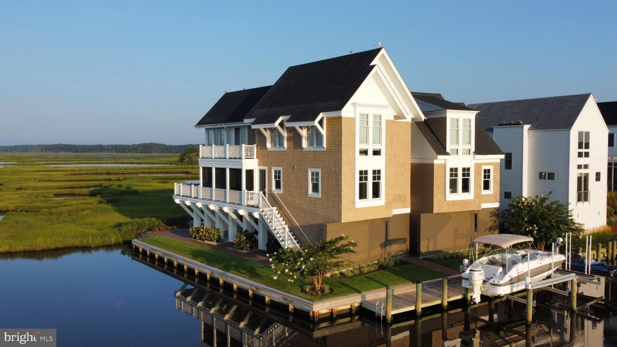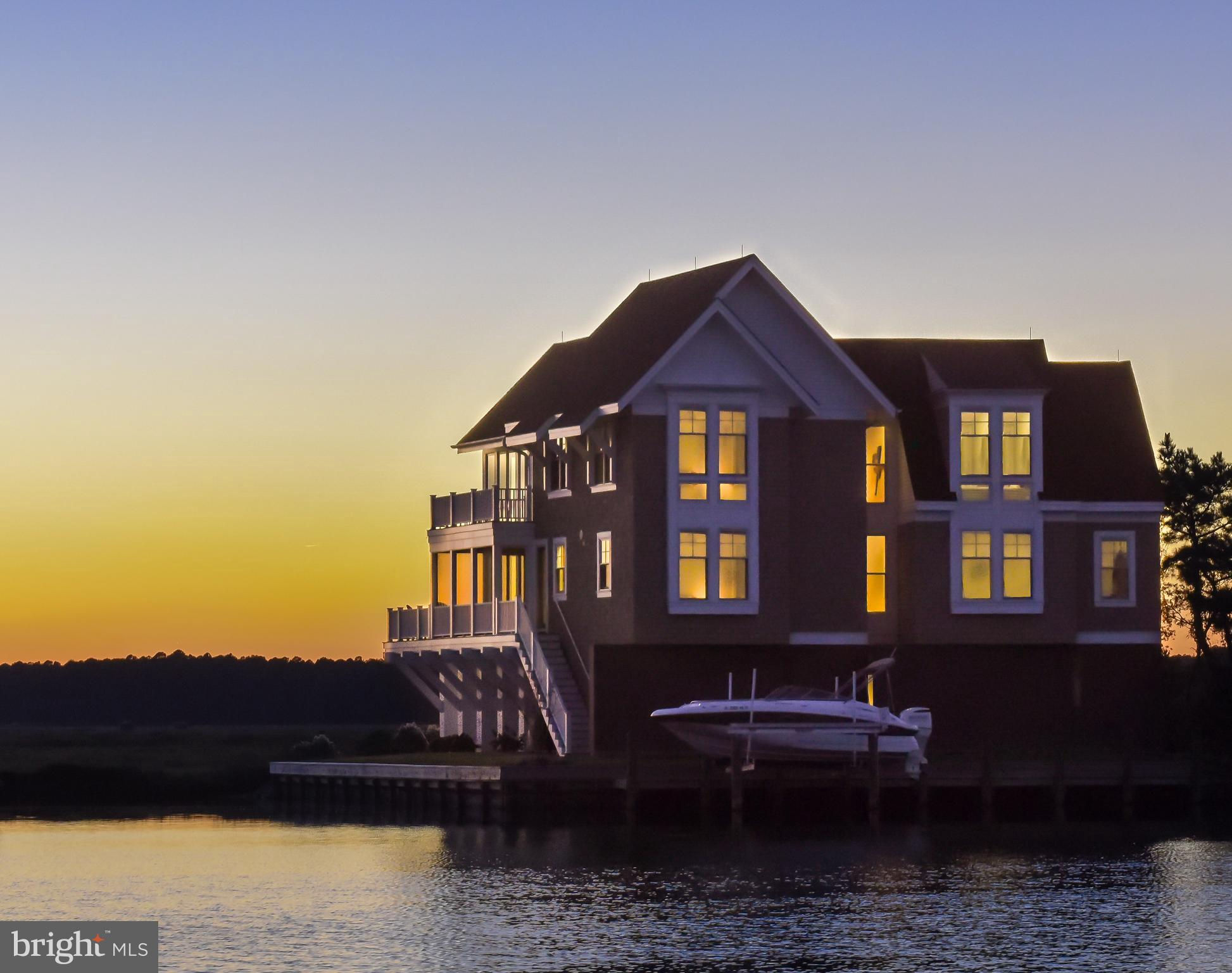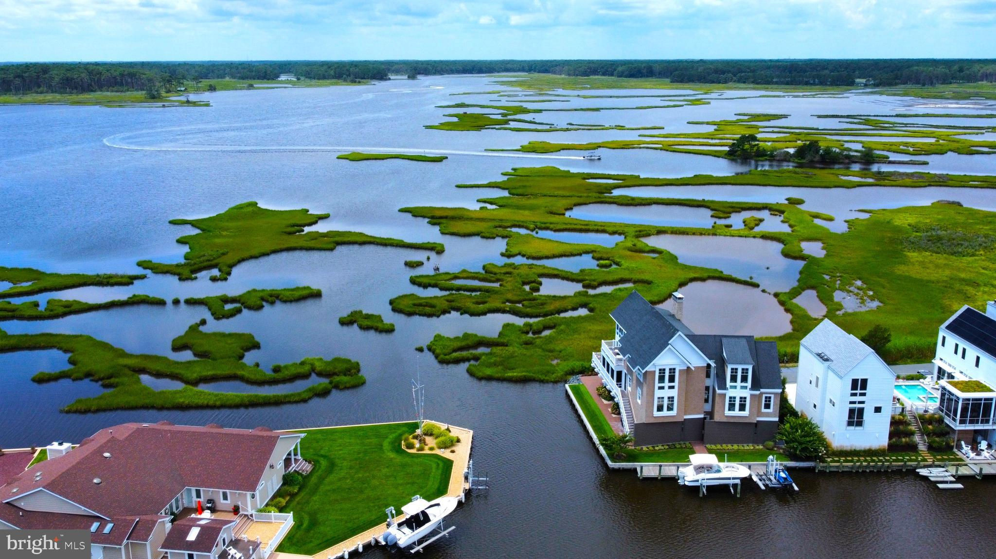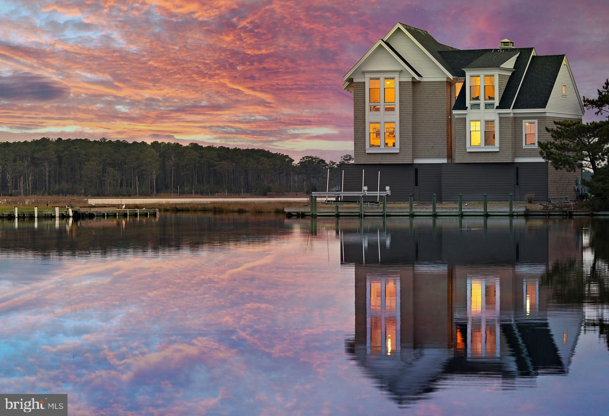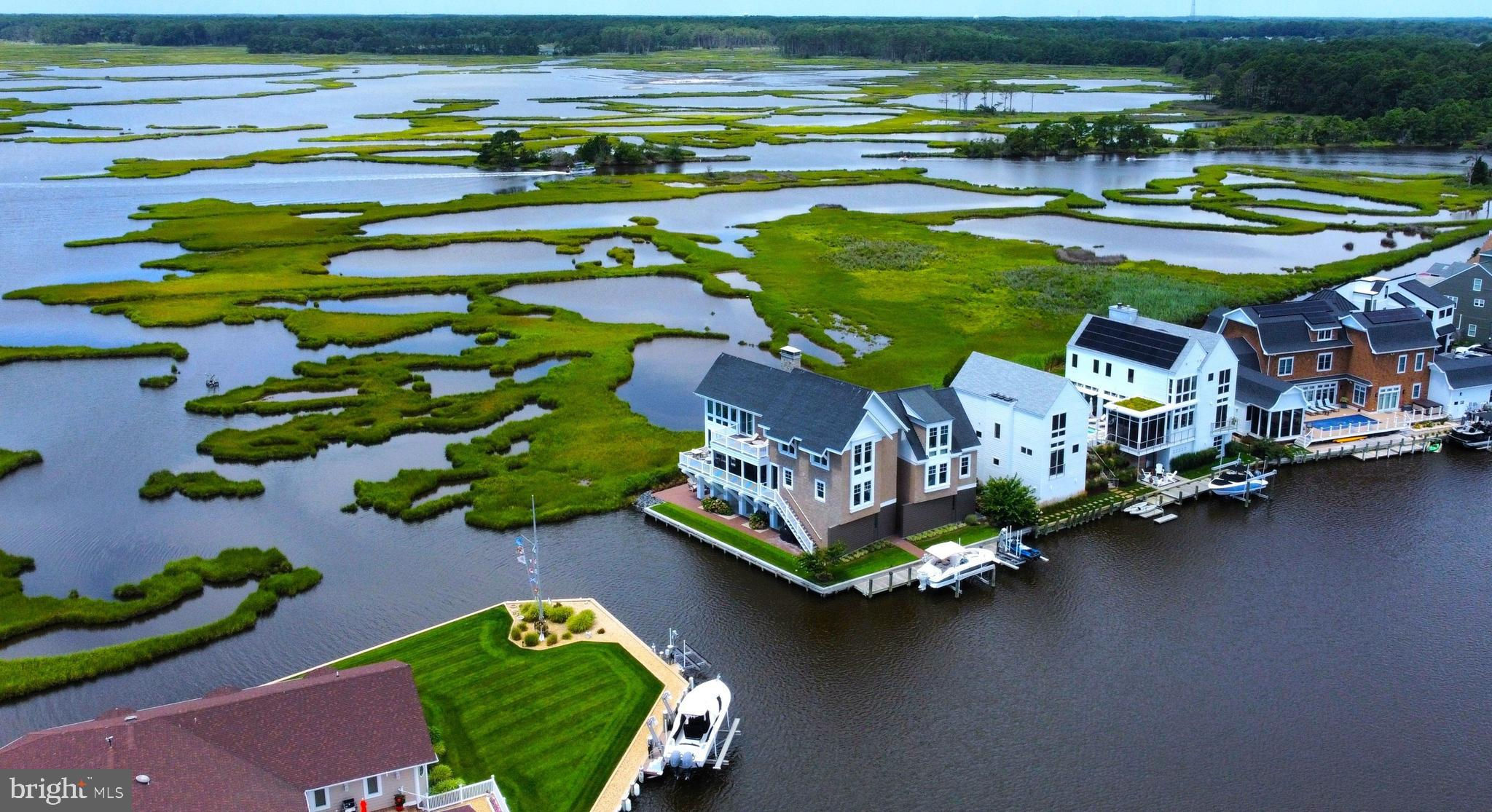 Take in unparalleled panoramic bay views from every room of this sophisticated modern beach home, ideally located on one of the most sought-after bayfront properties with water on three sides of the home. Complete with a private 50-foot dock, boat lift, and double jet ski lift, this exceptional residence was impressively designed, featuring high-end finishes and craftsmanship throughout. The expansive great room, with floor-to-ceiling windows on two sides, effortlessly frames sweeping views of the water and seamlessly blends the living, dining, and gourmet kitchen spaces. A large work island, bar with seating, and premium appliances elevate this culinary and entertaining space with easy access to a screened porch and open deck with views that are unable to be duplicated. The main level also offers a cozy family room, two guest bedrooms, and a full bathroom, along with a convenient powder room for guests. Upstairs, the bayfront primary suite is a tranquil retreat with its own private waterfront deck. Three generously-sized guest rooms each feature en-suite bathrooms, ensuring ample space and privacy for visitors. On the ground level, a spacious workshop and covered patio provide the perfect setting for crab feasts and relaxation, while the brick paver patio offers an ideal spot for evening bonfires by the water. The outdoor shower with a changing area makes clean-ups after a day on the beach or boat a breeze, and a two-car garage plus second one-car garage provide ample storage and convenience for all your vehicles, beach gear, kayaks, canoes, boating accessories, and bikes. Additional highlights include an elevator shaft for future conversion, geothermal hvac, and a location that’s impossible to duplicate—situated on a peninsula with sweeping views of the bay and wetlands, yet just moments from the beach. Homes of this caliber, in such a prime location, are a rare offering.