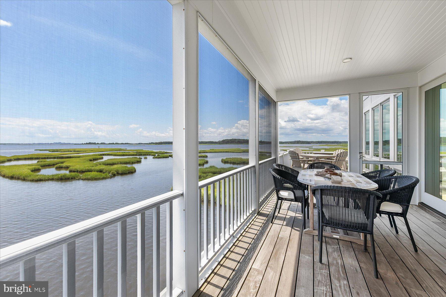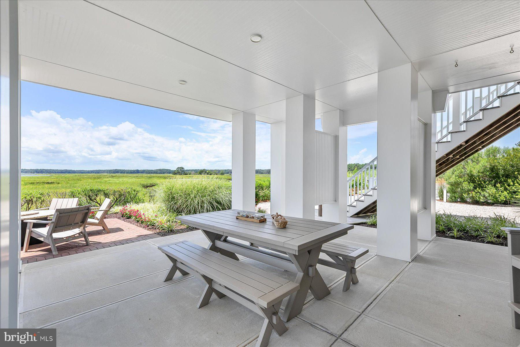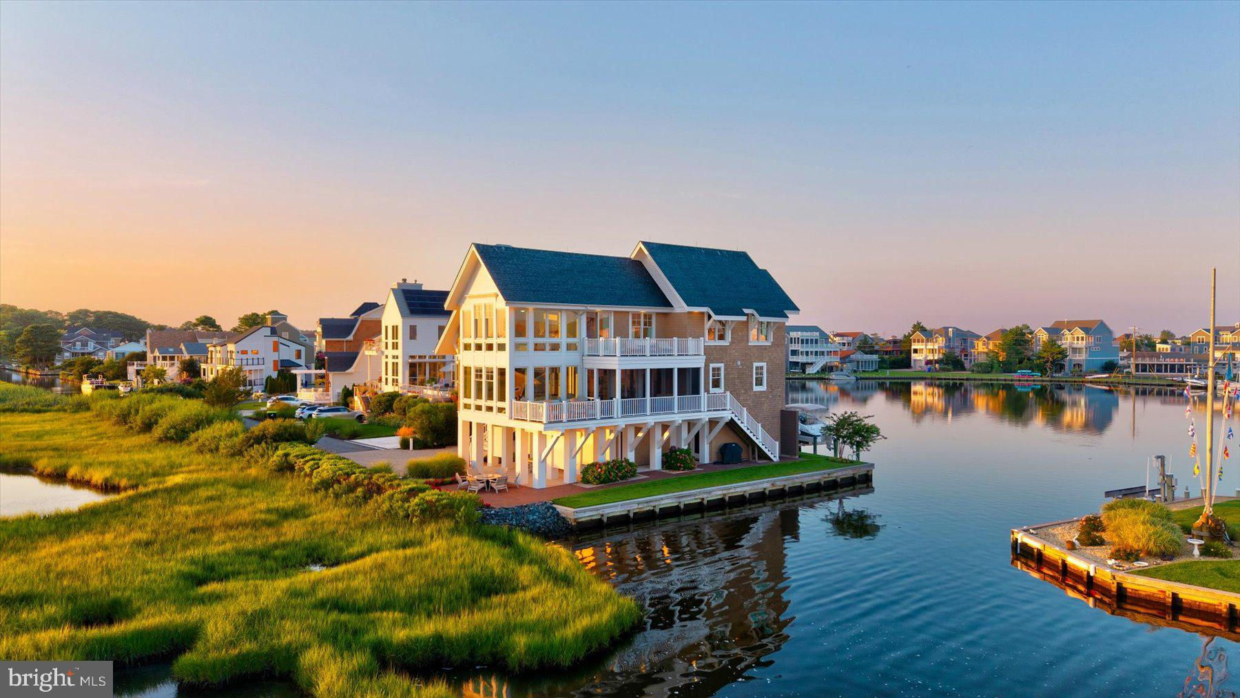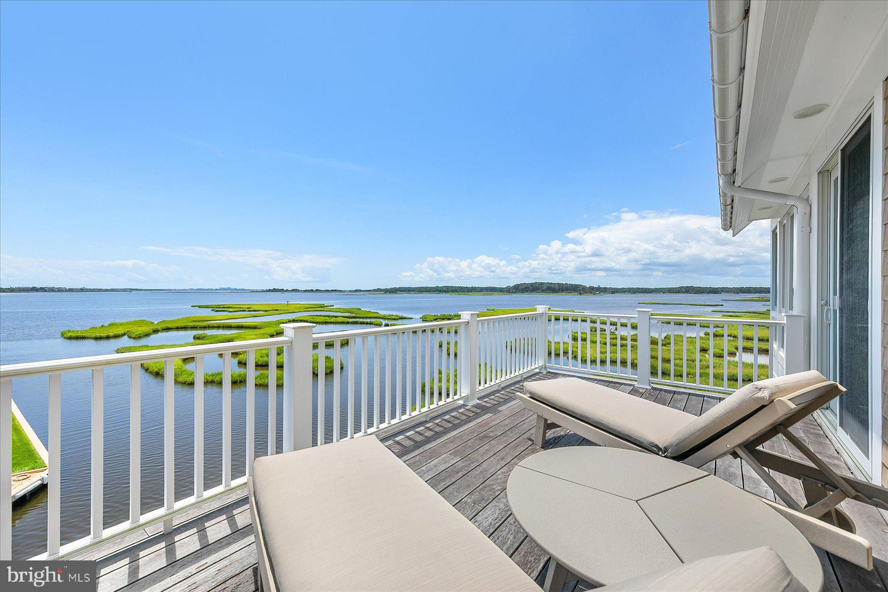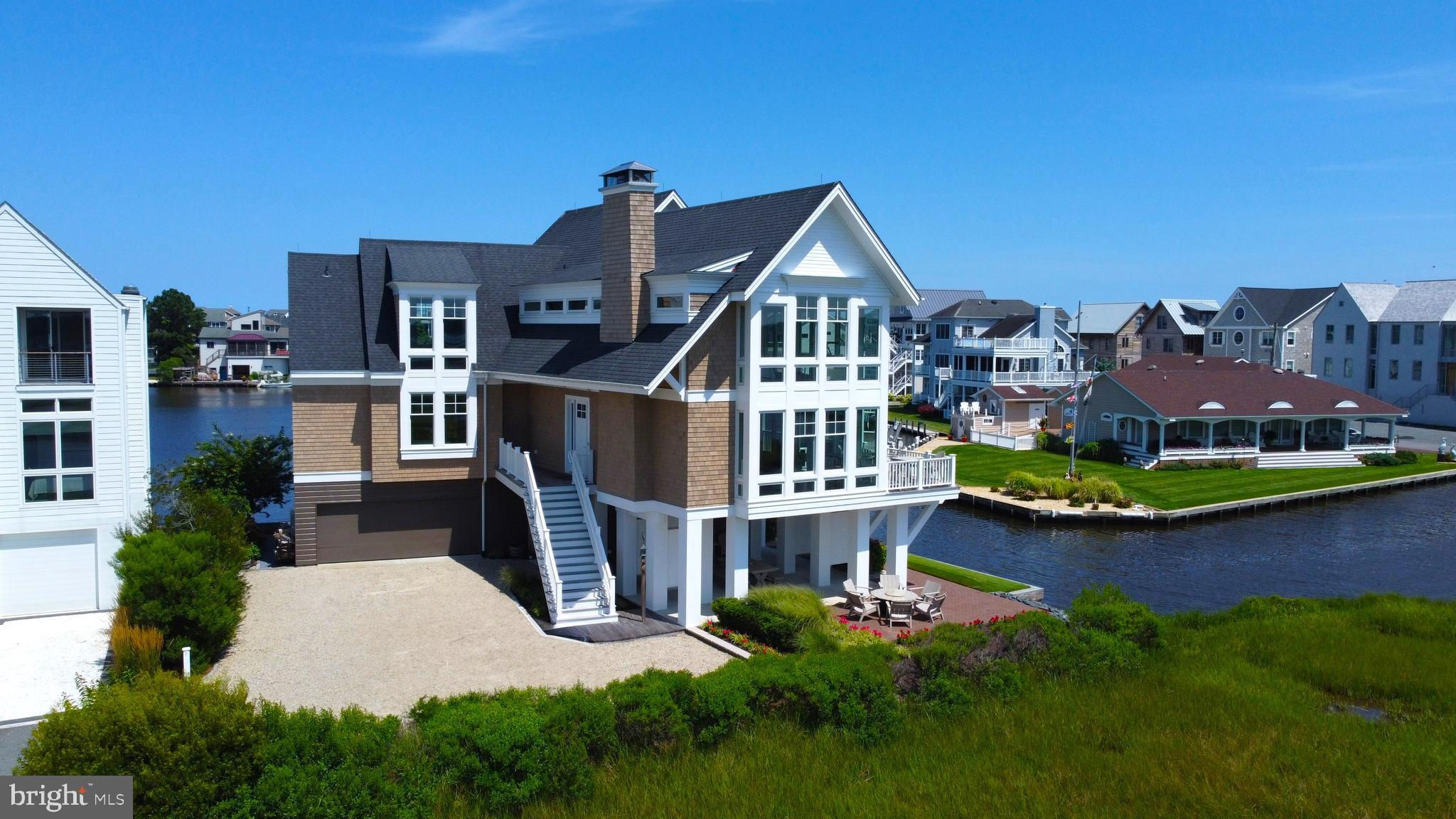 Take in unparalleled panoramic bay views from every room of this sophisticated modern beach home, ideally located on one of the most sought-after bayfront properties with water on three sides of the home. Complete with a private 50-foot dock, boat lift, and double jet ski lift, this exceptional residence was impressively designed, featuring high-end finishes and craftsmanship throughout. The expansive great room, with floor-to-ceiling windows on two sides, effortlessly frames sweeping views of the water and seamlessly blends the living, dining, and gourmet kitchen spaces. A large work island, bar with seating, and premium appliances elevate this culinary and entertaining space with easy access to a screened porch and open deck with views that are unable to be duplicated. The main level also offers a cozy family room, two guest bedrooms, and a full bathroom, along with a convenient powder room for guests. Upstairs, the bayfront primary suite is a tranquil retreat with its own private waterfront deck. Three generously-sized guest rooms each feature en-suite bathrooms, ensuring ample space and privacy for visitors. On the ground level, a spacious workshop and covered patio provide the perfect setting for crab feasts and relaxation, while the brick paver patio offers an ideal spot for evening bonfires by the water. The outdoor shower with a changing area makes clean-ups after a day on the beach or boat a breeze, and a two-car garage plus second one-car garage provide ample storage and convenience for all your vehicles, beach gear, kayaks, canoes, boating accessories, and bikes. Additional highlights include an elevator shaft for future conversion, geothermal hvac, and a location that’s impossible to duplicate—situated on a peninsula with sweeping views of the bay and wetlands, yet just moments from the beach. Homes of this caliber, in such a prime location, are a rare offering.